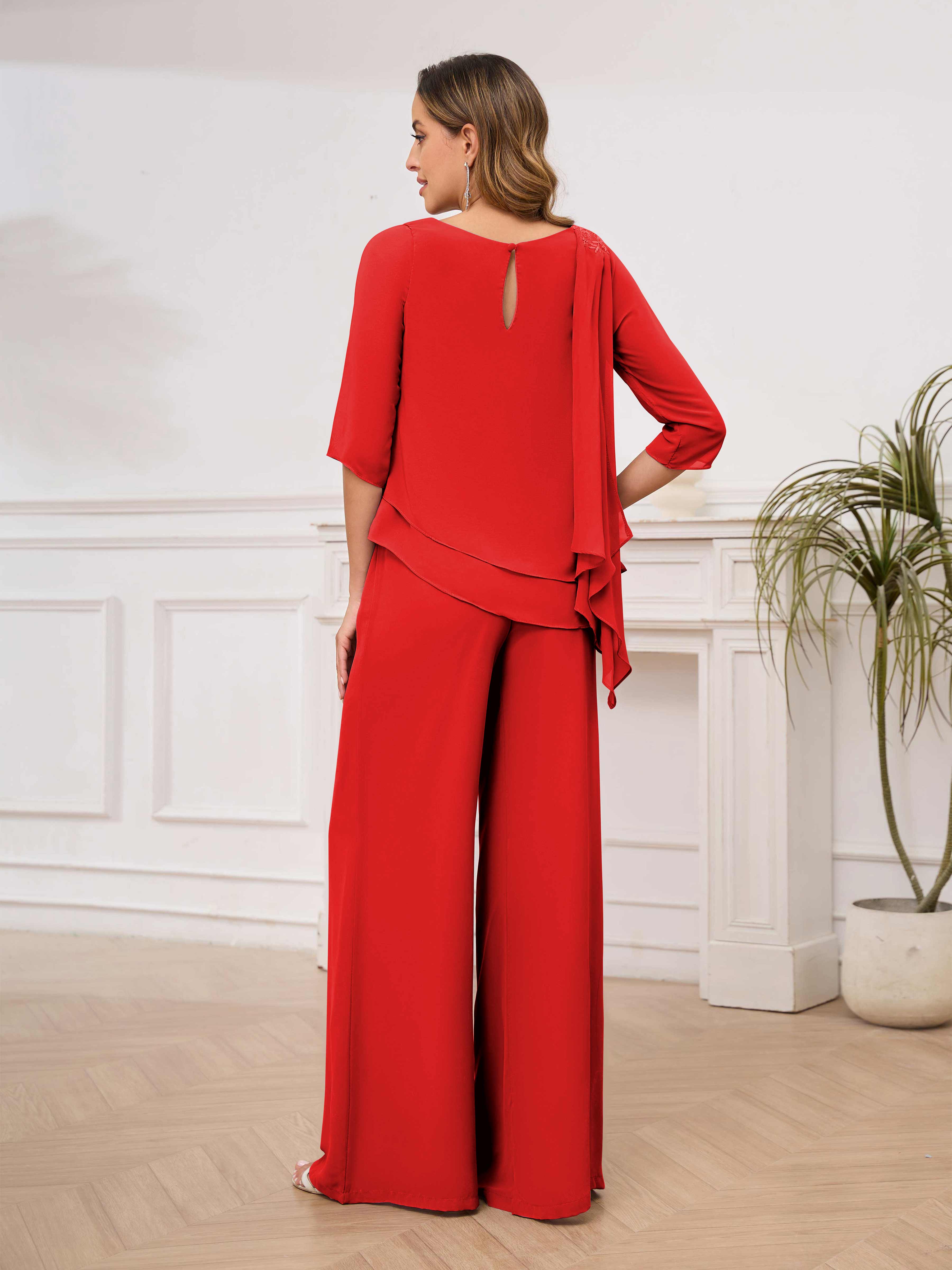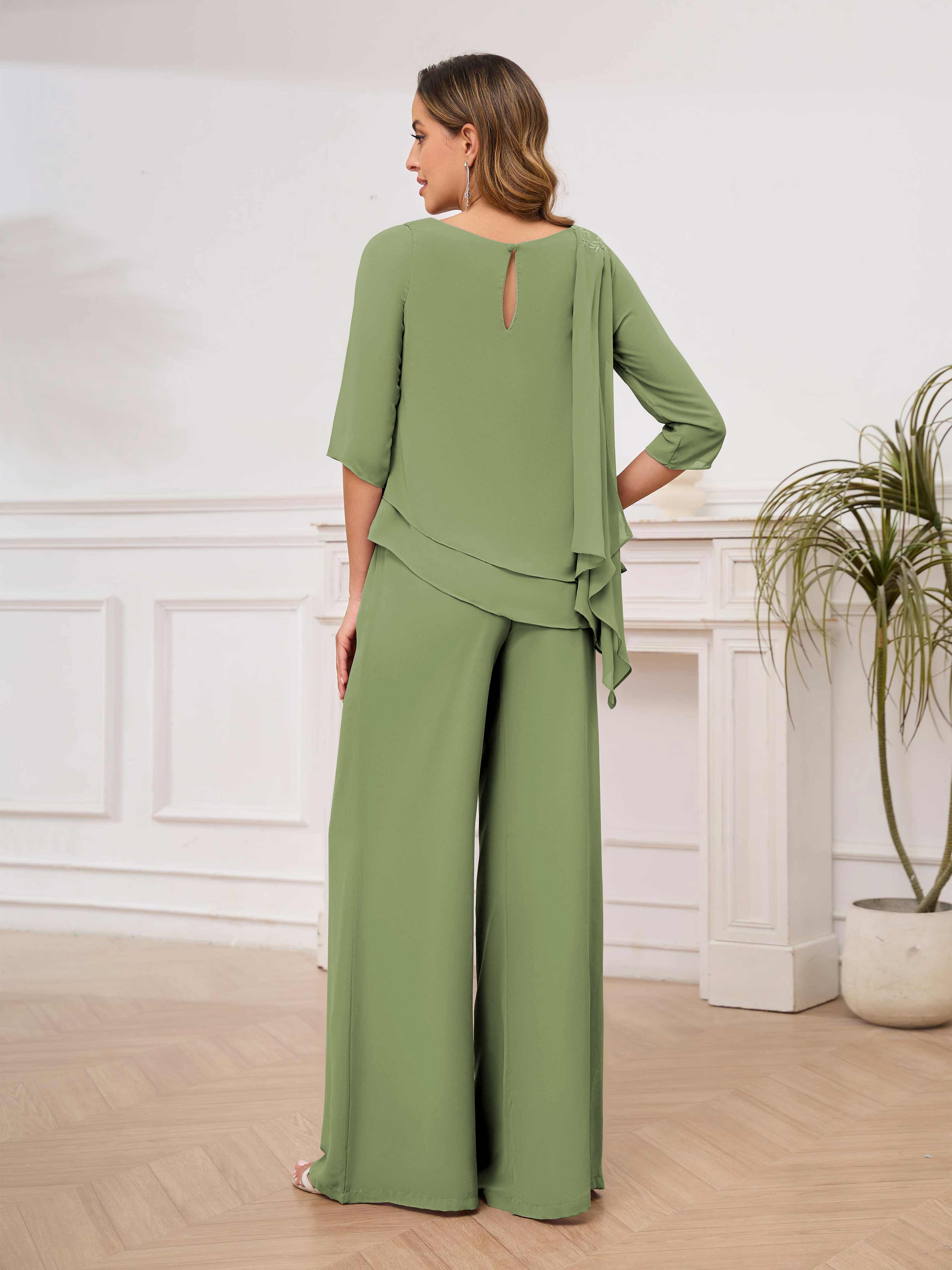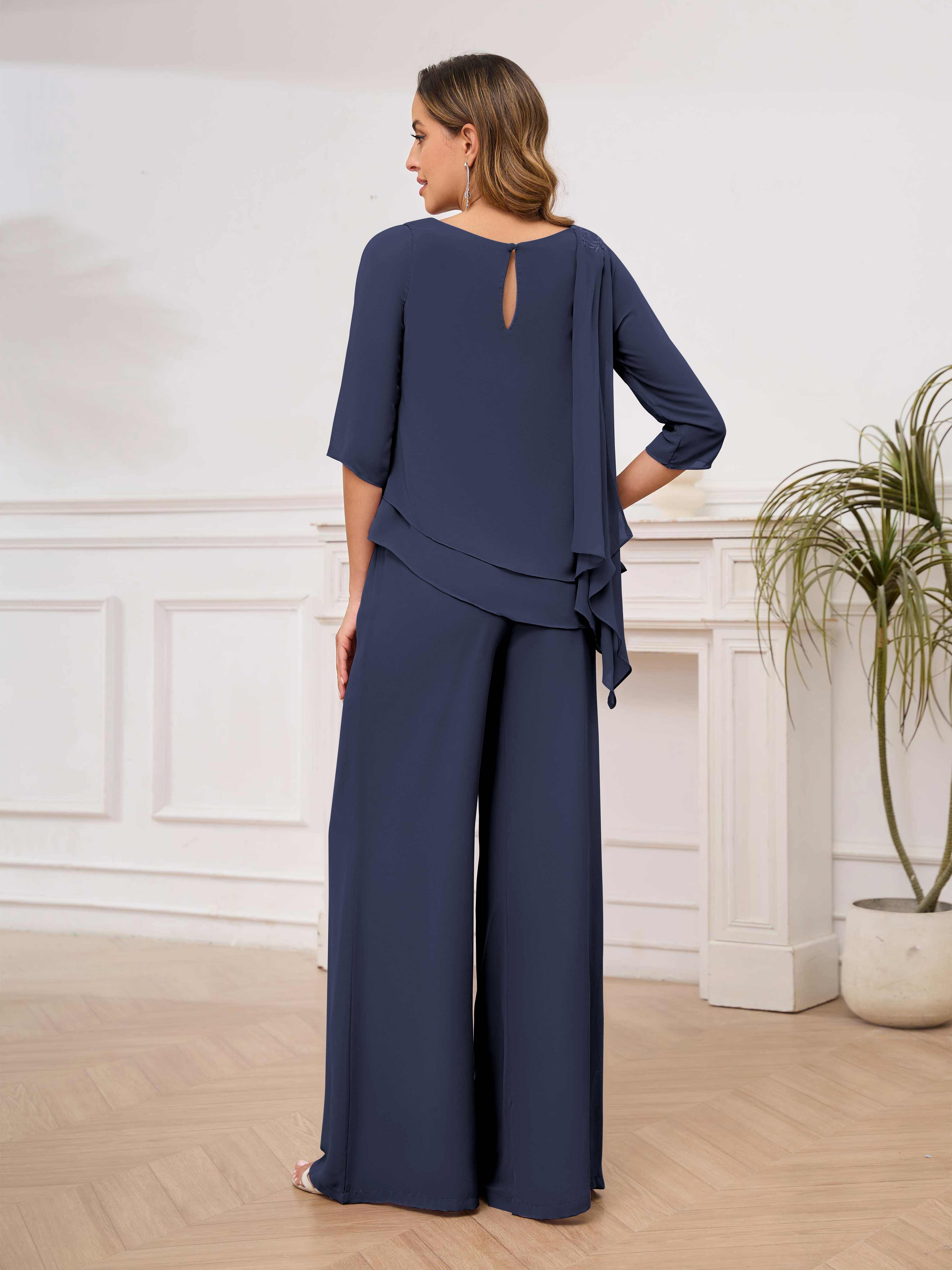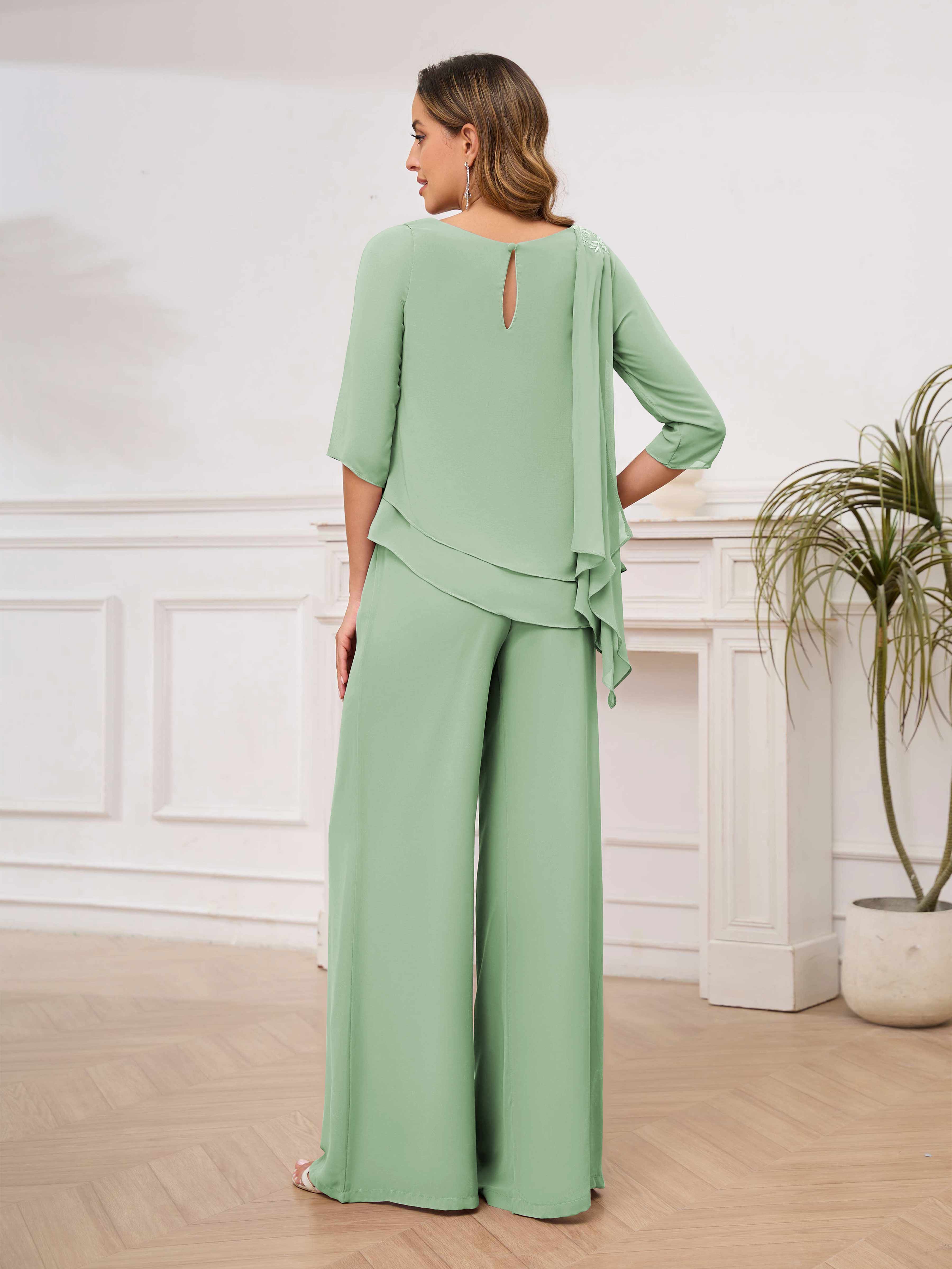 Lilian Modern 3/4 Sleeves Appliques Mother of the Bride Pantsuit