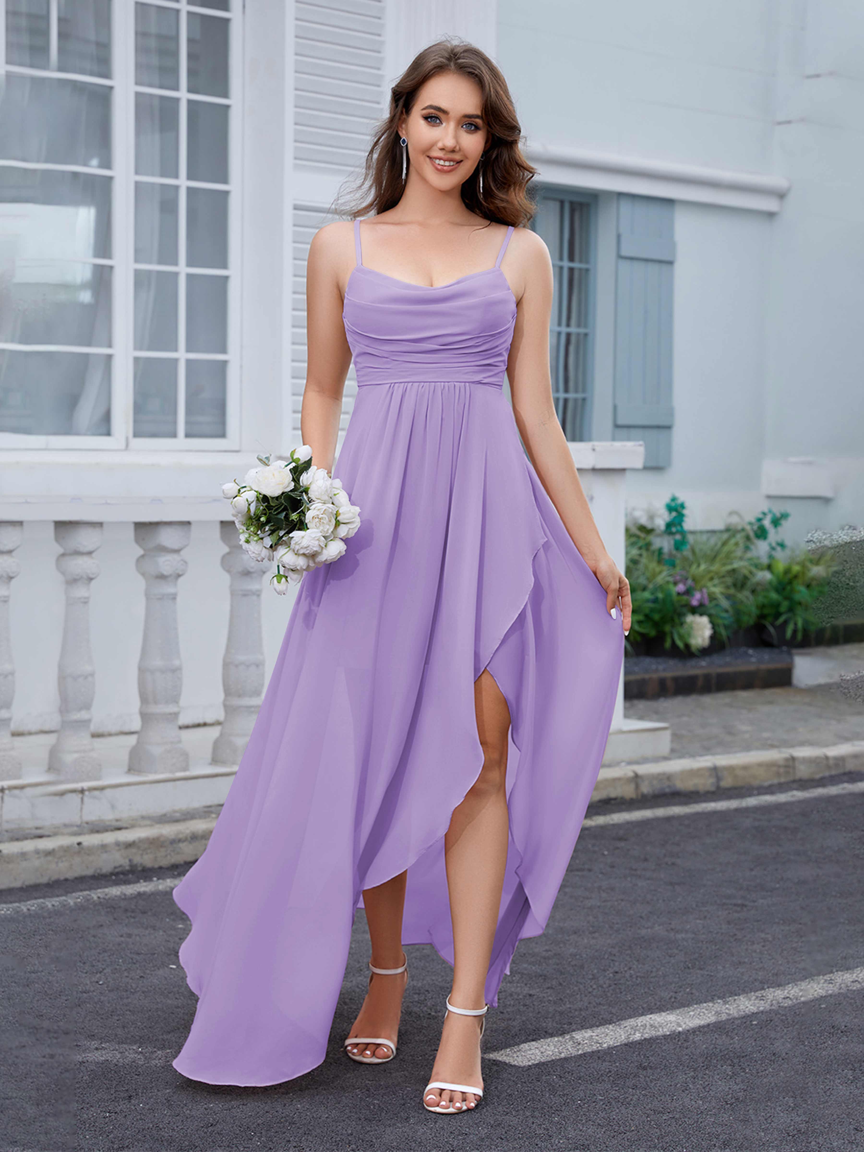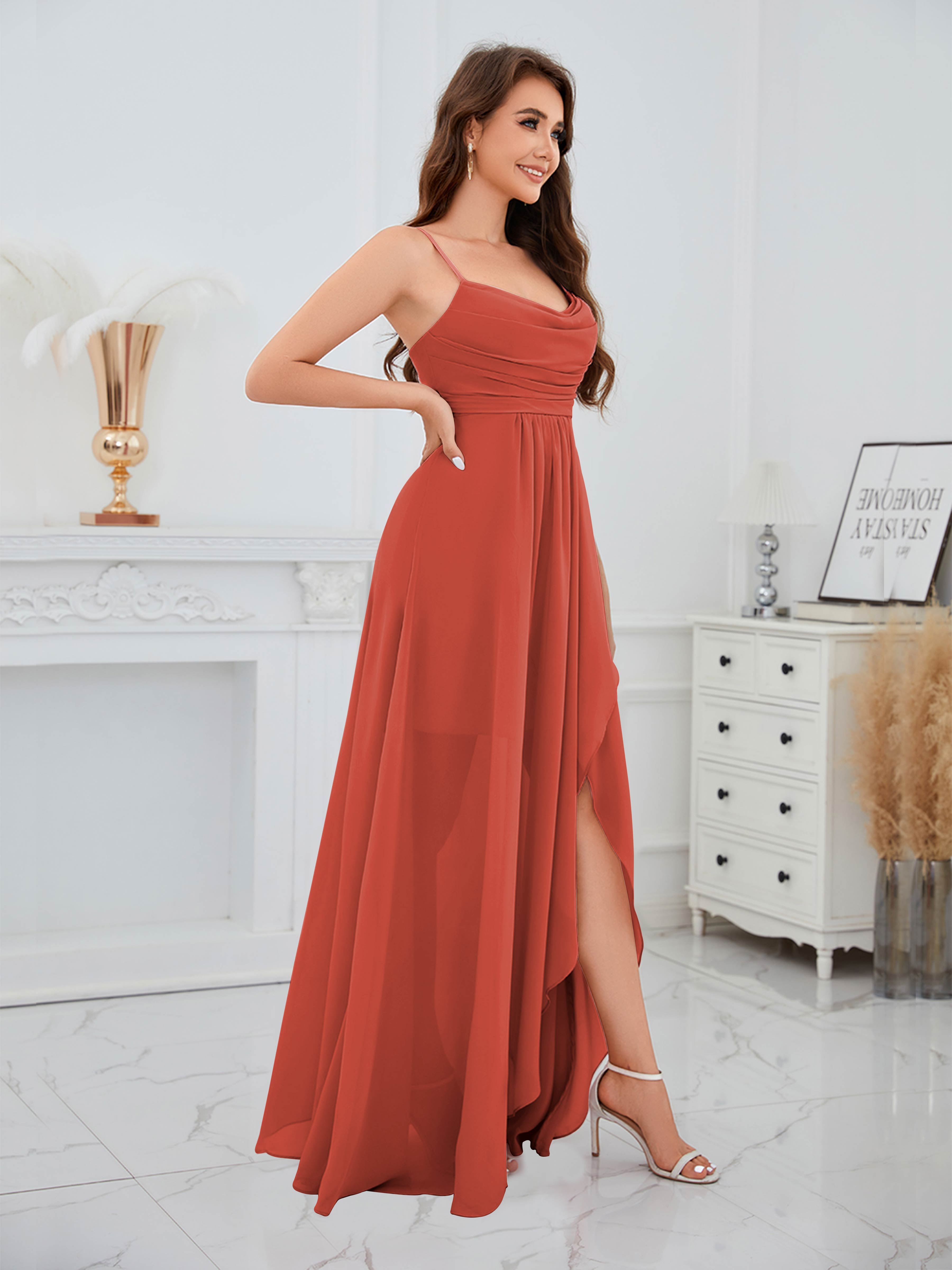Enhance your special day with our Madelynn Graceful Cowl Pleated Chiffon Bridesmaid Dresses. The elegant cowl neckline, pleated design, and flowing chiffon material create a graceful and sophisticated look. Elevate your bridal party with this timeless and versatile dress.