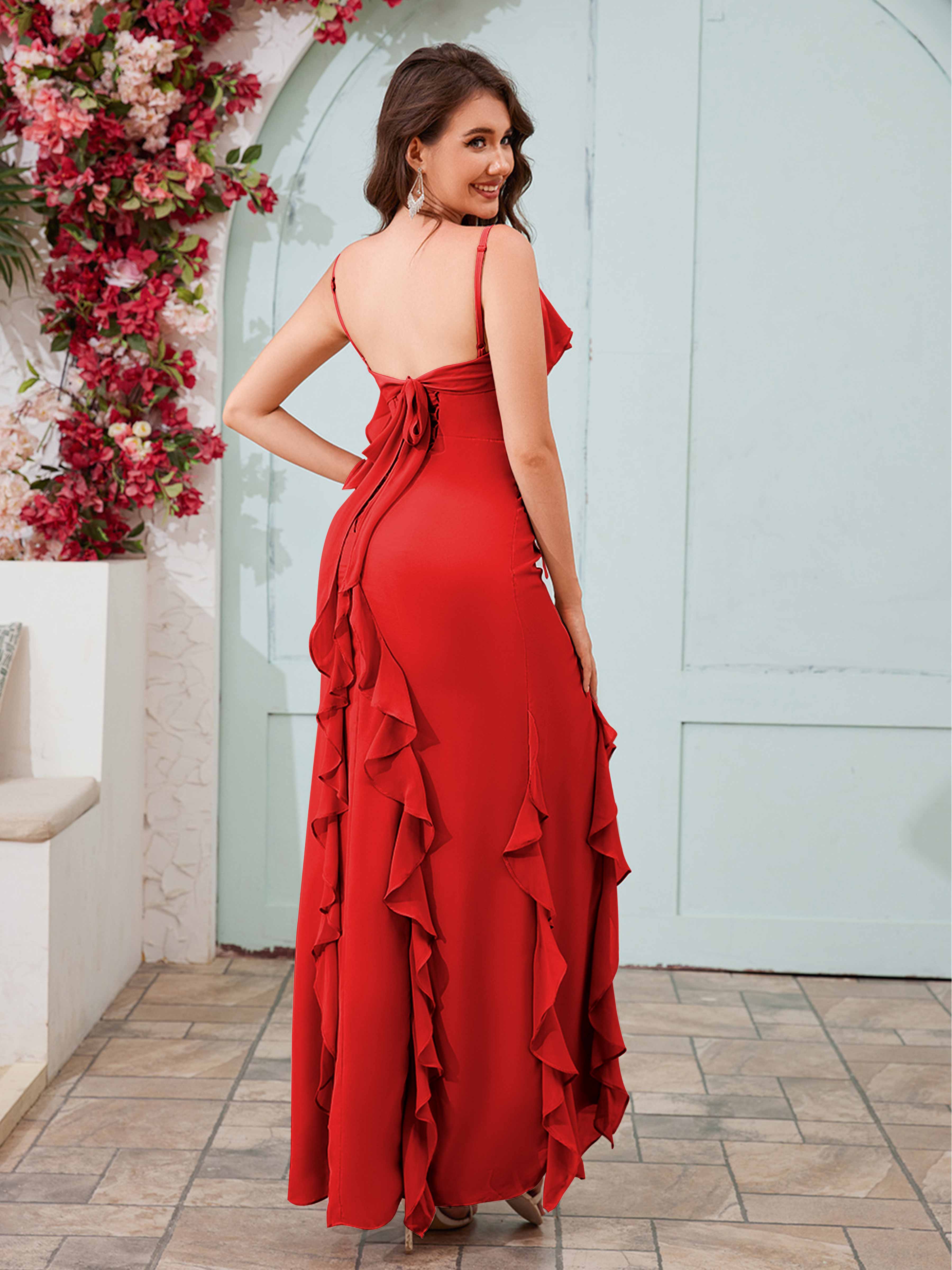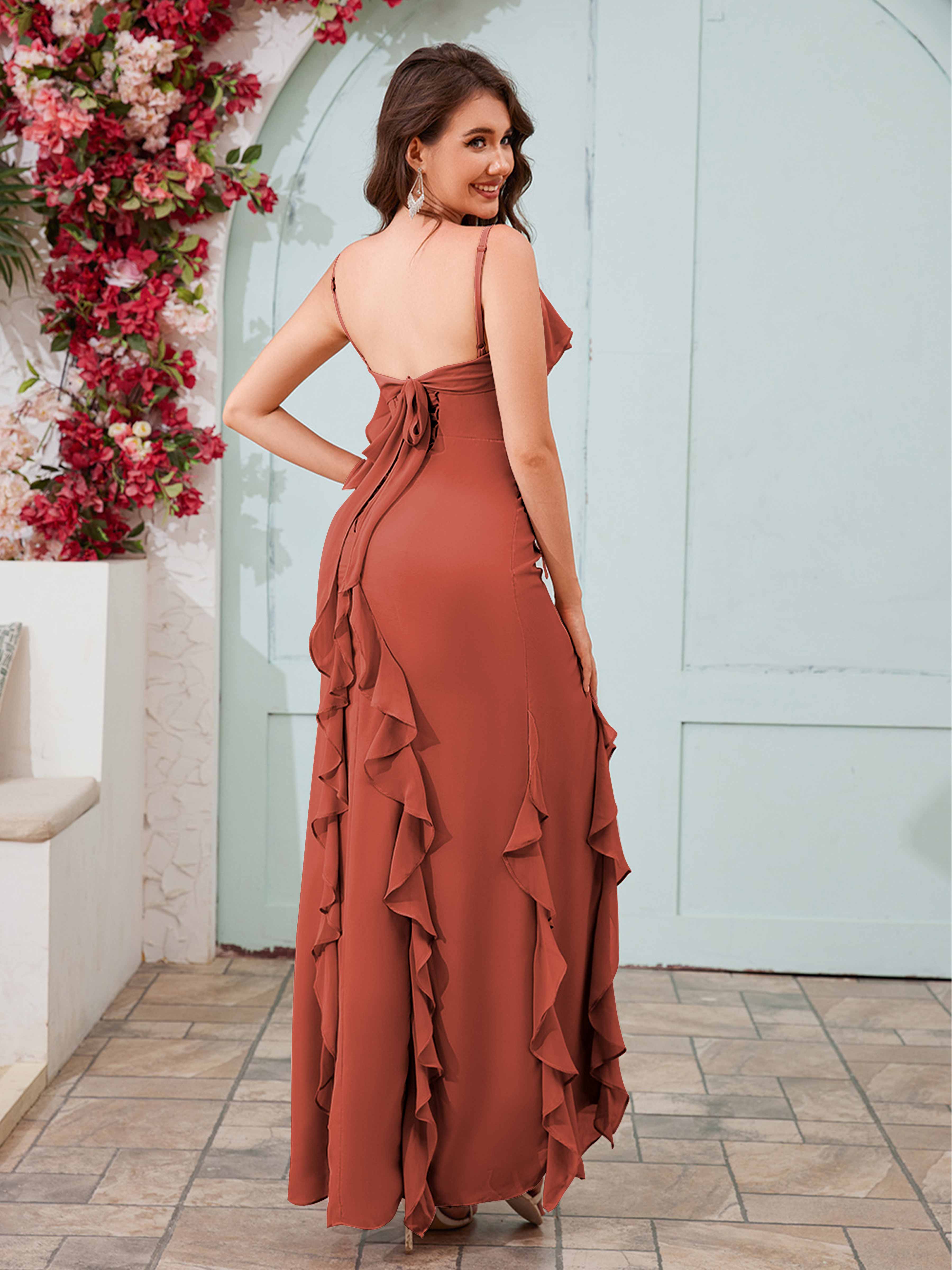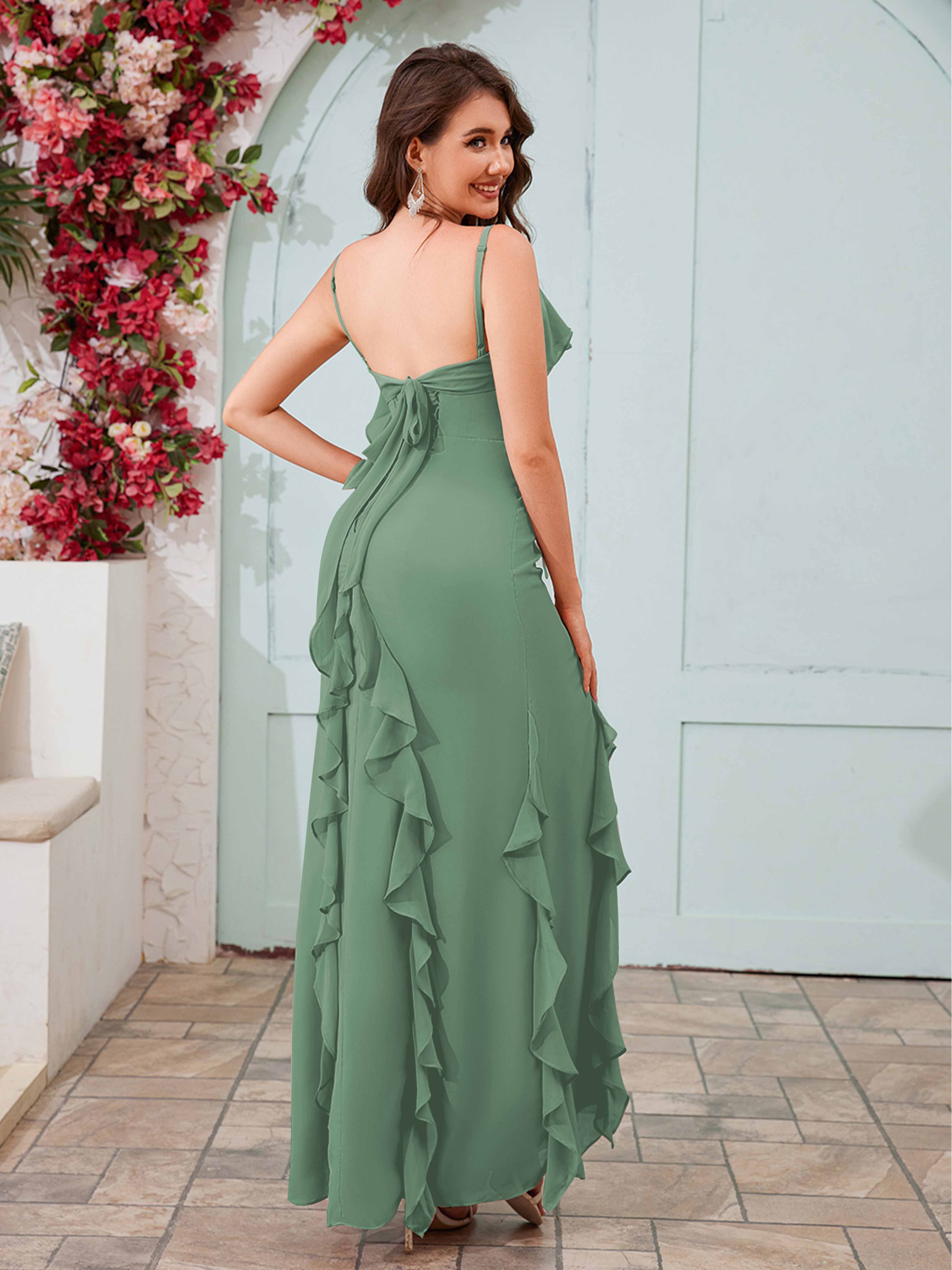 Maia Unique Ruffles Bow Back Maxi Chiffon Bridesmaid Dresses