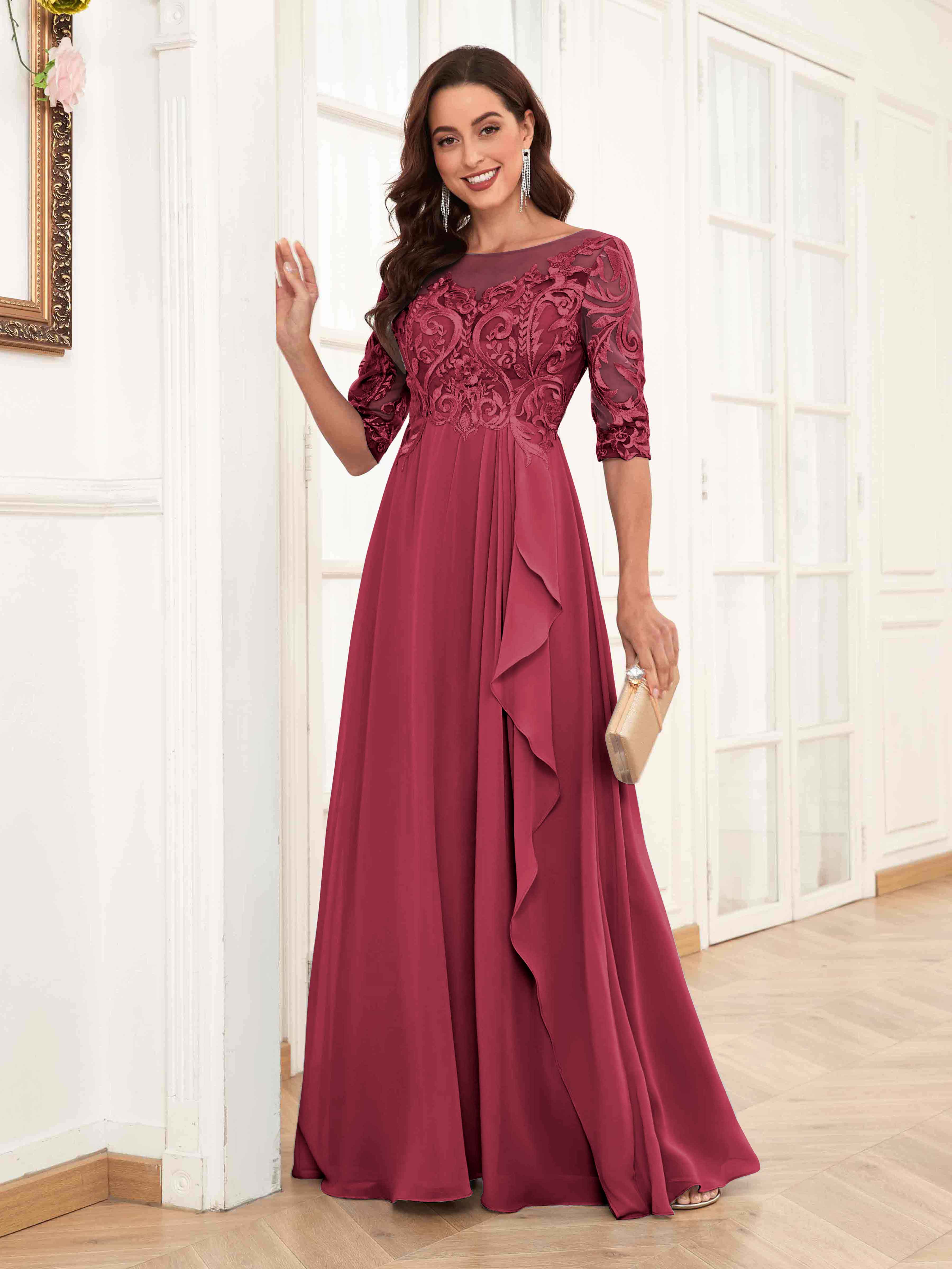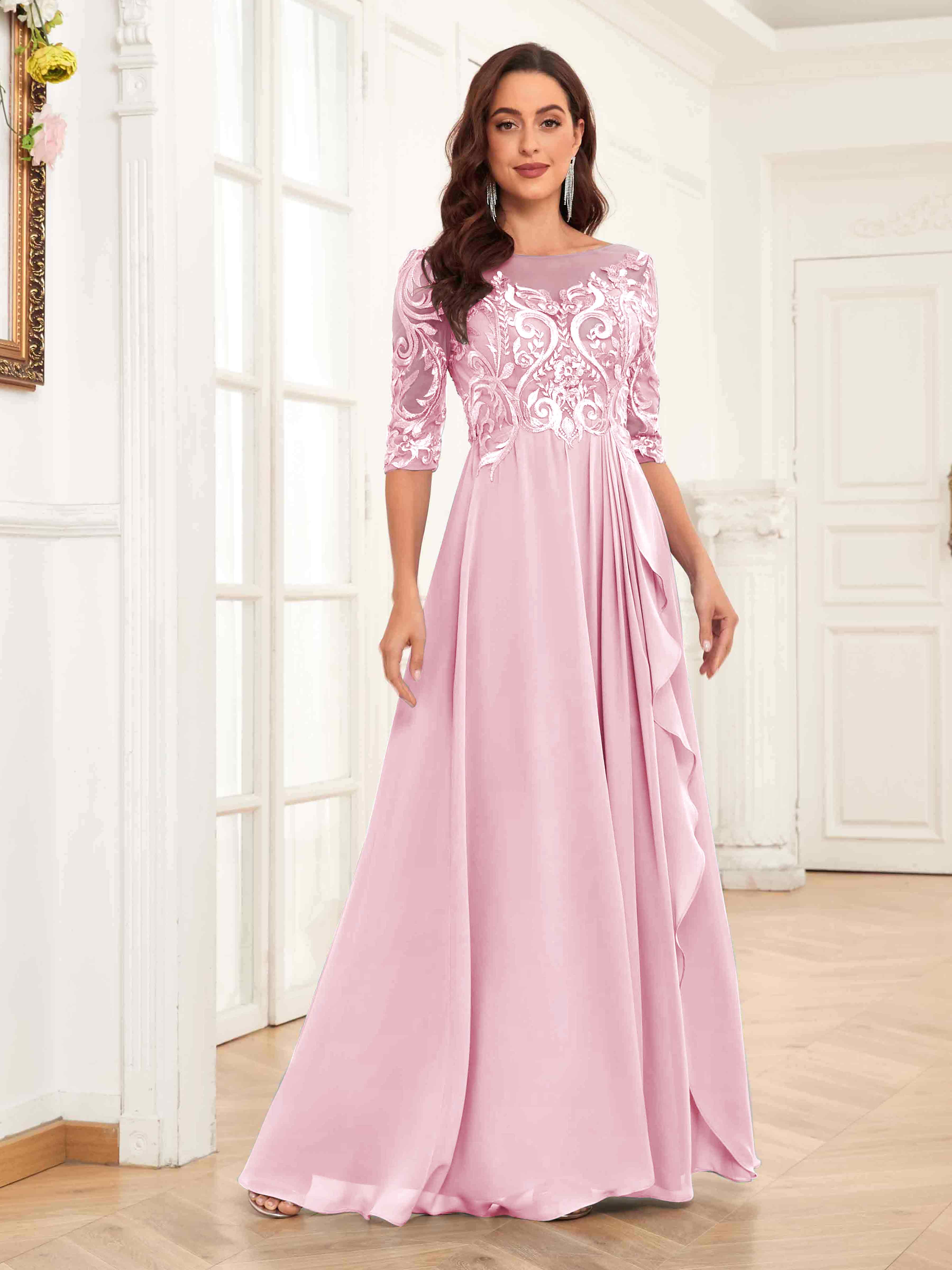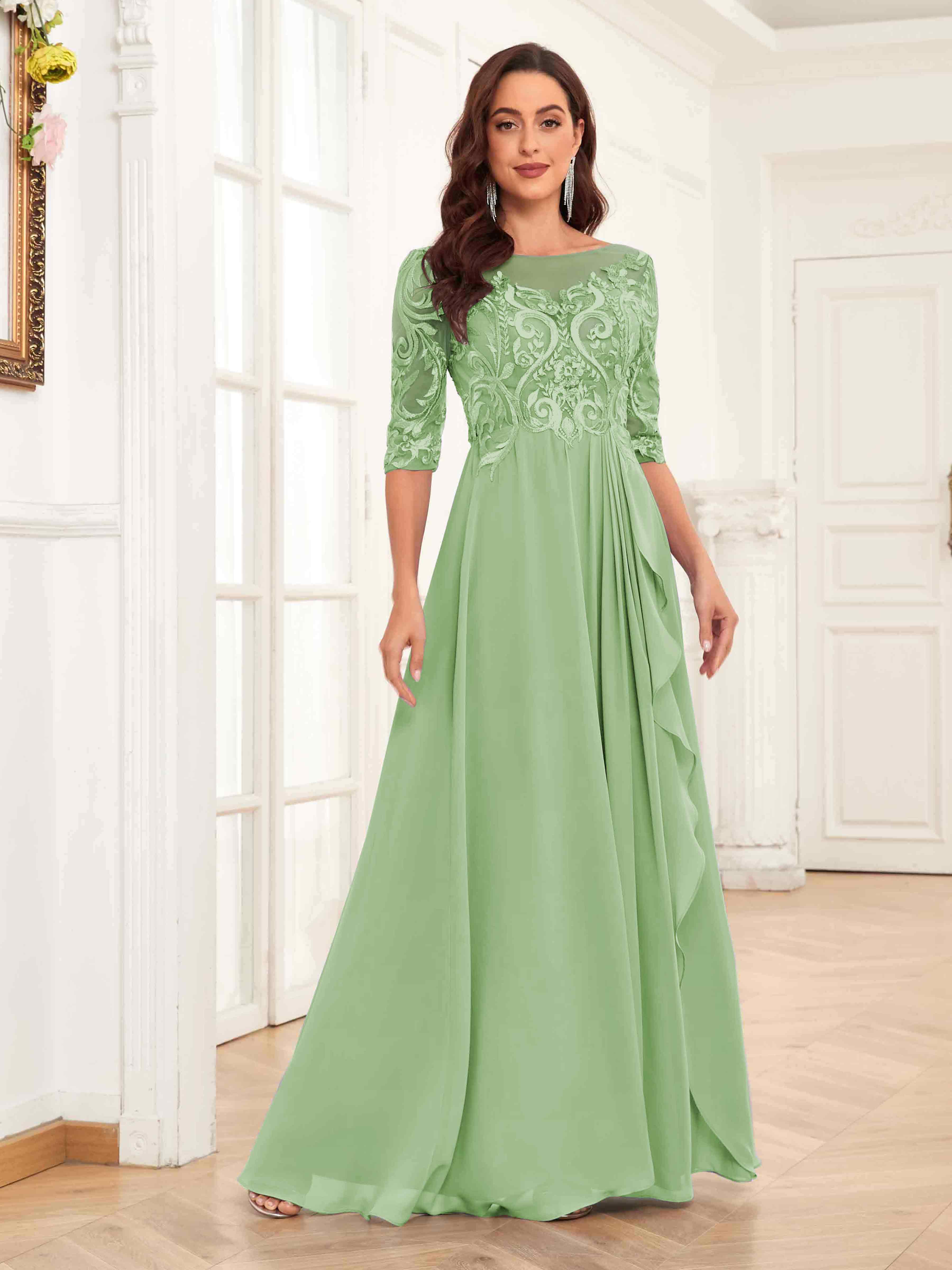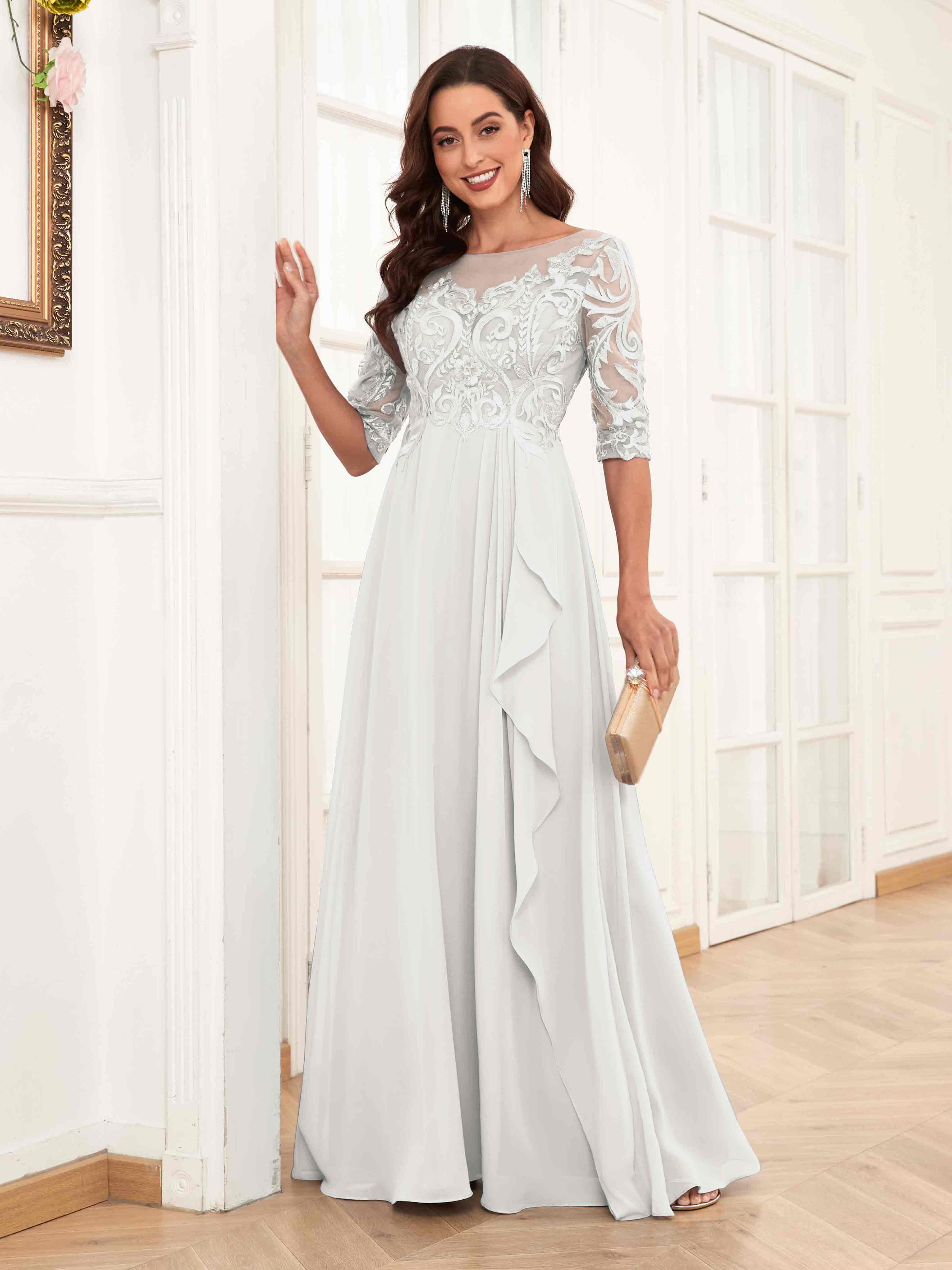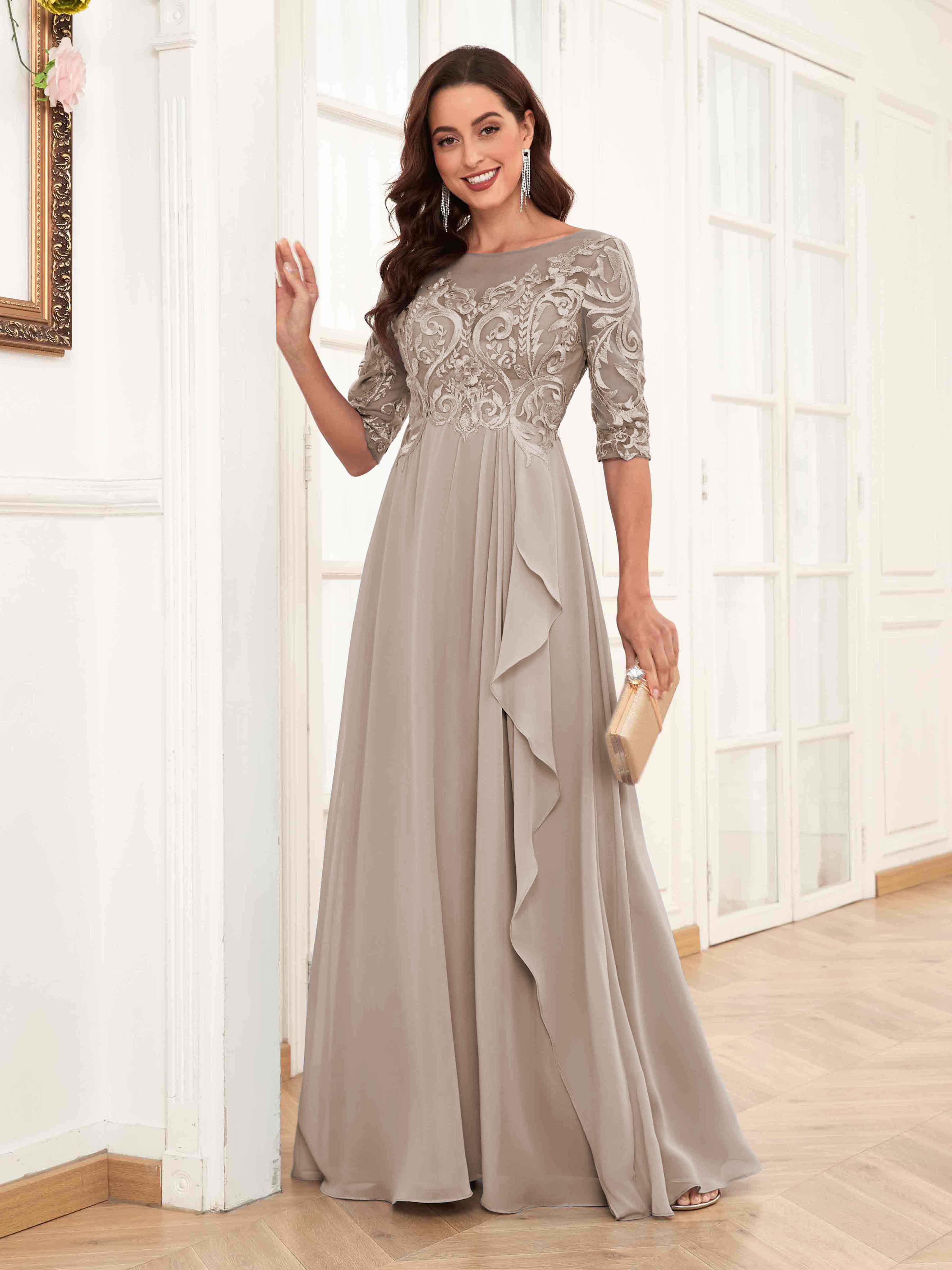 Malia Chic Illusion Half Sleeves Appliques Chiffon Mother of the Bride Groom Dresses