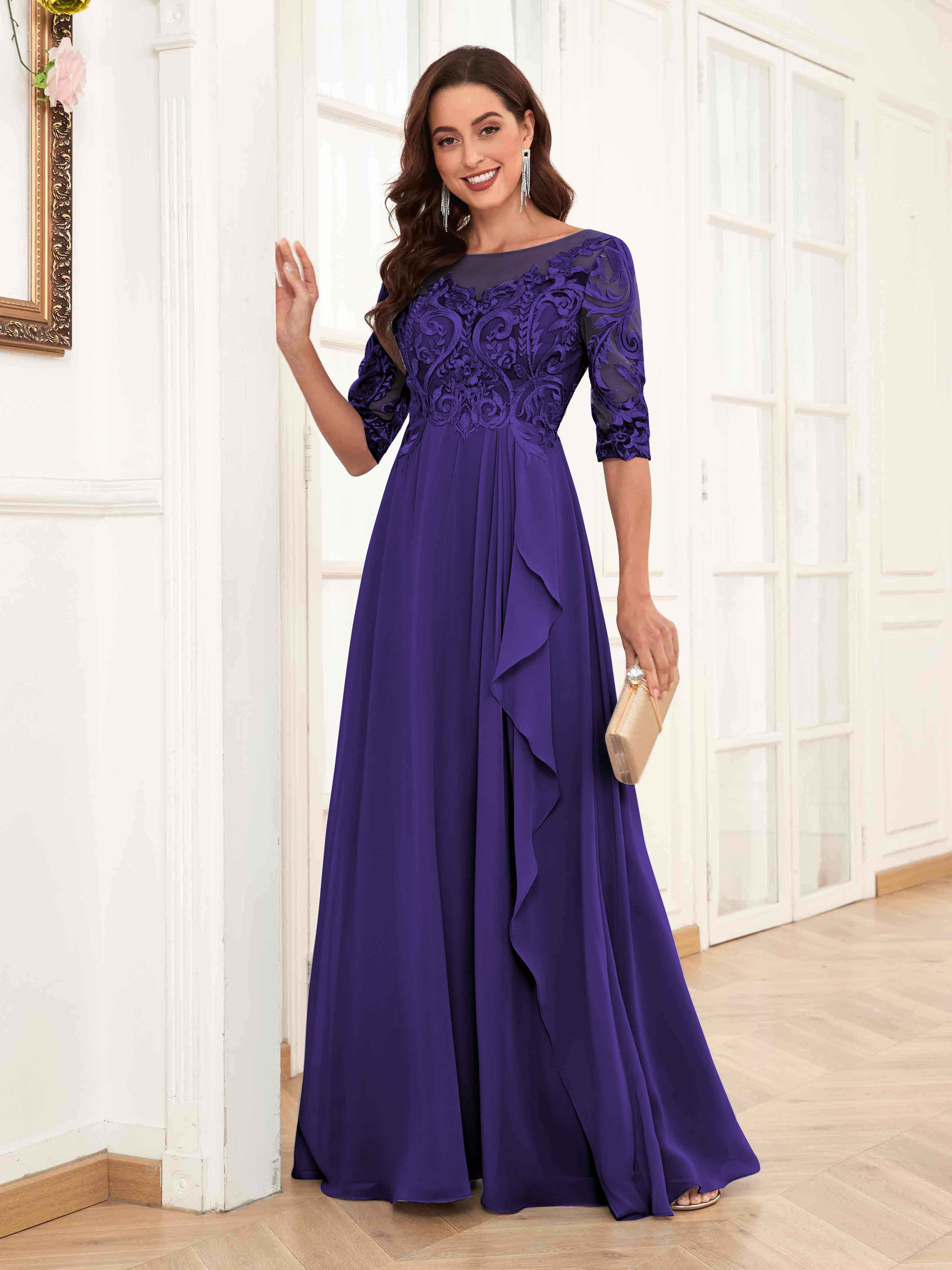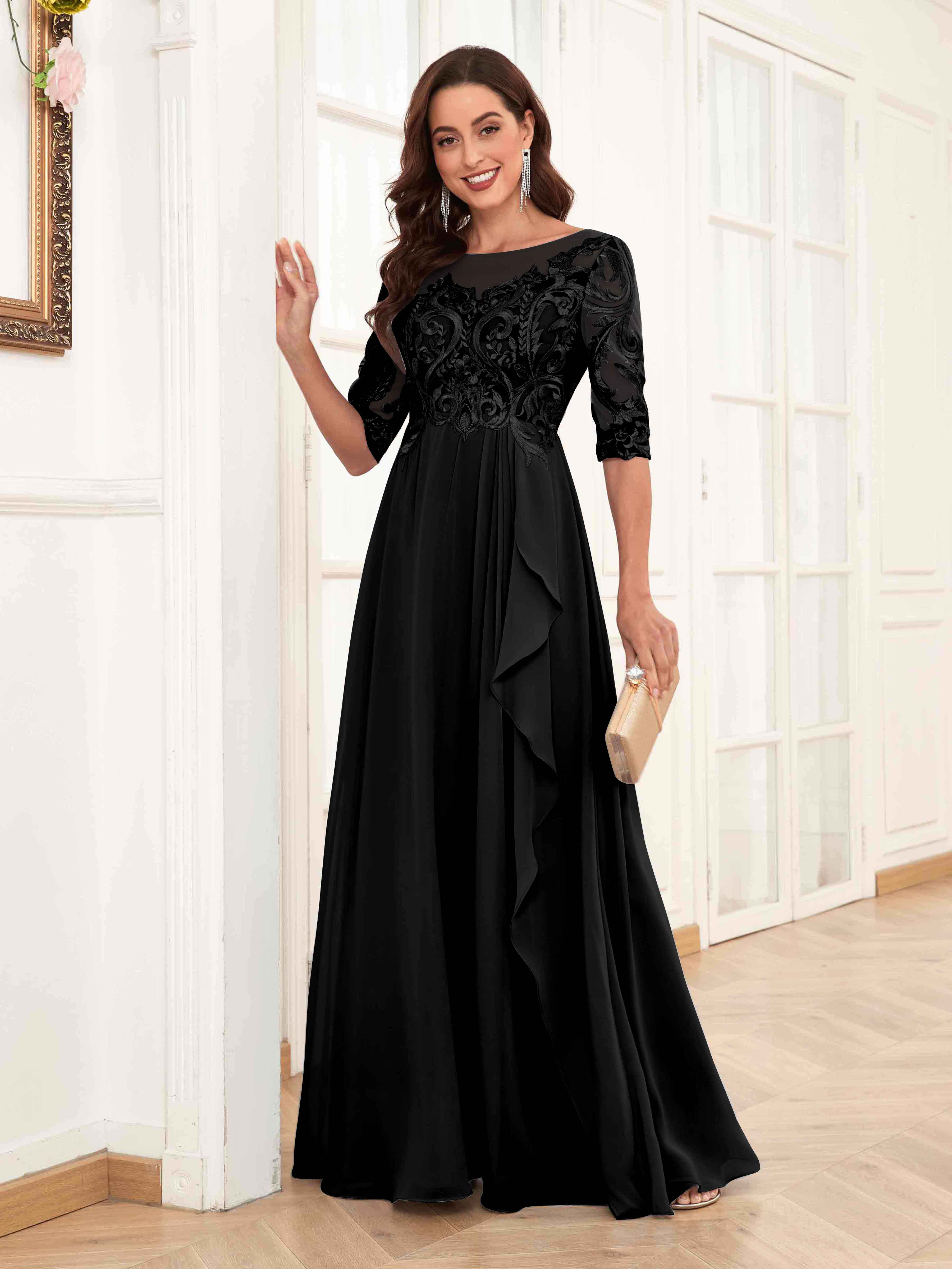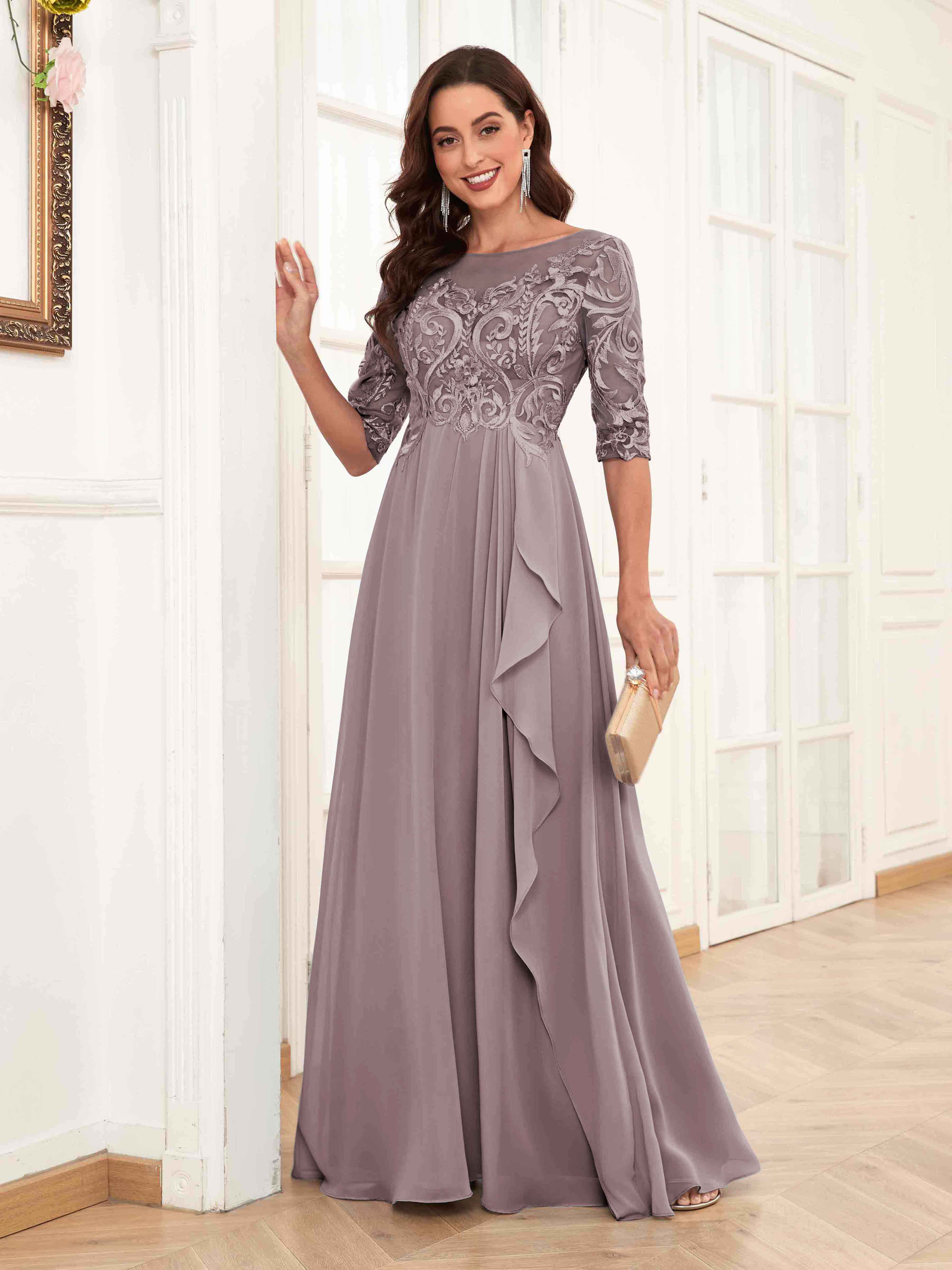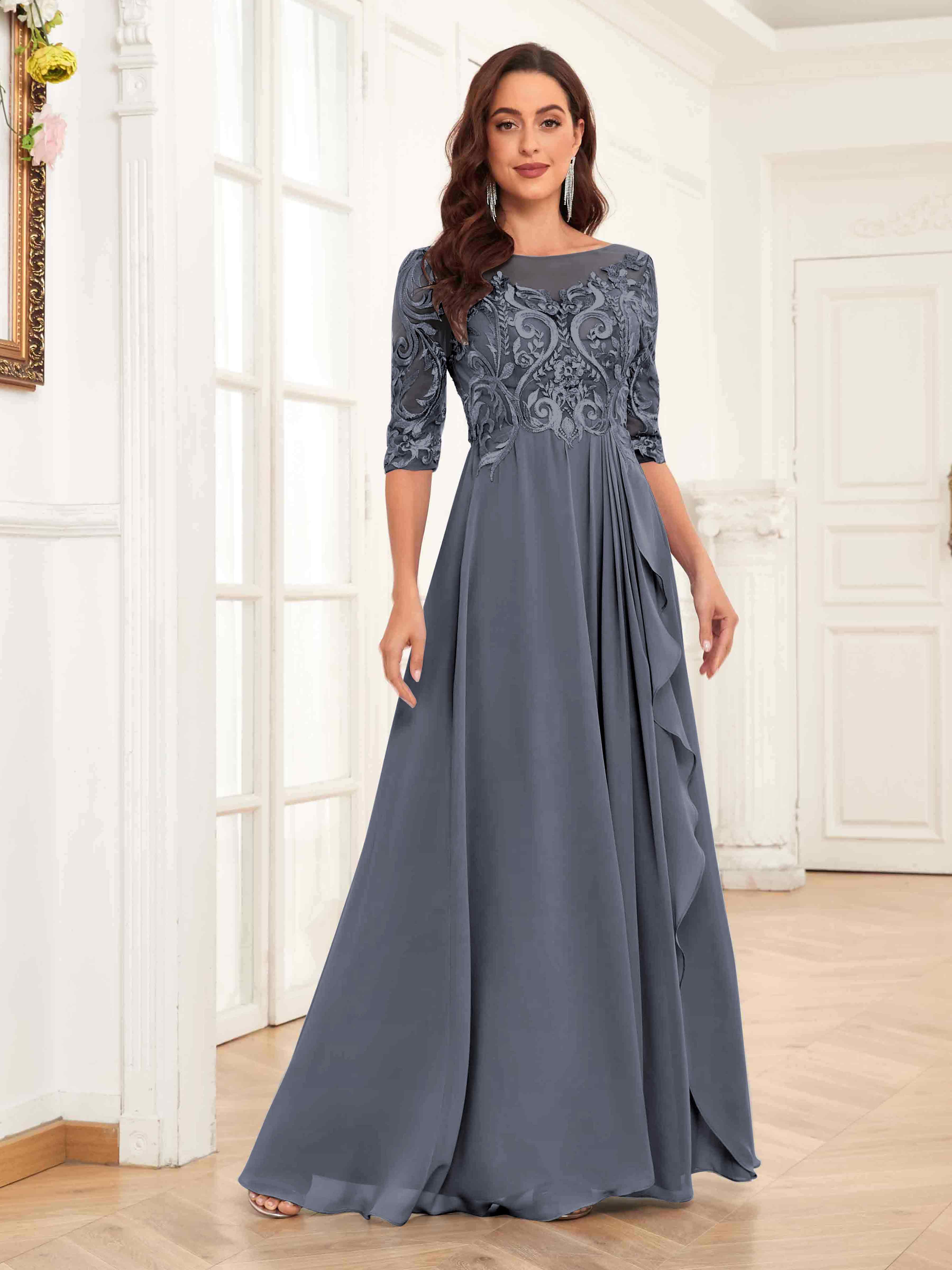 Malia Chic Illusion Half Sleeves Appliques Chiffon Mother of the Bride Groom Dresses