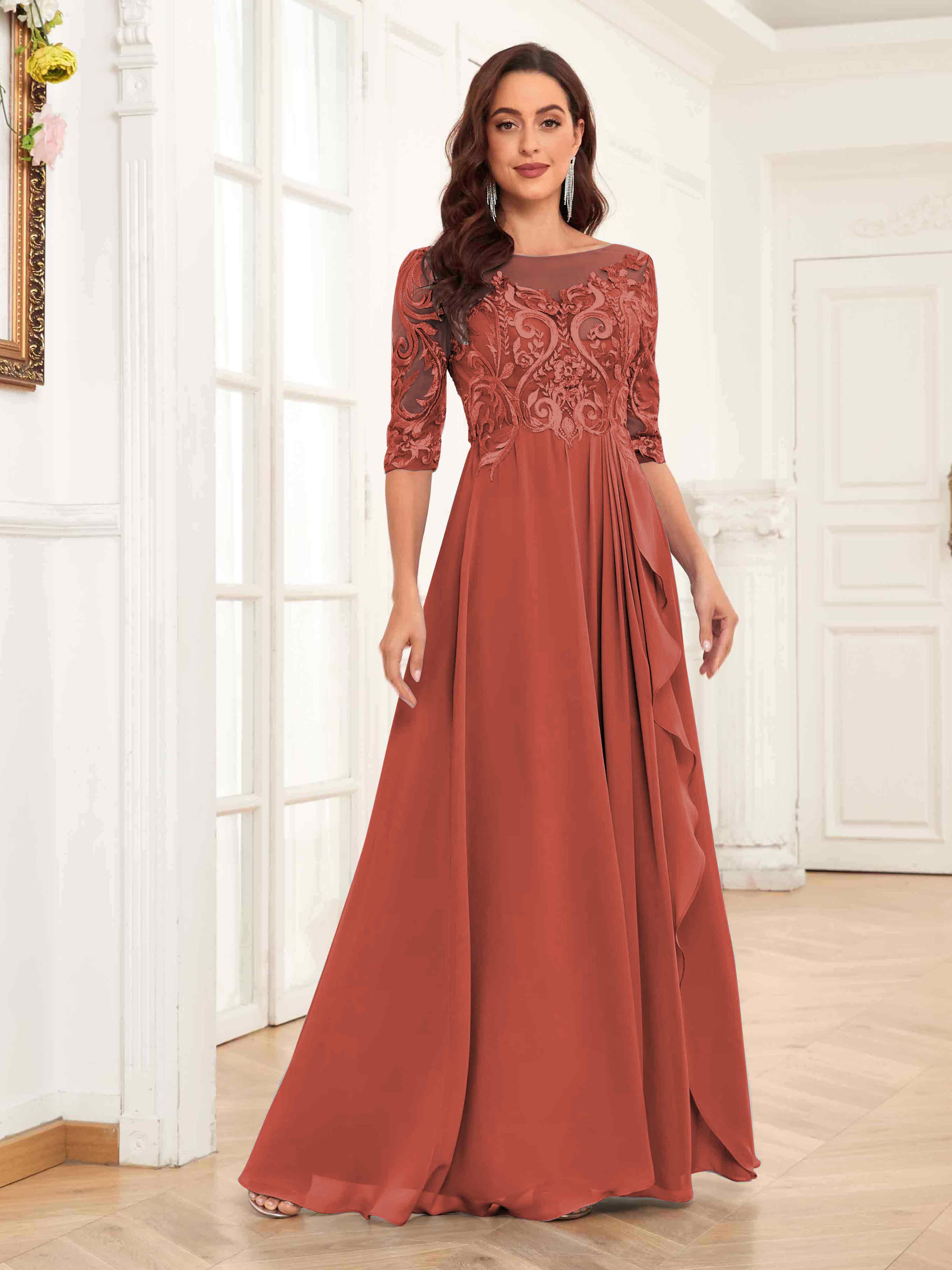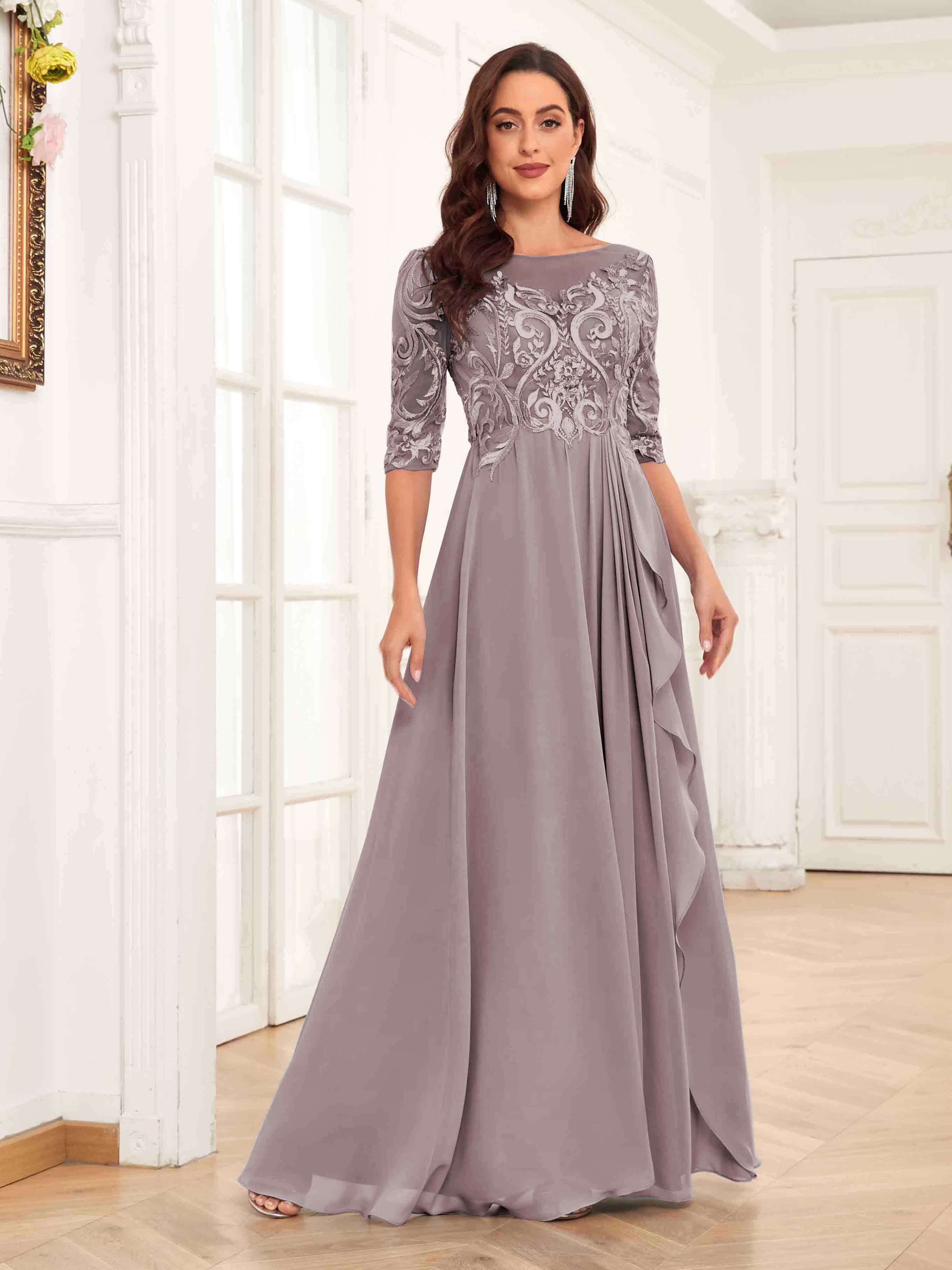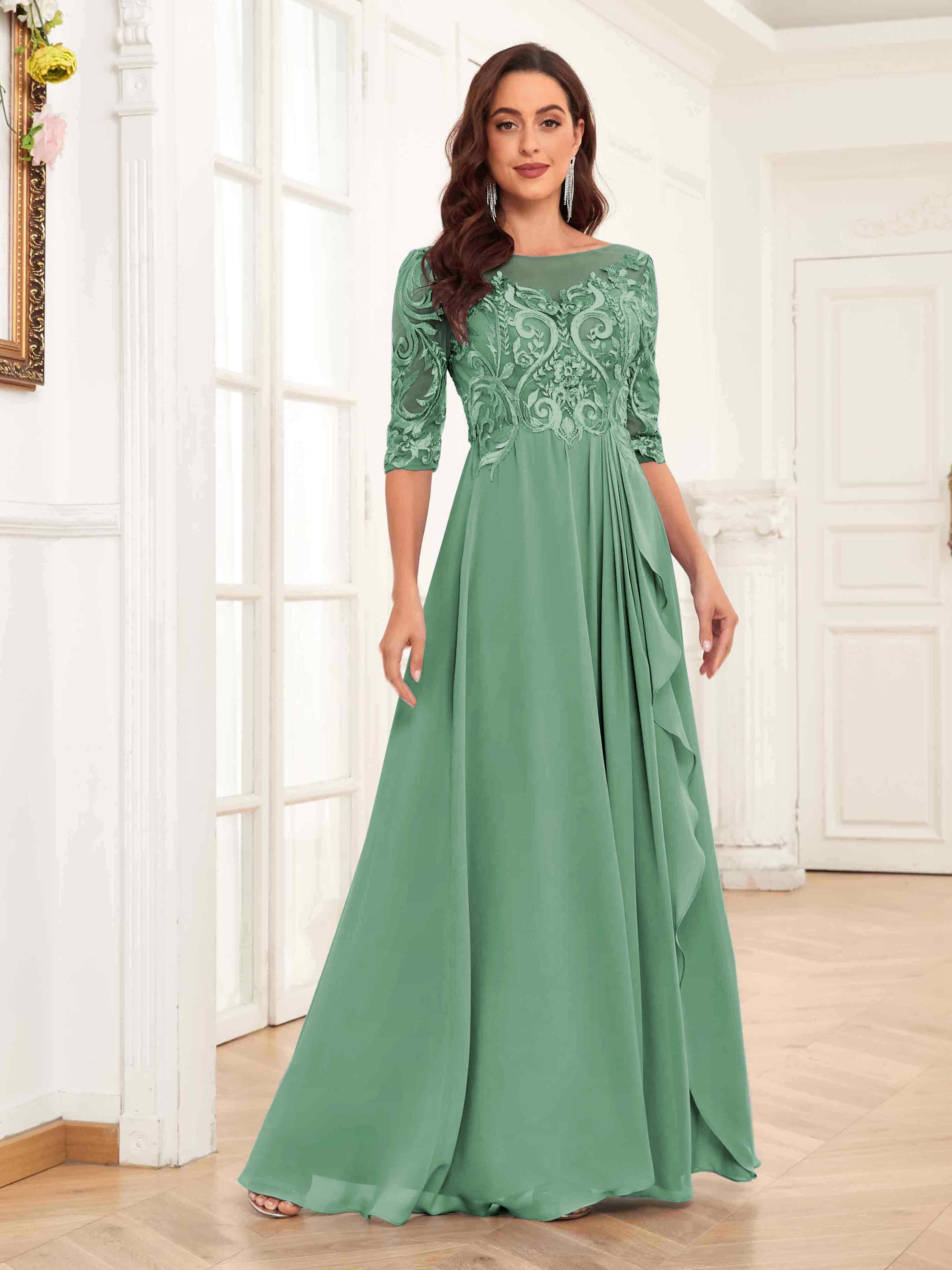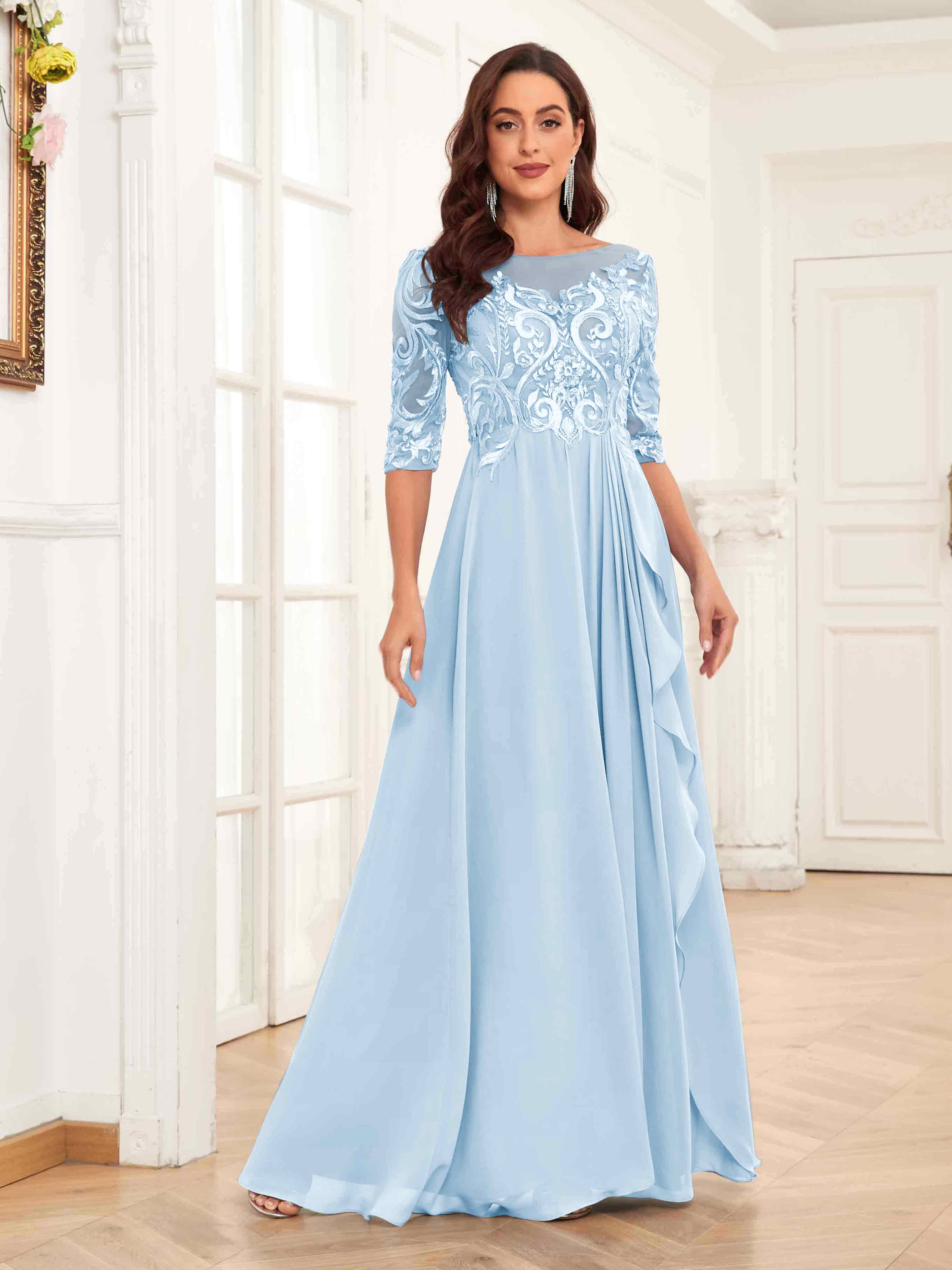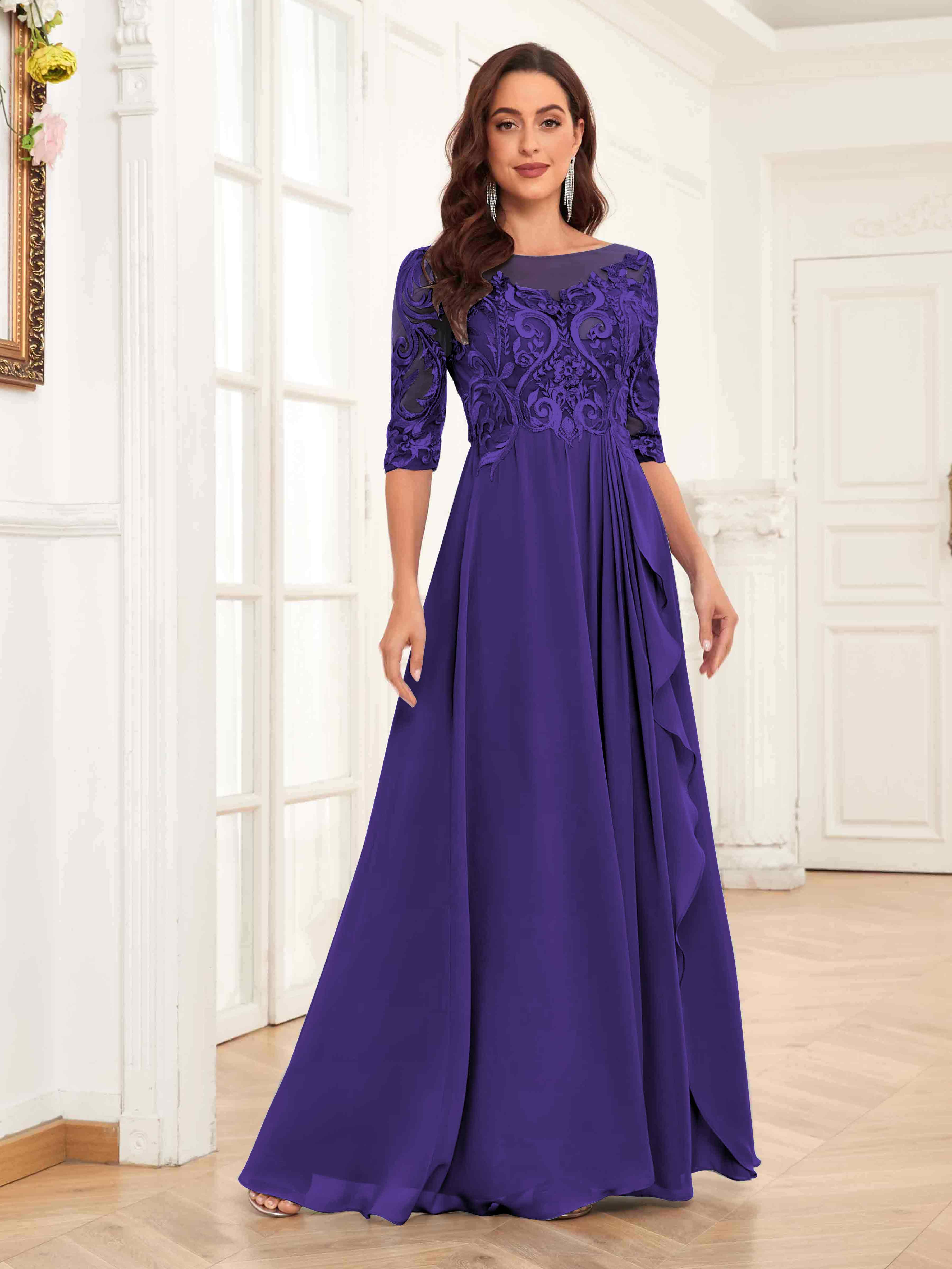 Malia Chic Illusion Half Sleeves Appliques Chiffon Mother of the Bride Groom Dresses
