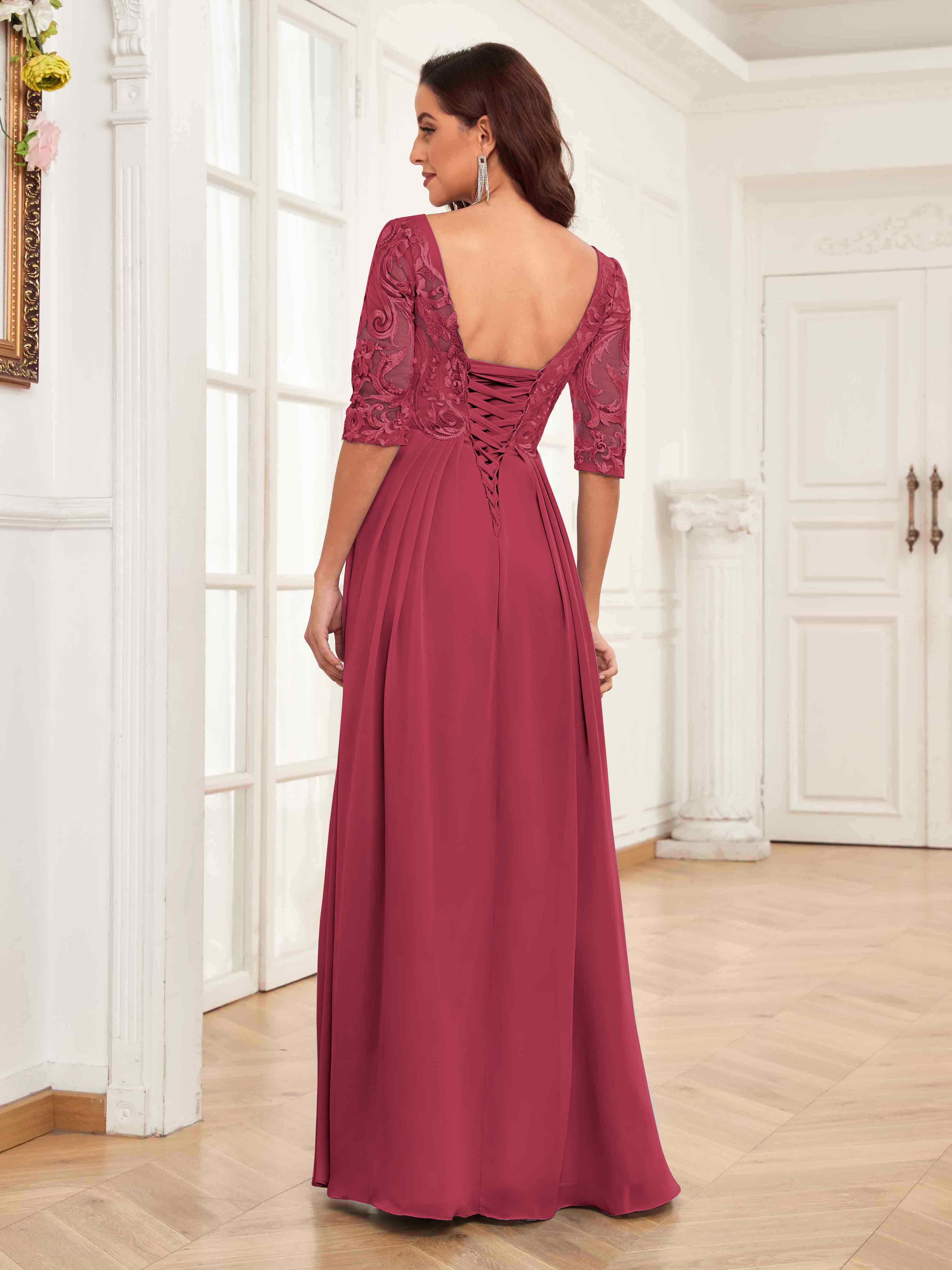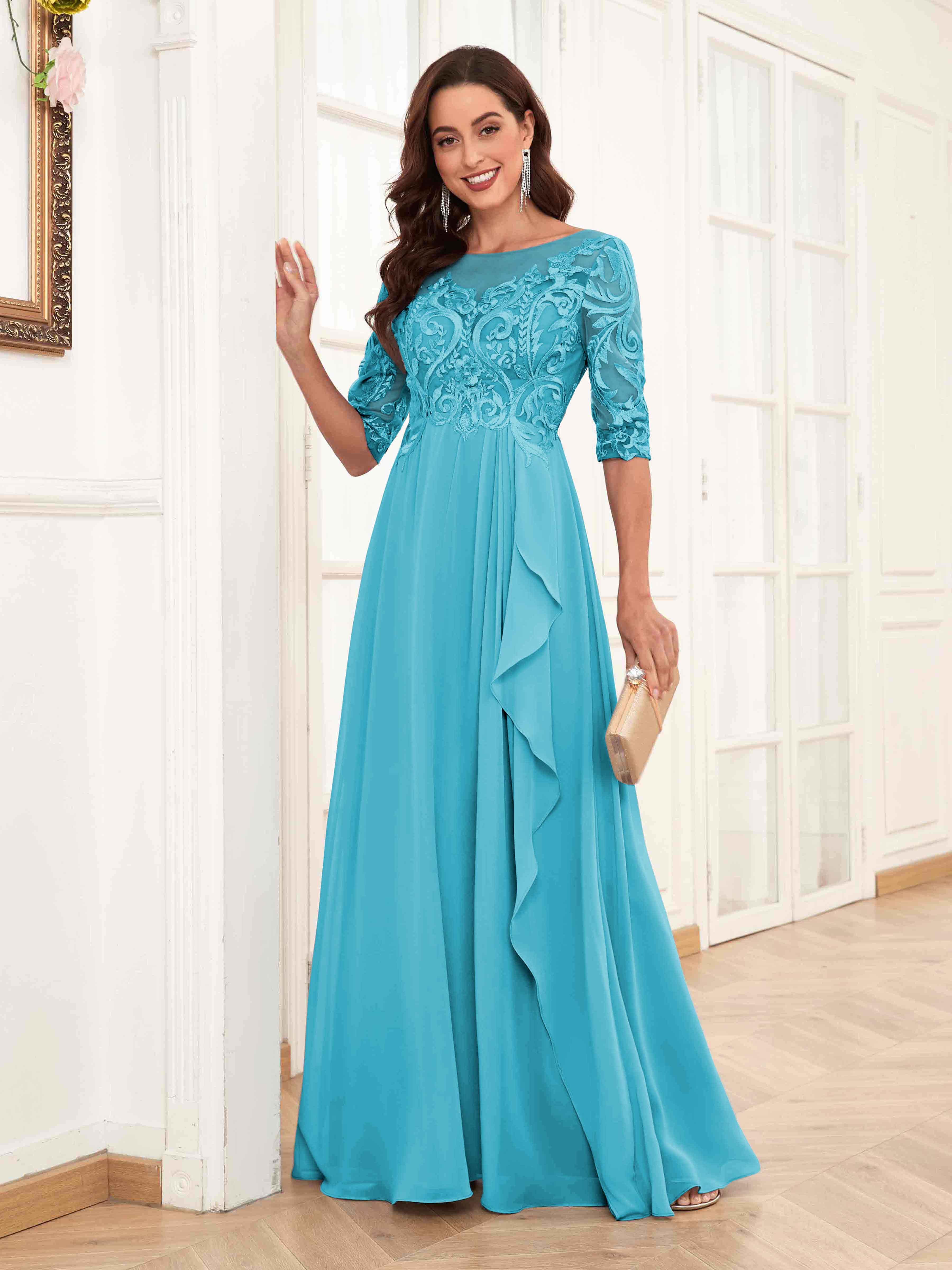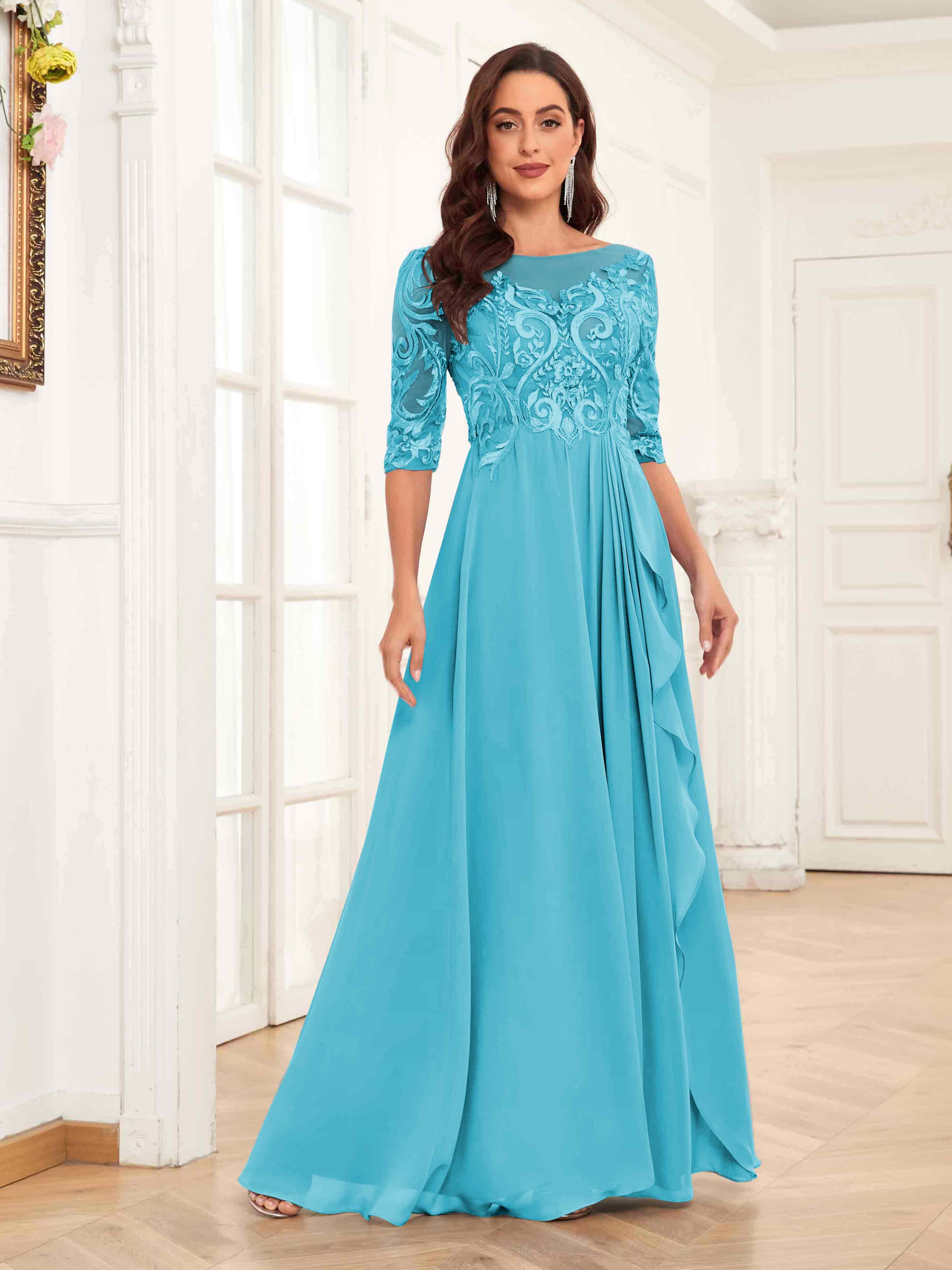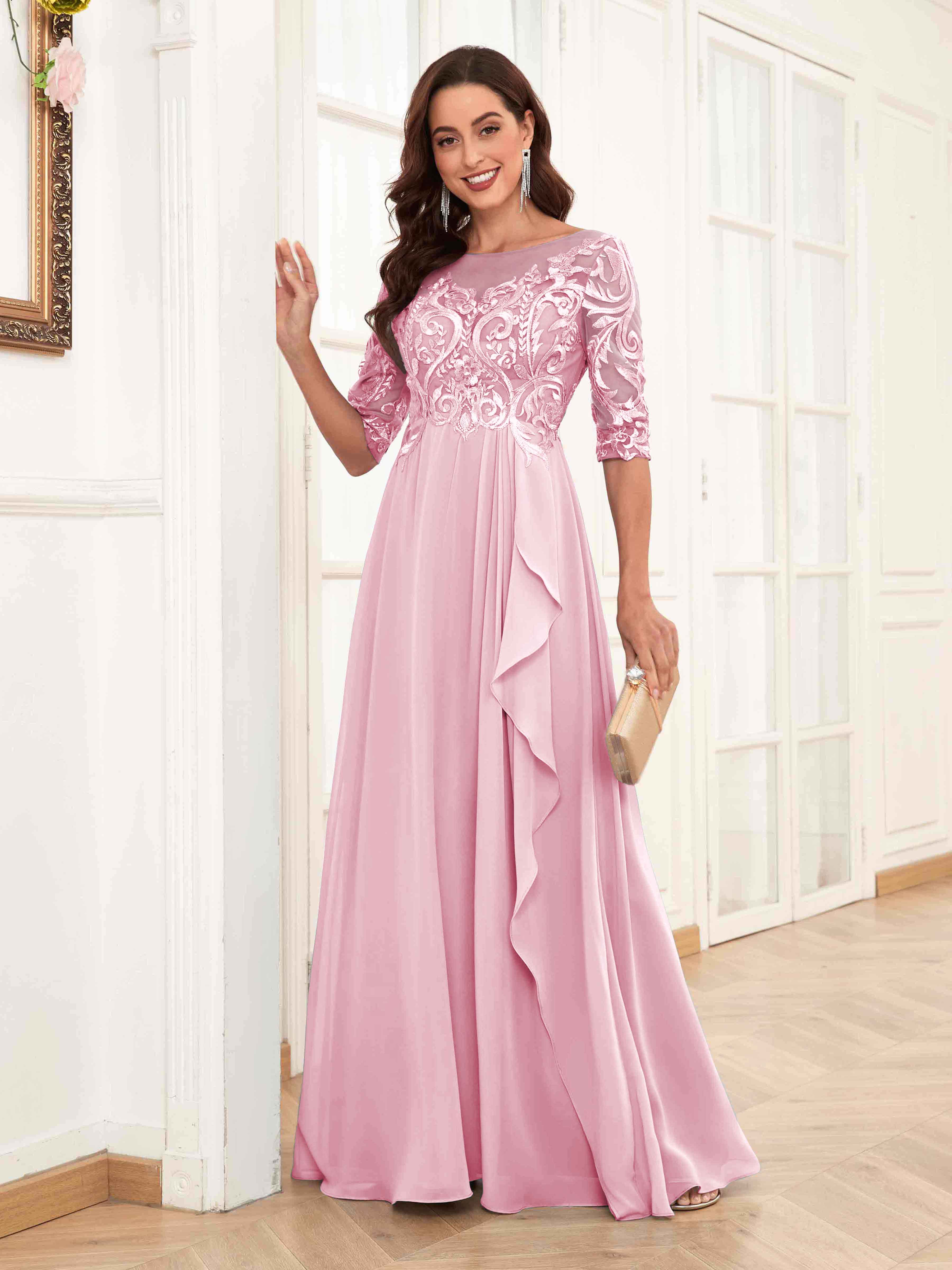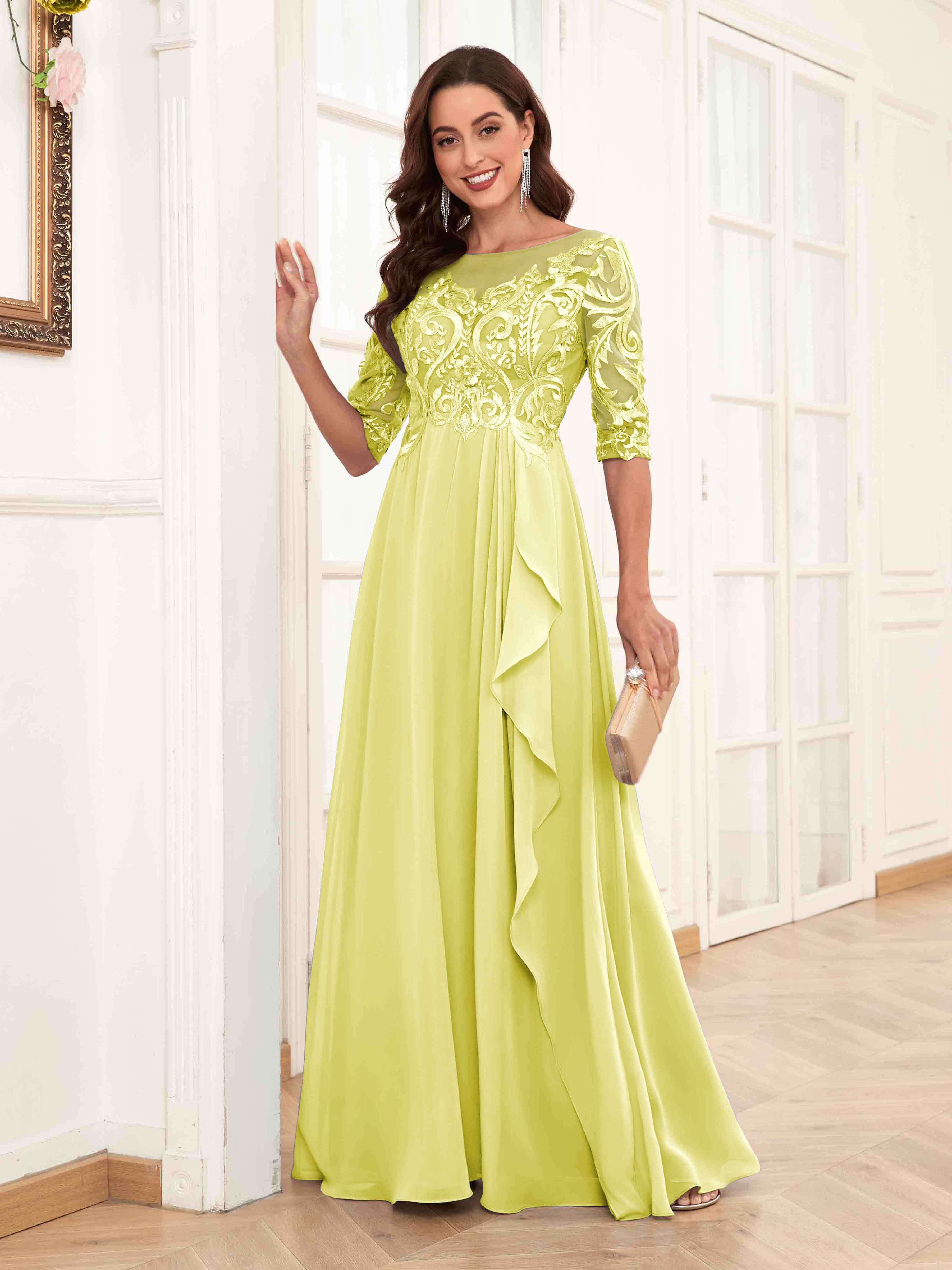 Malia Chic Illusion Half Sleeves Appliques Chiffon Mother of the Bride Groom Dresses