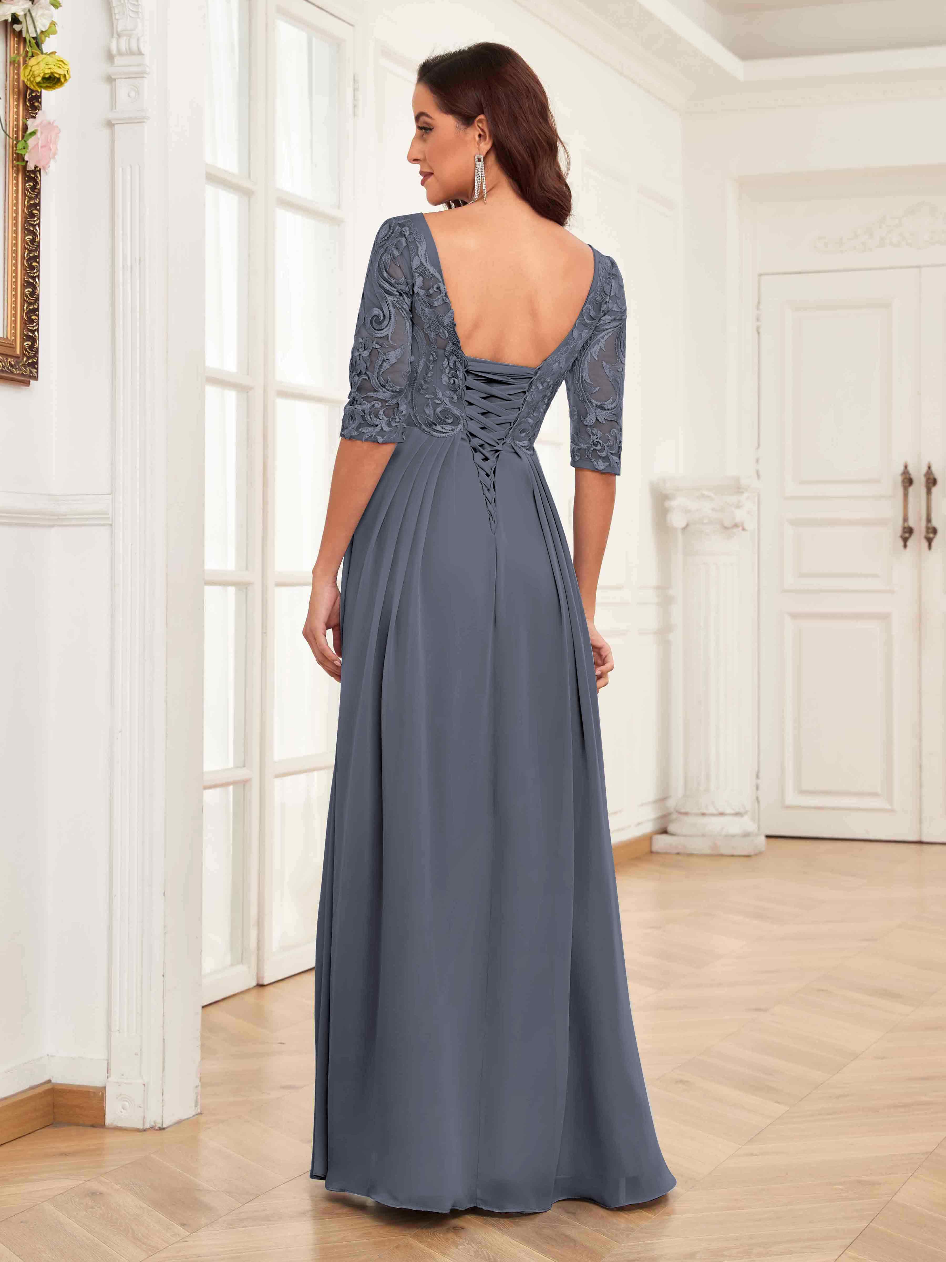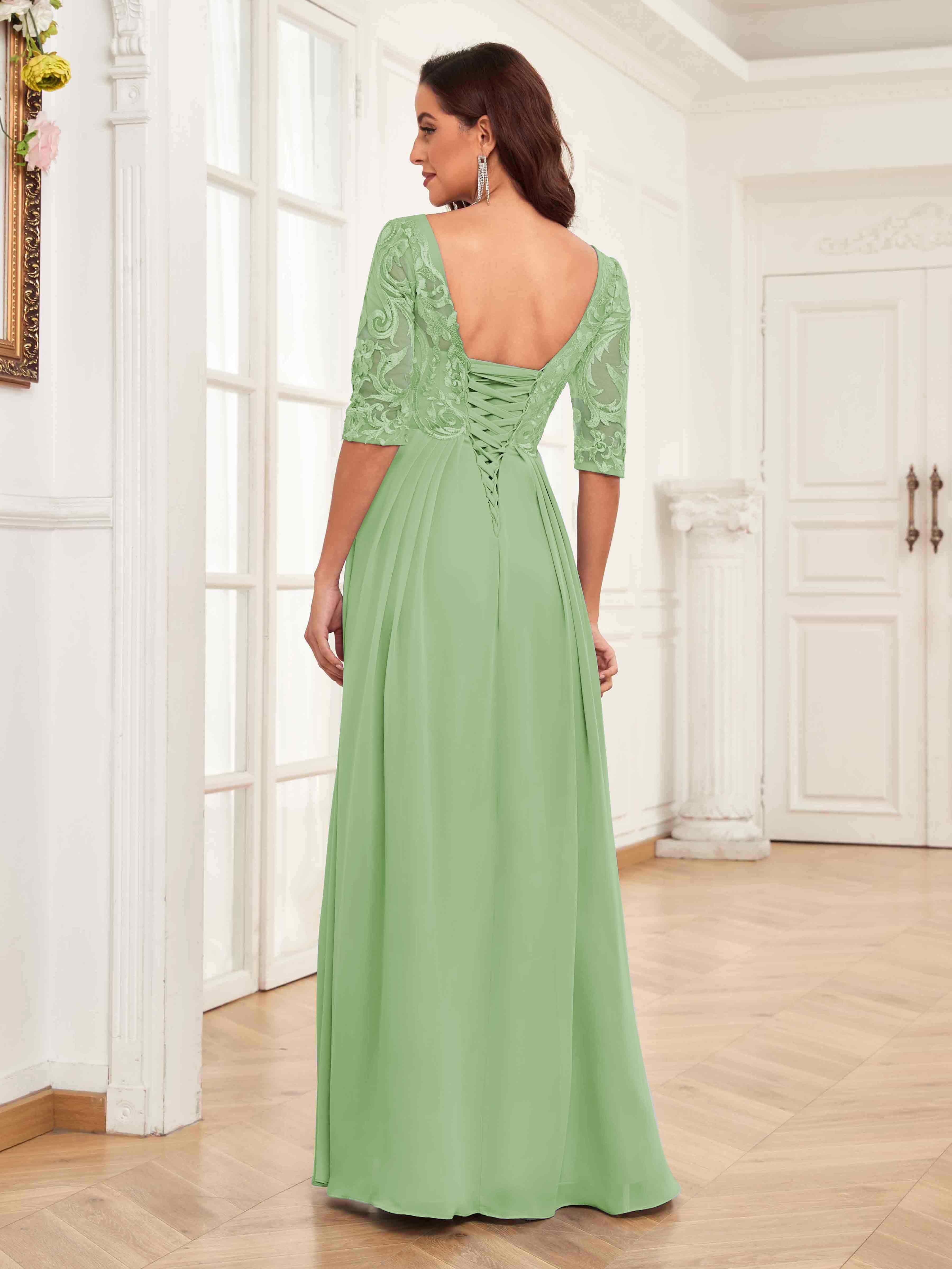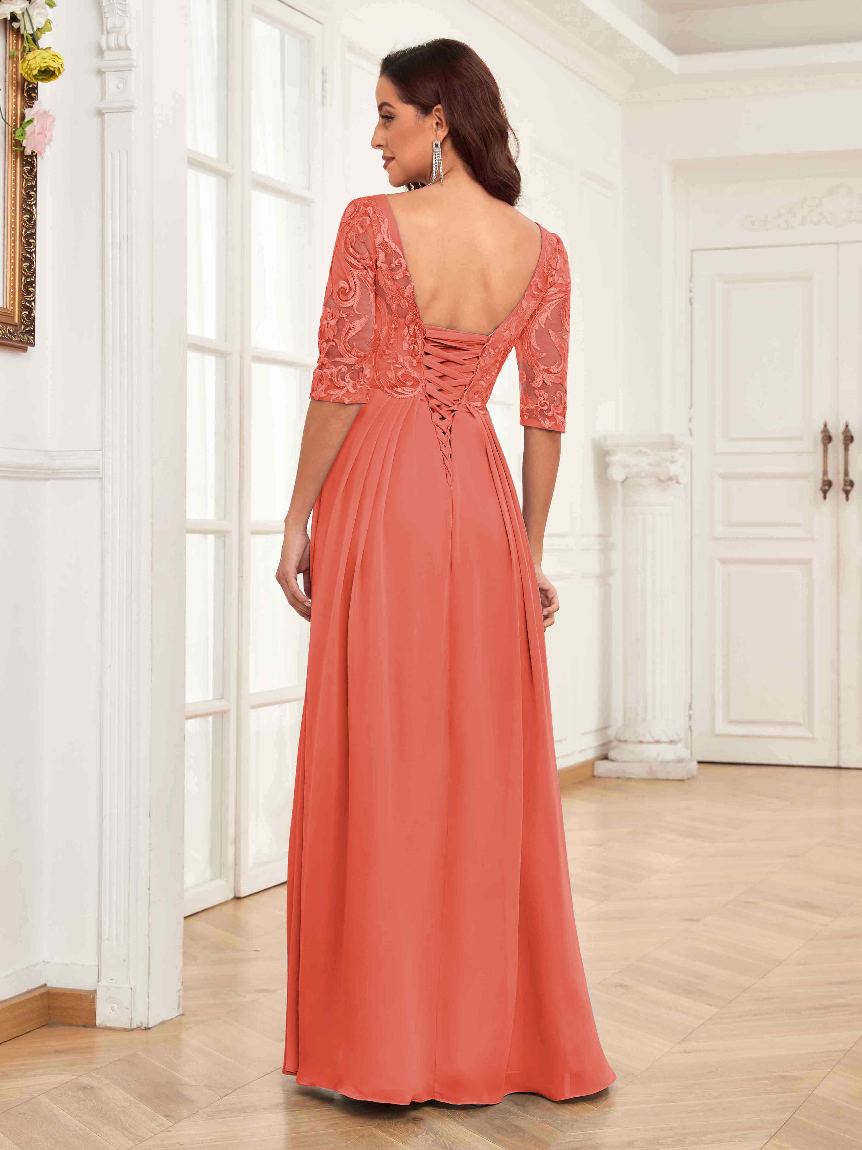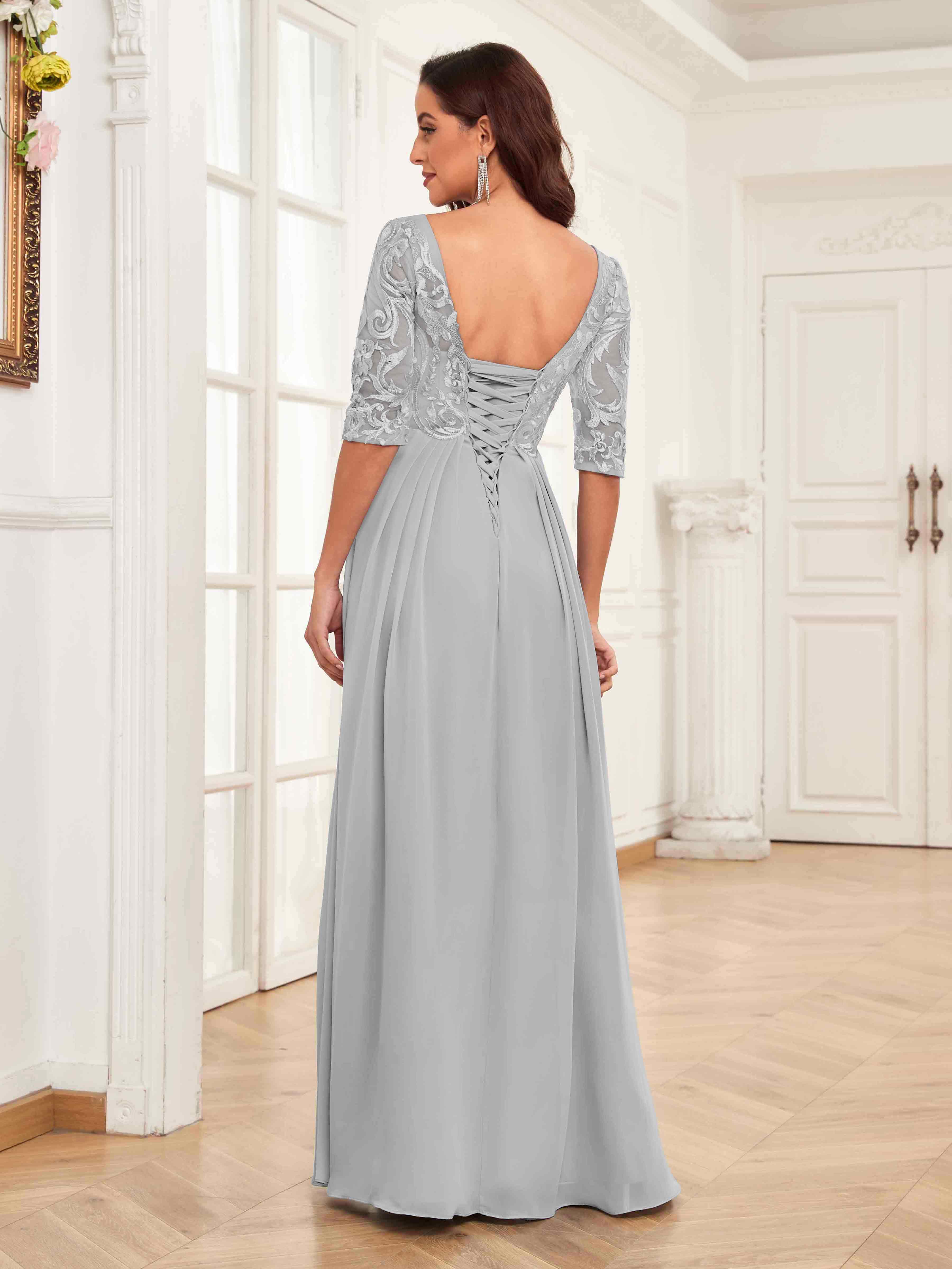 Malia Chic Illusion Half Sleeves Appliques Chiffon Mother of the Bride Groom Dresses