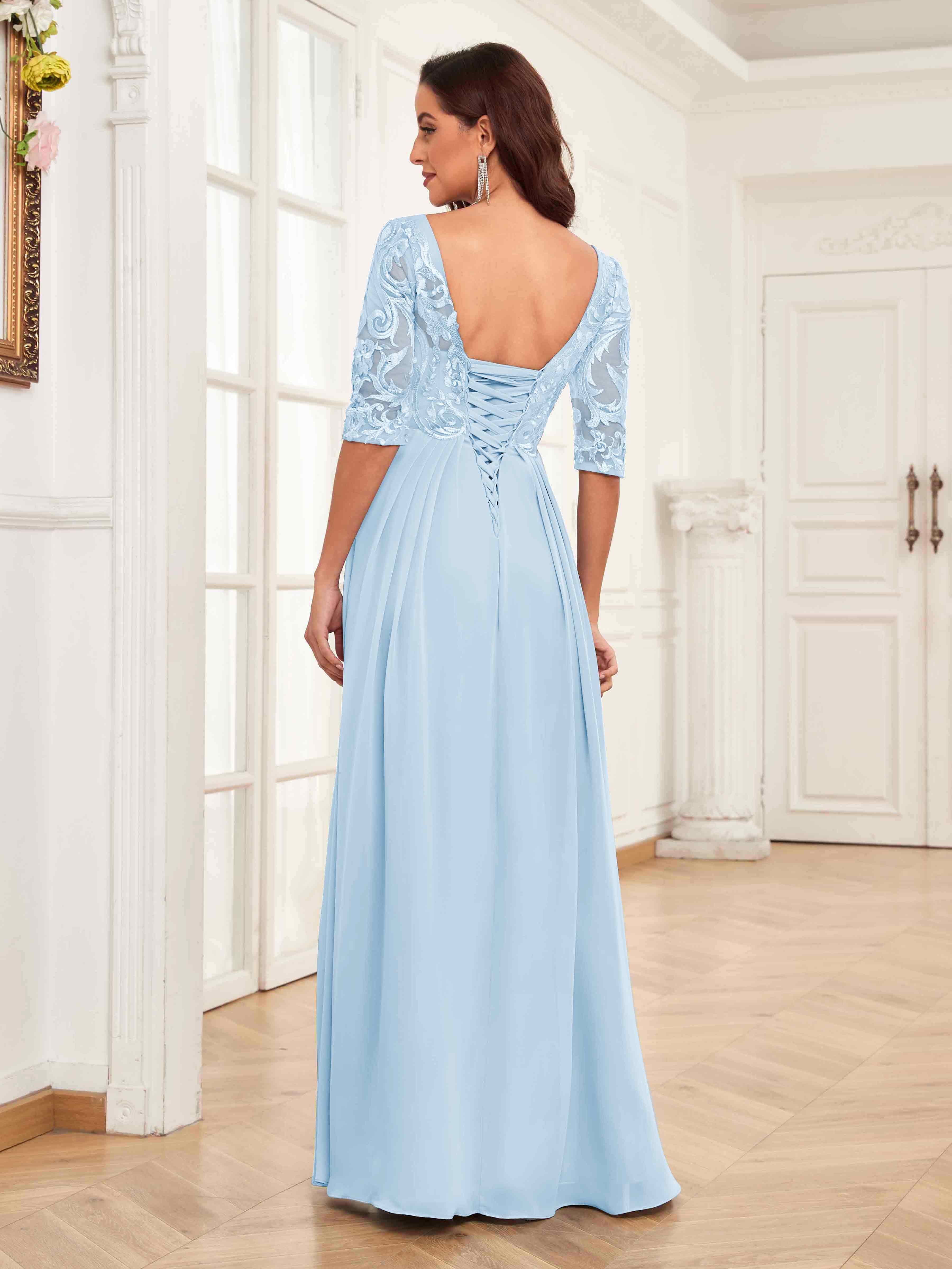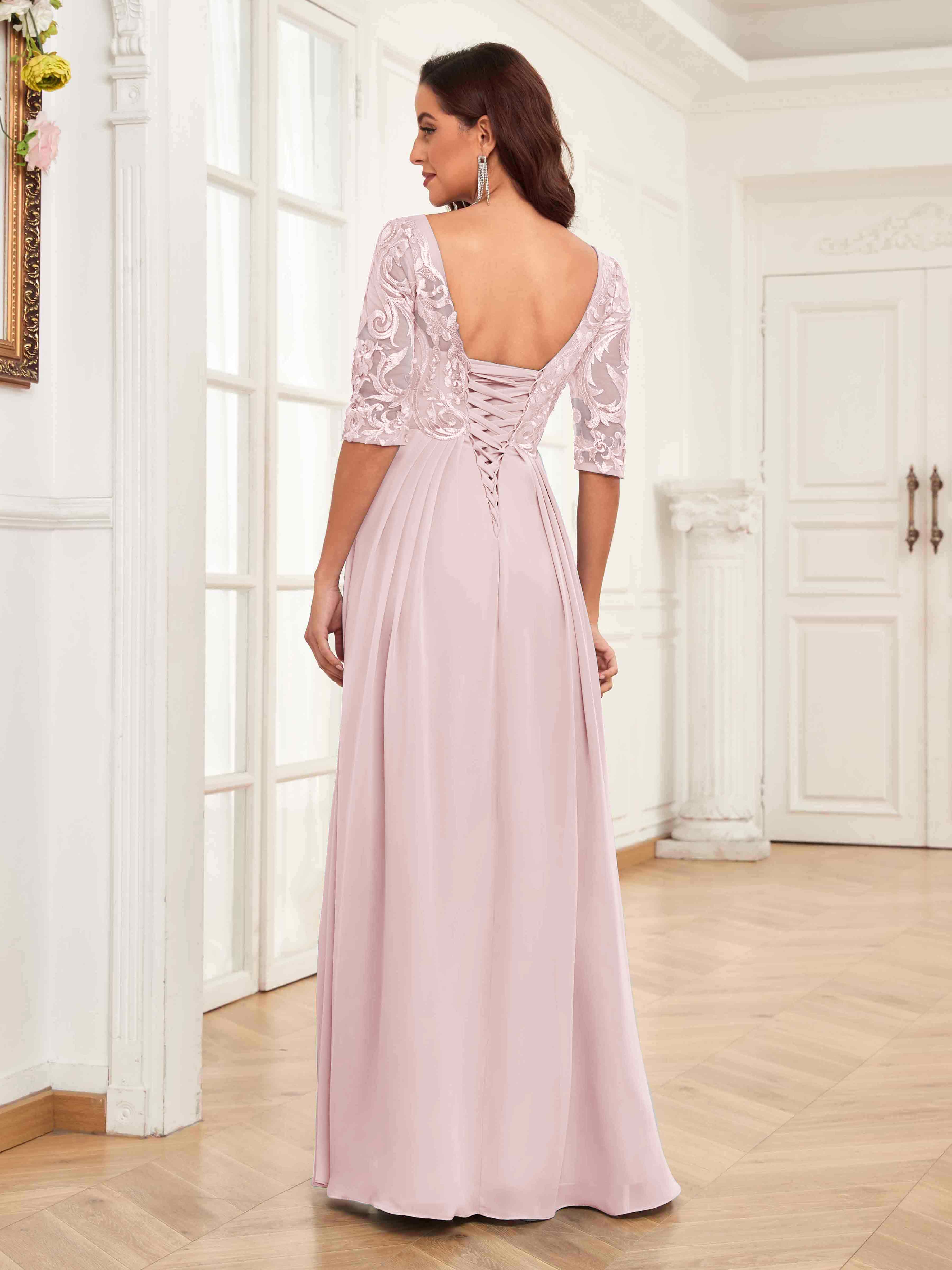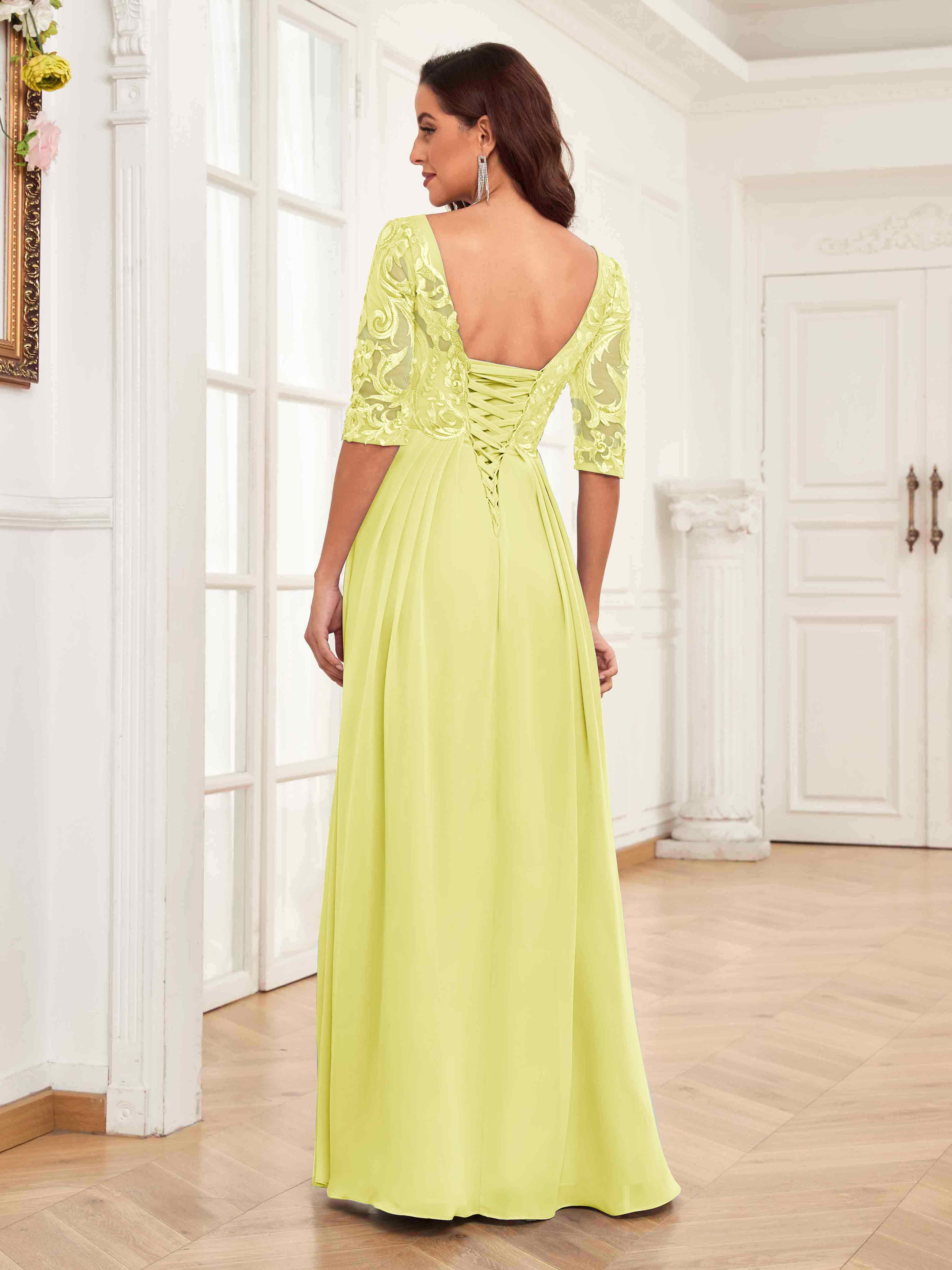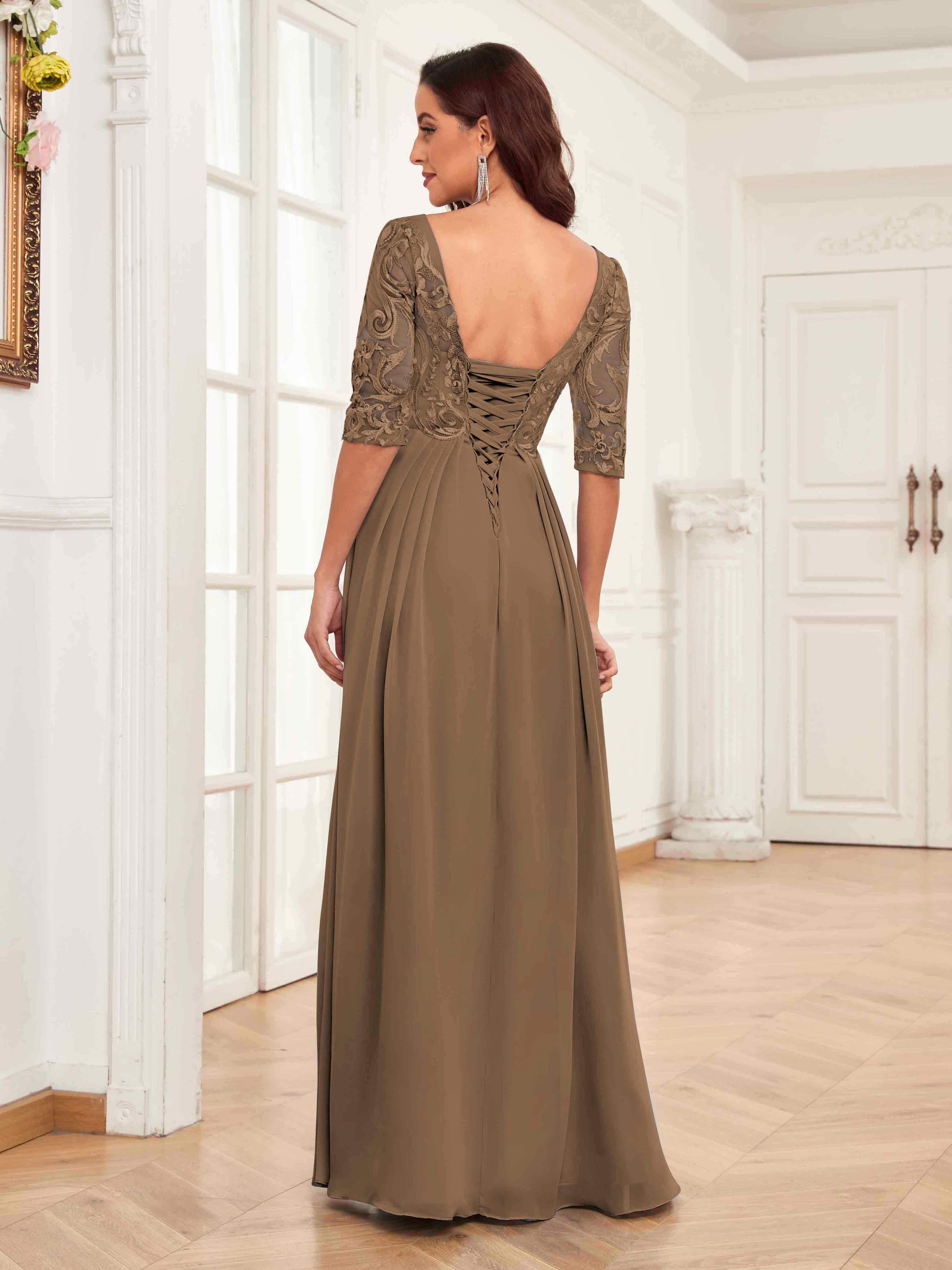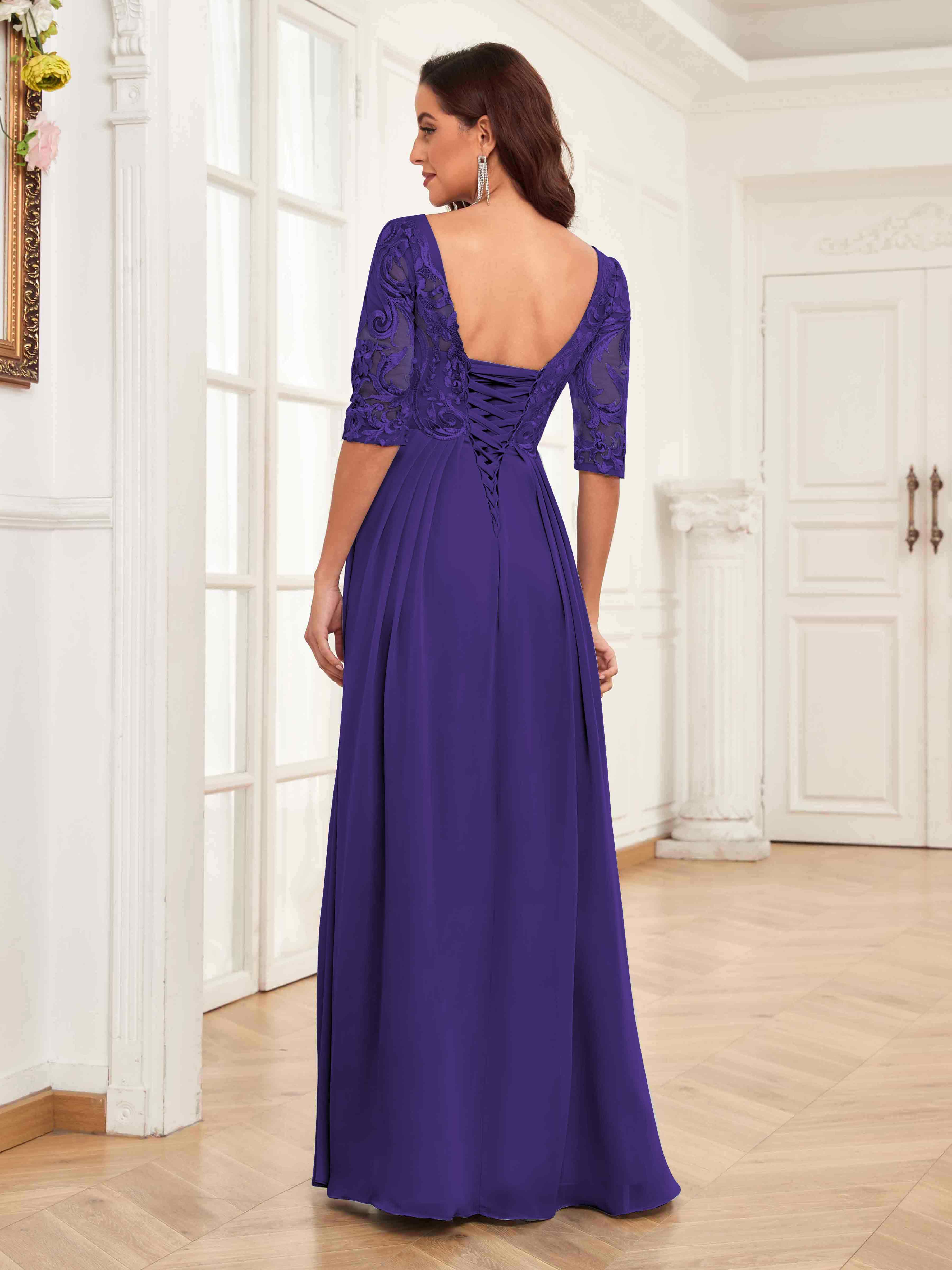 Malia Chic Illusion Half Sleeves Appliques Chiffon Mother of the Bride Groom Dresses