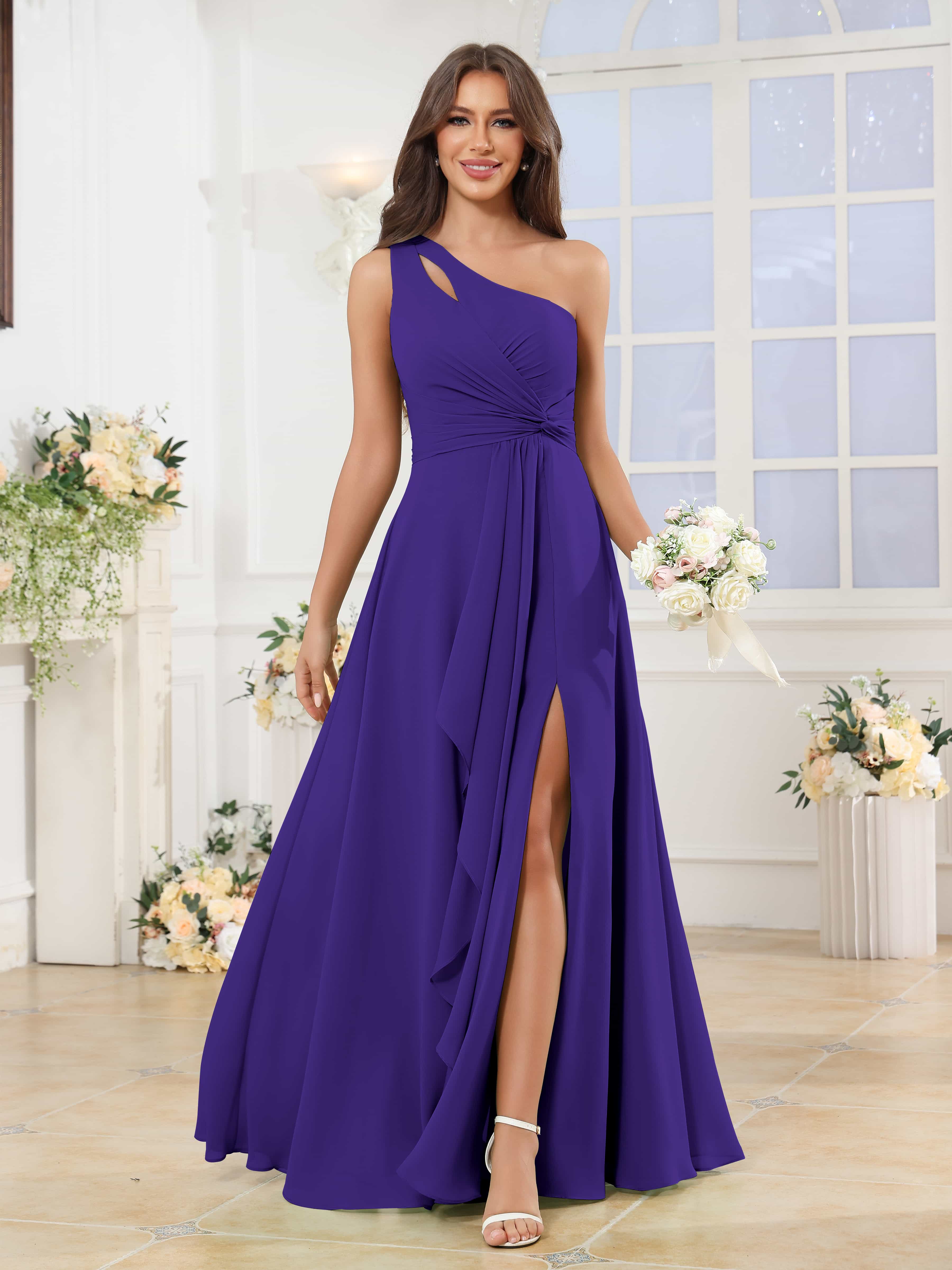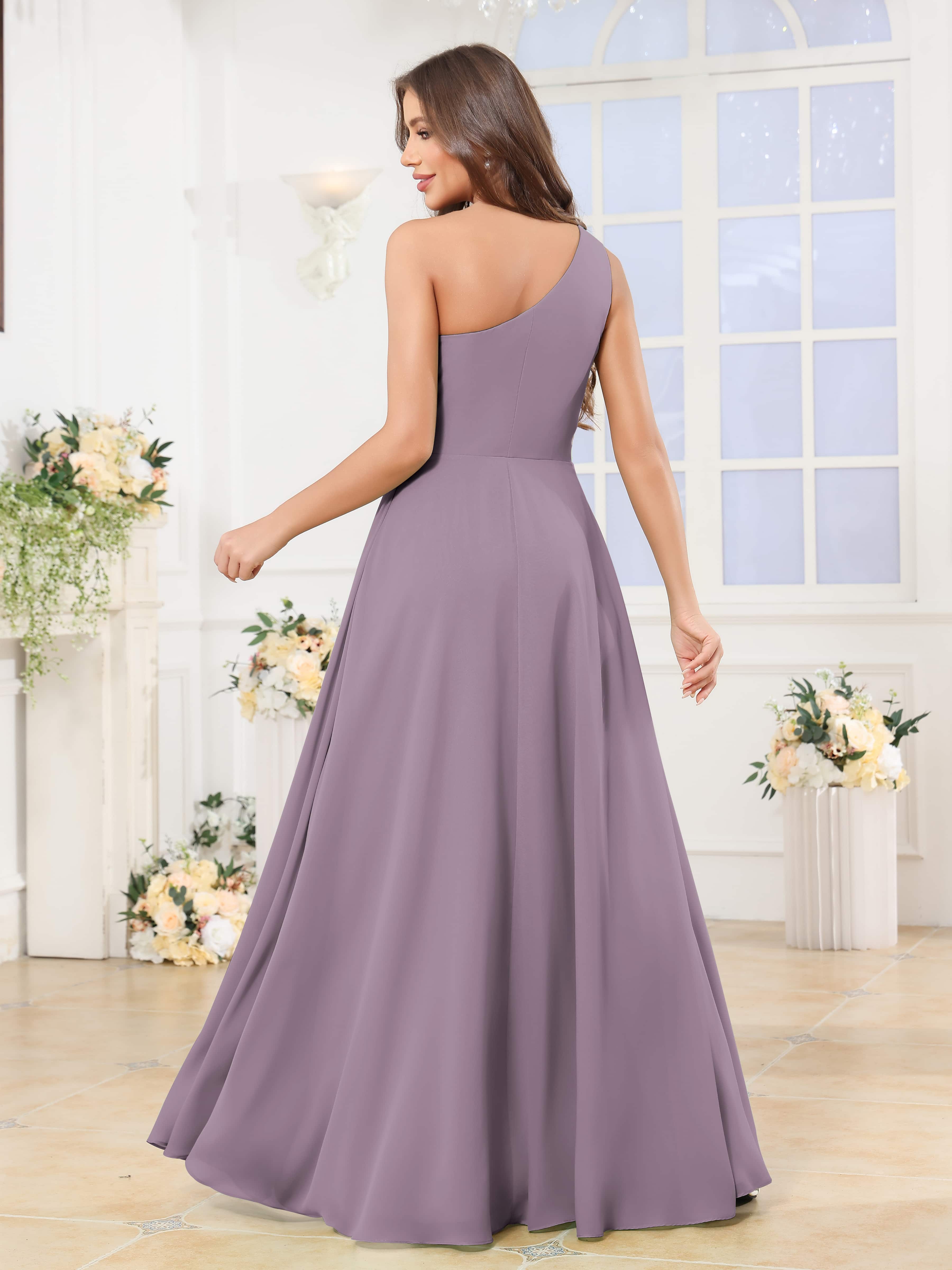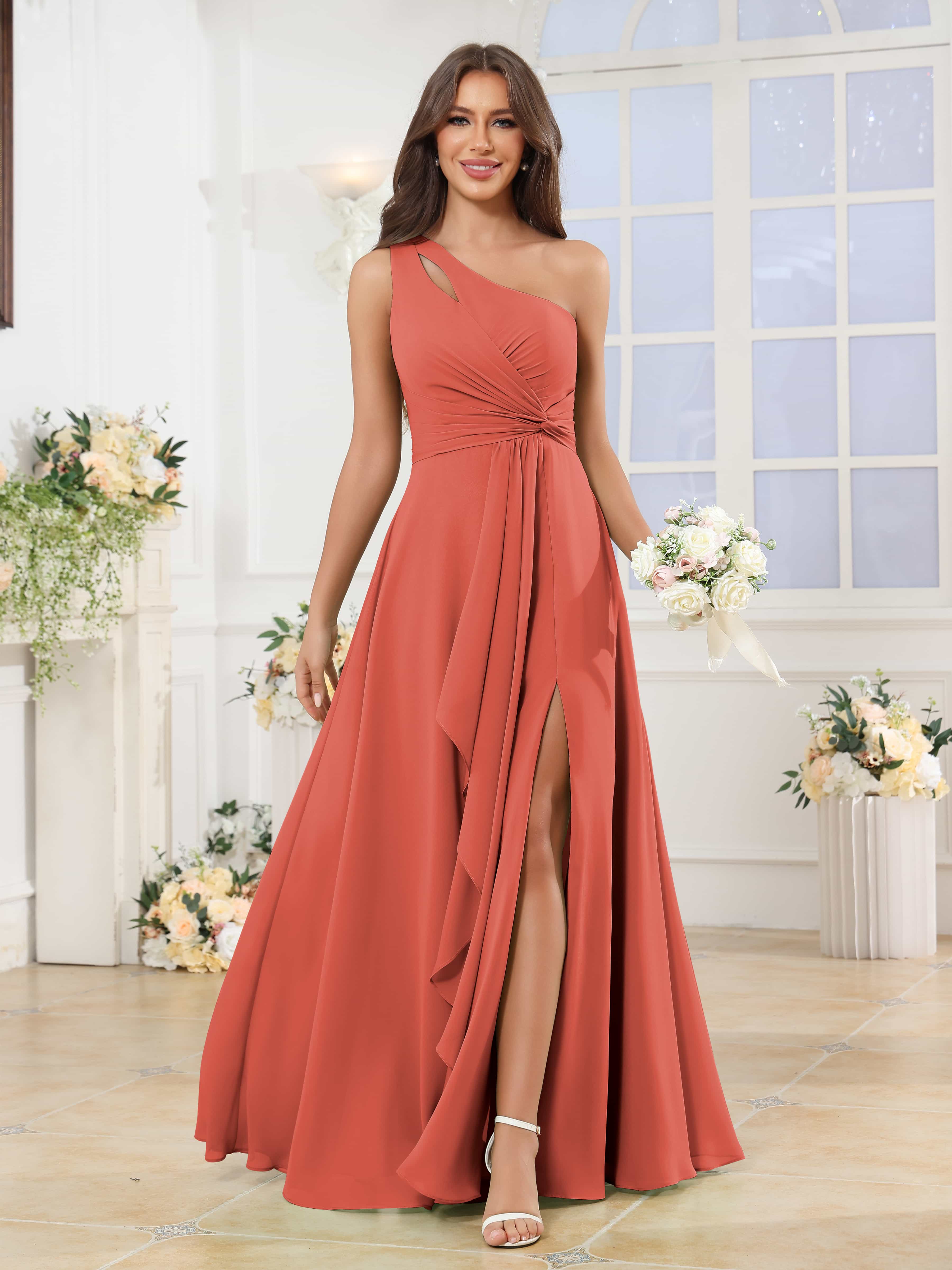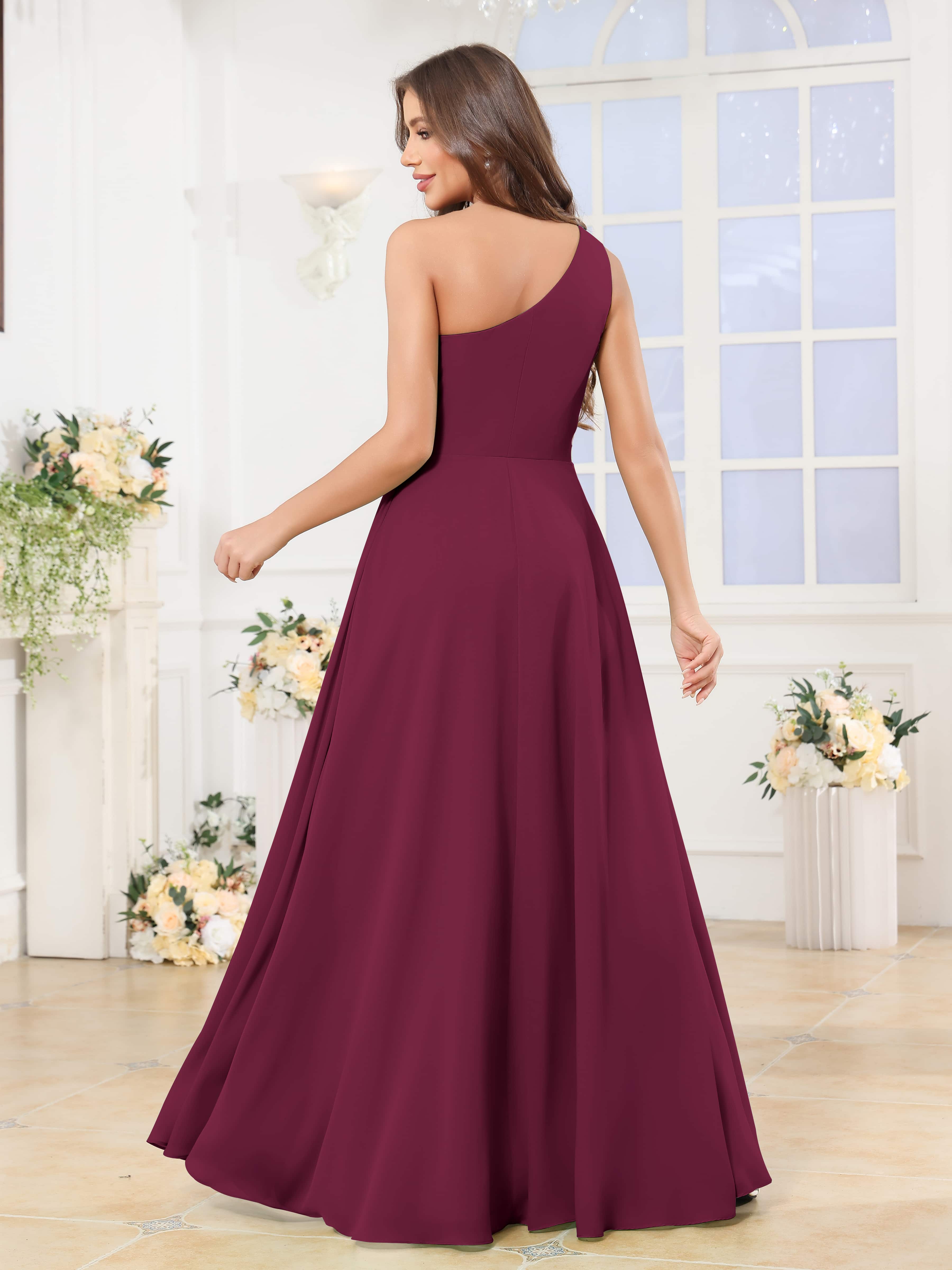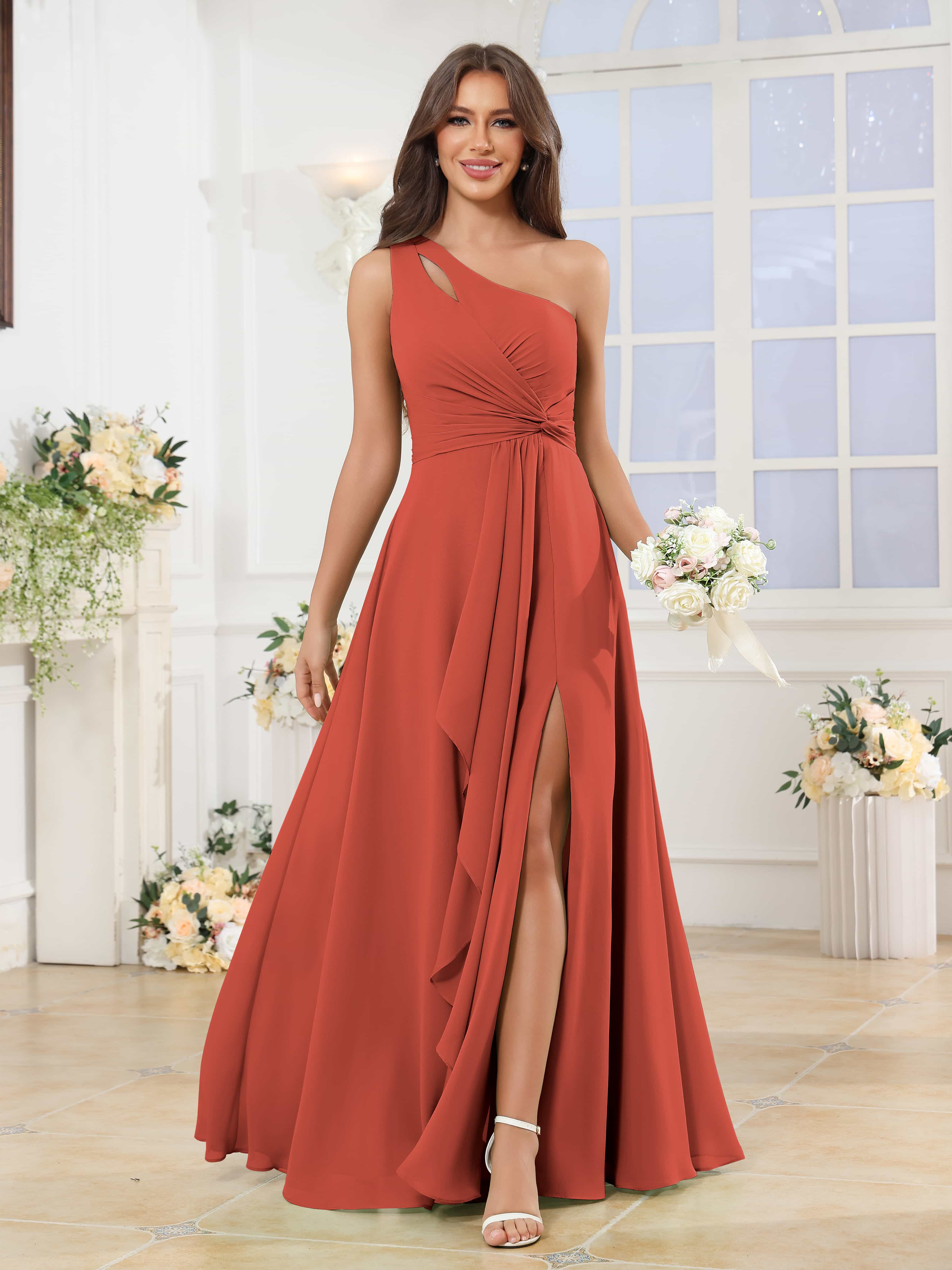 Martha Chic One Shoulder Ruched Slit Floor Length Chiffon Bridesmaid Dresses