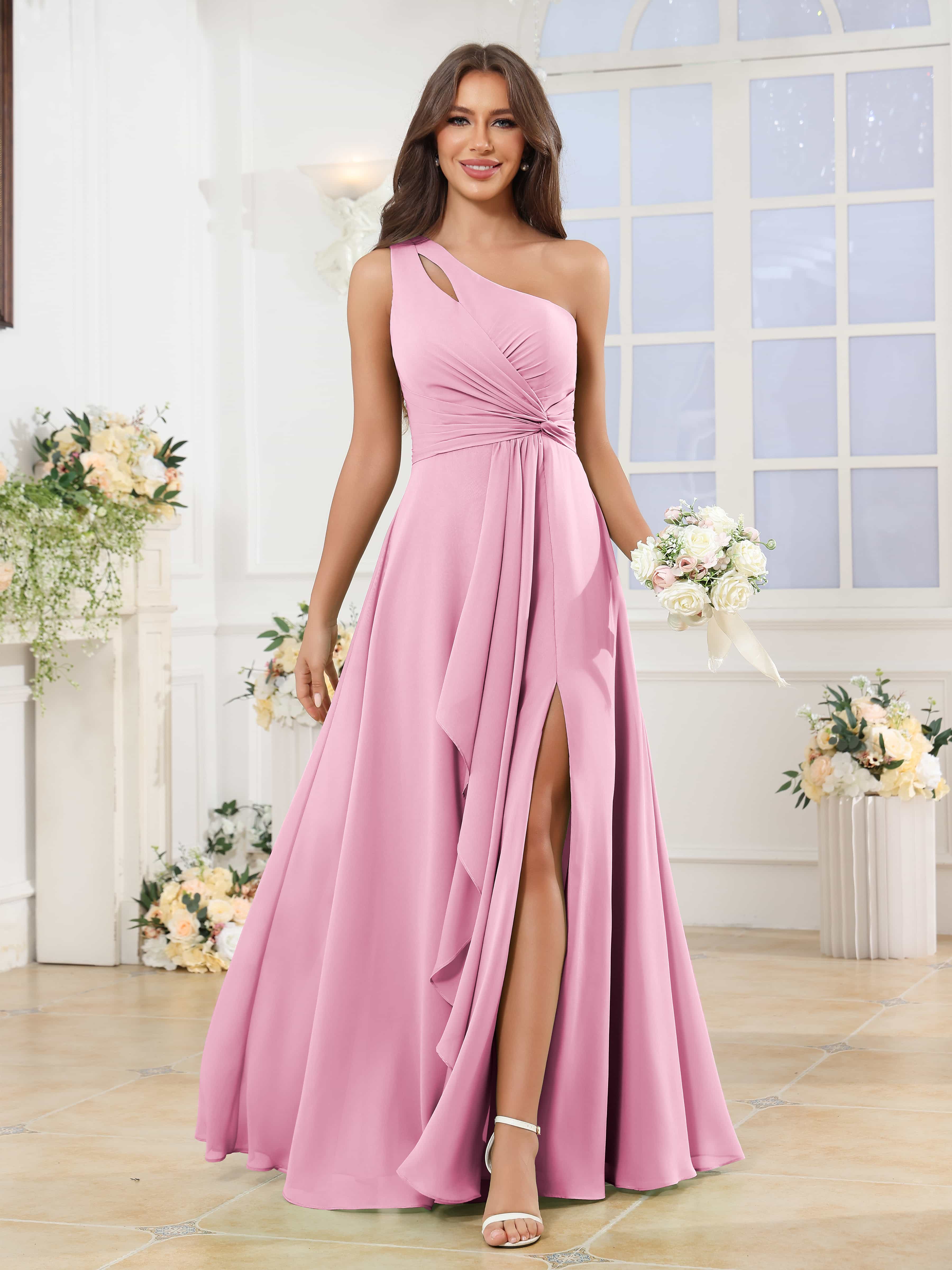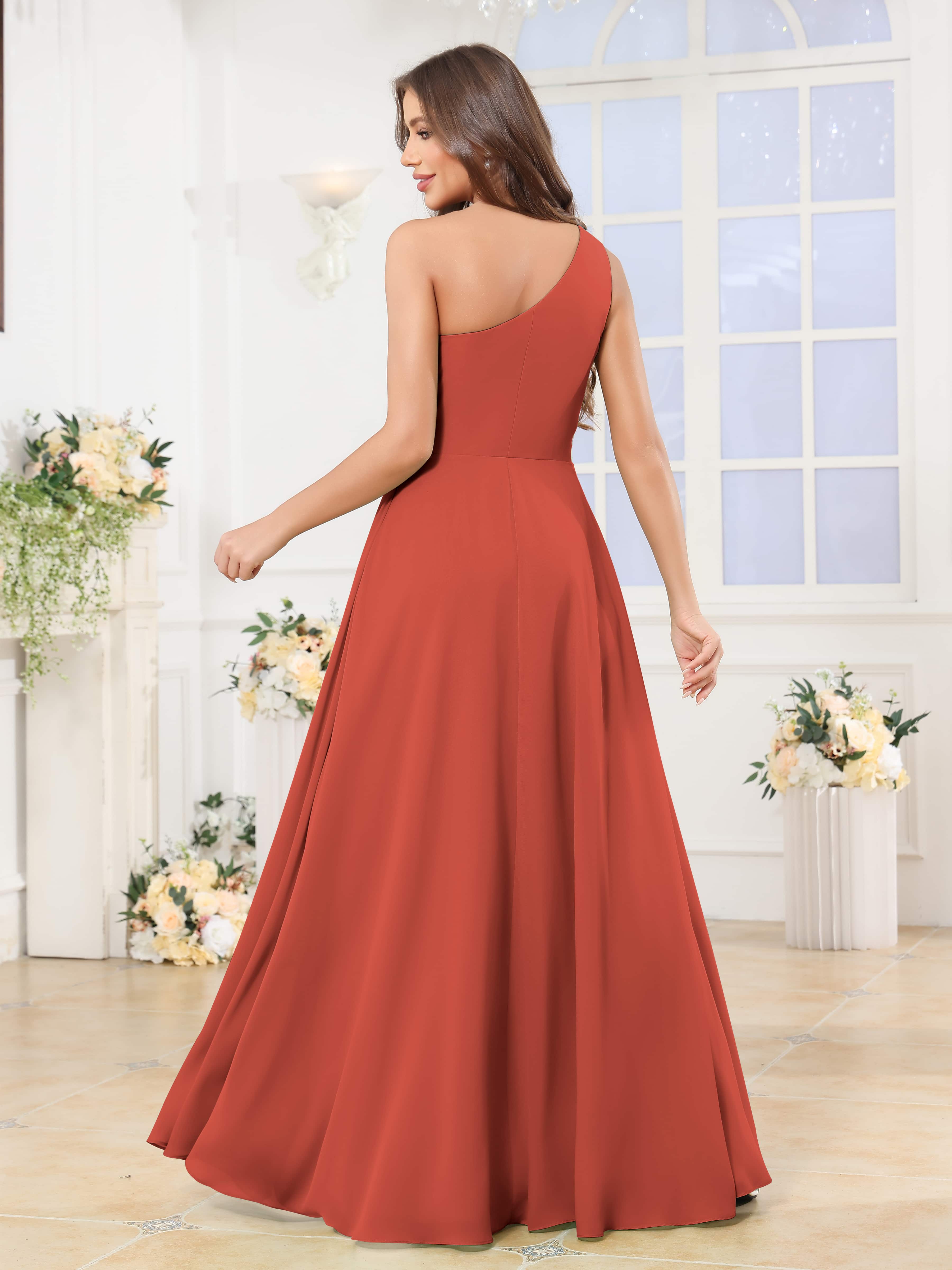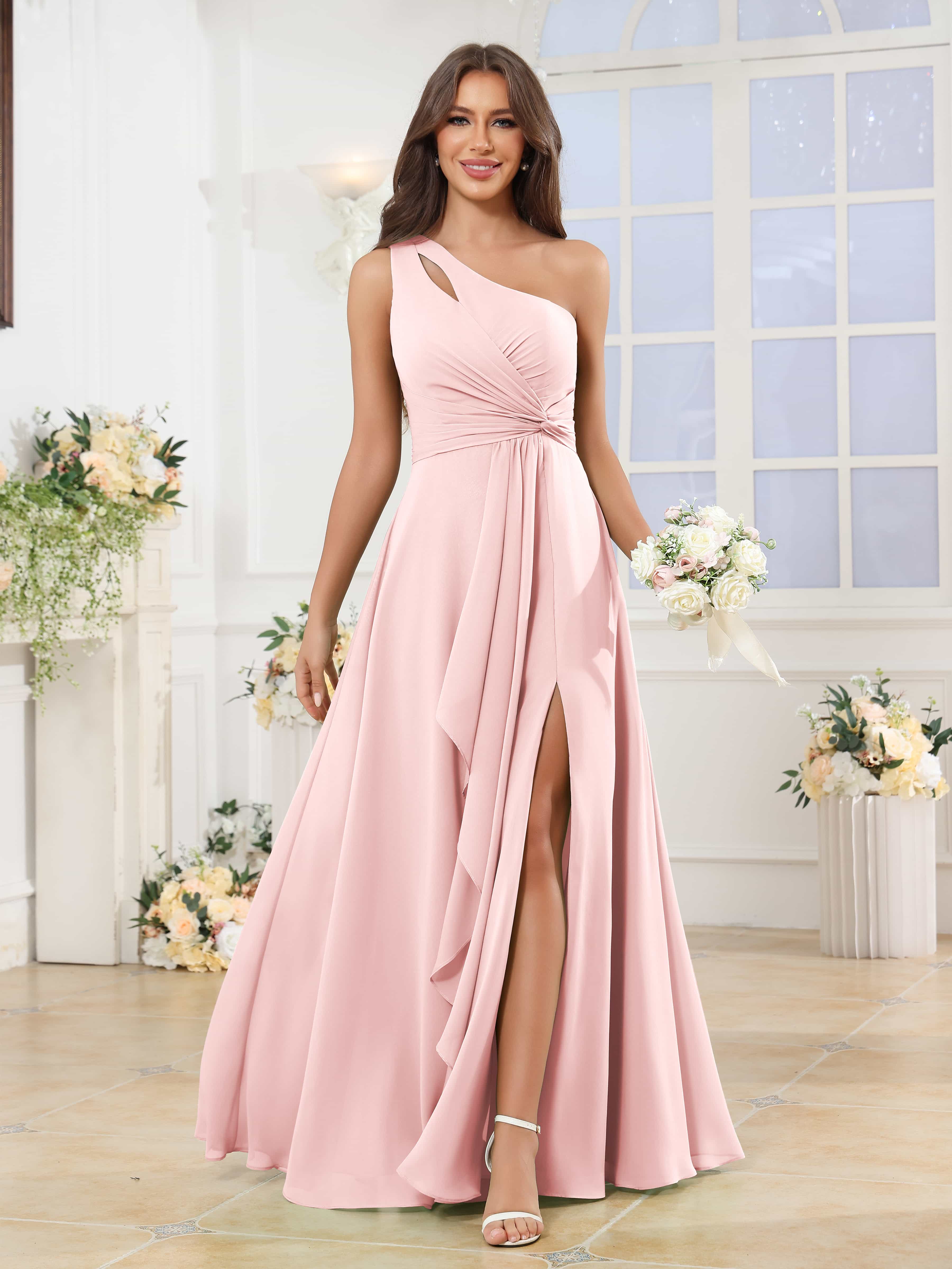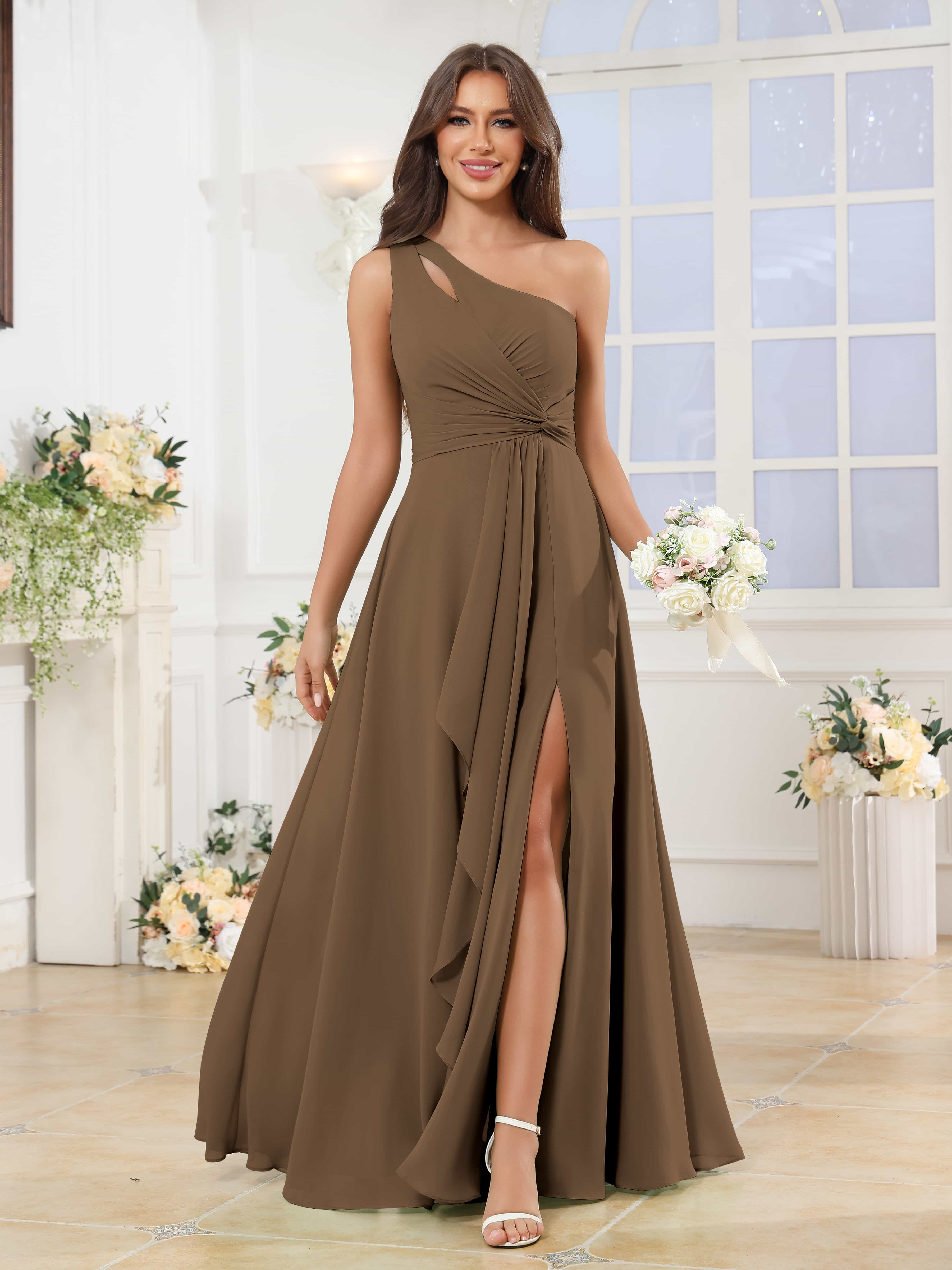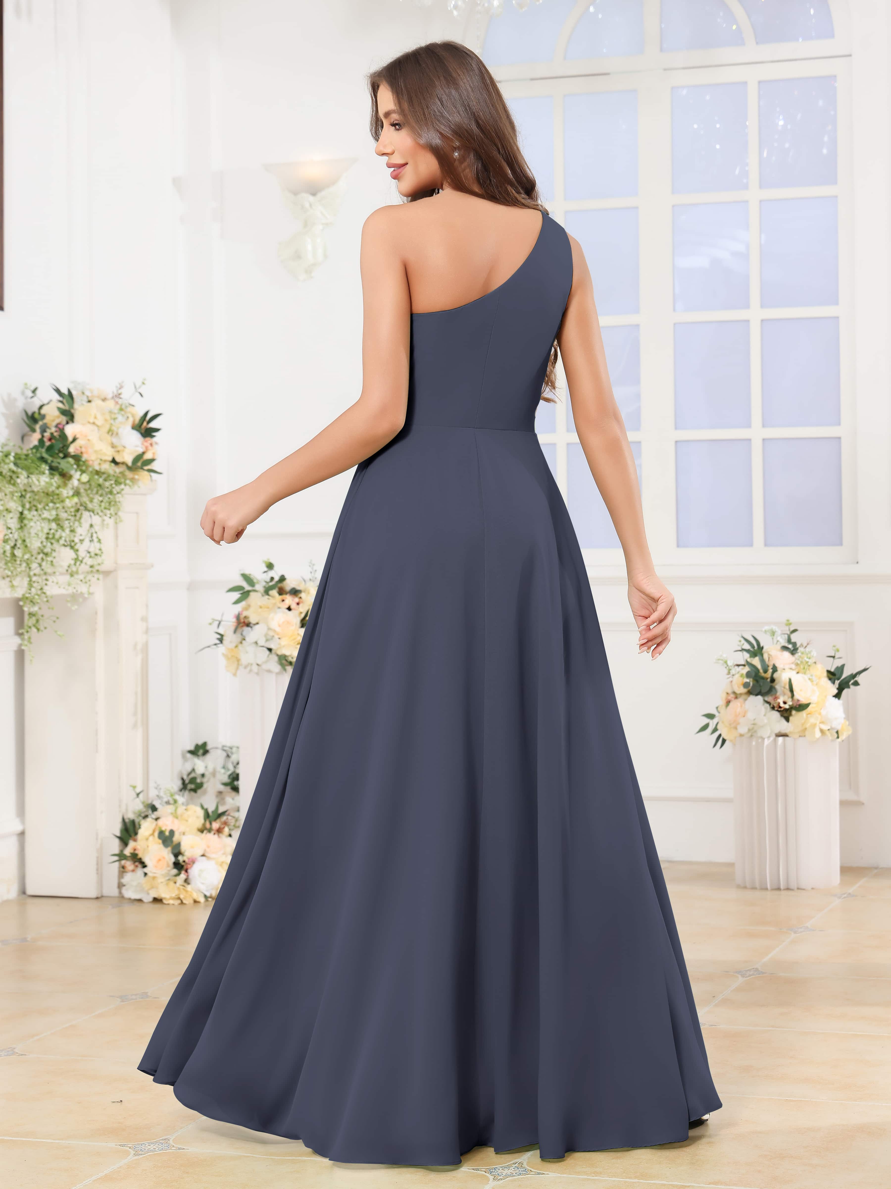 Martha Chic One Shoulder Ruched Slit Floor Length Chiffon Bridesmaid Dresses