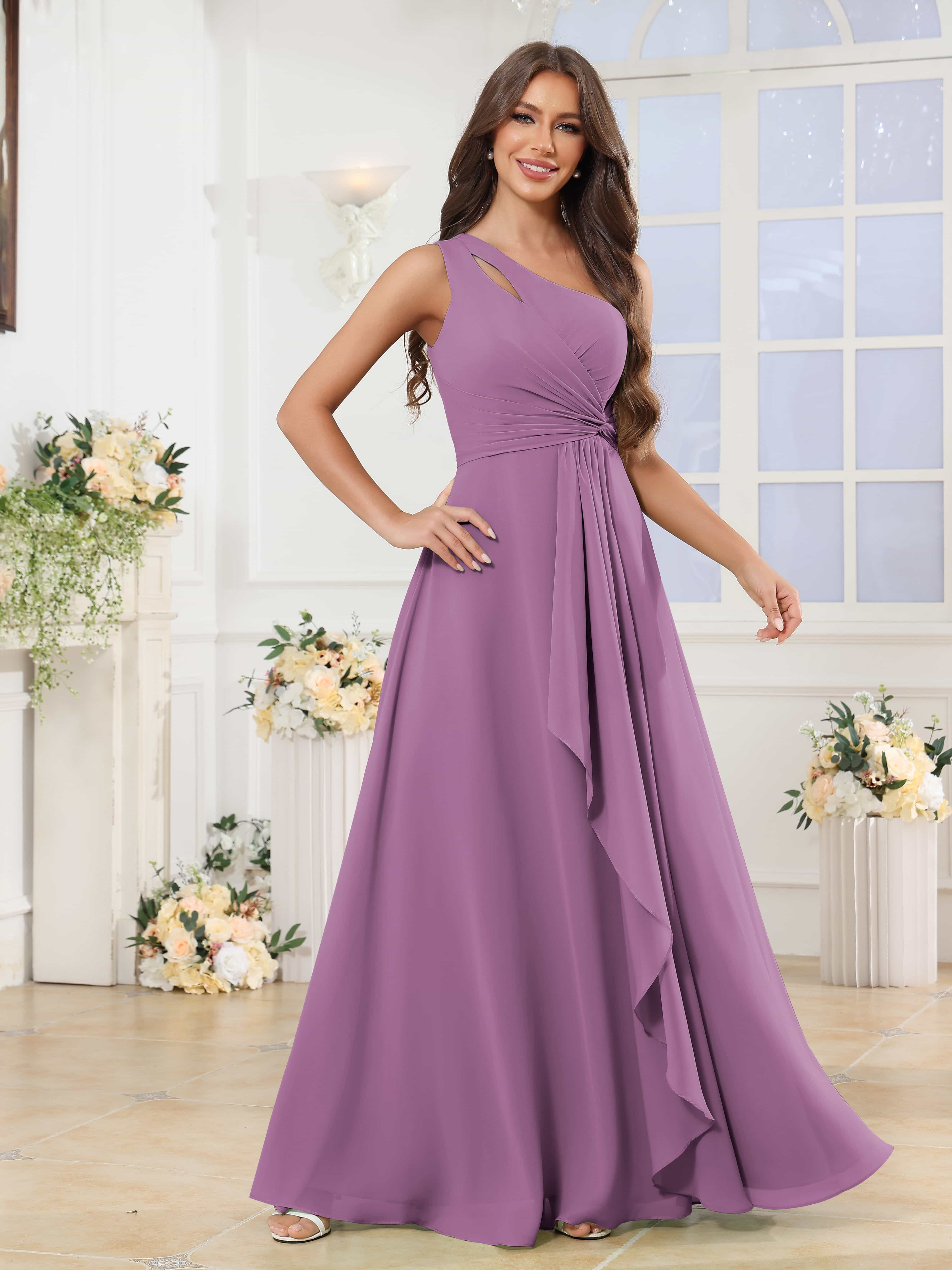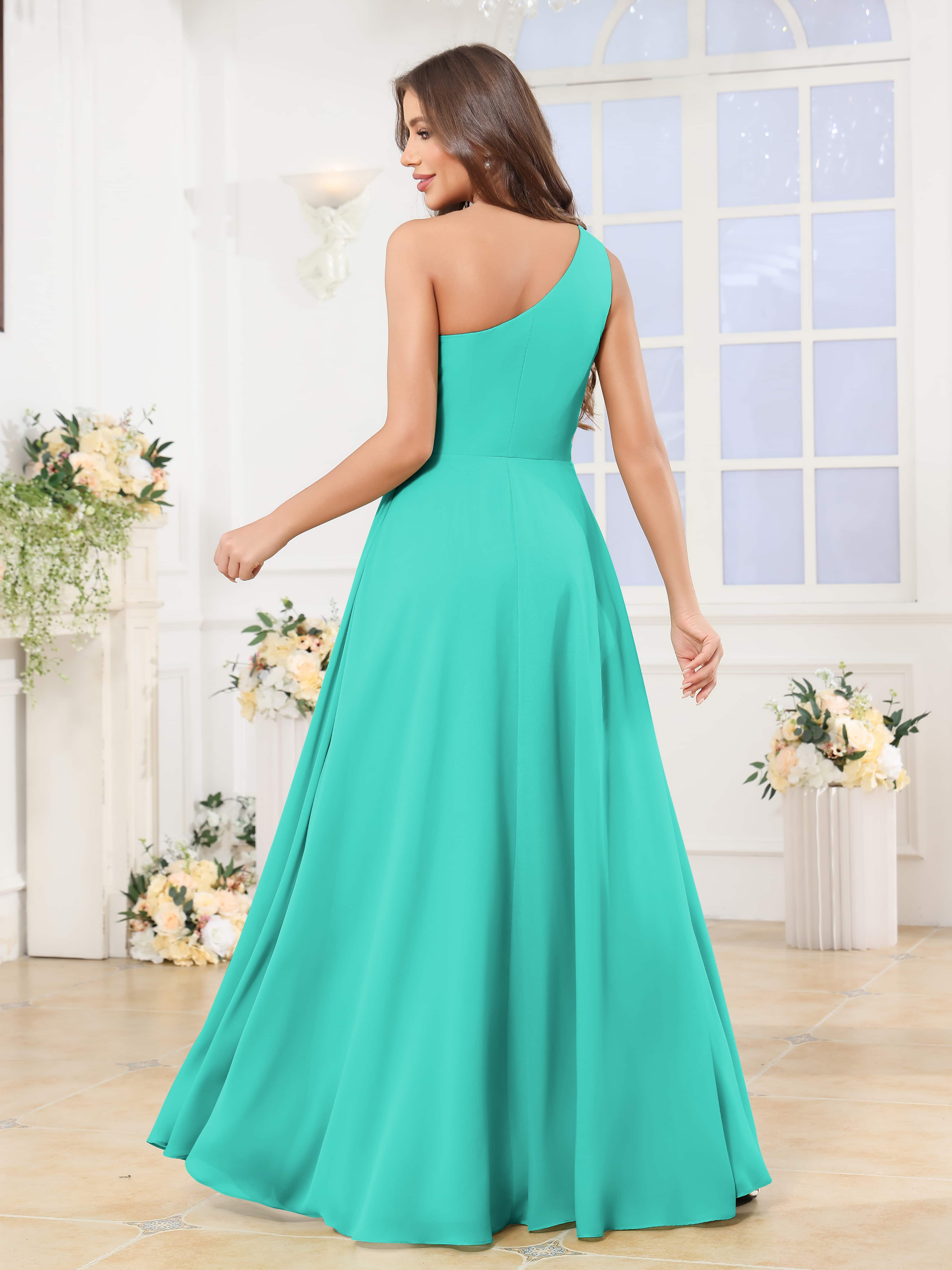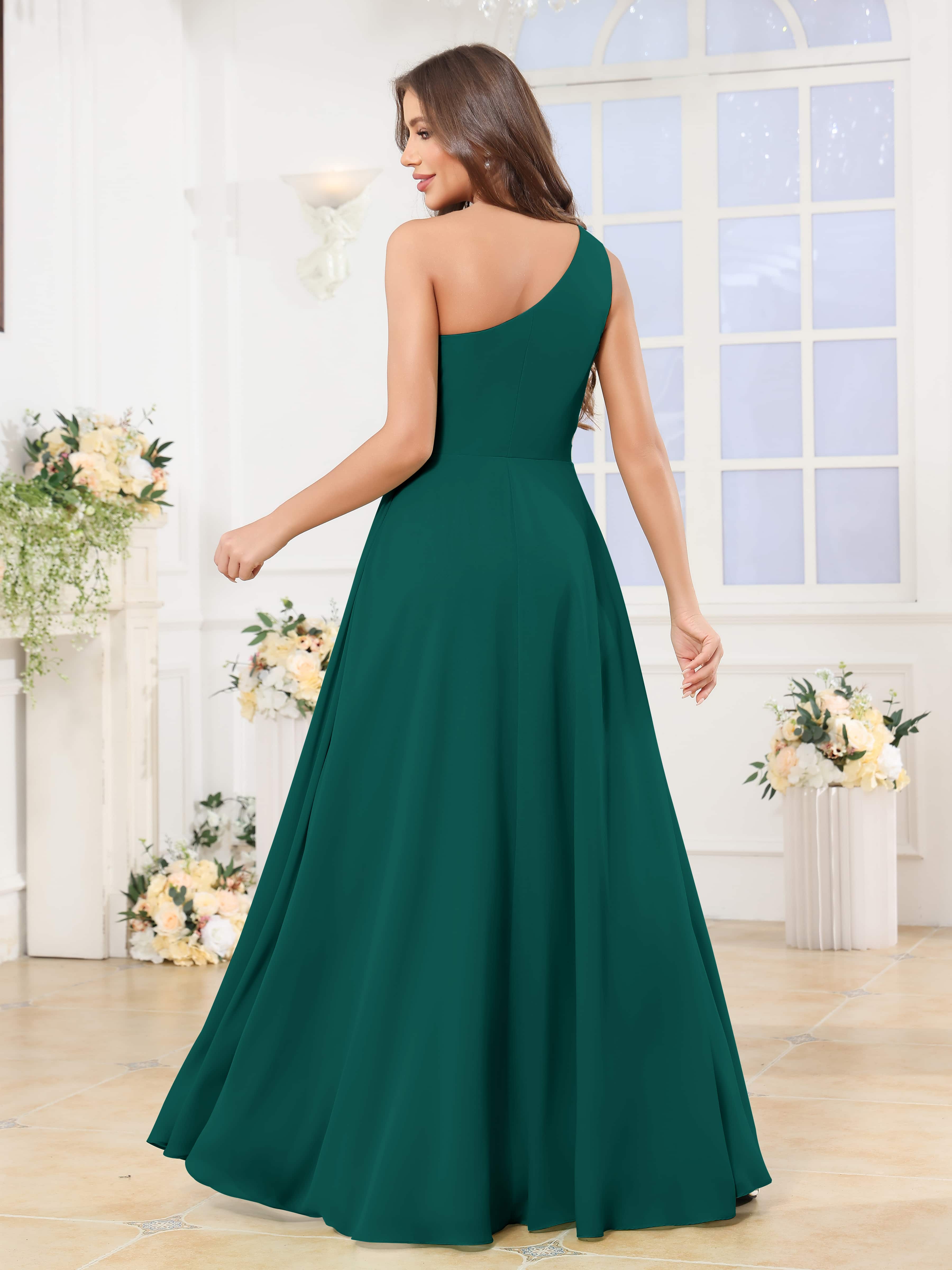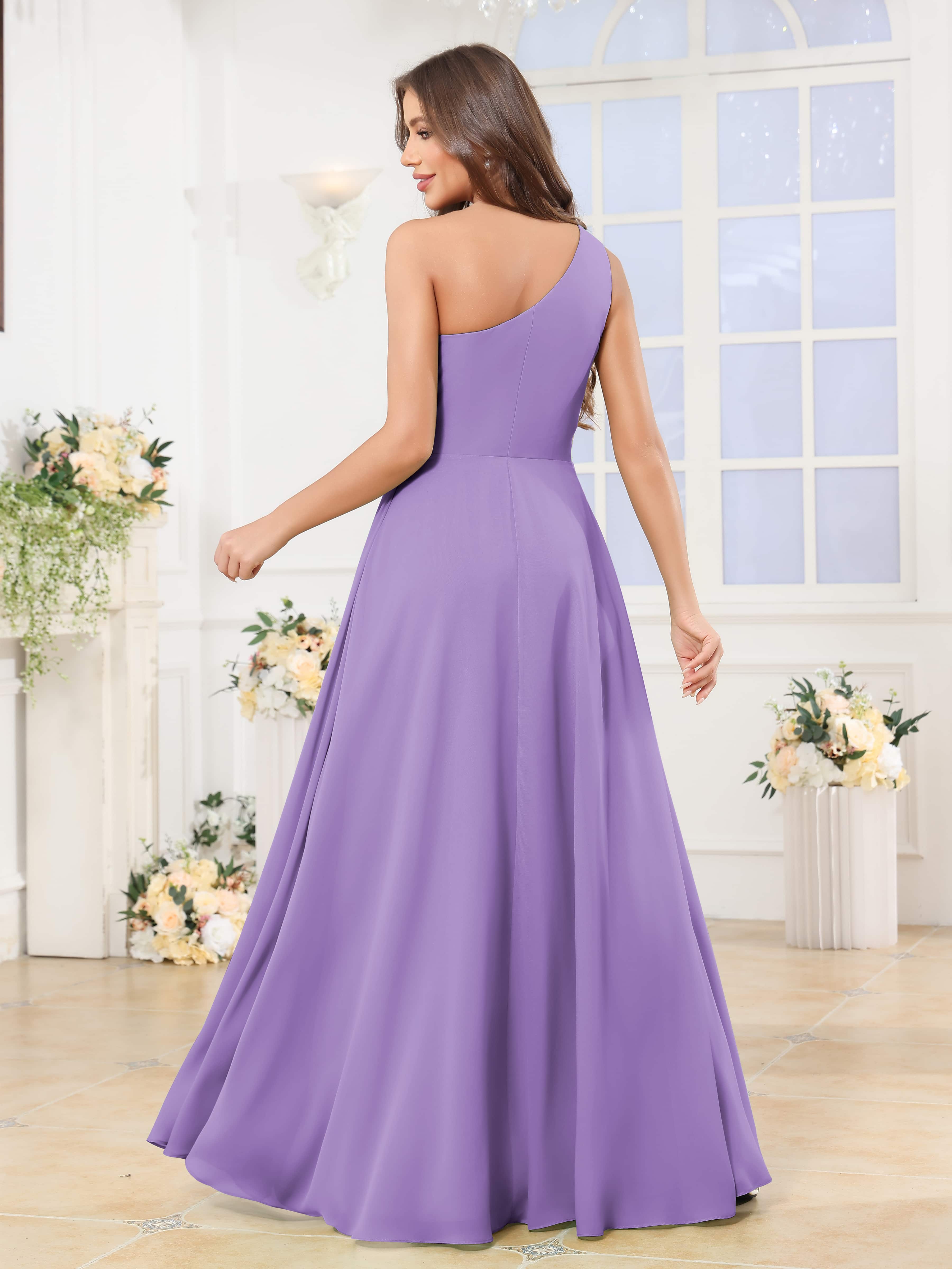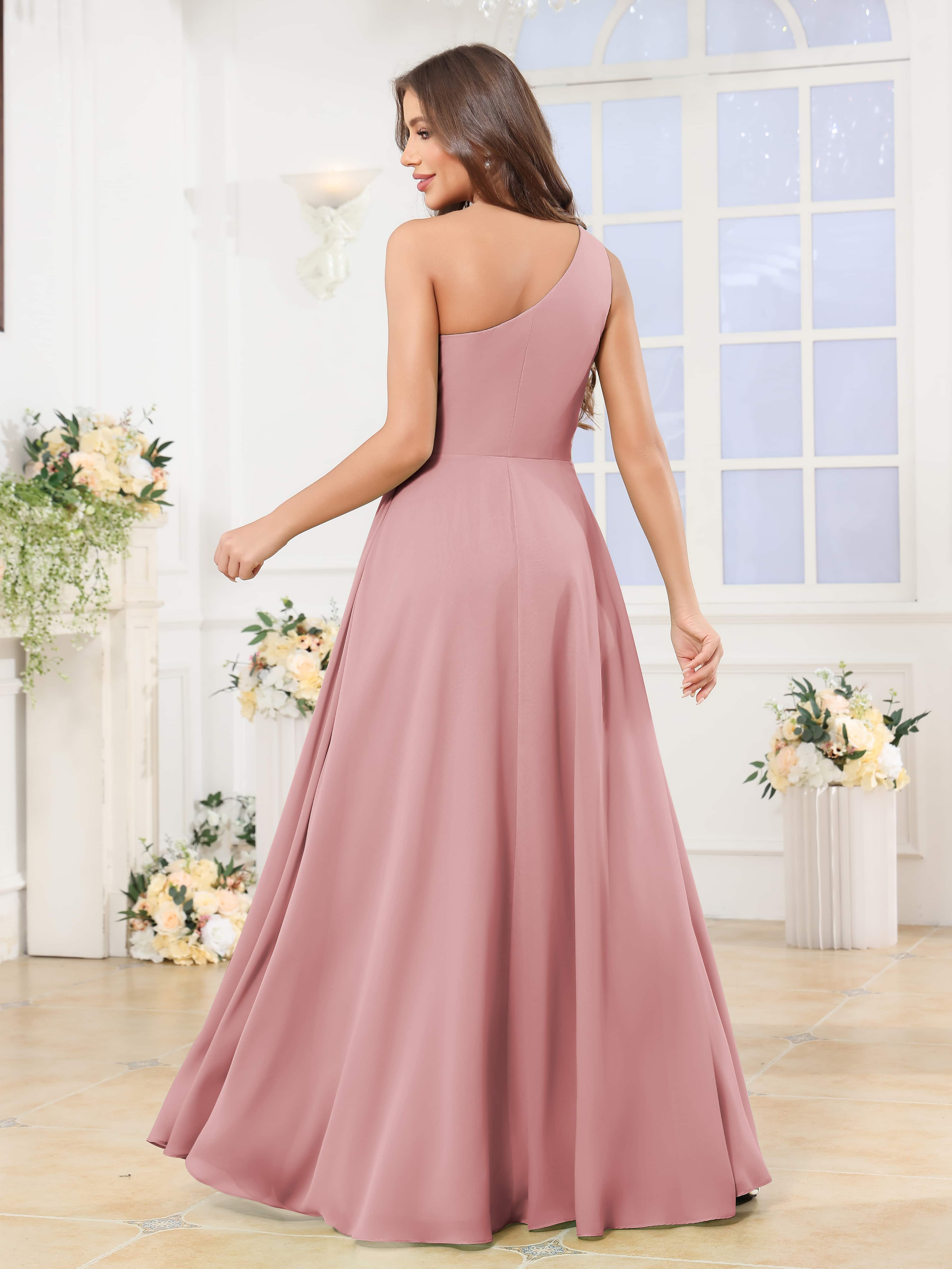 Martha Chic One Shoulder Ruched Slit Floor Length Chiffon Bridesmaid Dresses