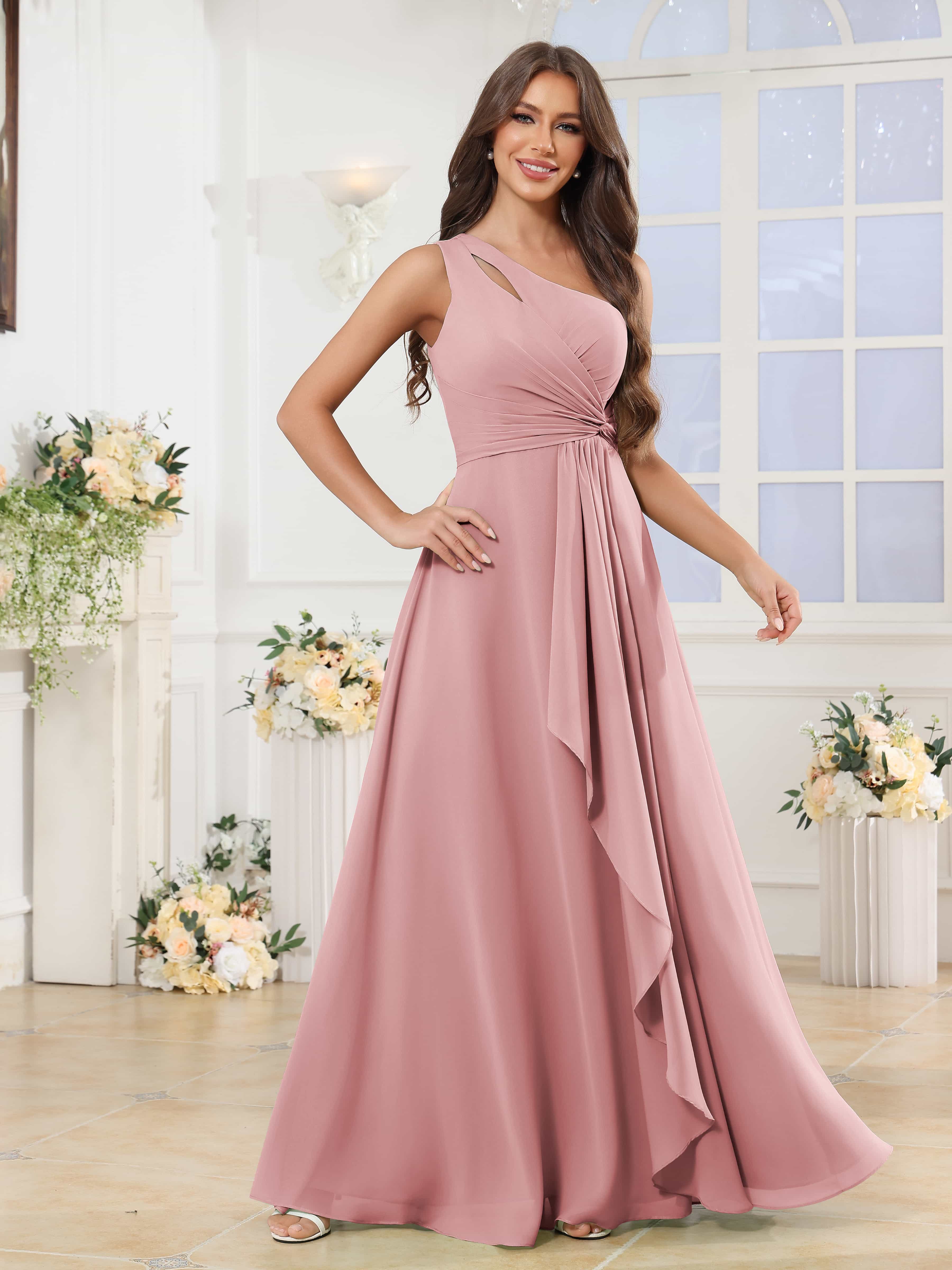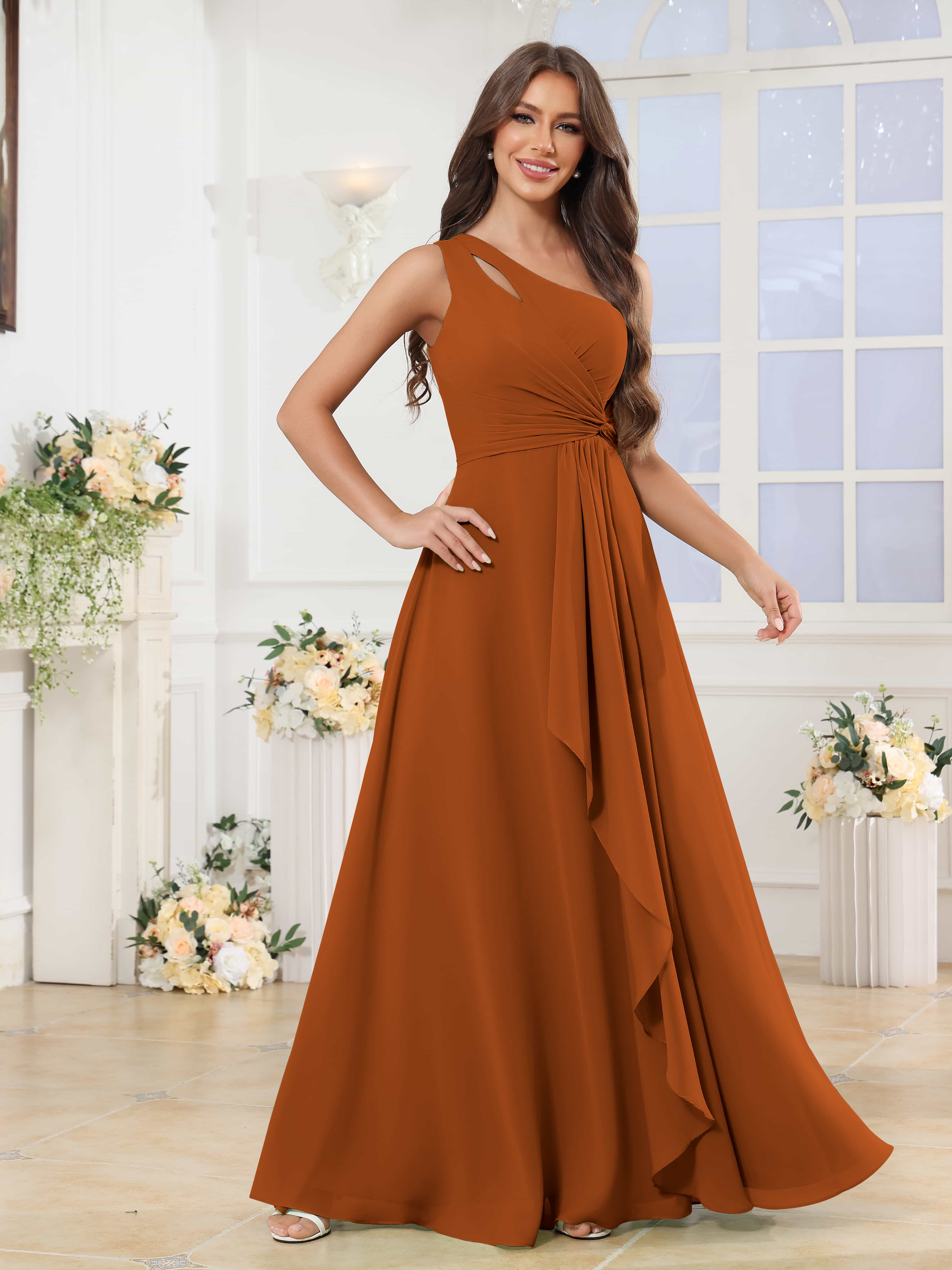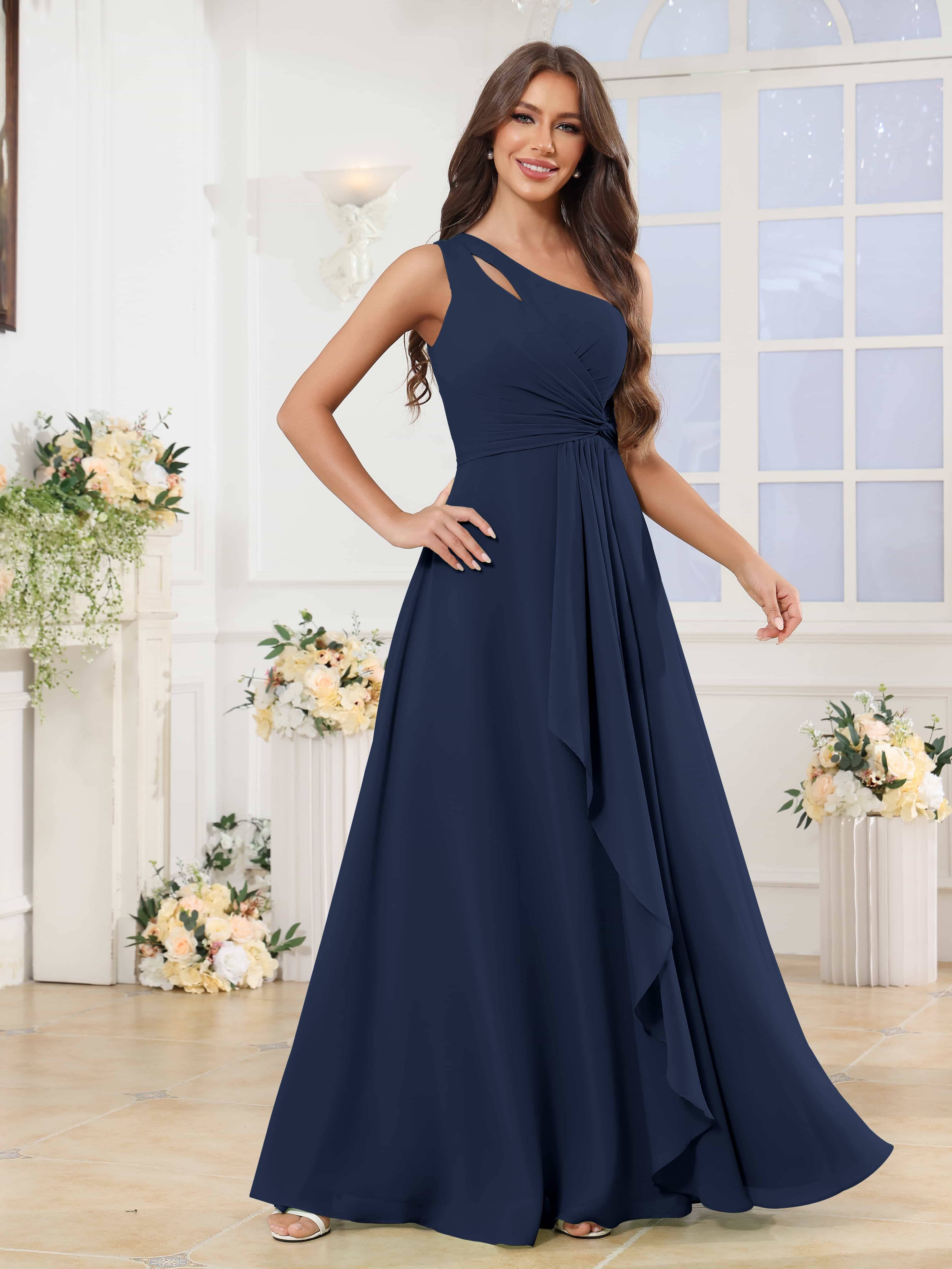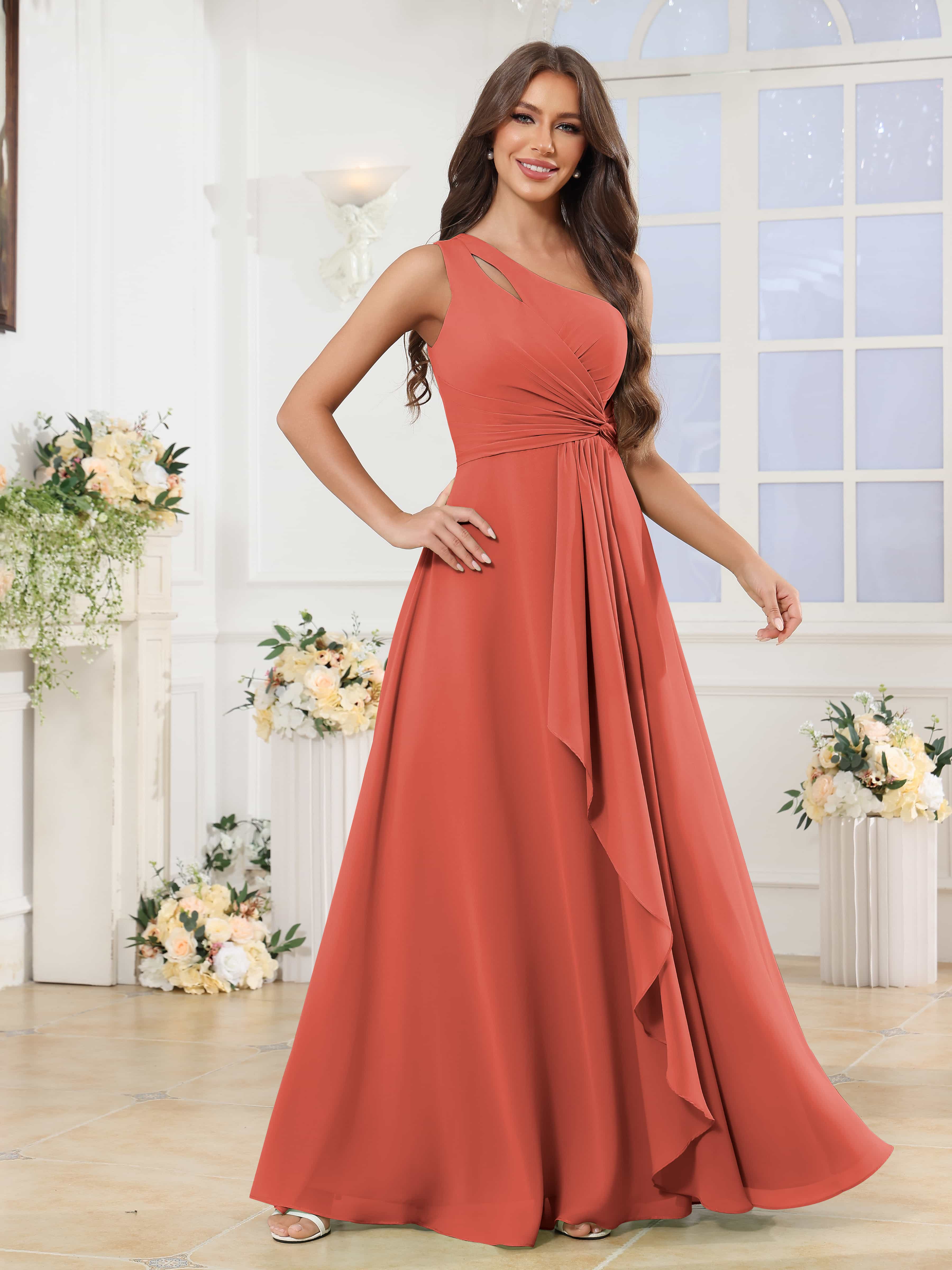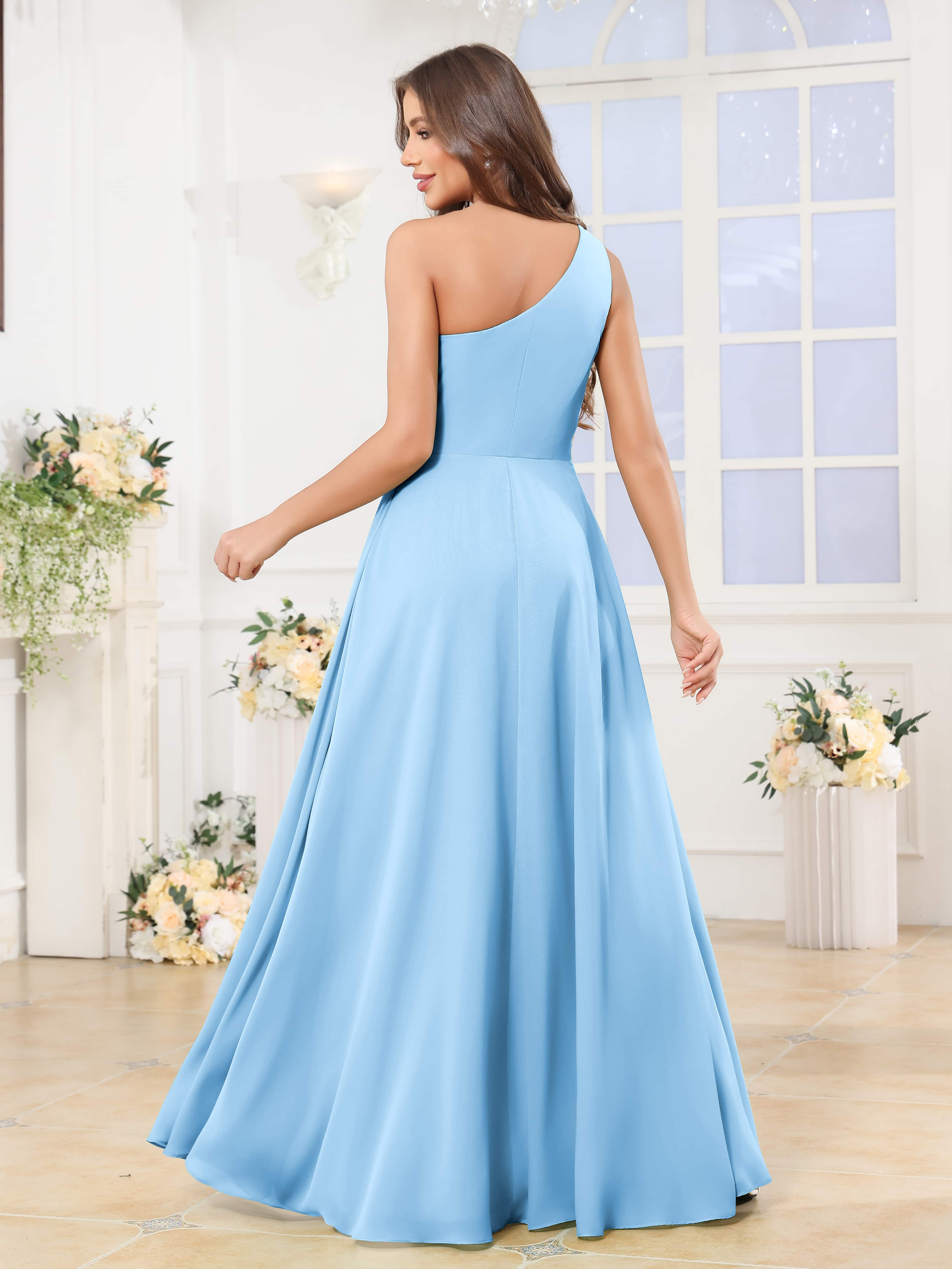 Martha Chic One Shoulder Ruched Slit Floor Length Chiffon Bridesmaid Dresses