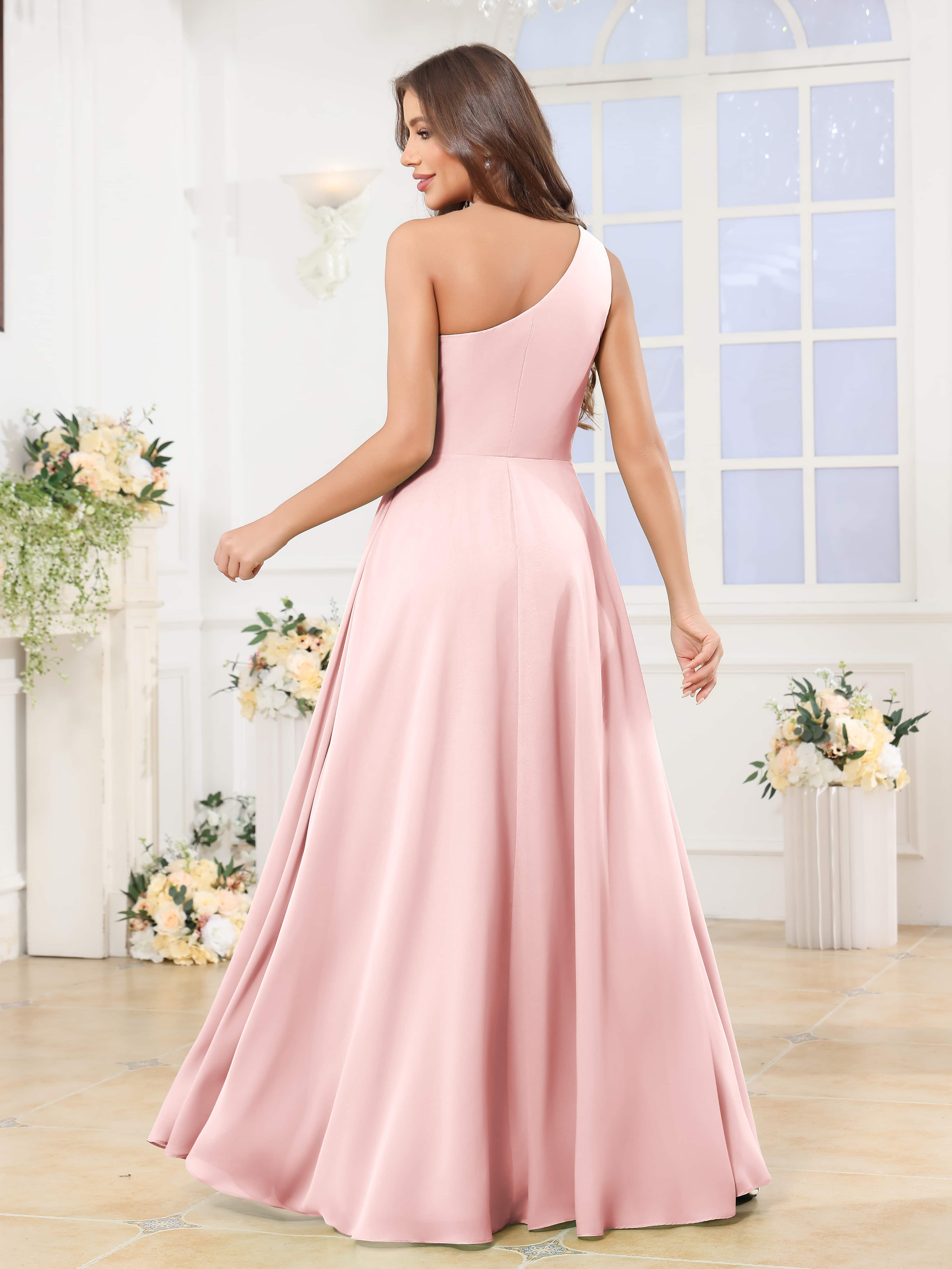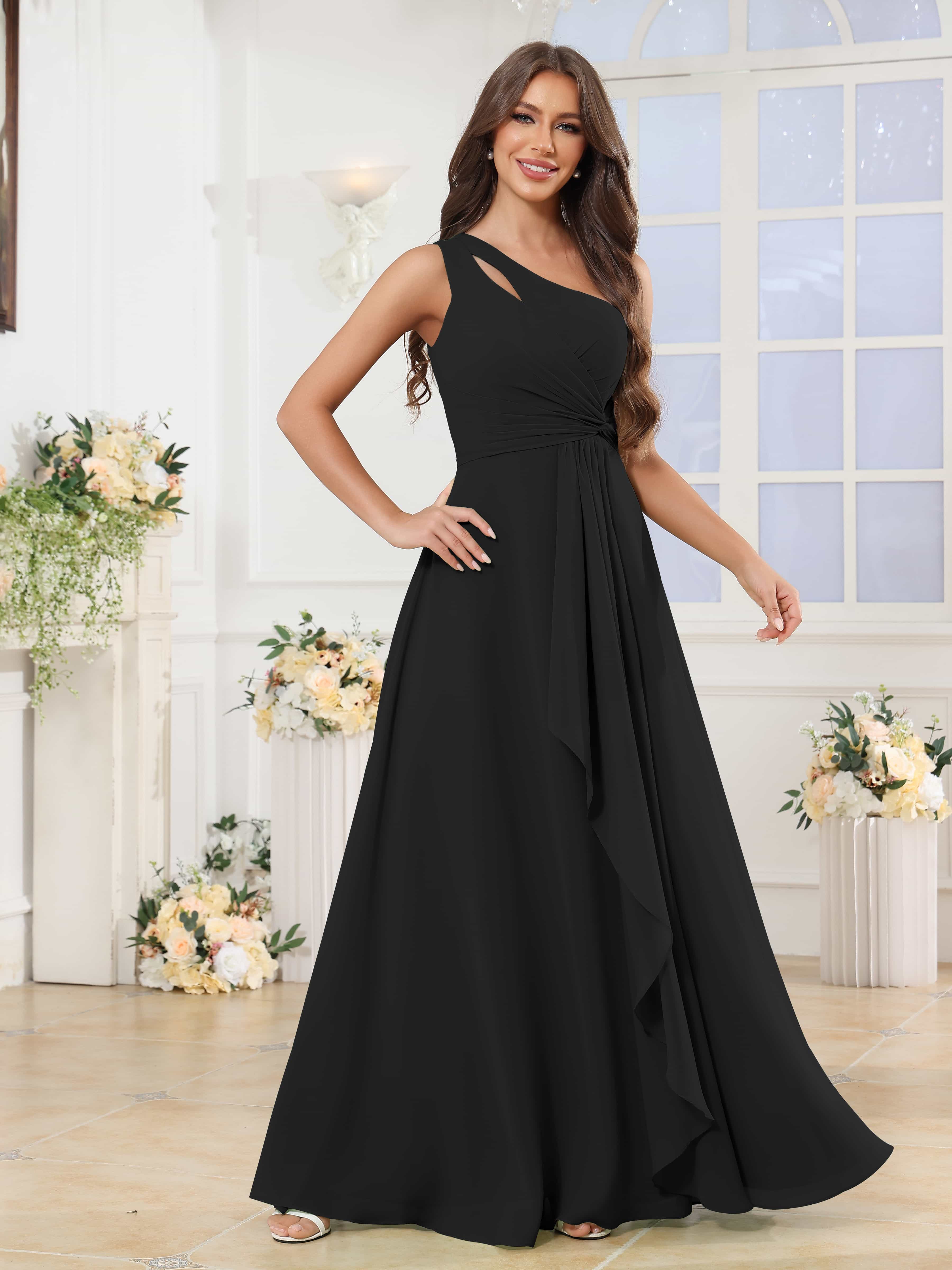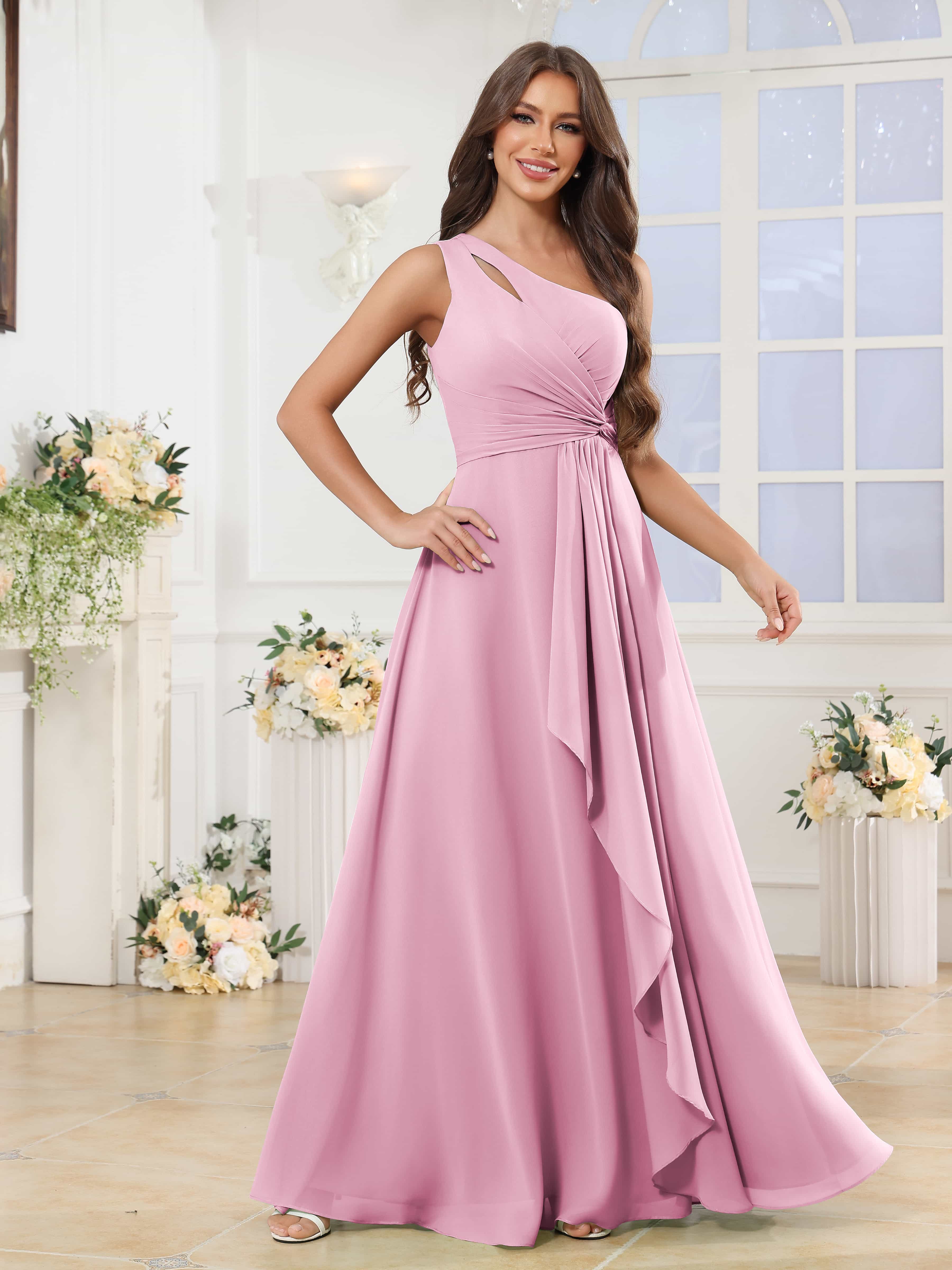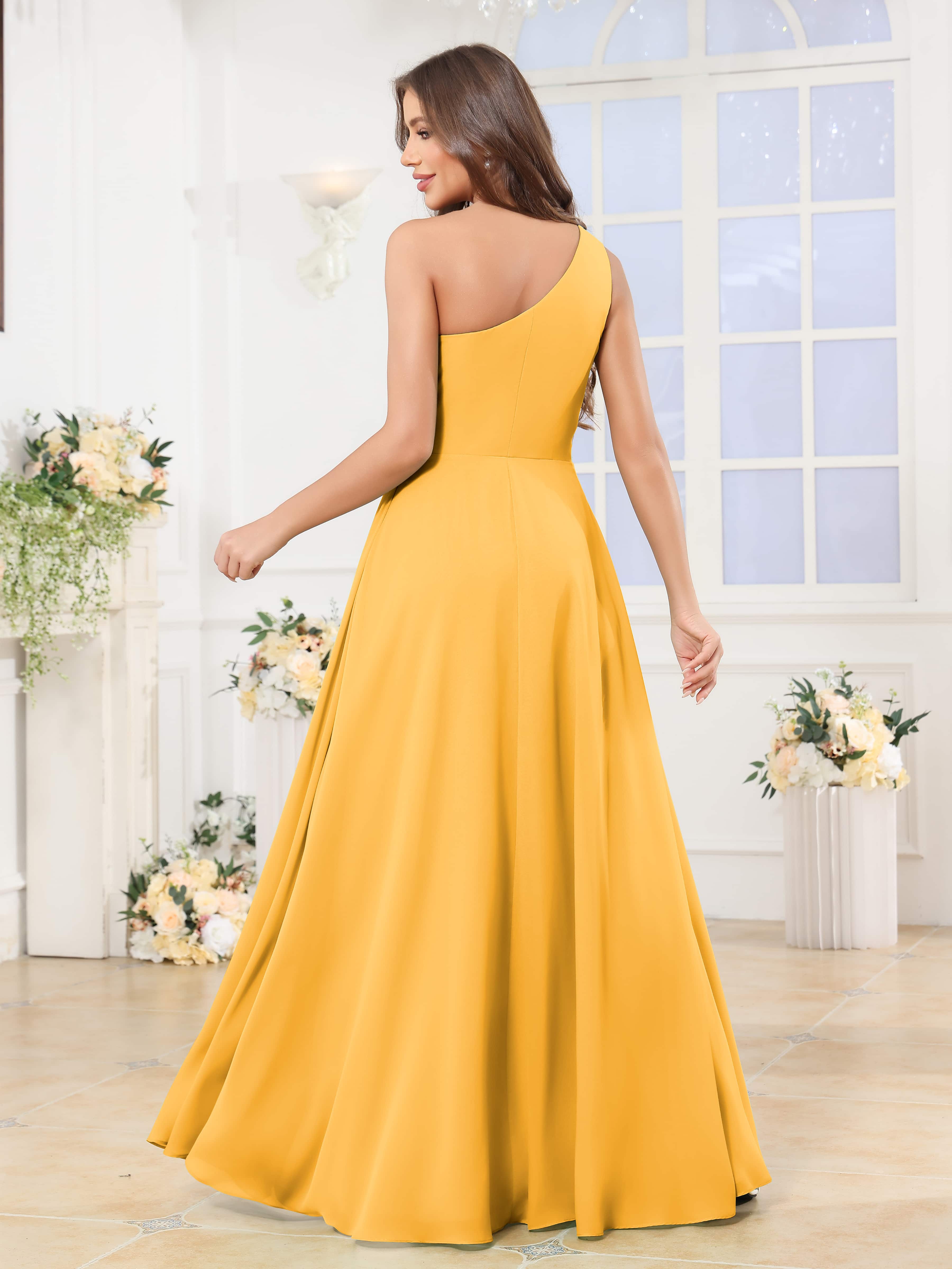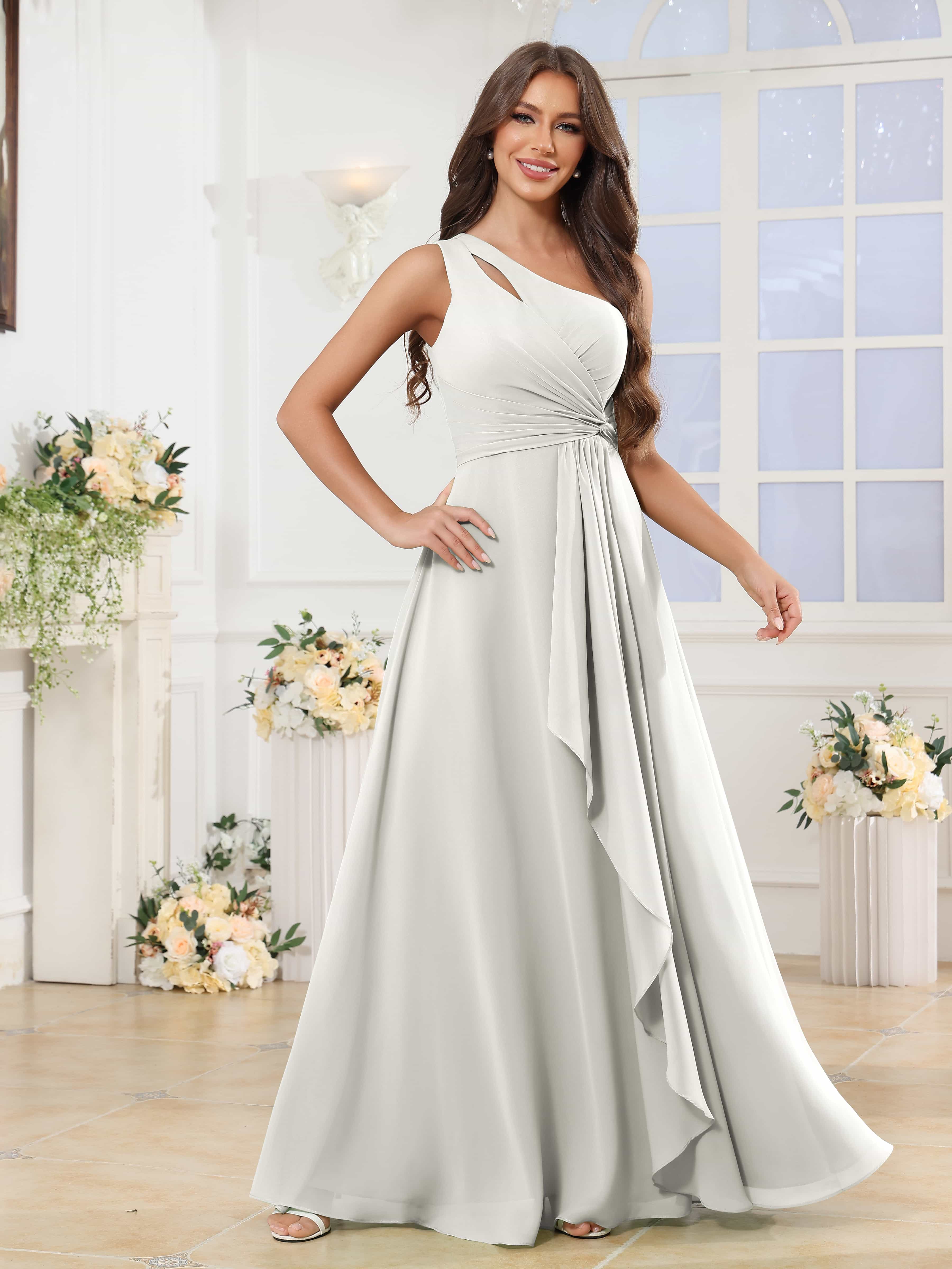 Martha Chic One Shoulder Ruched Slit Floor Length Chiffon Bridesmaid Dresses