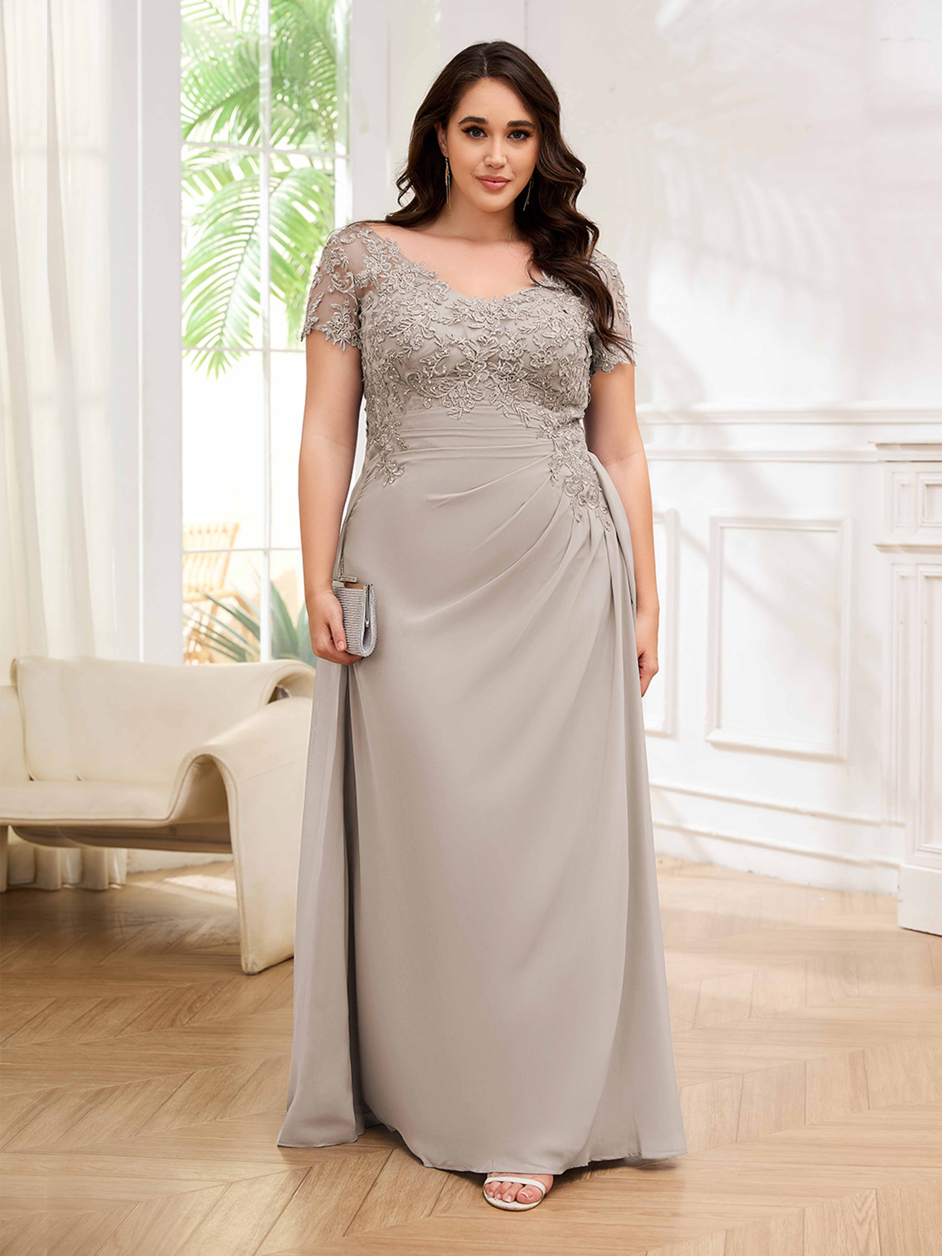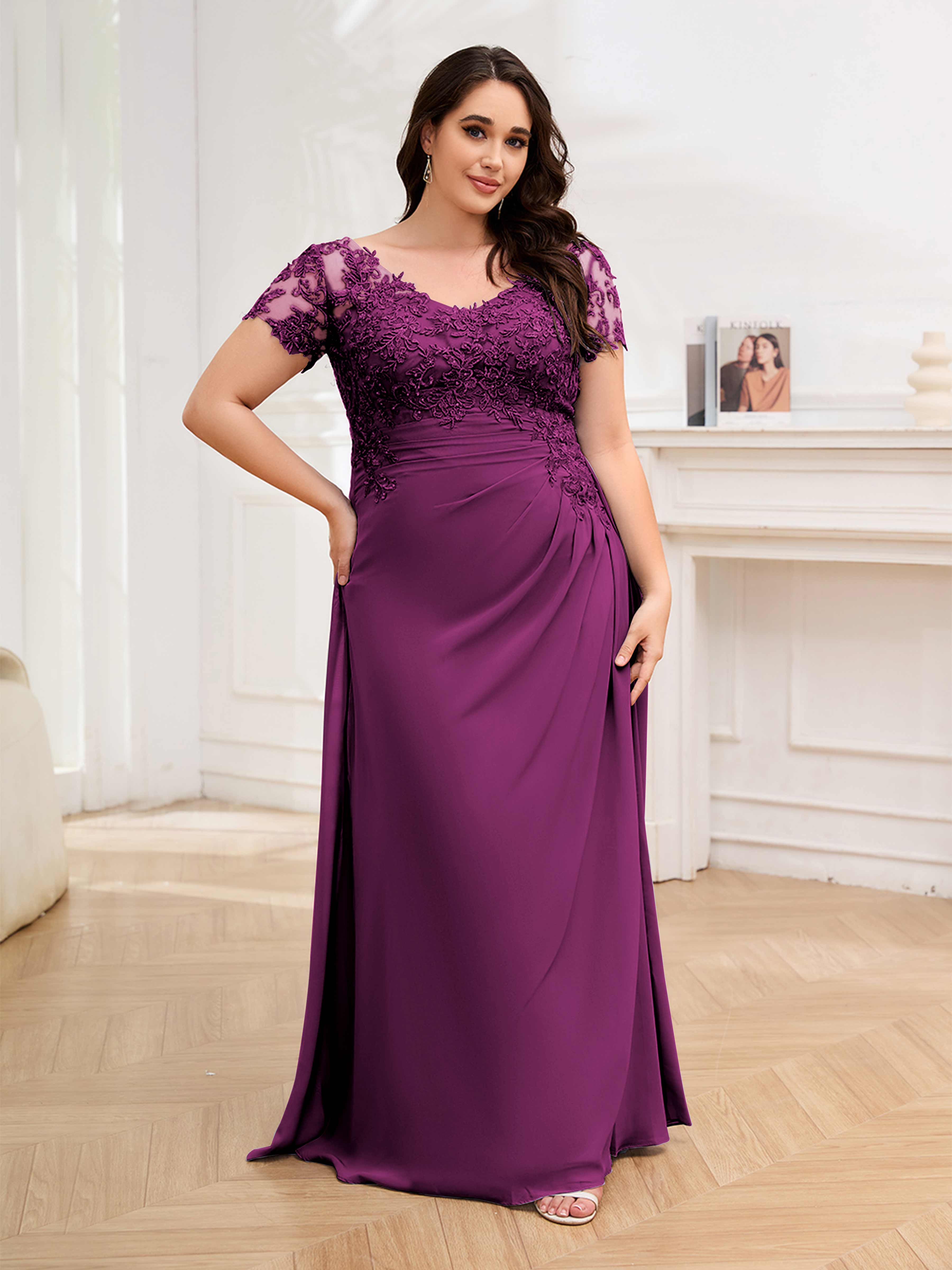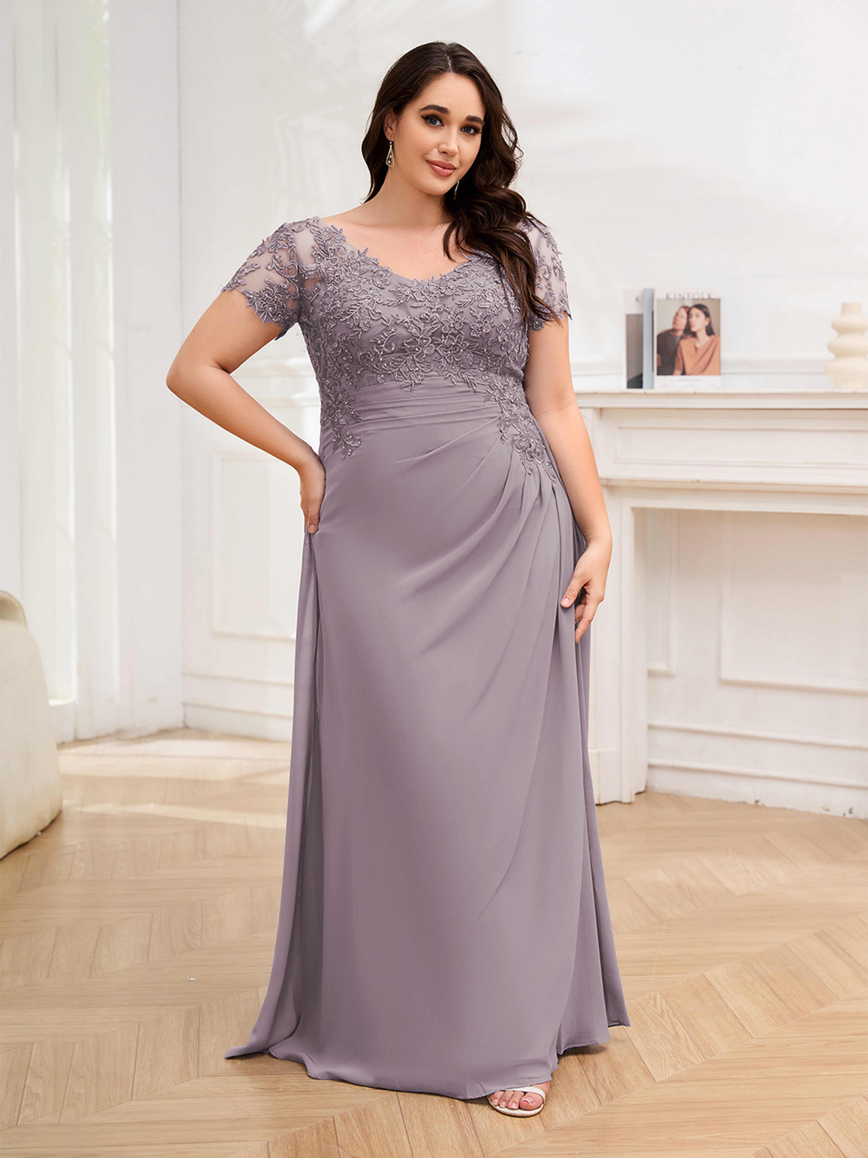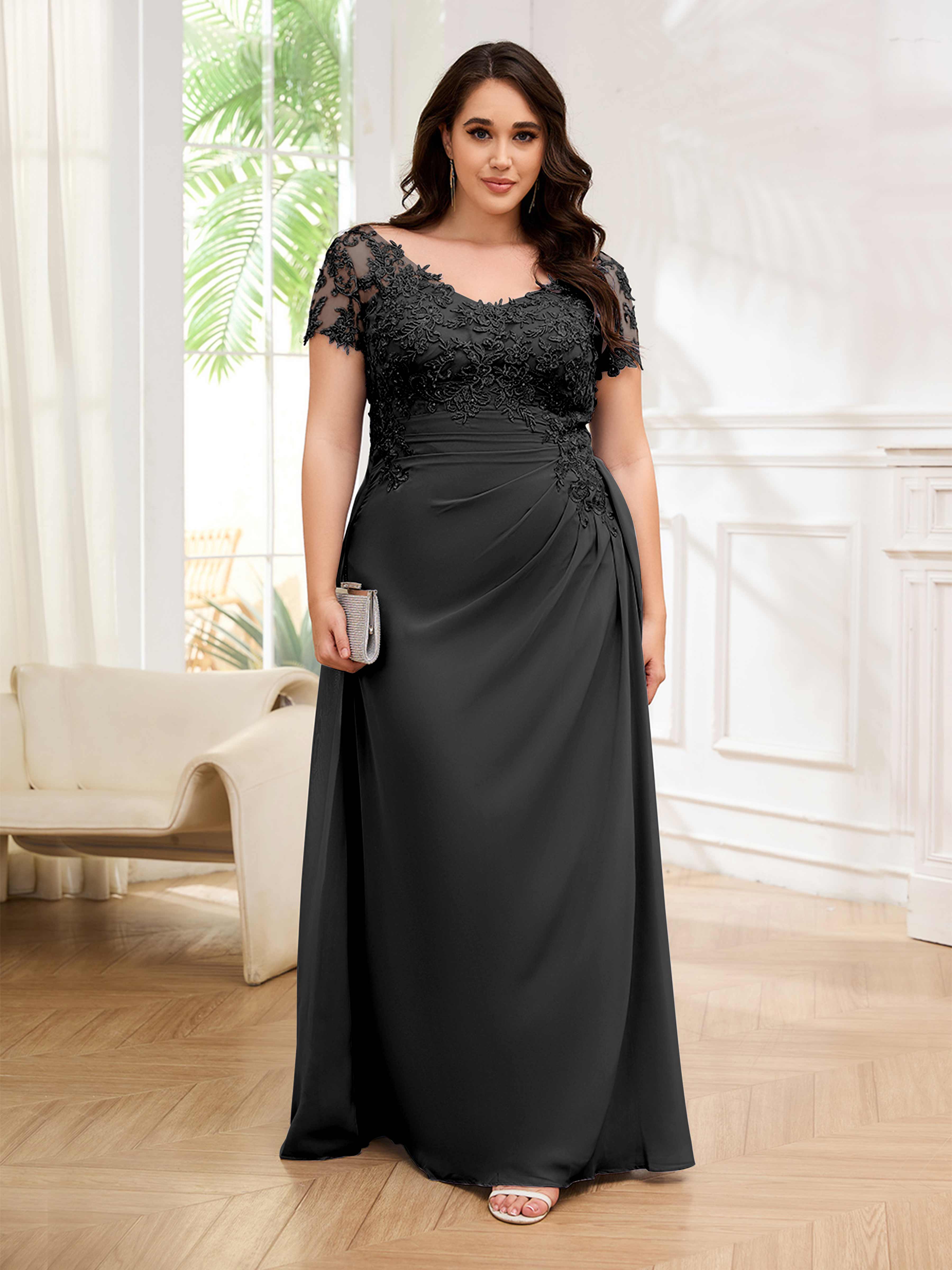 Mckinley Delicate Sheath Short Sleeves Appliques Plus Size Mother of the Bride Dresses