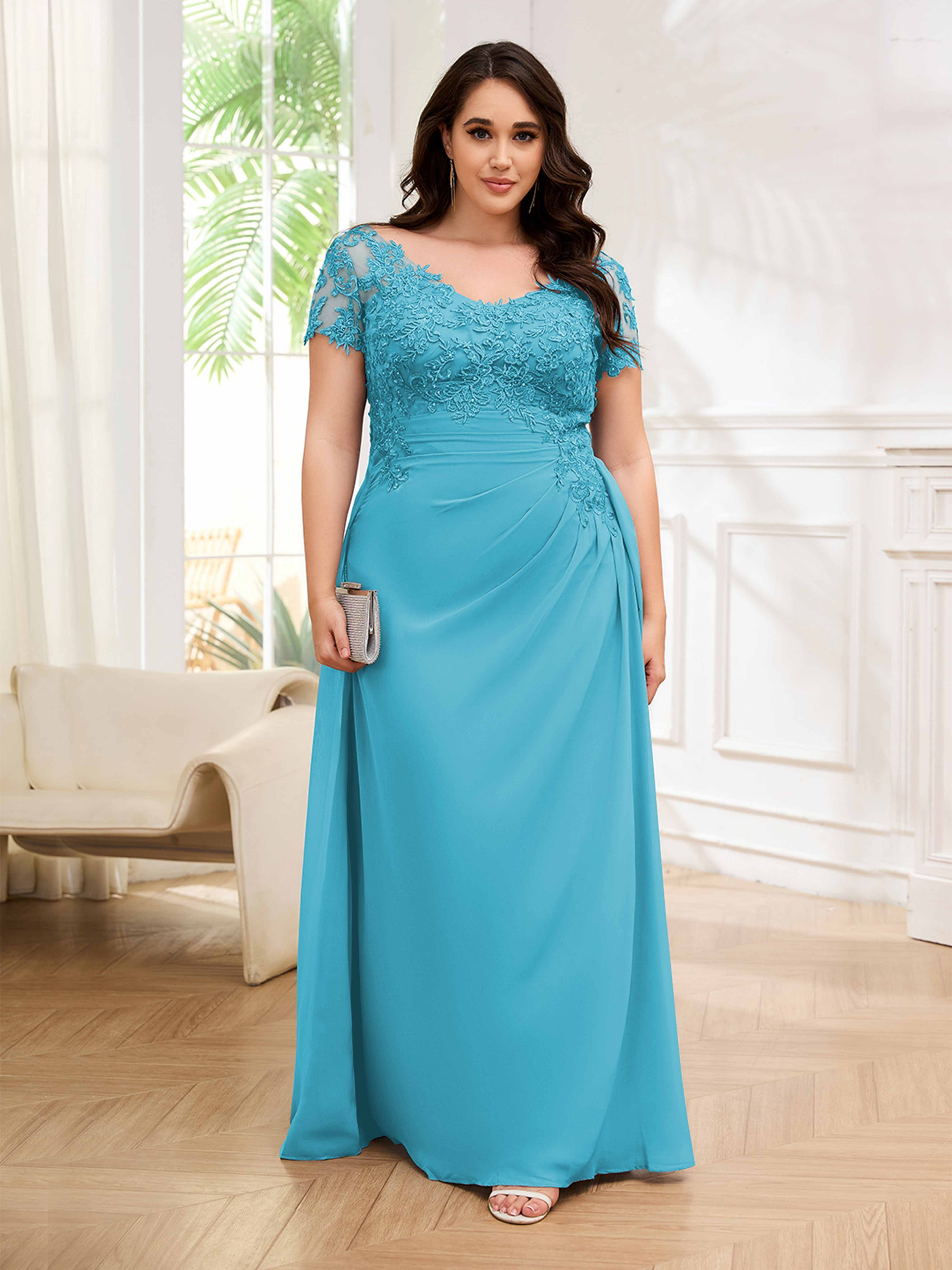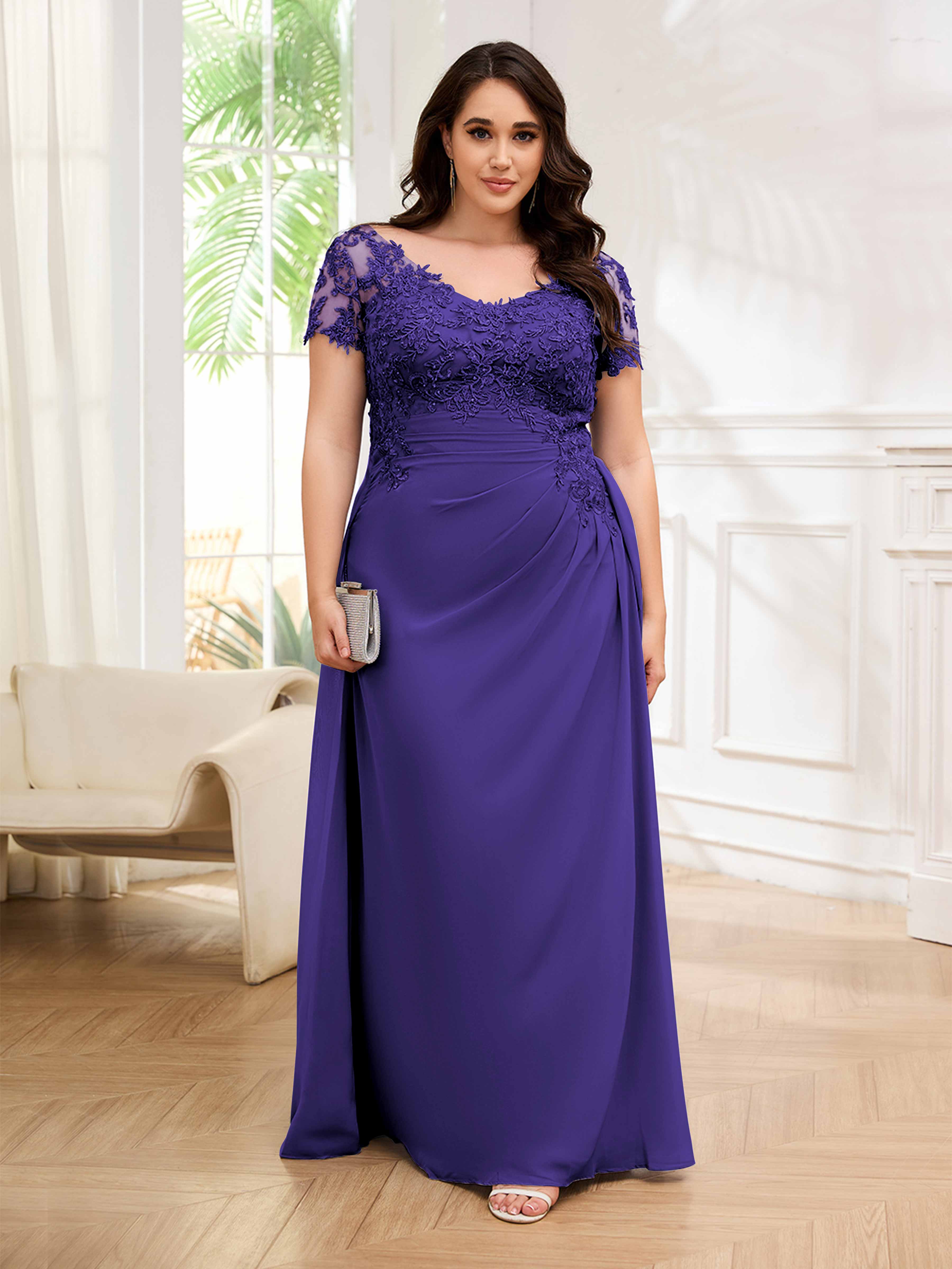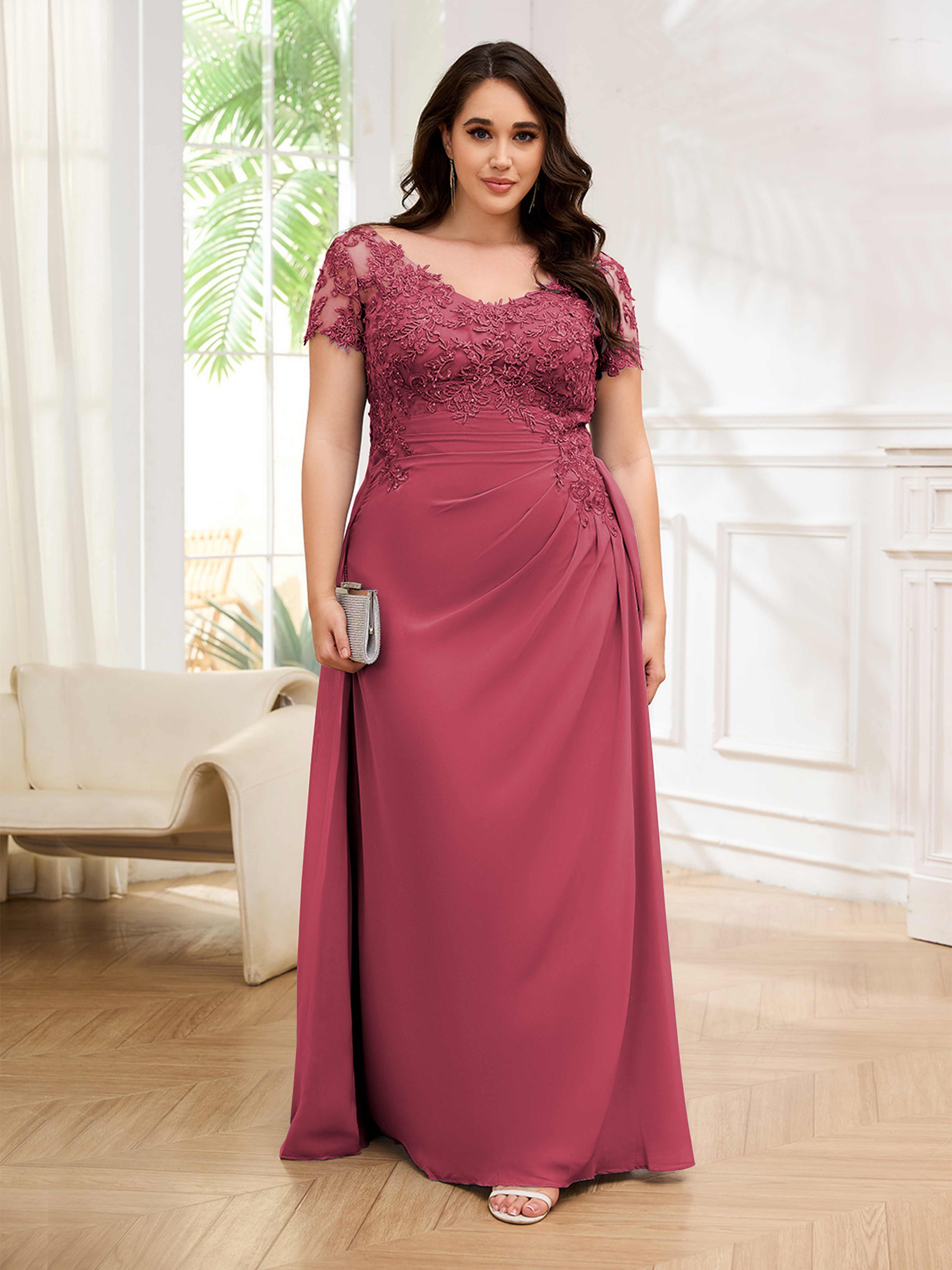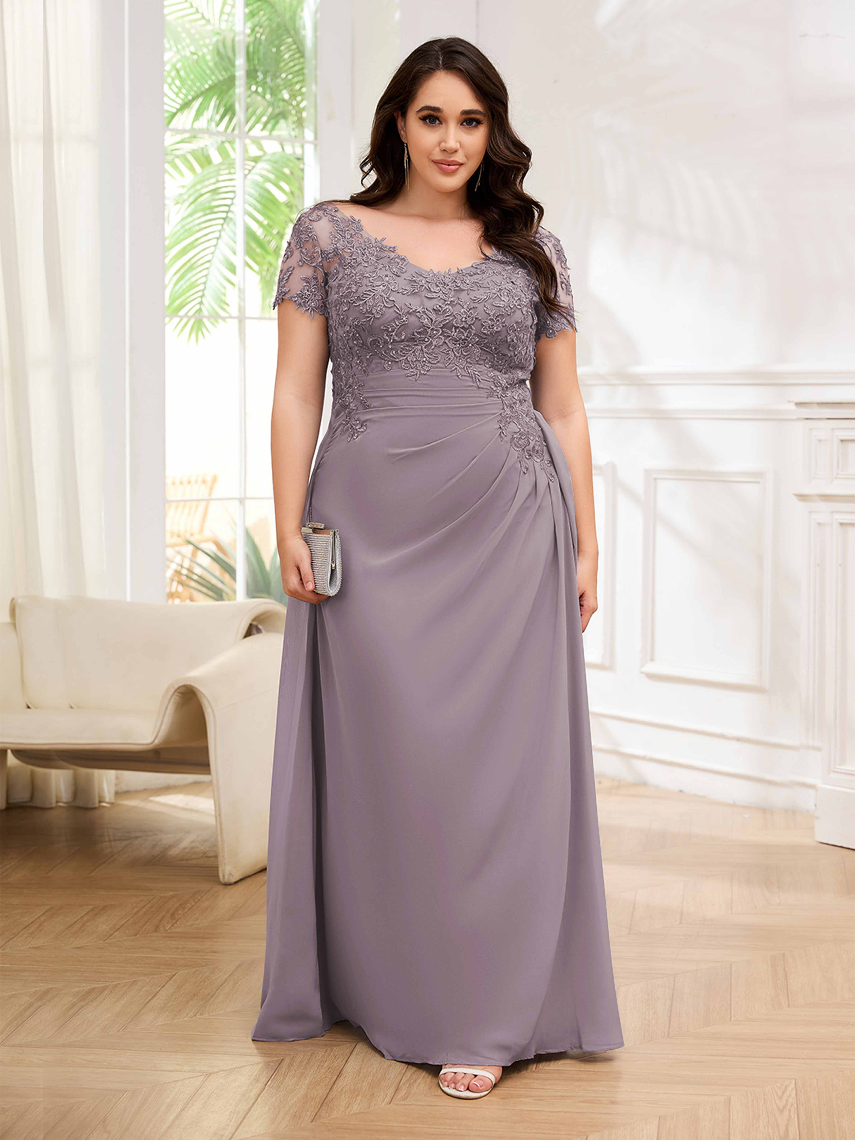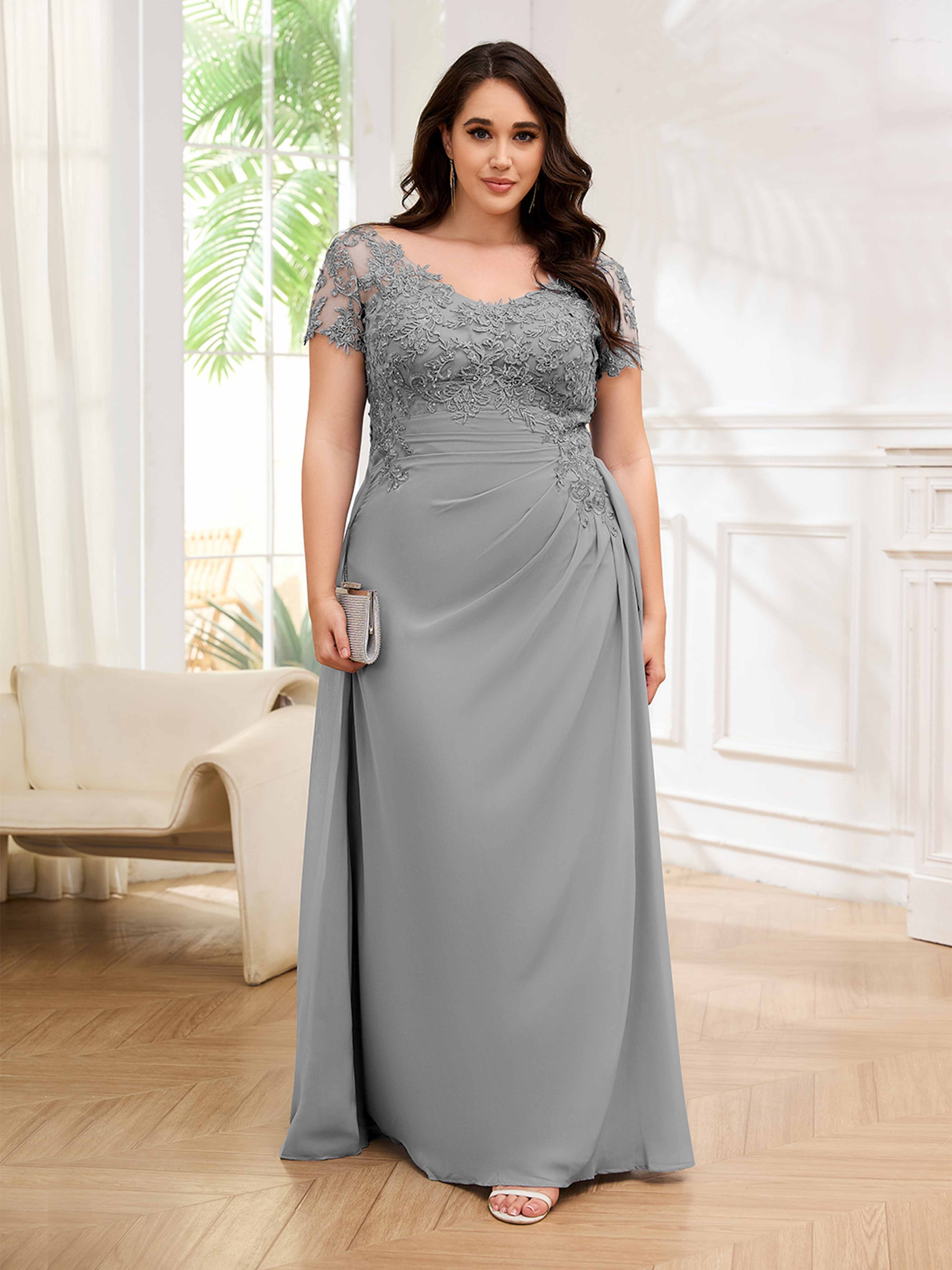 Mckinley Delicate Sheath Short Sleeves Appliques Plus Size Mother of the Bride Dresses