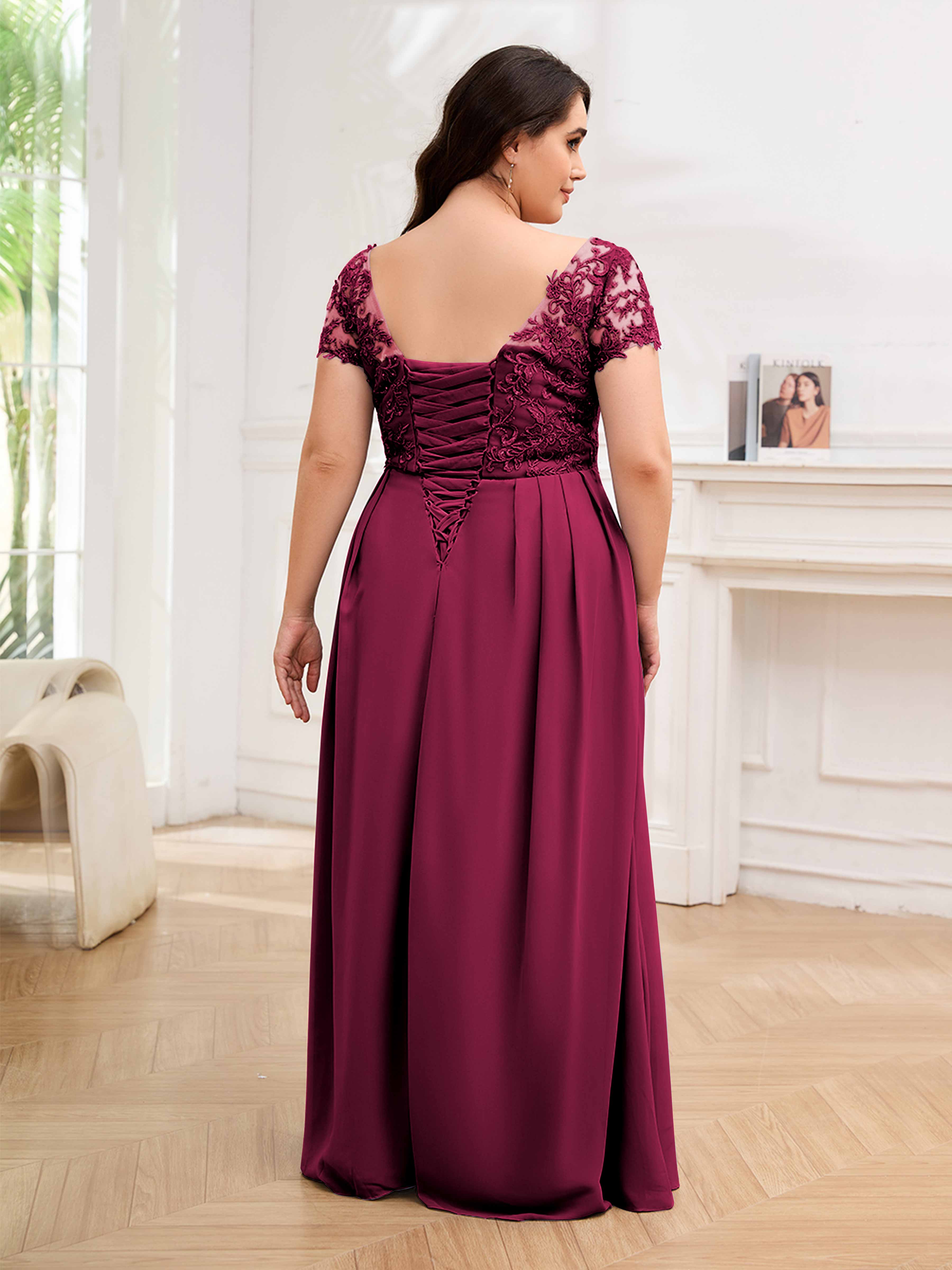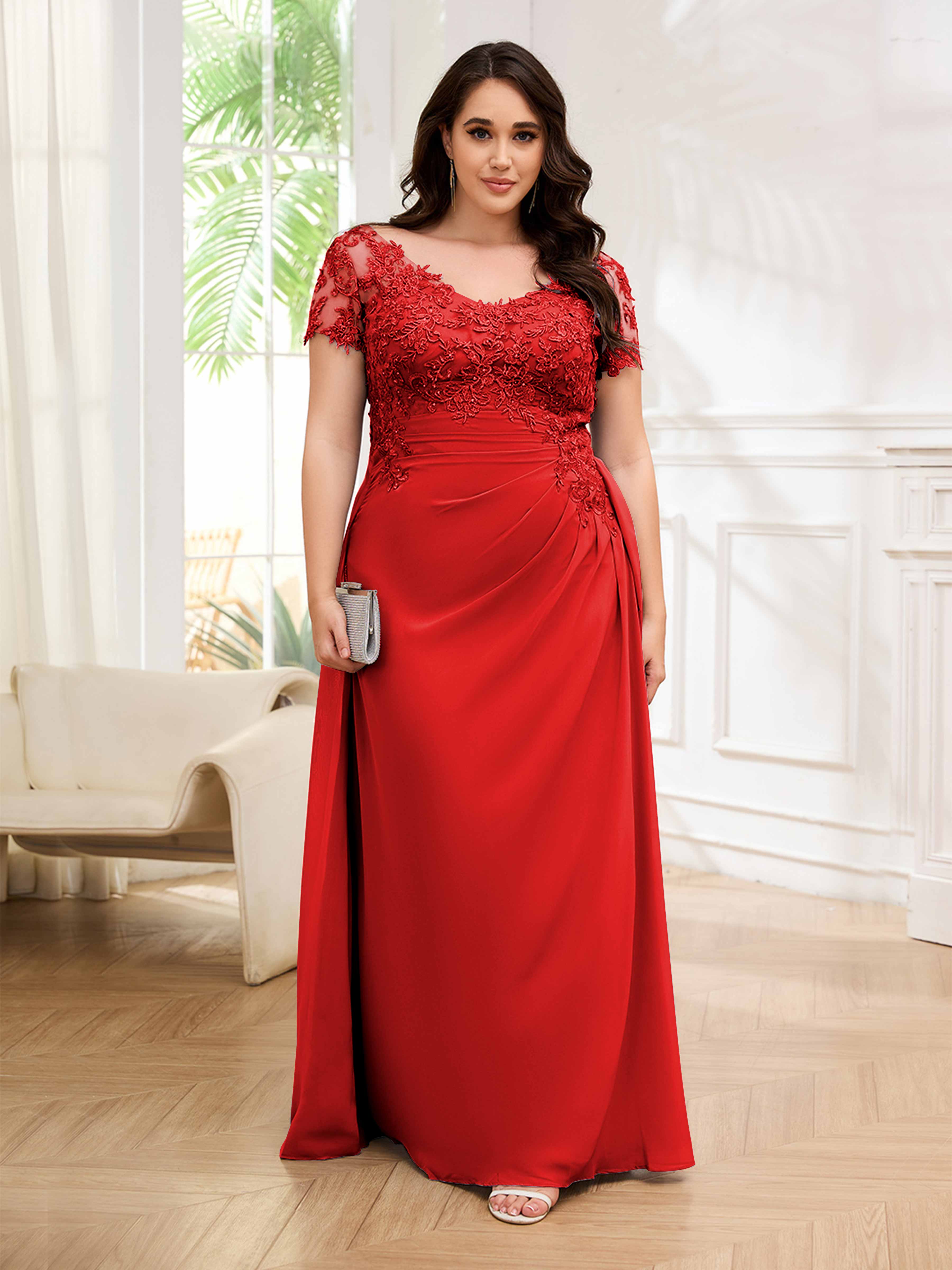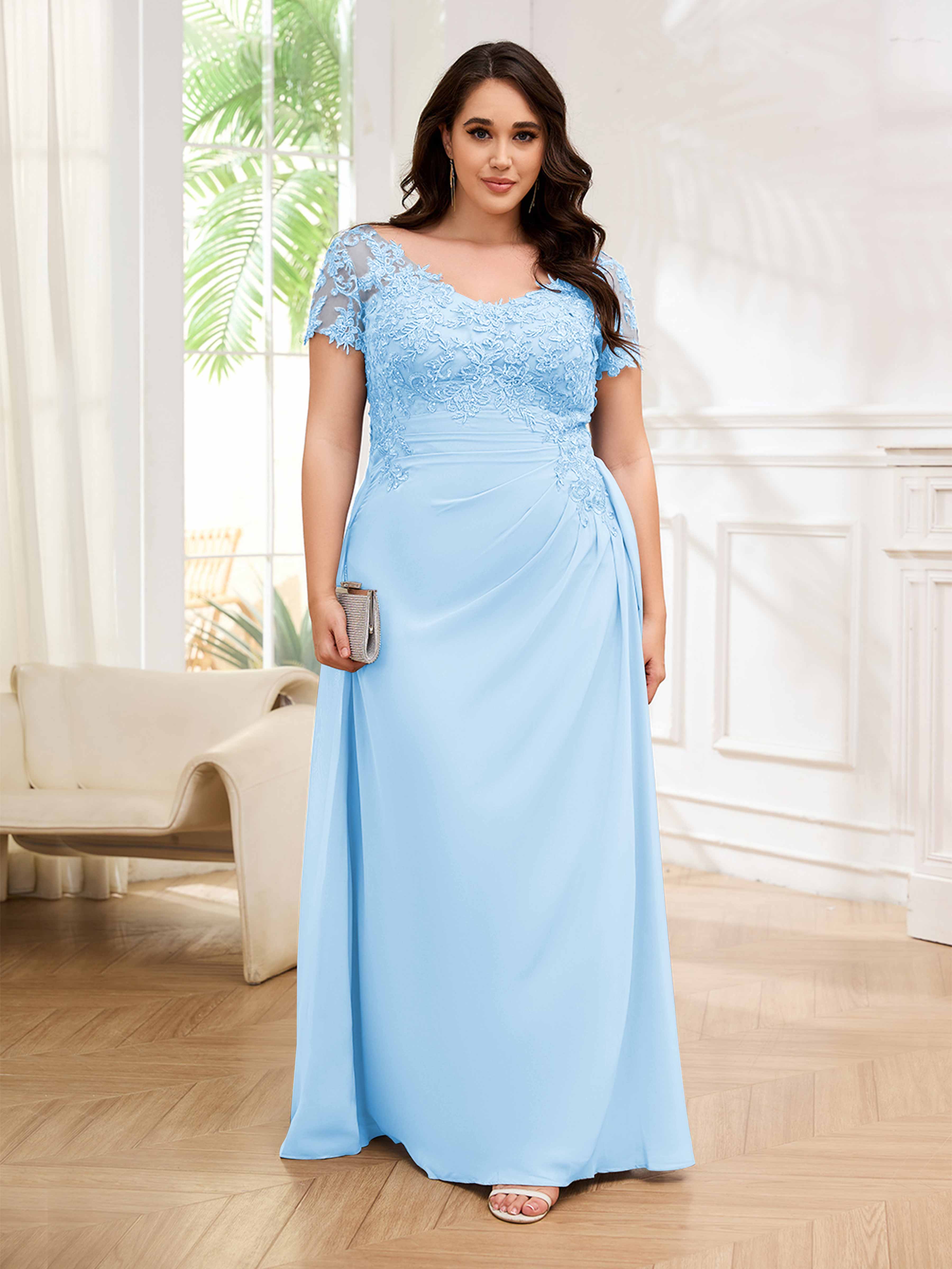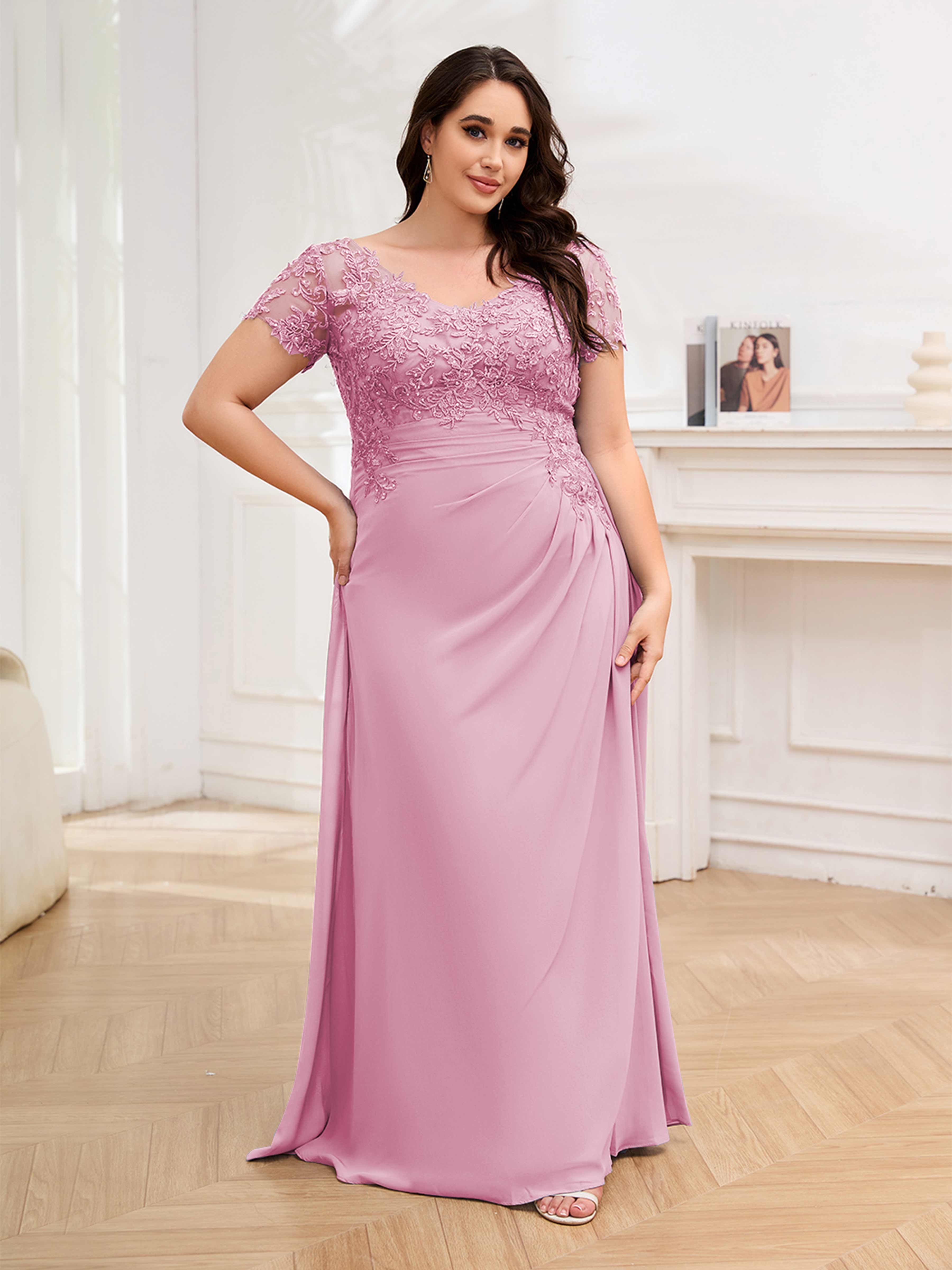 Mckinley Delicate Sheath Short Sleeves Appliques Plus Size Mother of the Bride Dresses