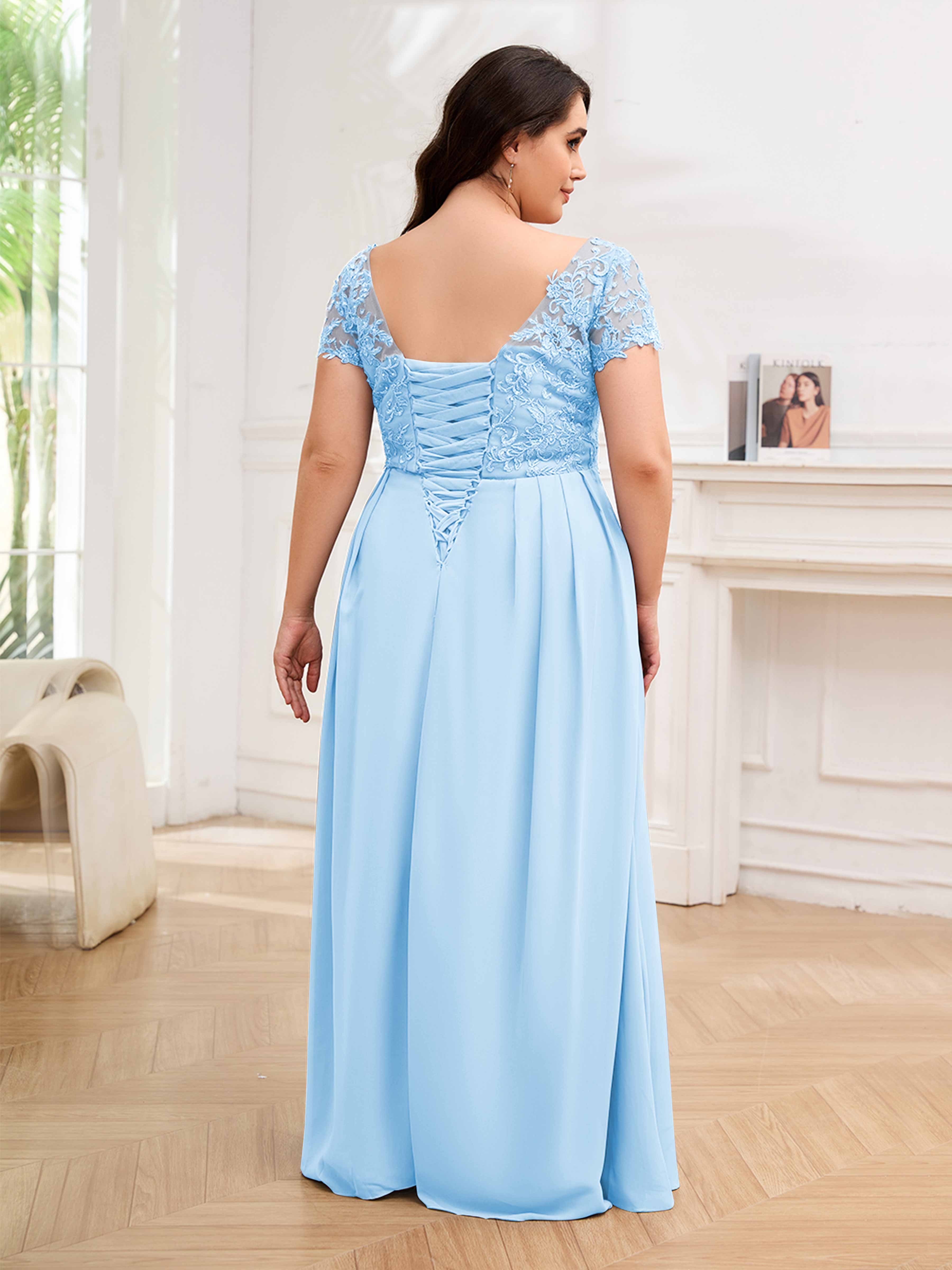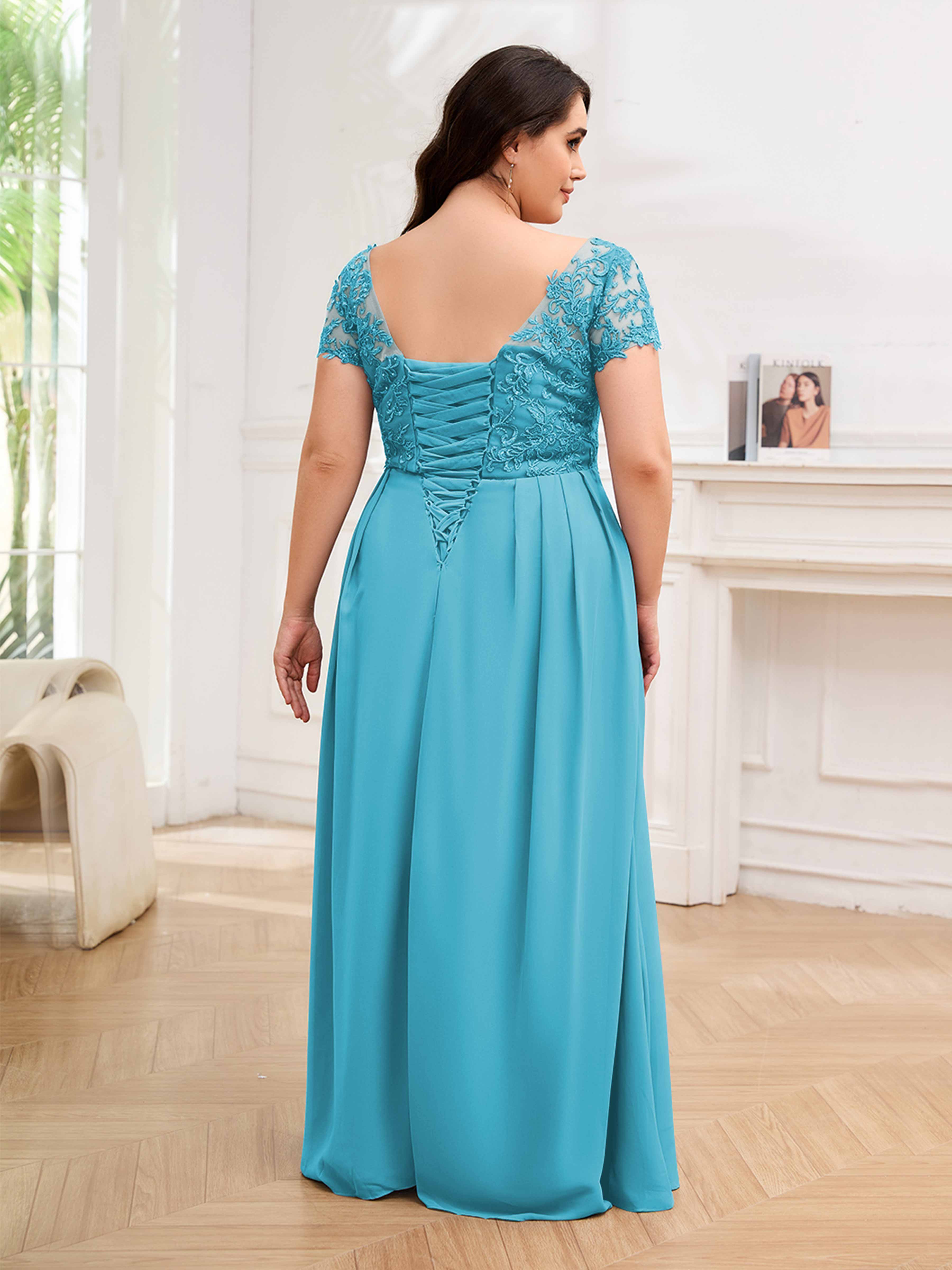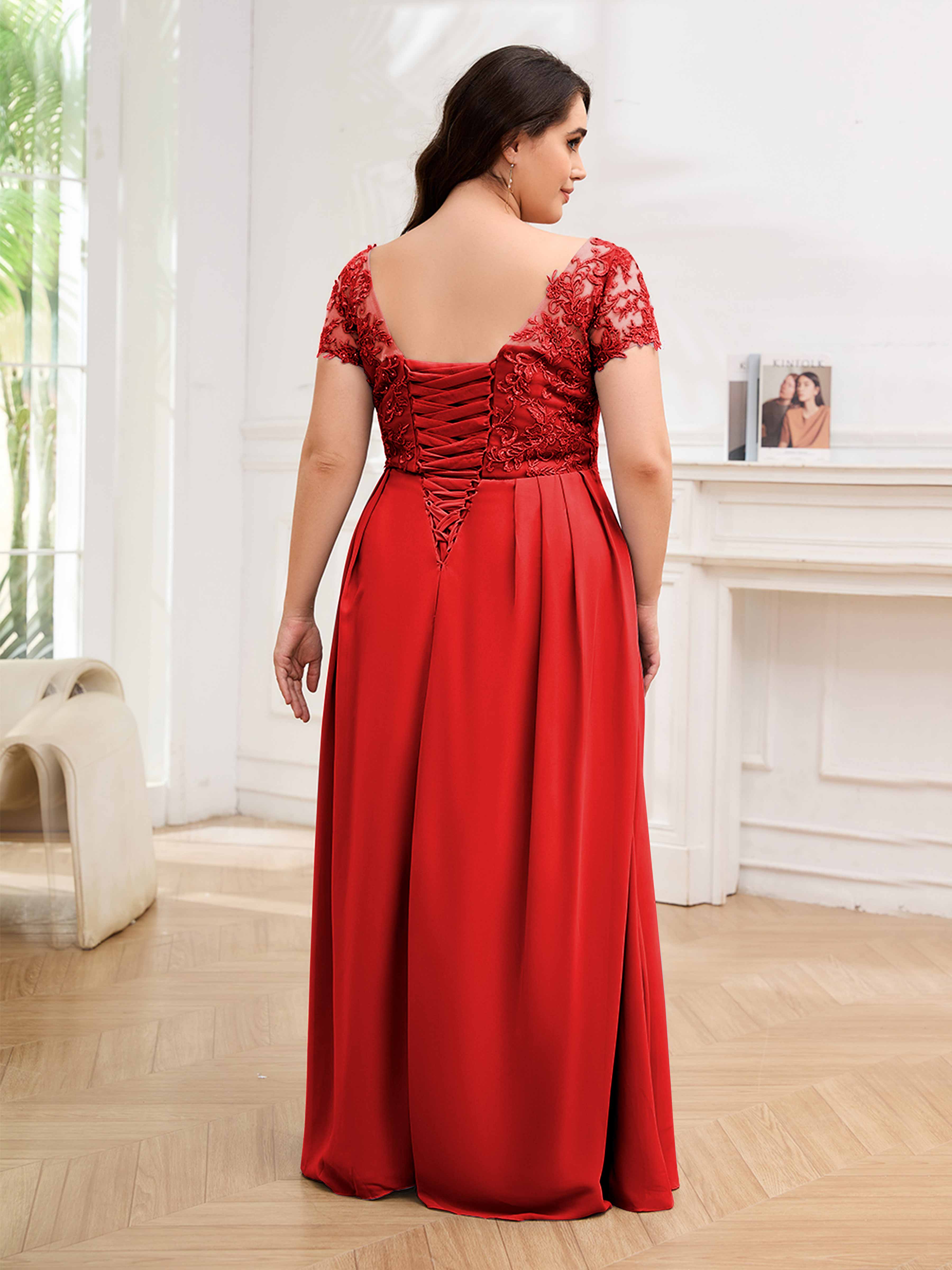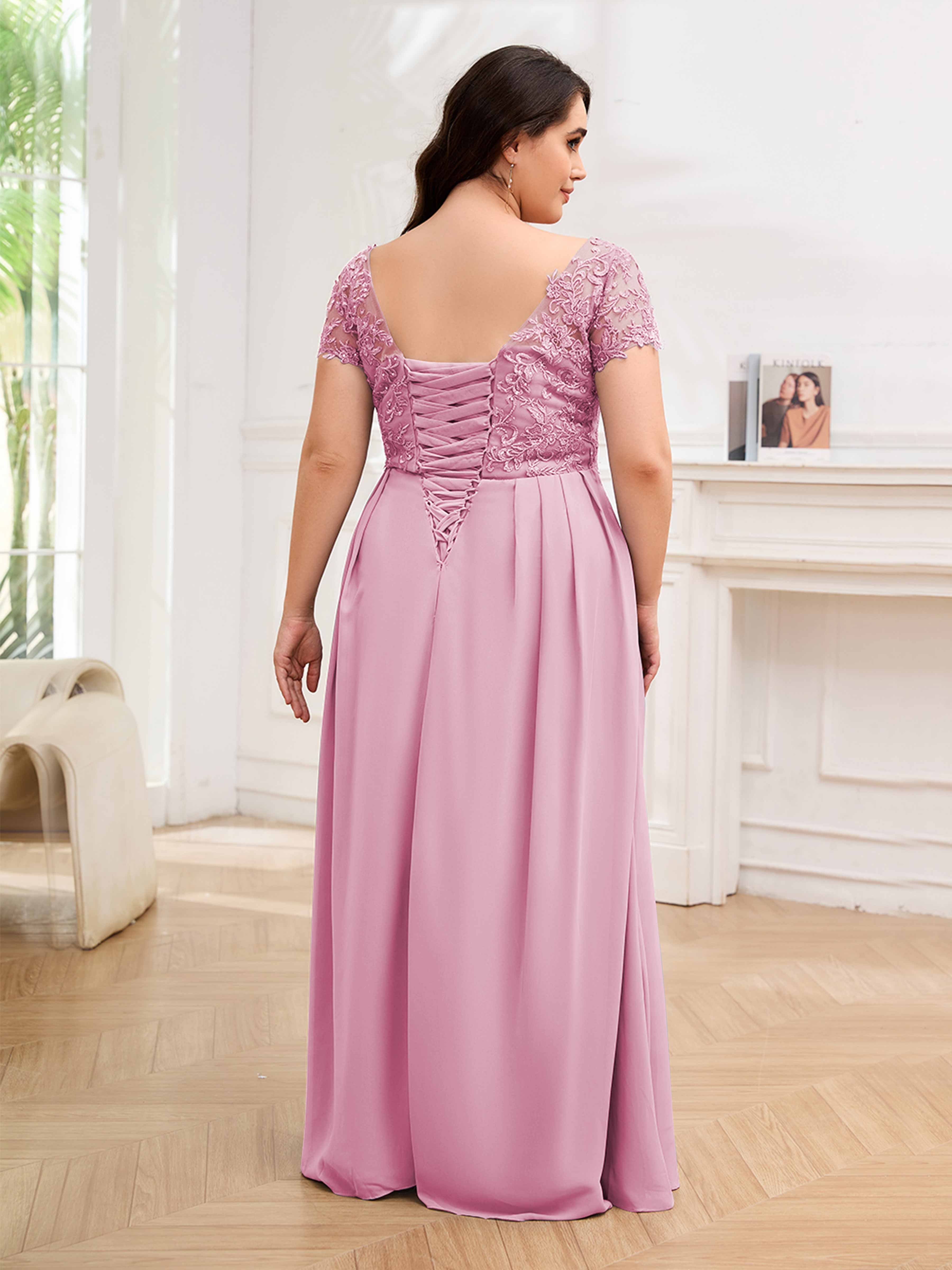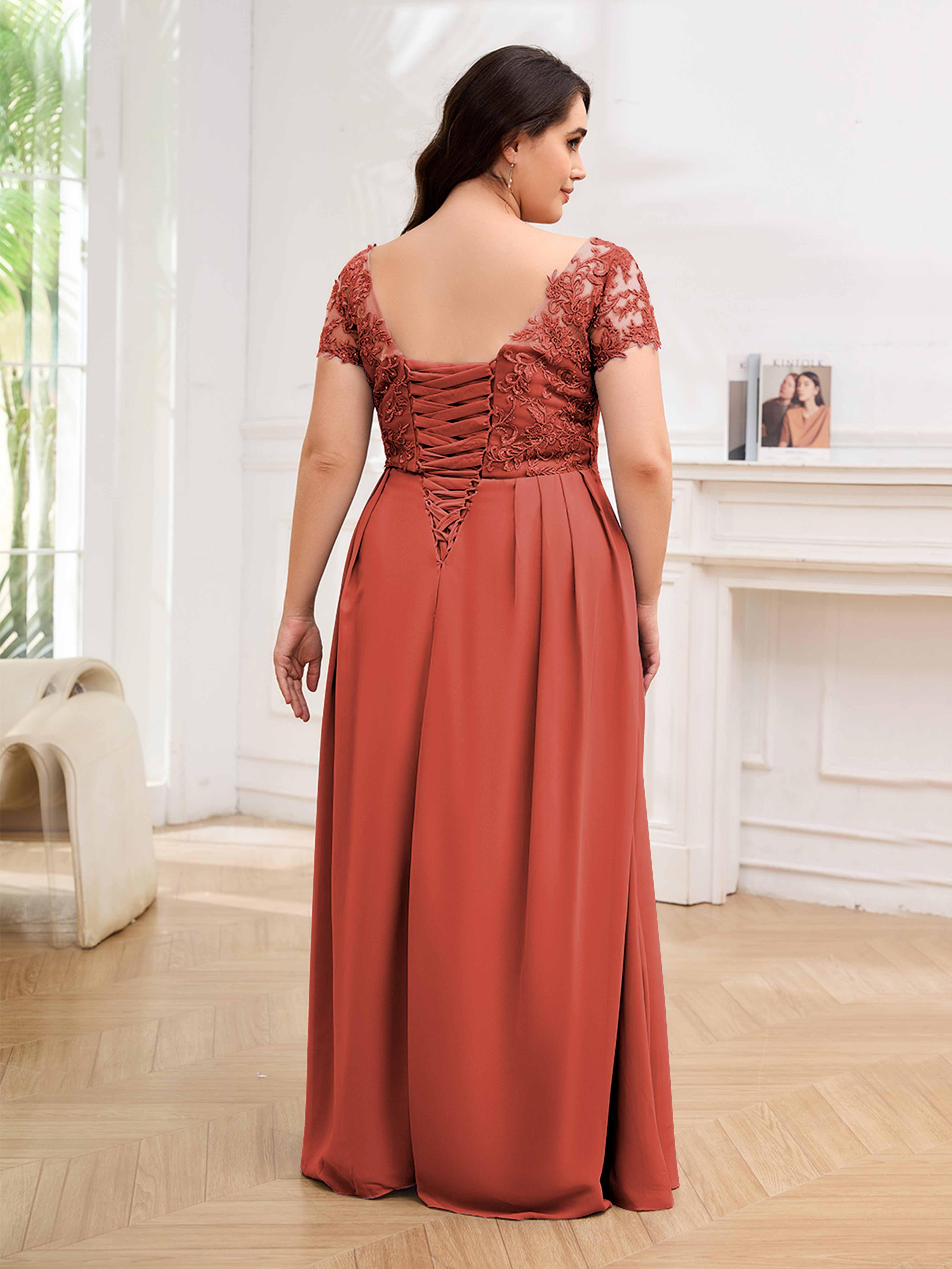 Mckinley Delicate Sheath Short Sleeves Appliques Plus Size Mother of the Bride Dresses