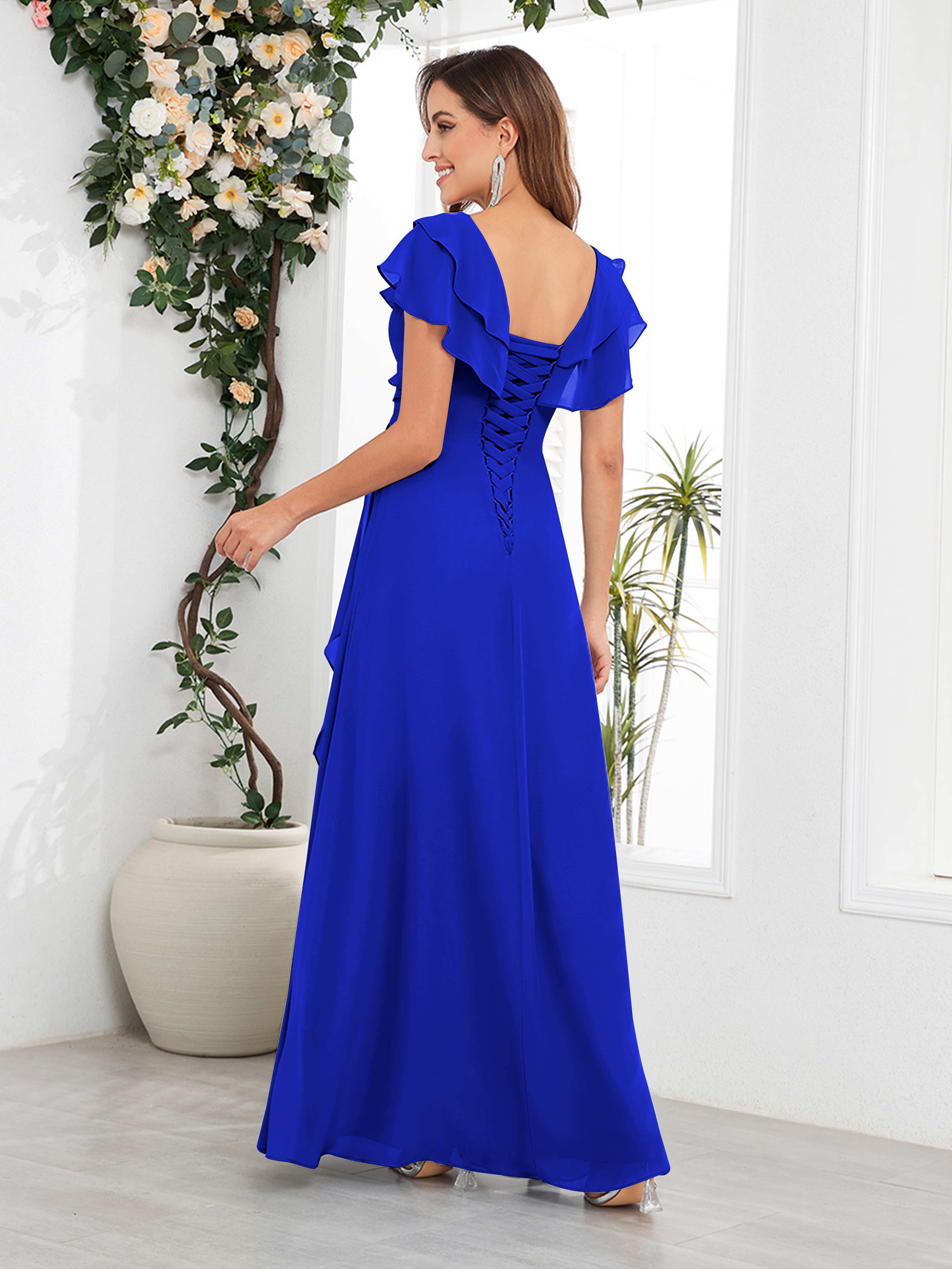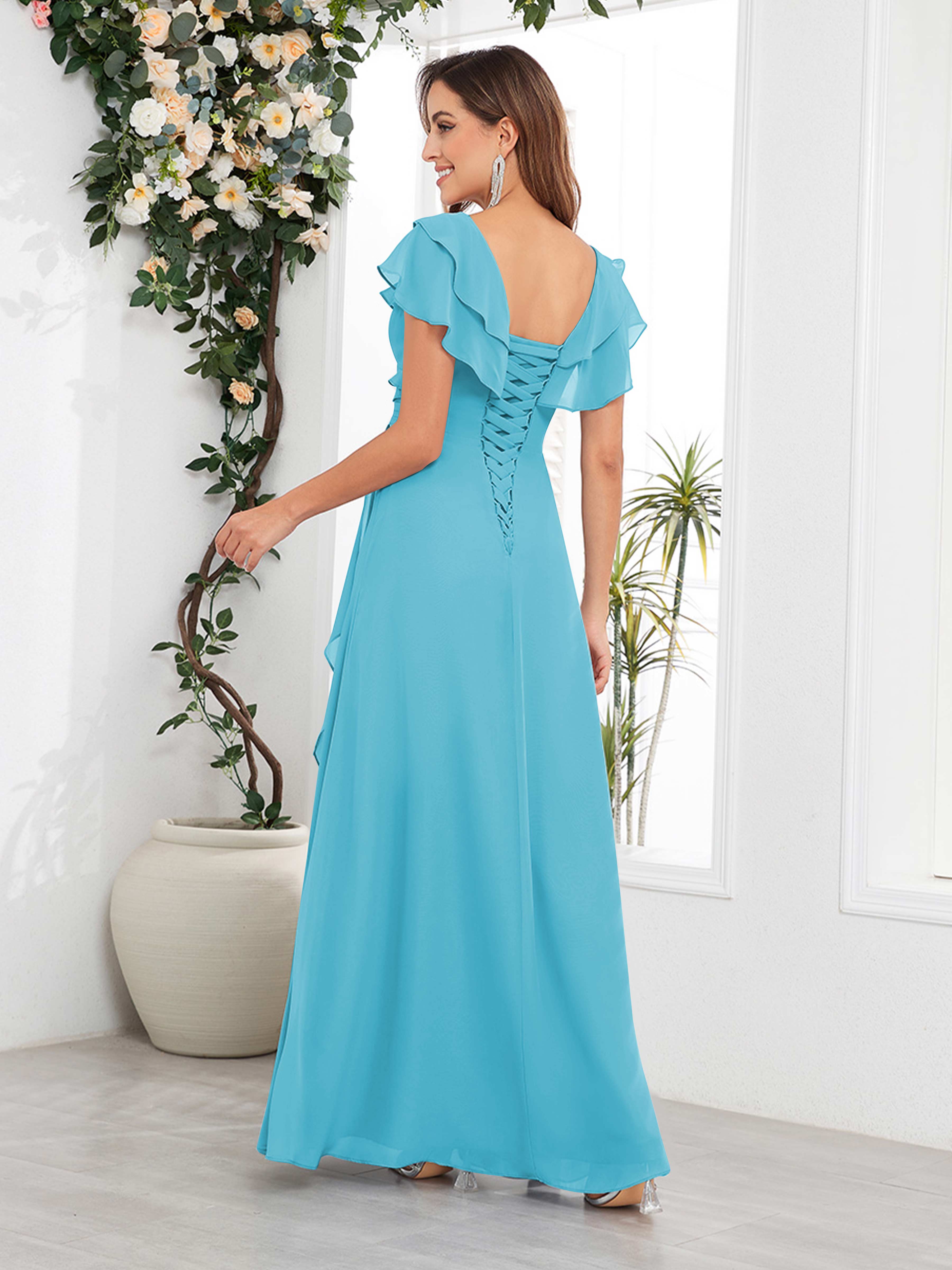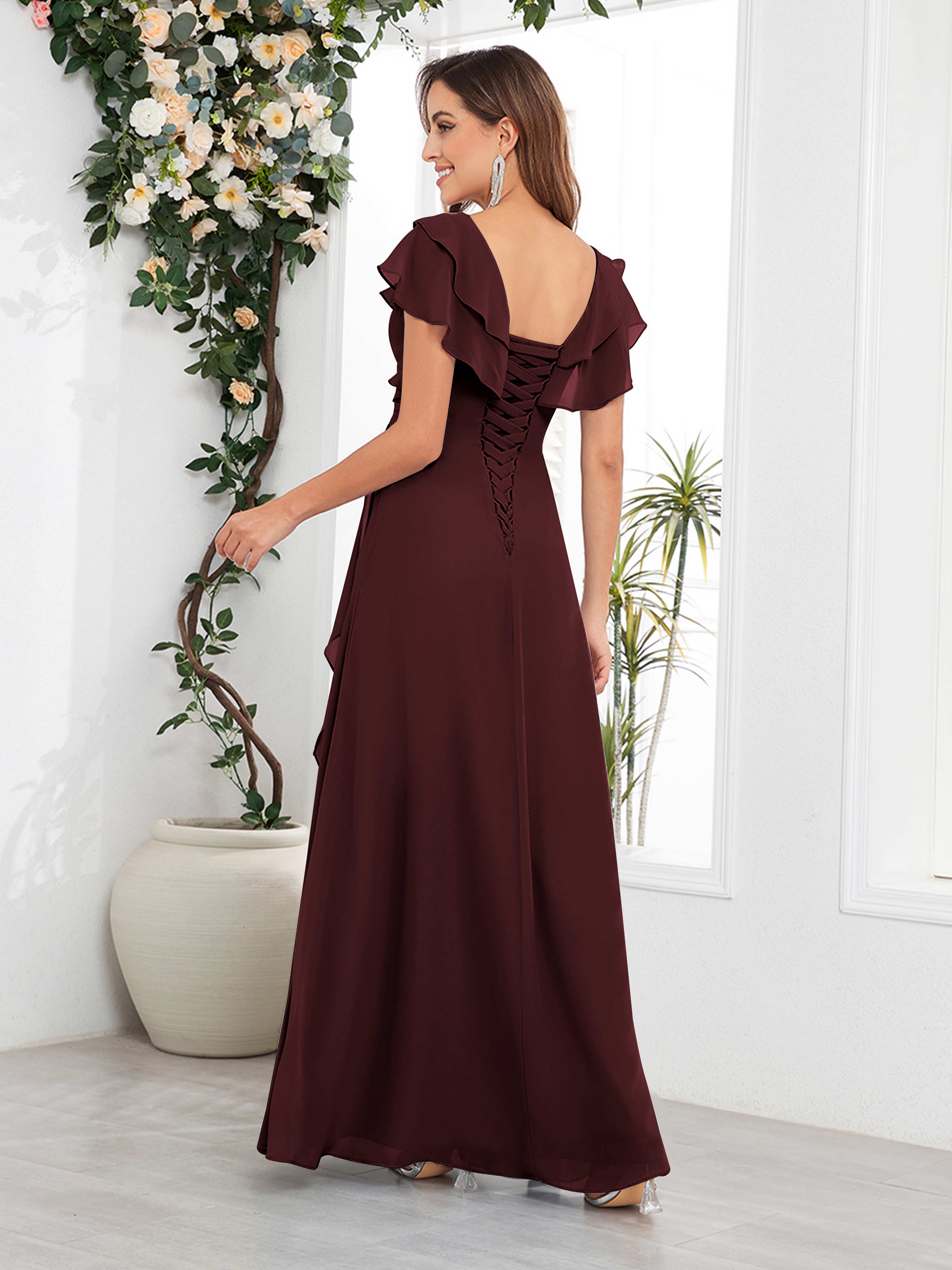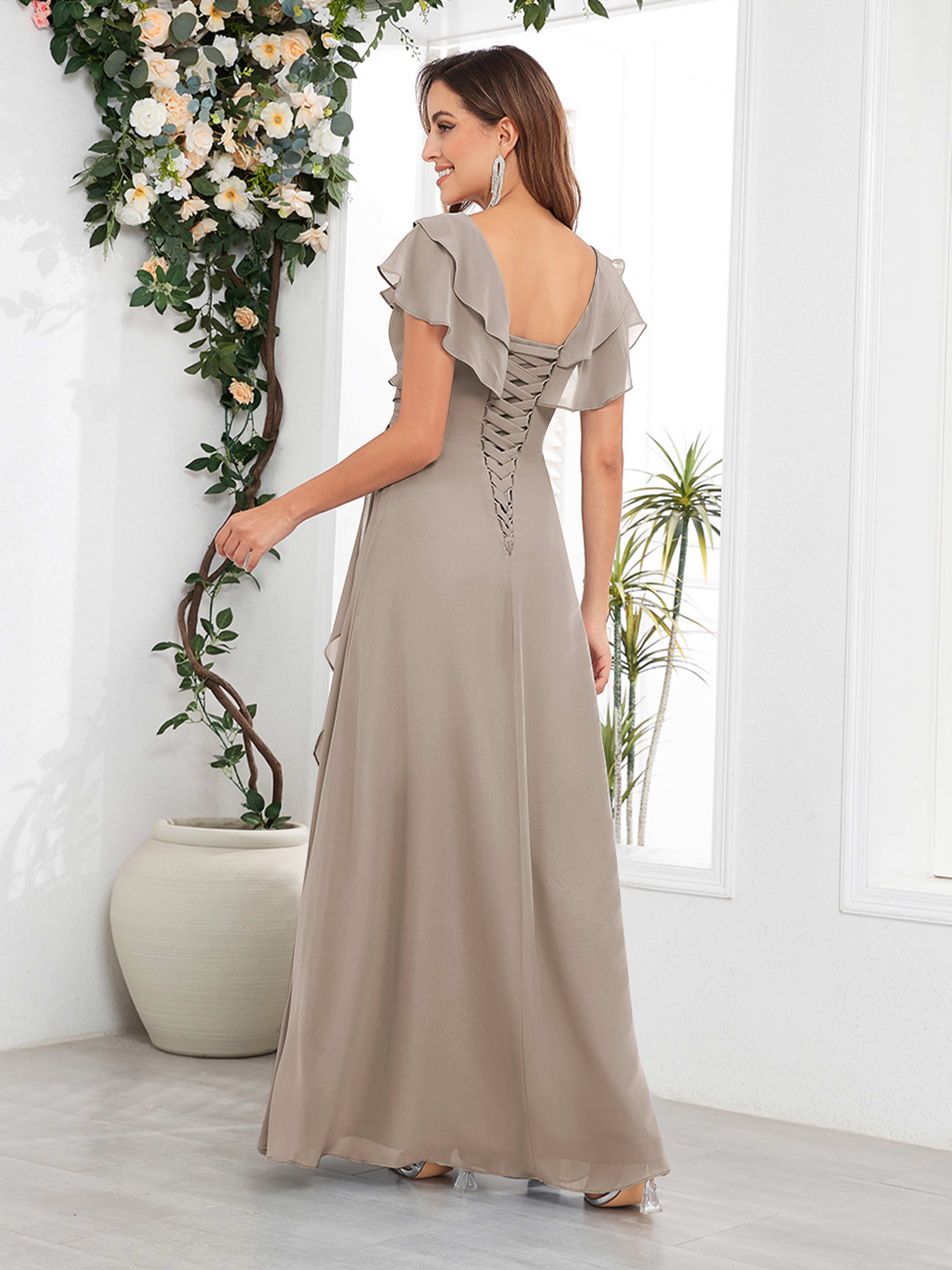 Meadow Trendy V Neck Ruffles Beaded Long Chiffon Mother Of The Bride Dresses