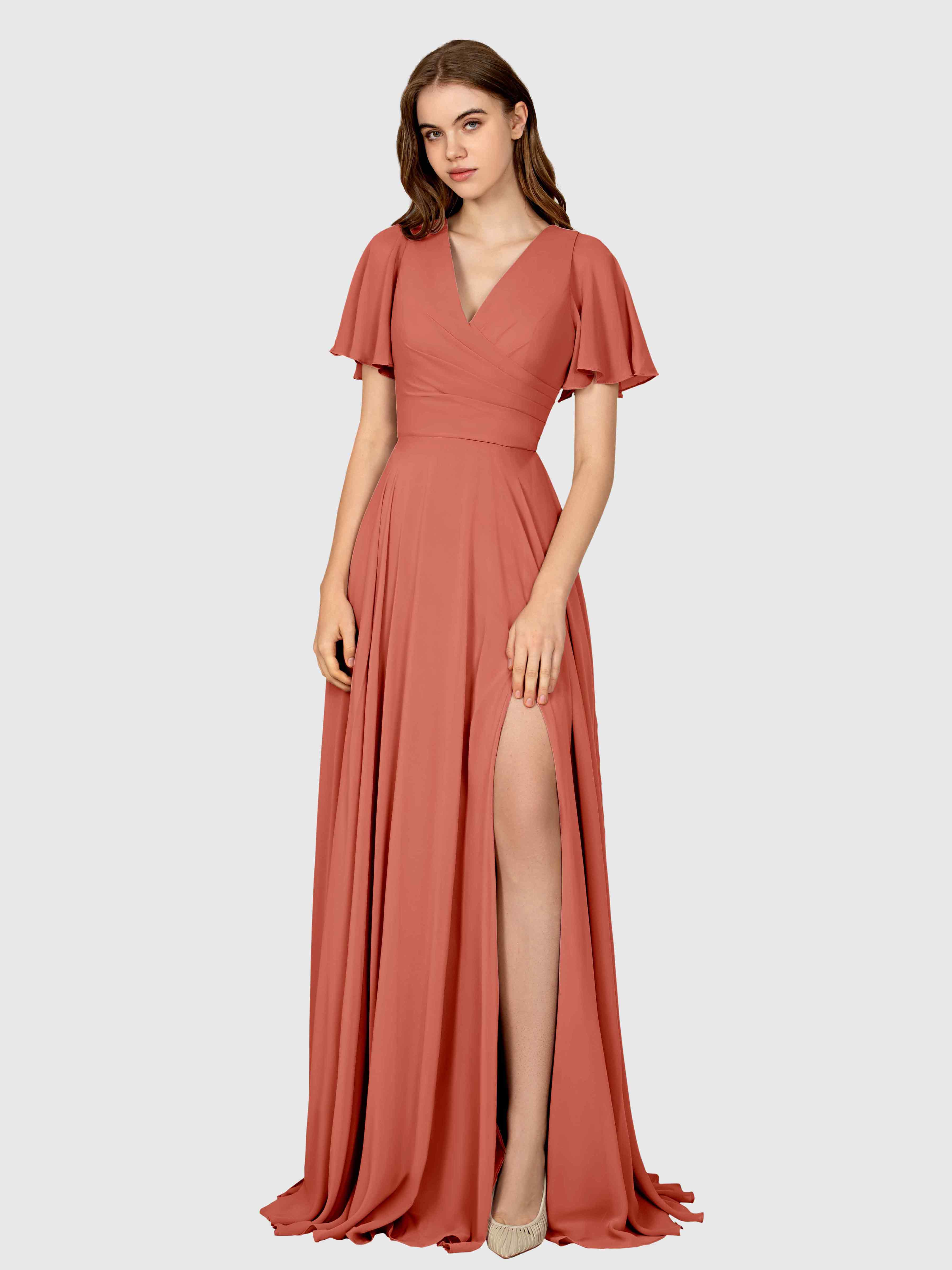 Mia Modern Slit Ruched Floor Length Bridesmaid Dresses