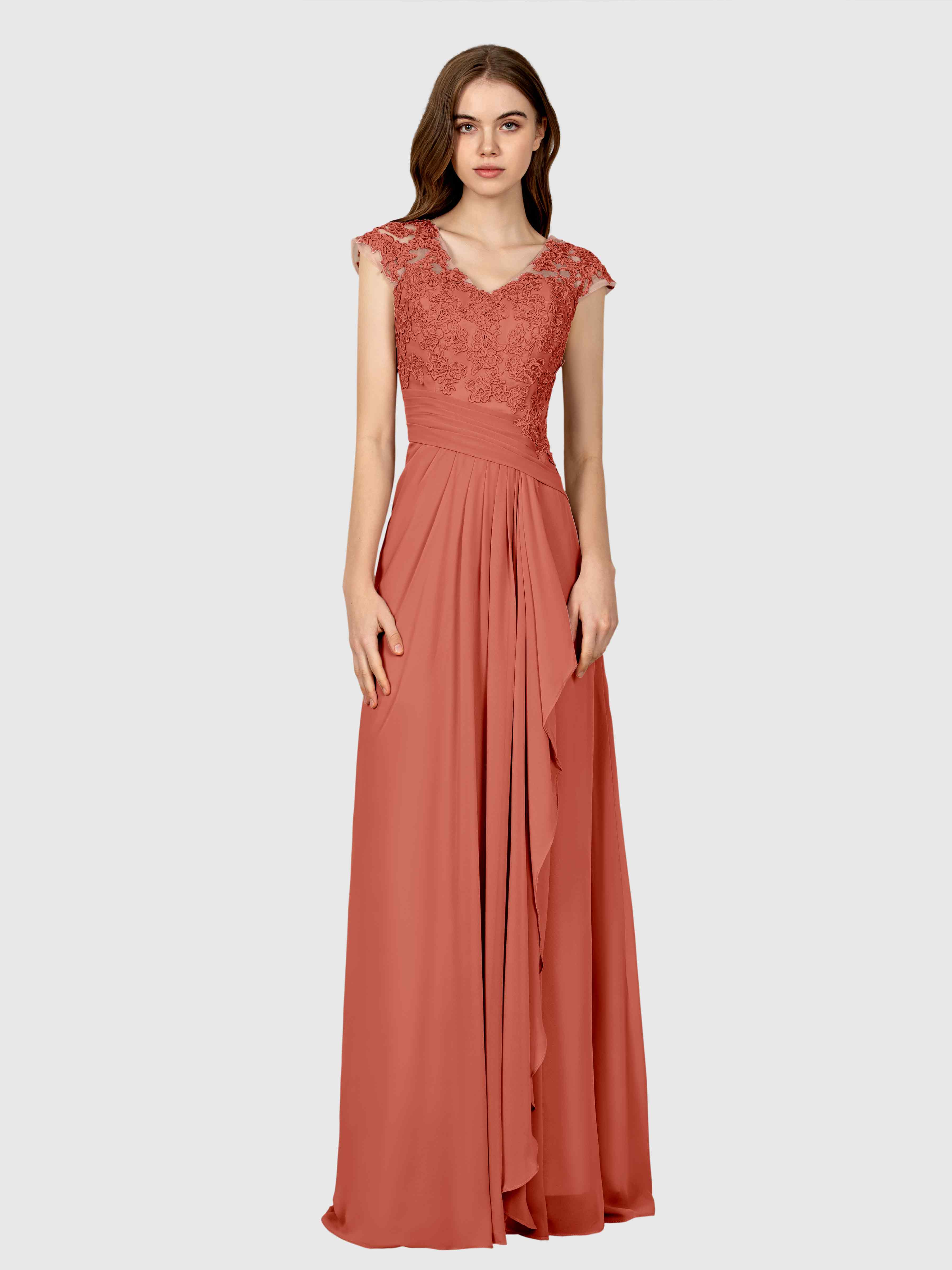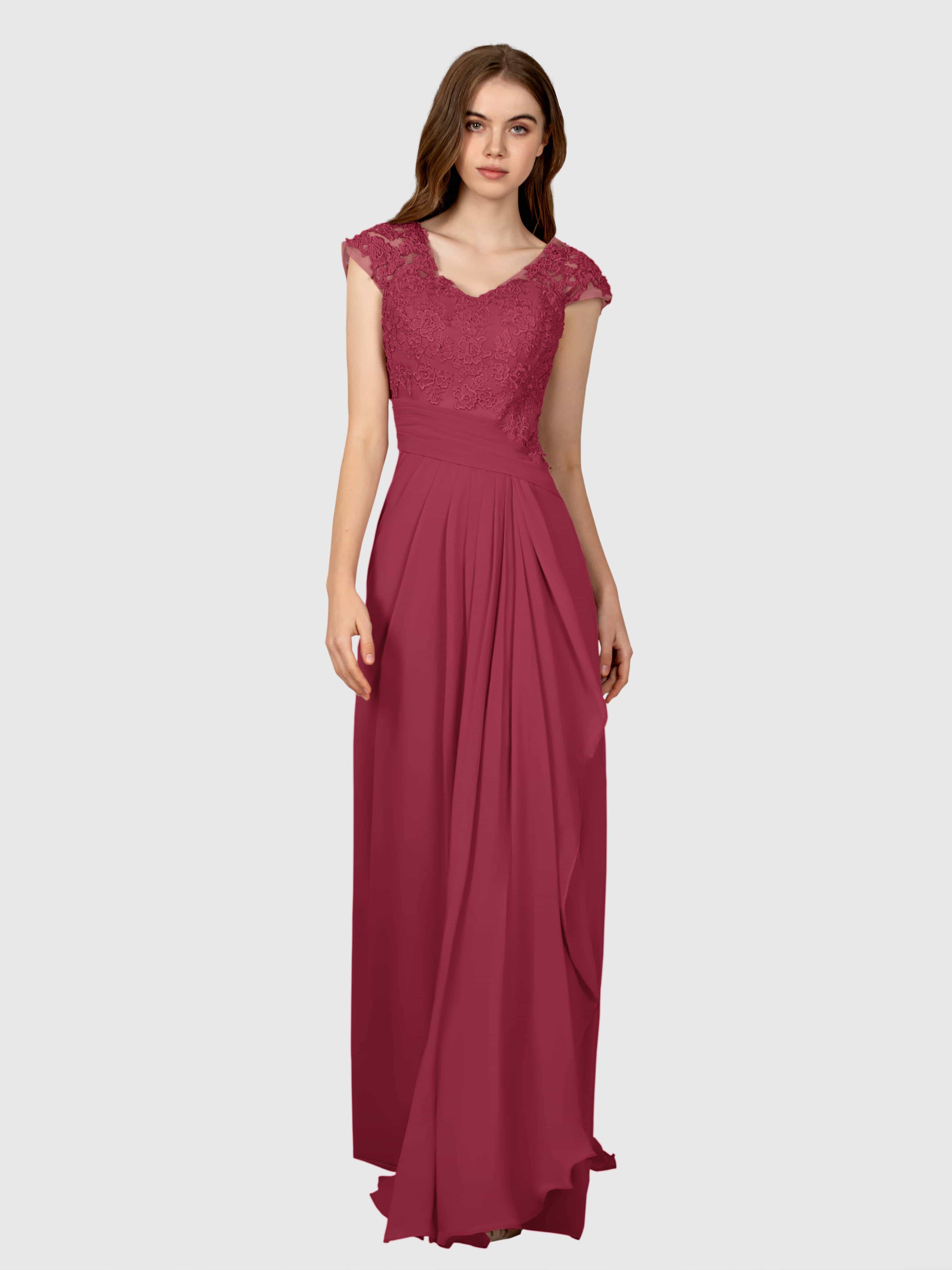 Mila Charming Ruffles Pleats Lace Chiffon Bridesmaid Dresses