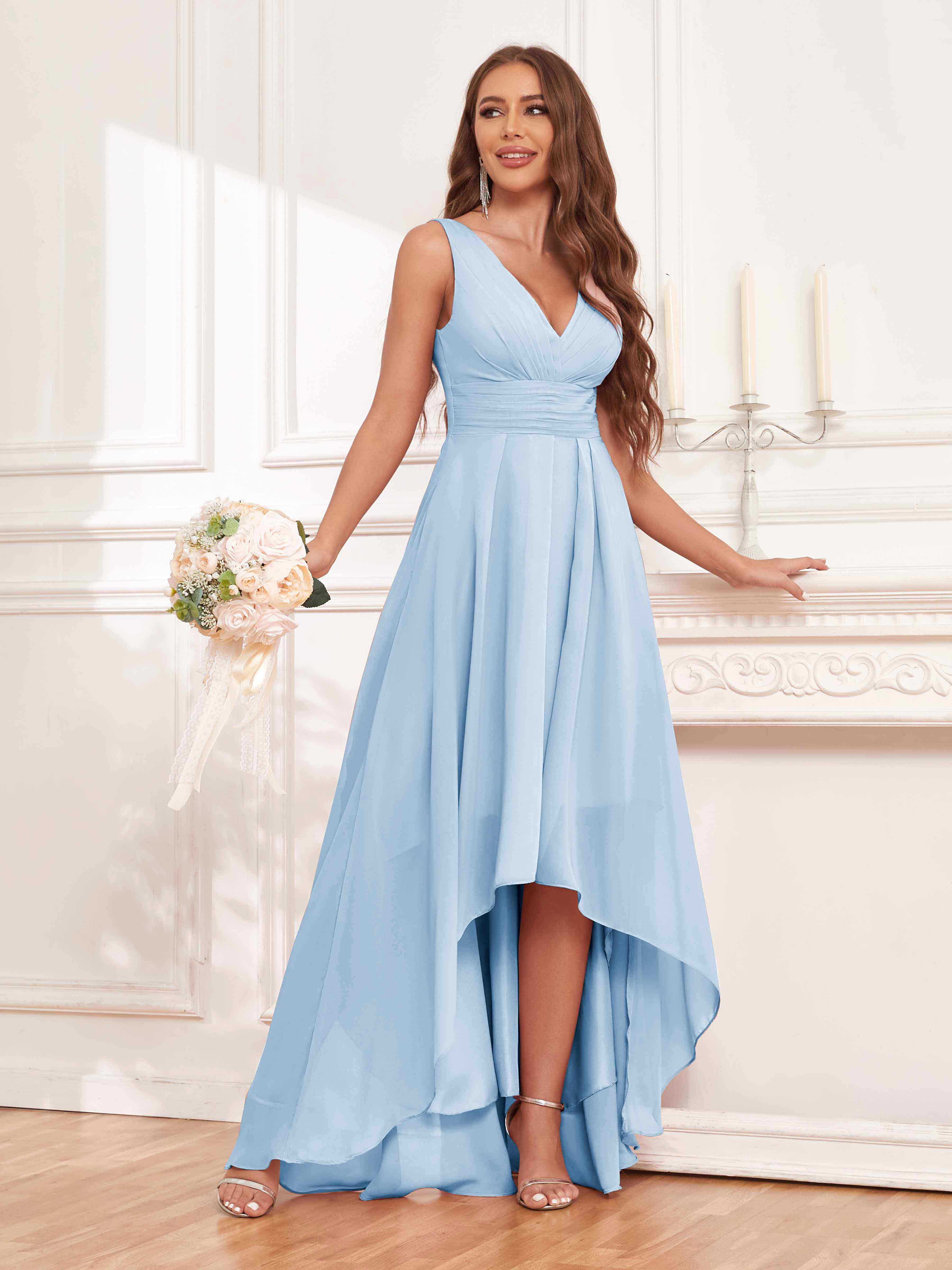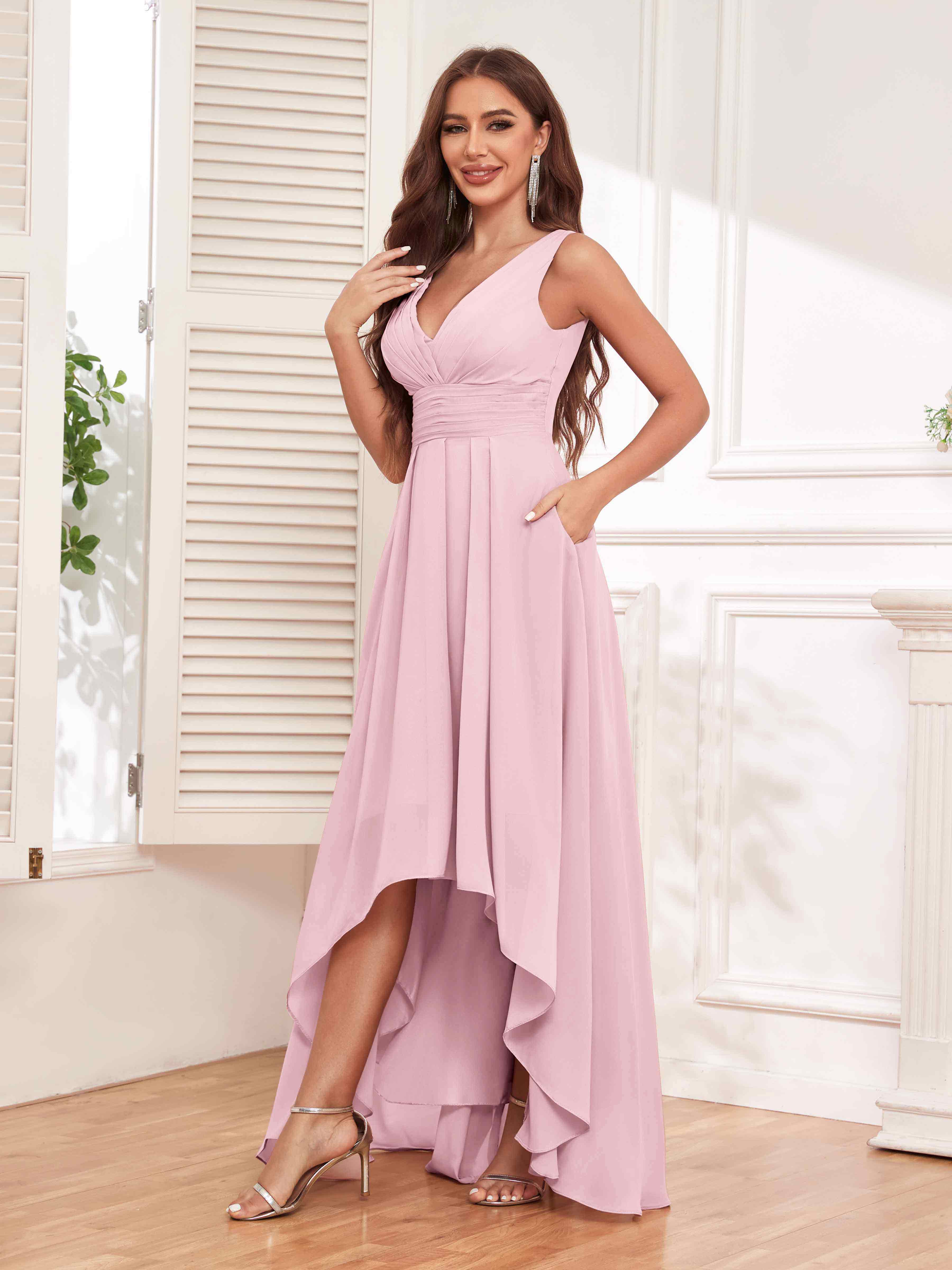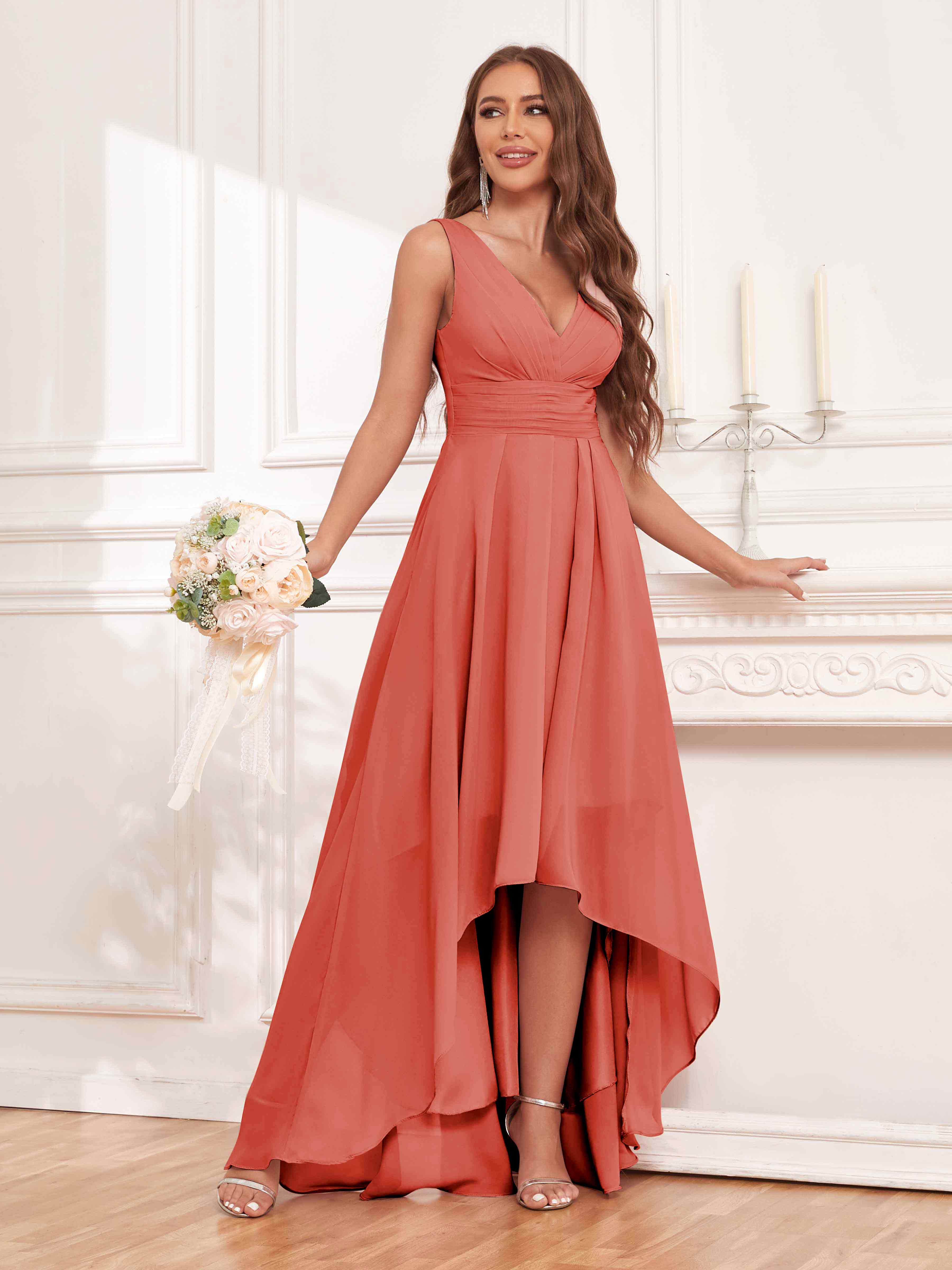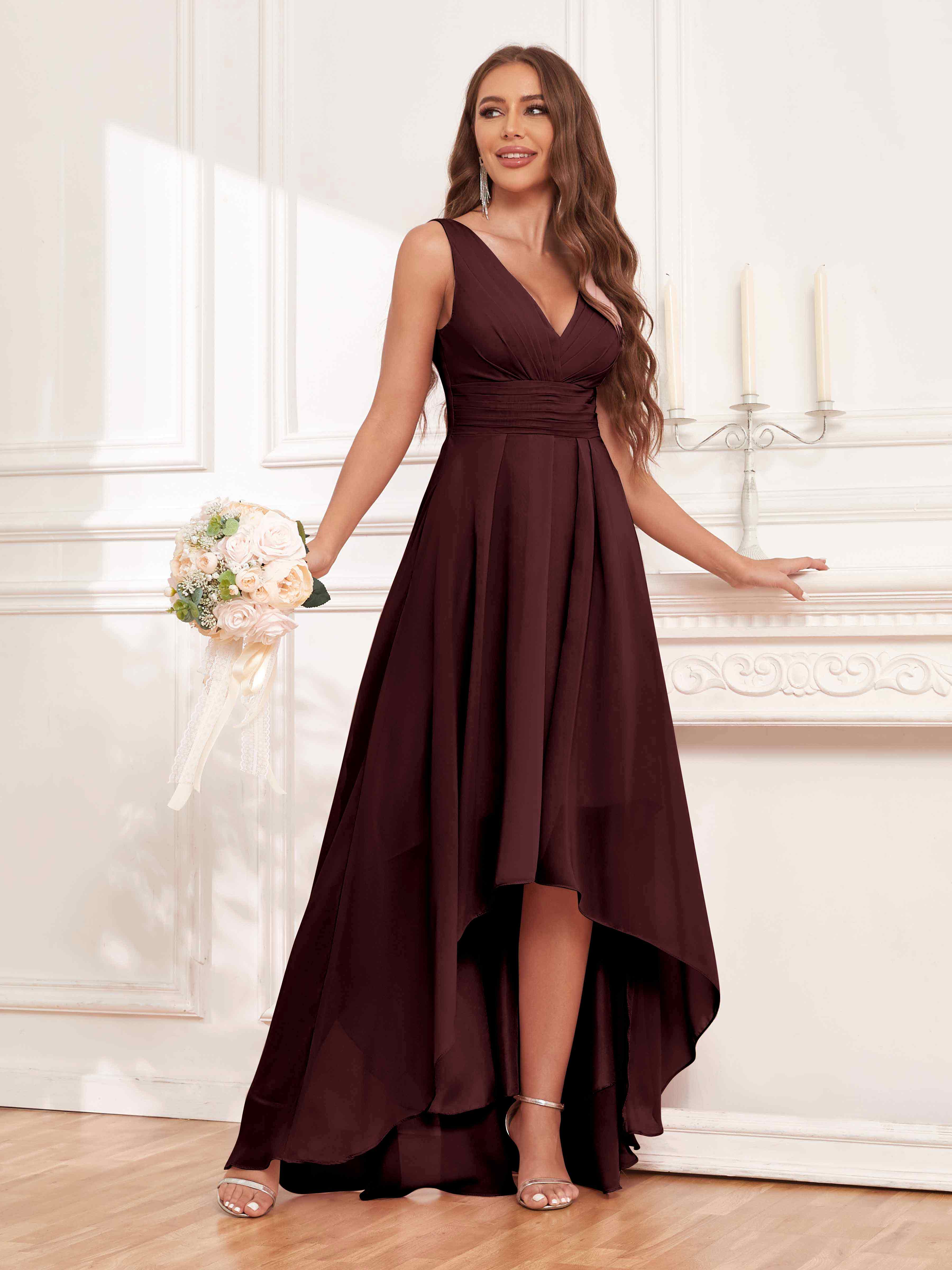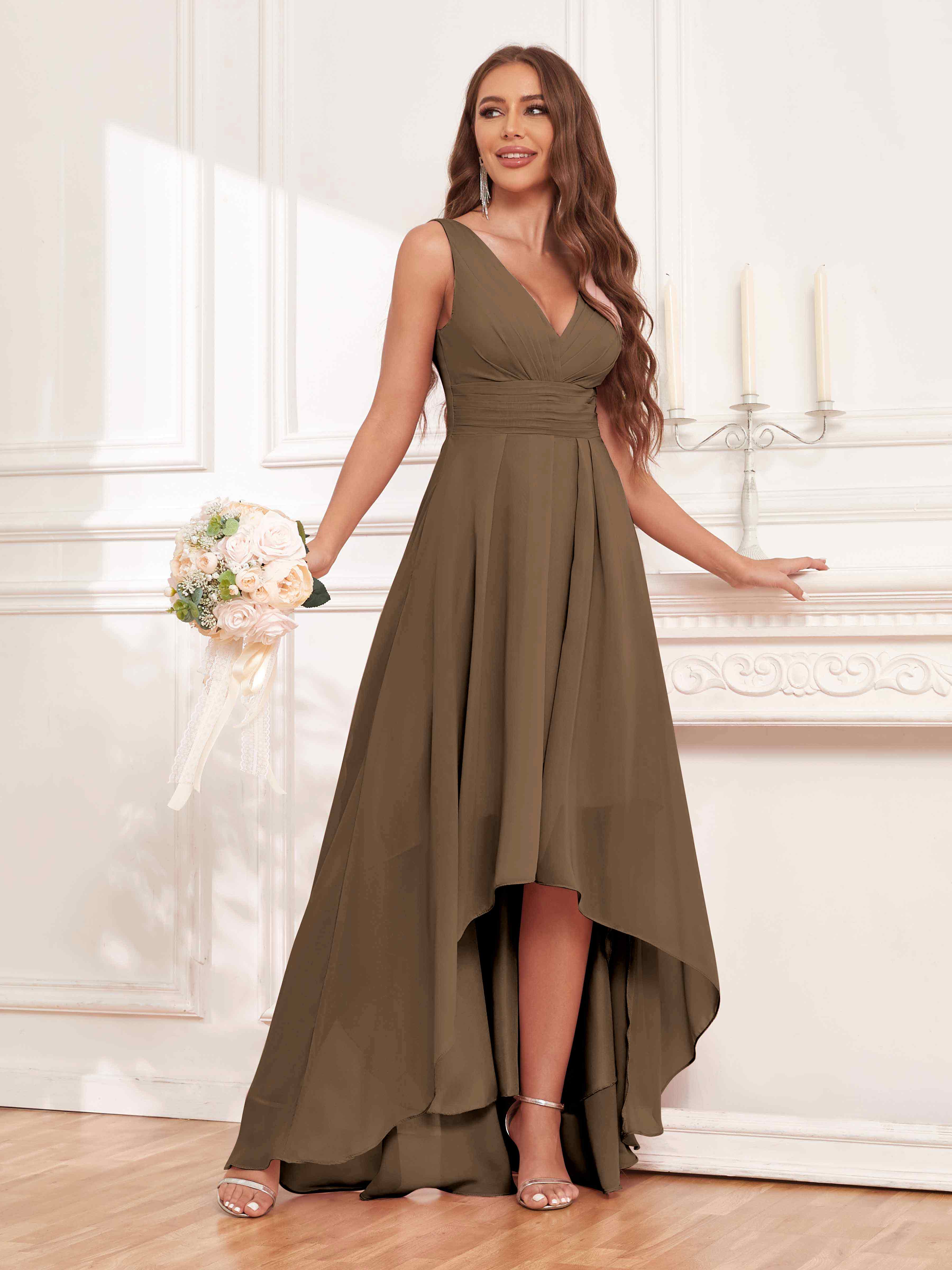 Milani Flowing V Neck Pleated Chiffon Bridesmaid Dresses