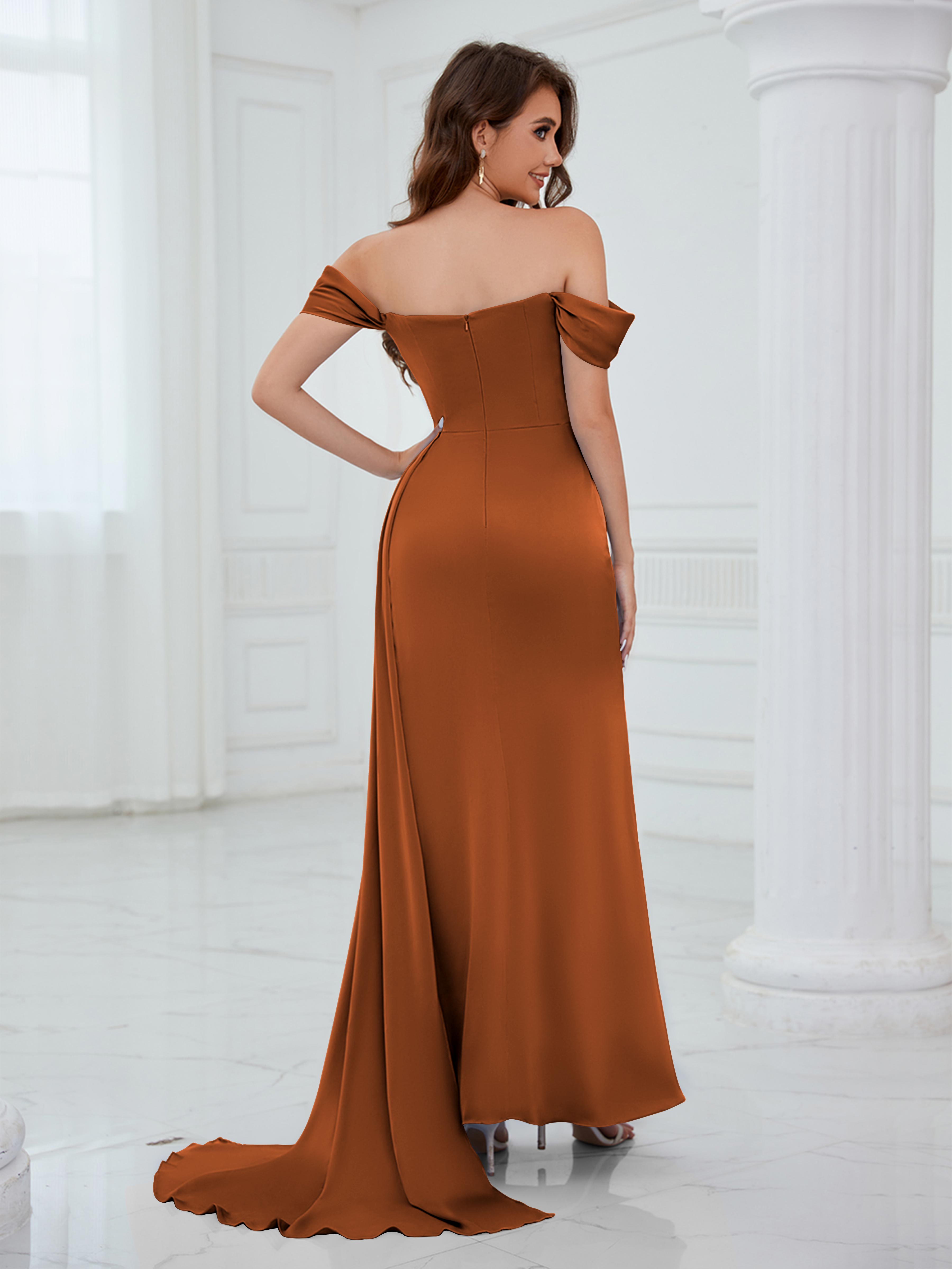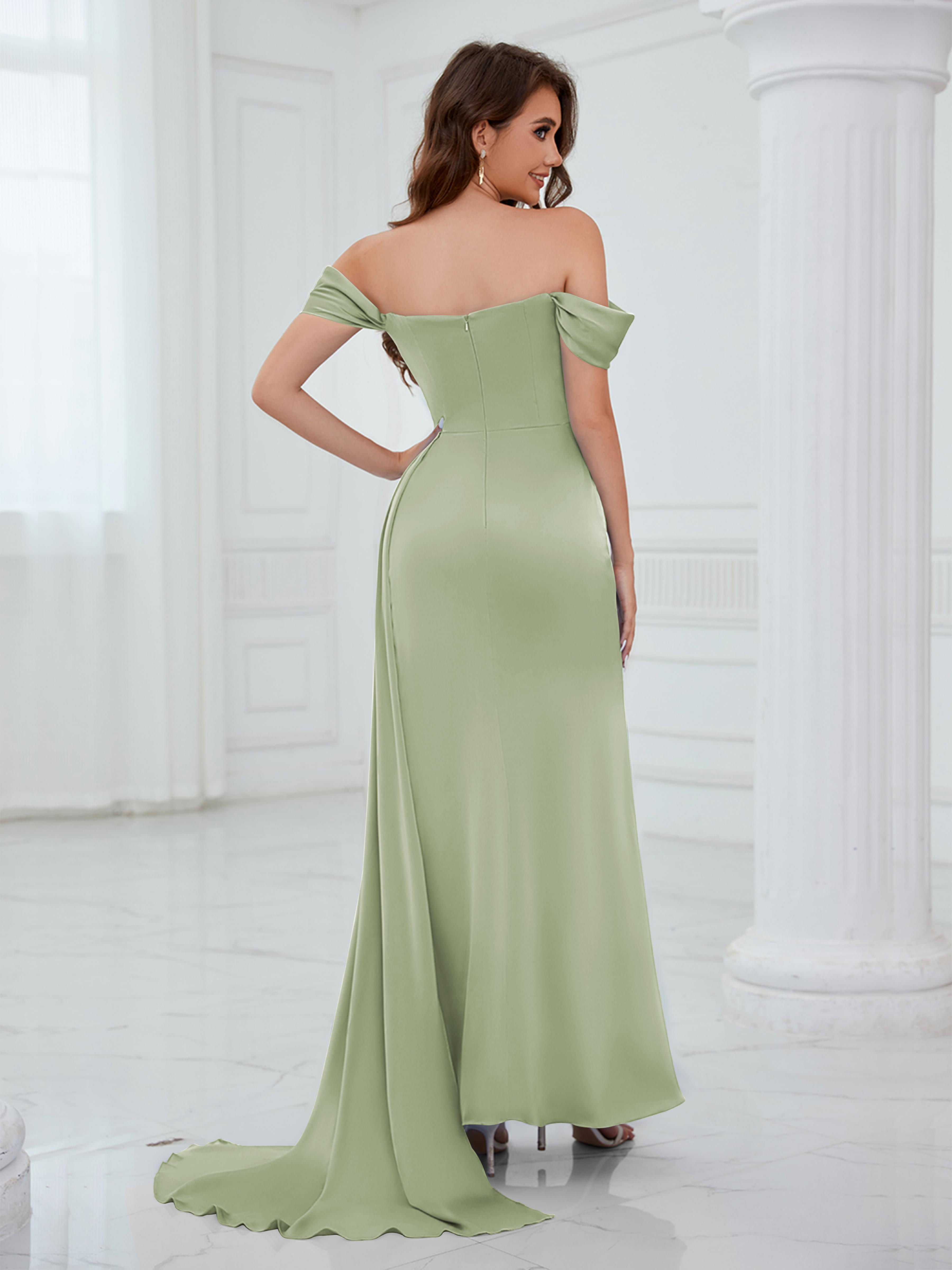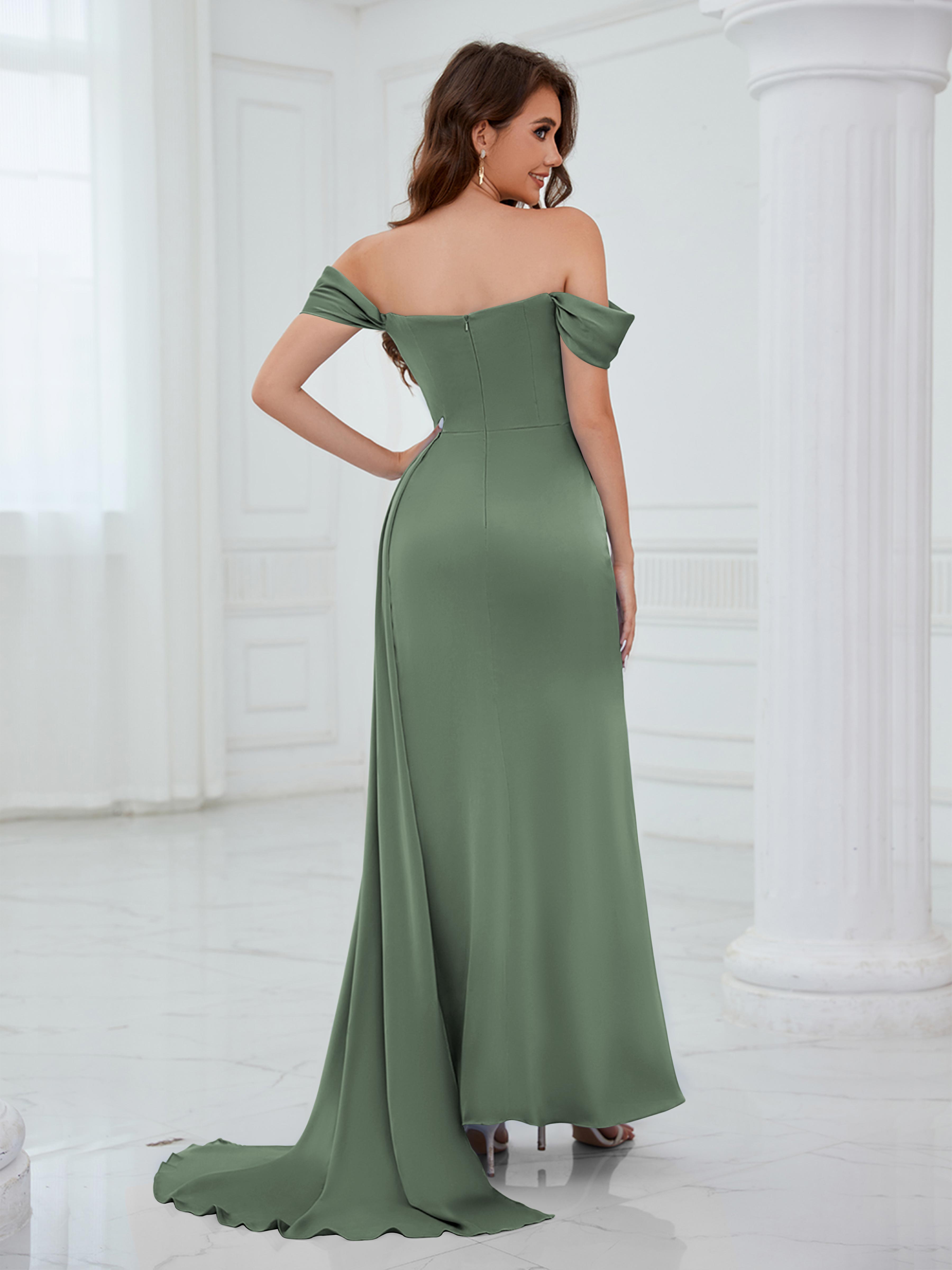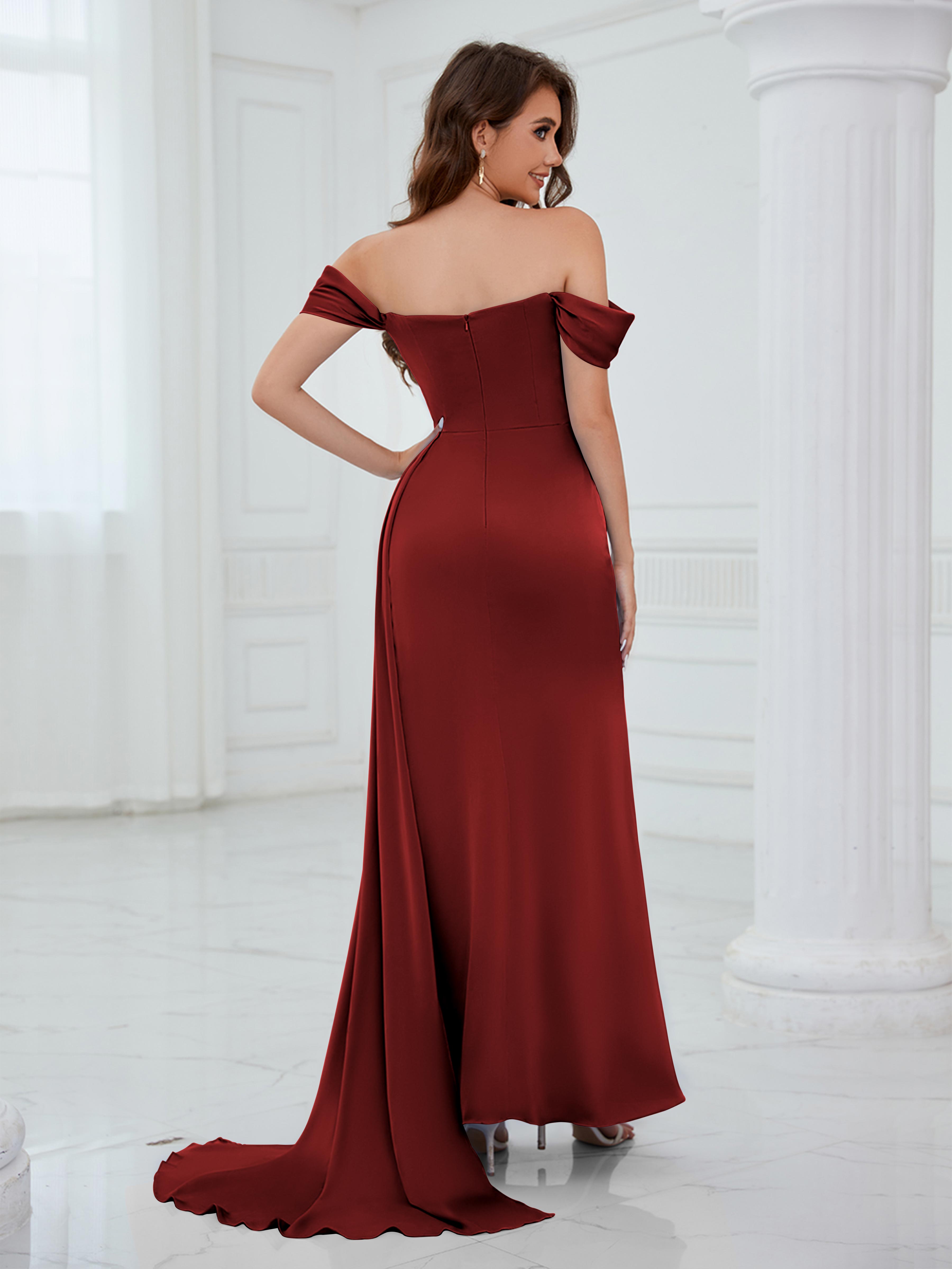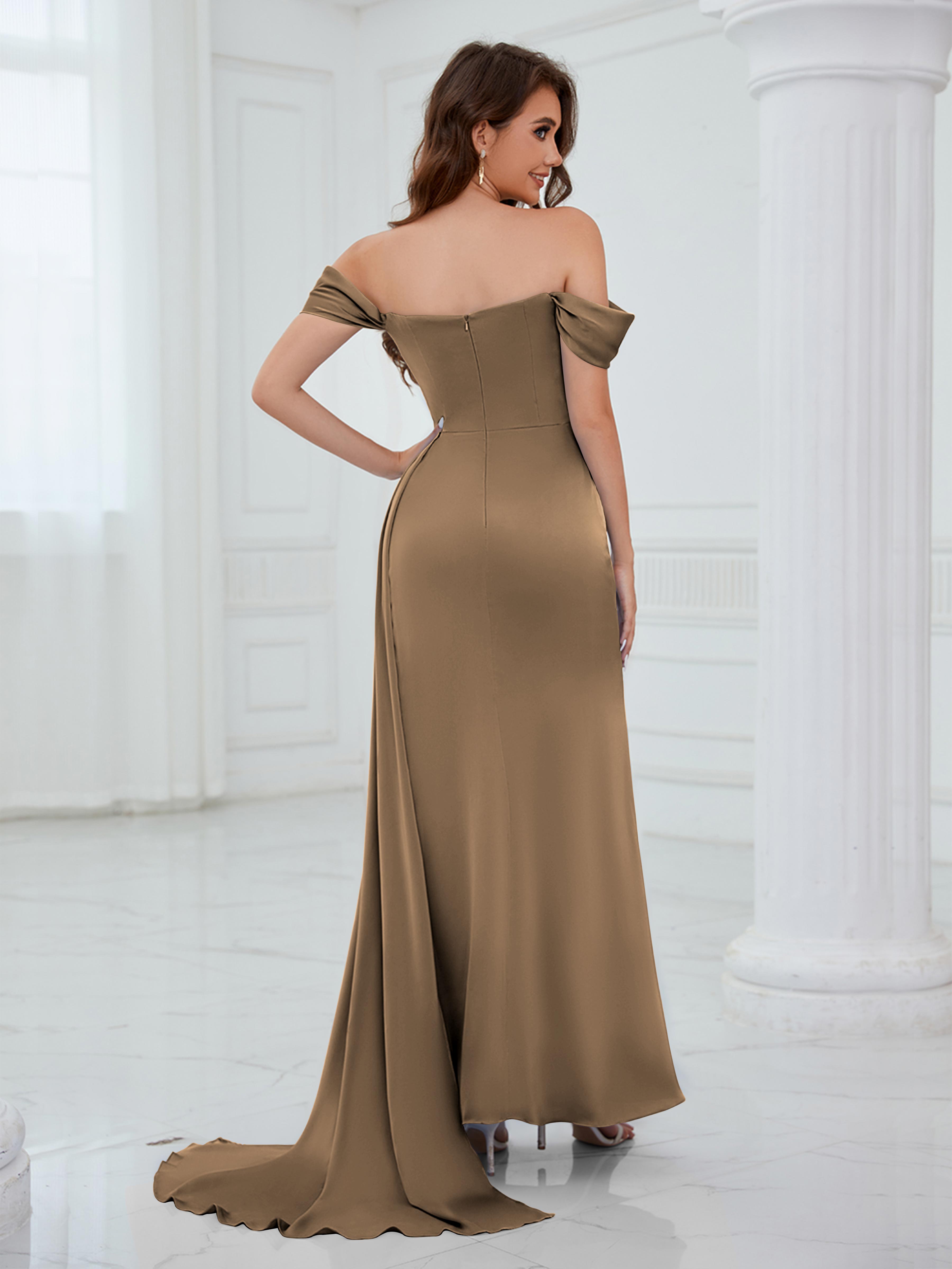 Get ready to experience elegance and sophistication with Mira Charming Sheath Off the Shoulder Zipper Back Long Occasion Dresses. This stunning dress showcases a trendy off the shoulder design and timeless zipper back closure for a flawless look. Perfect for any special occasion, stand out in style and comfort with this must-have piece.
