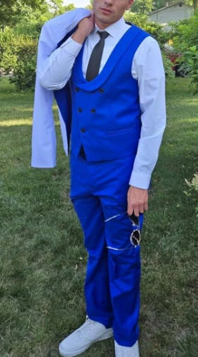 Jacket Chest: 44.9in / 114.1cm Jacket Belly: 41.4in / 105.1cm Jacket Shoulder: 19.1in / 48.5cm Jacket Sleeve: 25.6in / 65cm Pant Waist: 34.9in / 88.8cm Pant Hip: 42.6in / 108.3cm Pant Outseam: 41.8in / 106.1cm Vest Shoulder: 14.4in / 36.5cm Vest Chest: 43.3in / 110.1cm Back Length: 24in / 61cm