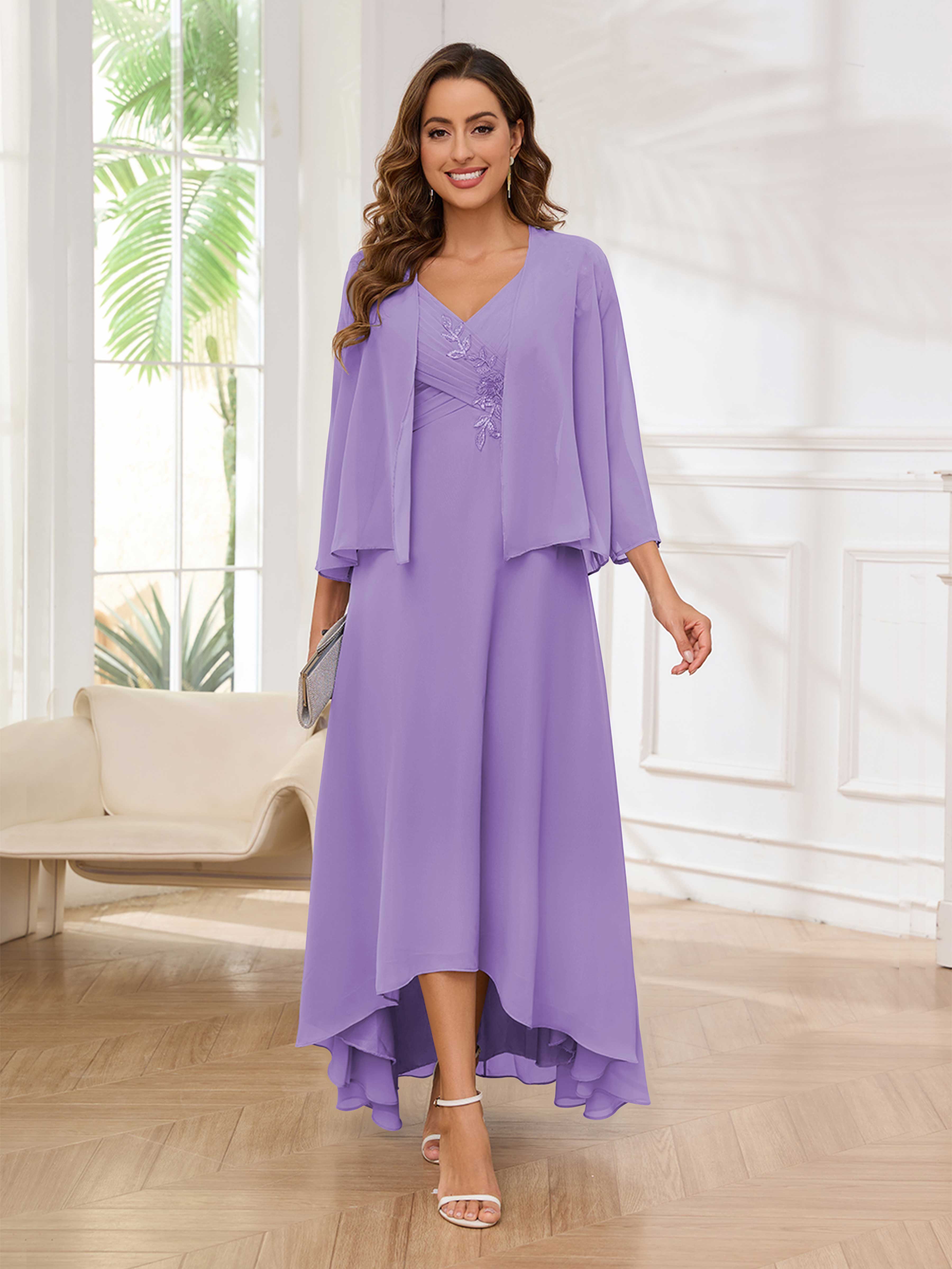 I am a mother who is going to attend my daughter's wedding. I have been looking for such a dress for a long time. Finally I found this style that I like, with a jacket and a dress with sleeves but shorter. This way, my arms will not feel too hot or too many layers when I put on the jacket, and the remaining dress will not look weird even if I take off the jacket and look at it alone.
