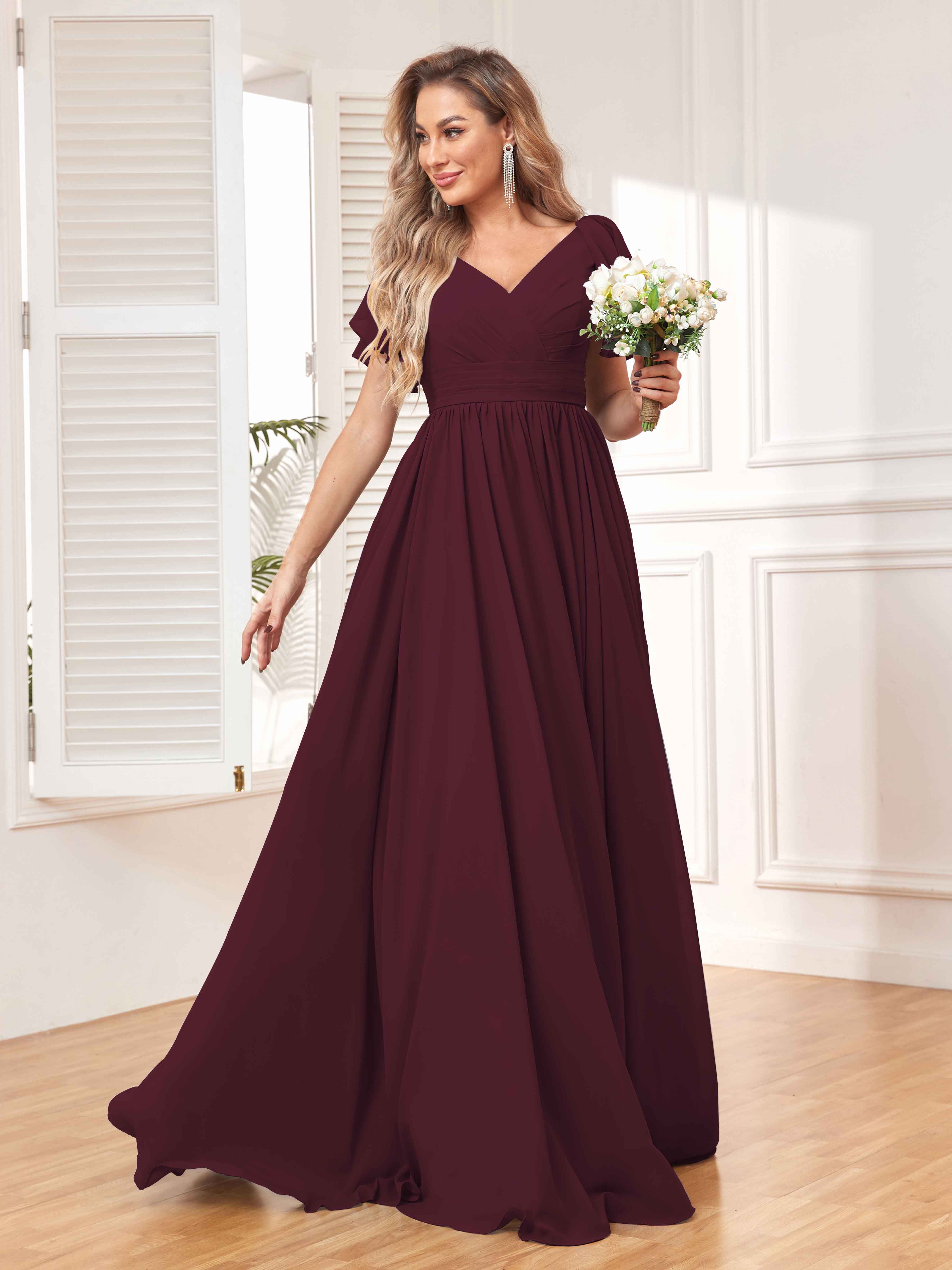 Natalie A-Line Short Sleeves Ruched Chiffon Bridesmaid Dresses