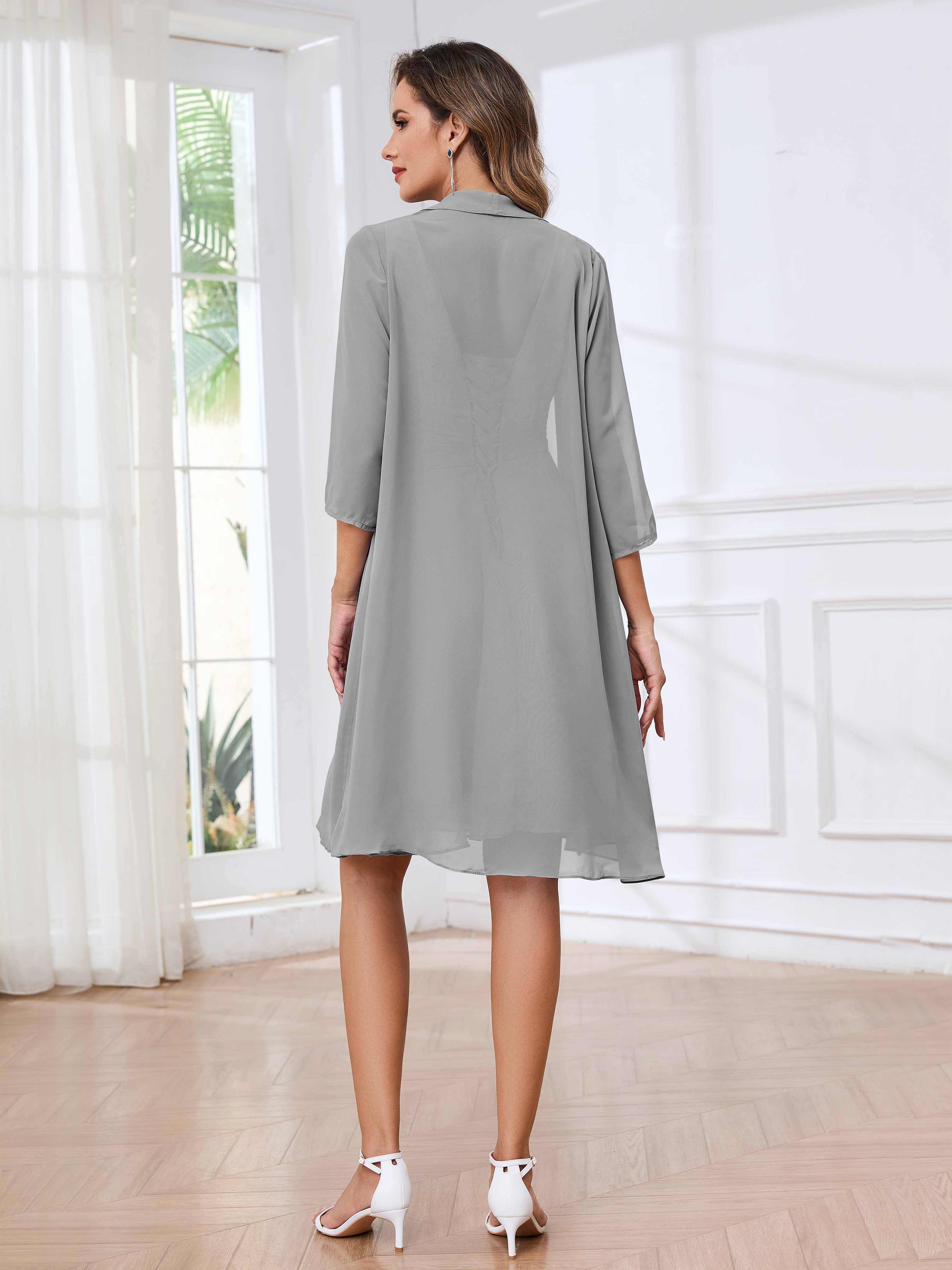 Oaklyn Flattering Two Pieces Ruched Pleated Short Chiffon Mother Of The Bride Dresses