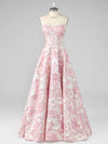 Pink A-Line Strapless Pearl Jacquard Satin Long Prom Dresses UK