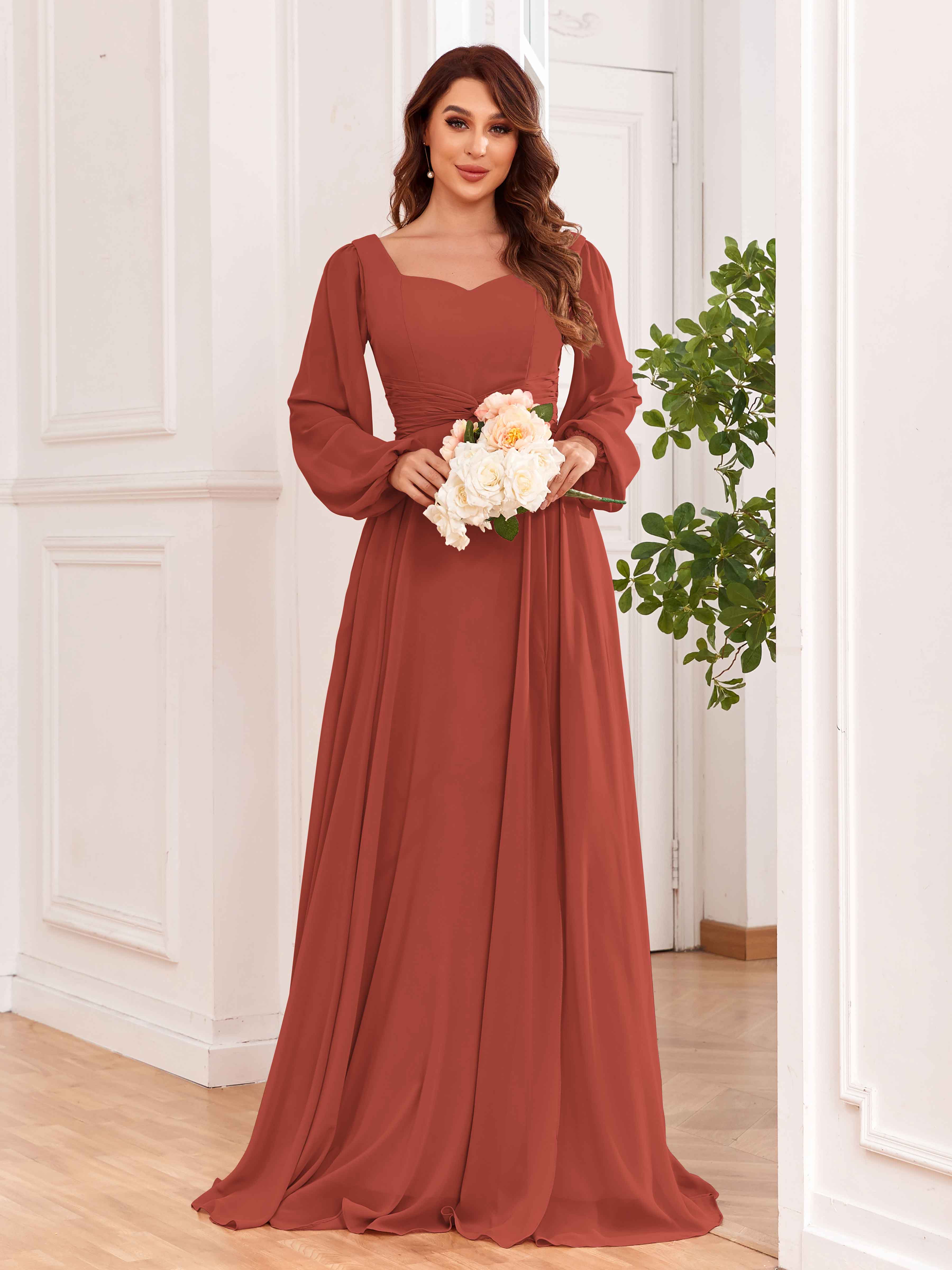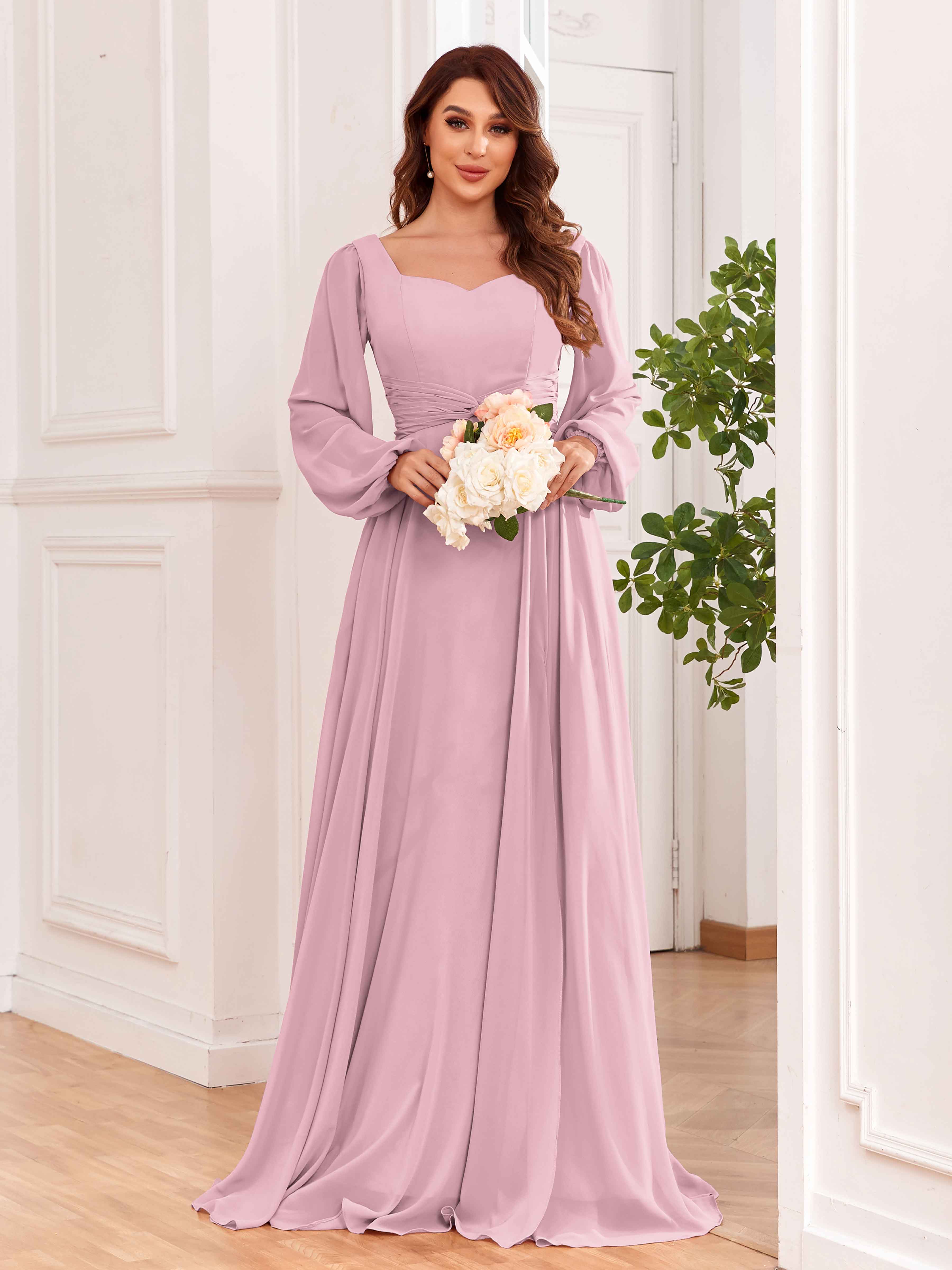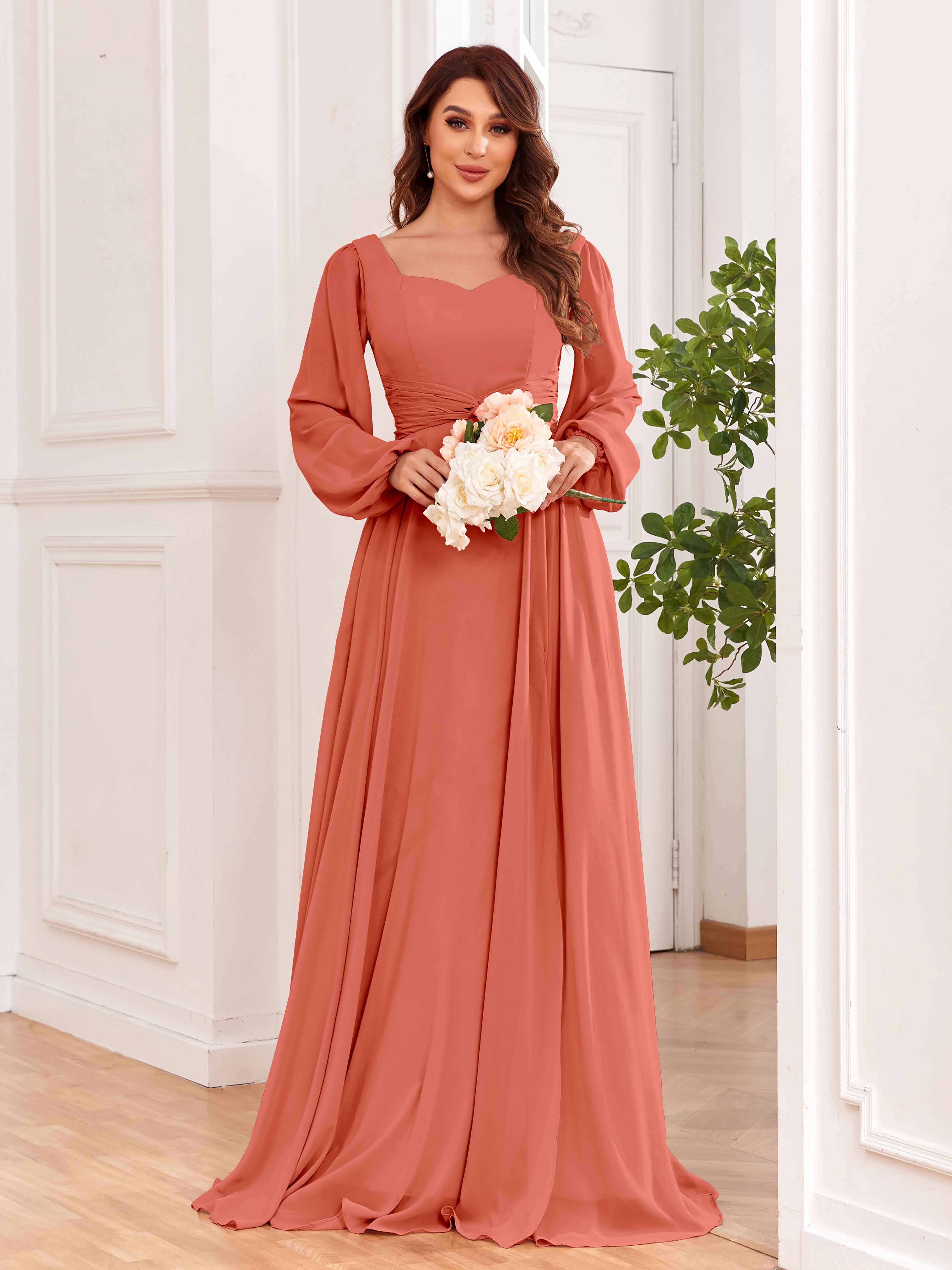 Raelynn Charming V Neck Long Sleeves Floor Length Bridesmaid Dresses