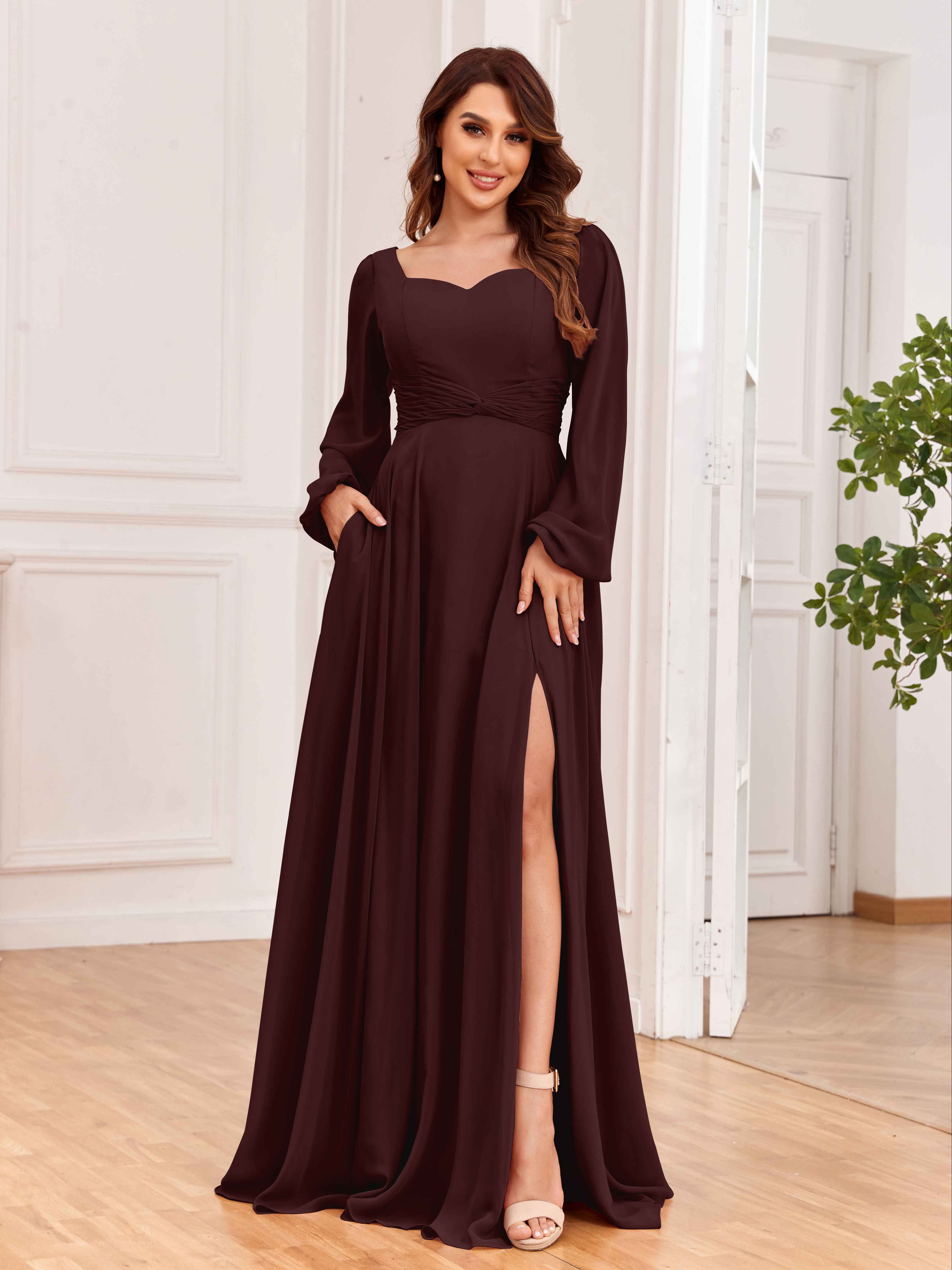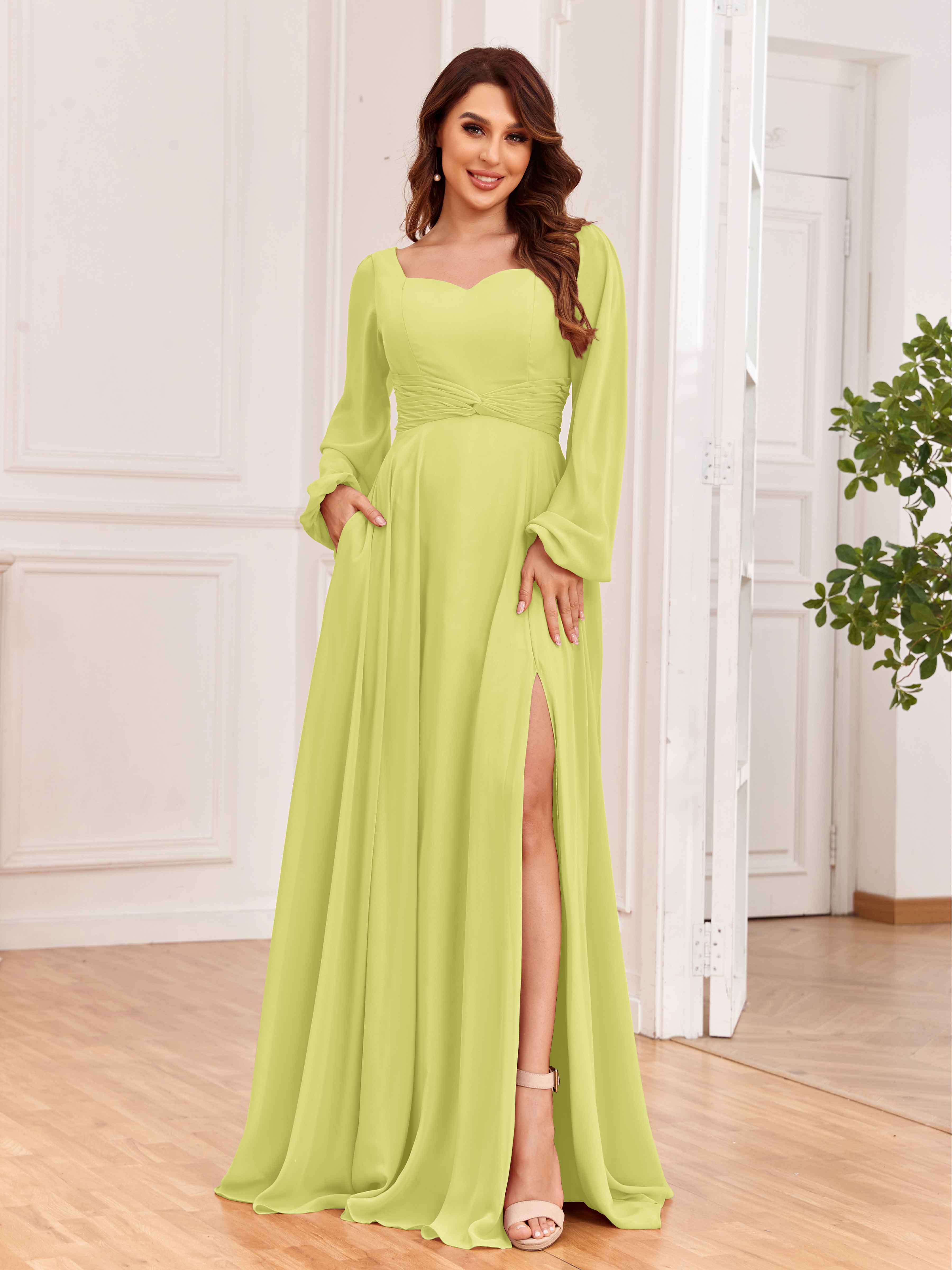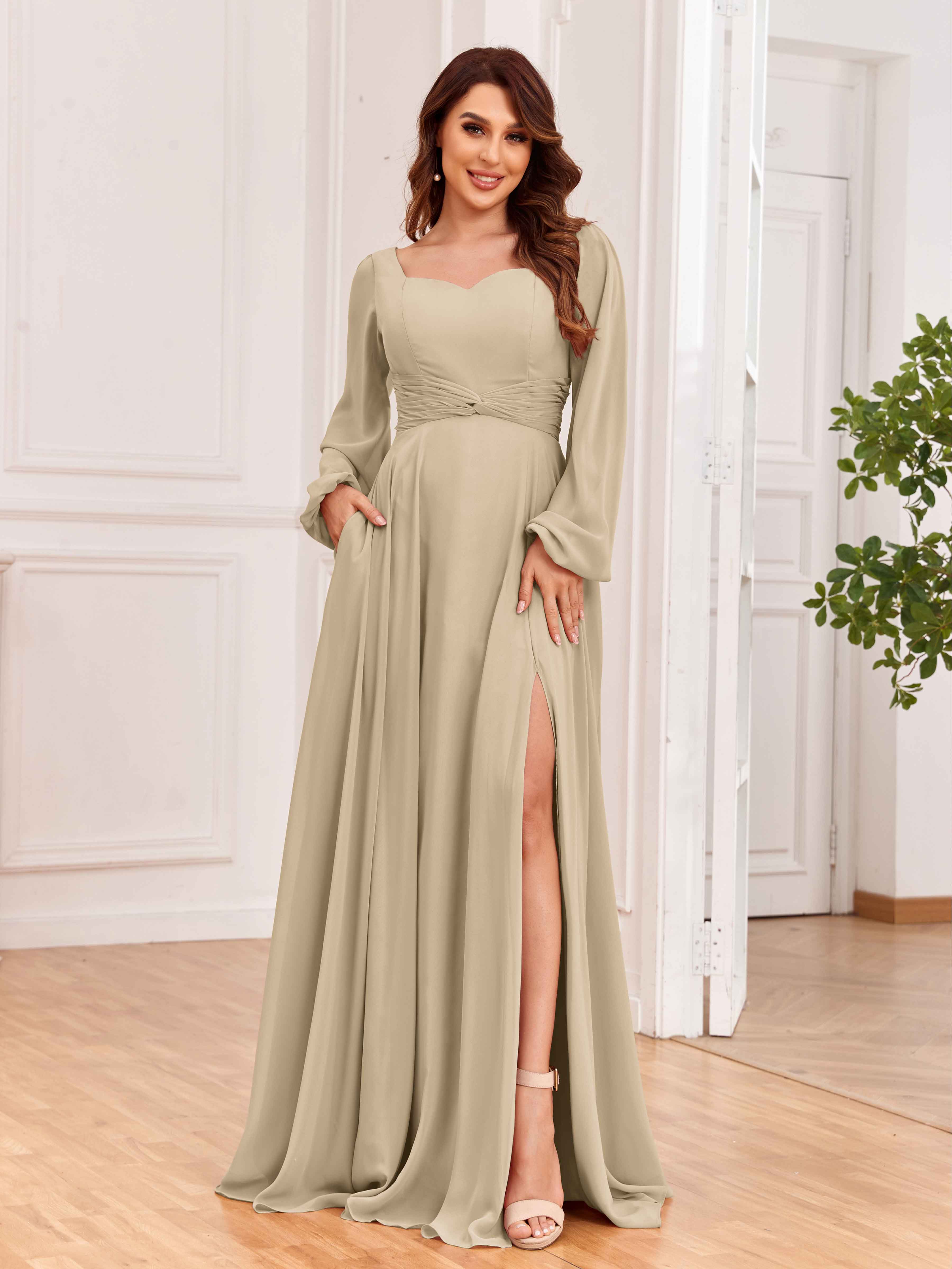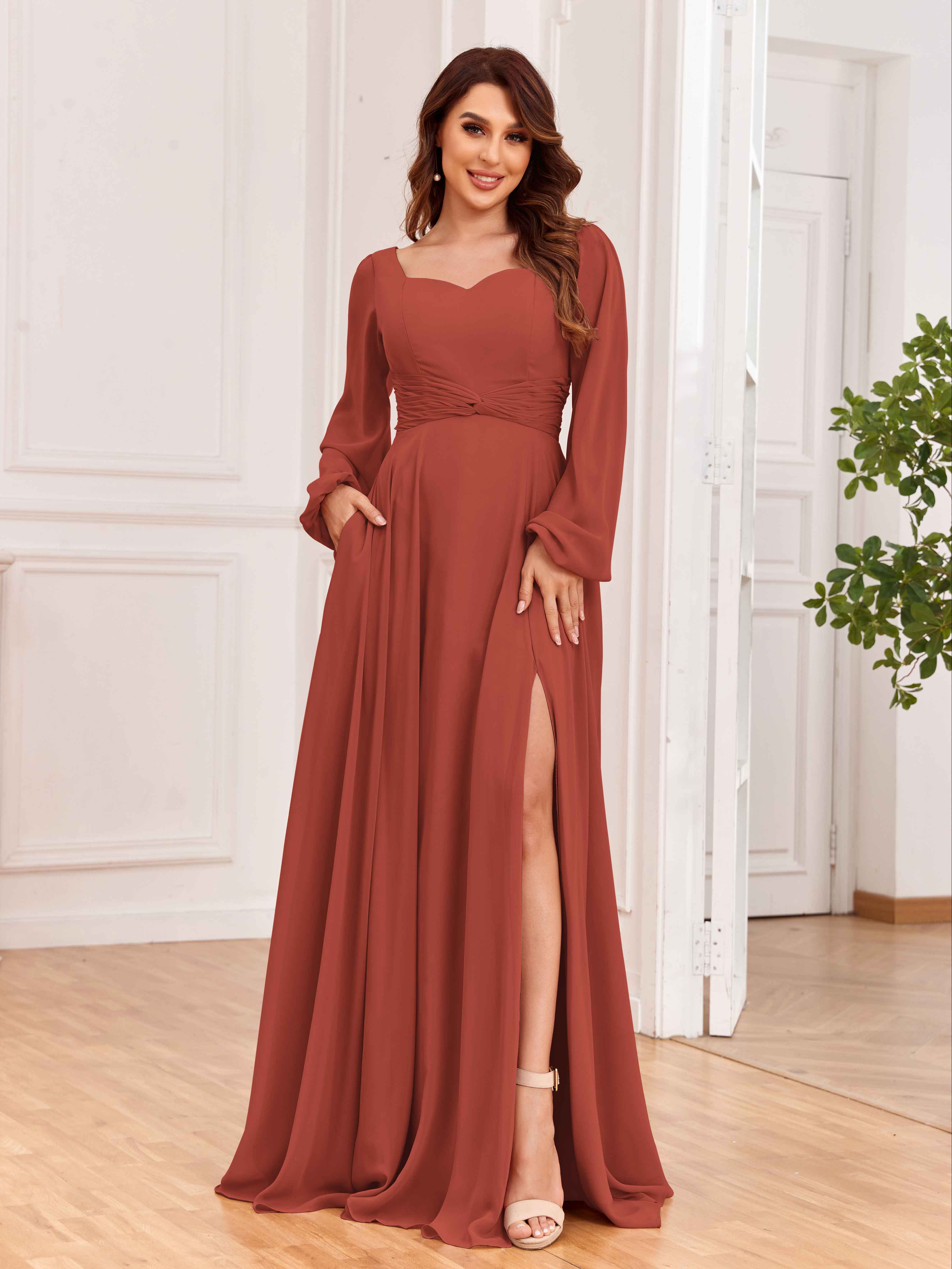 Raelynn Charming V Neck Long Sleeves Floor Length Bridesmaid Dresses