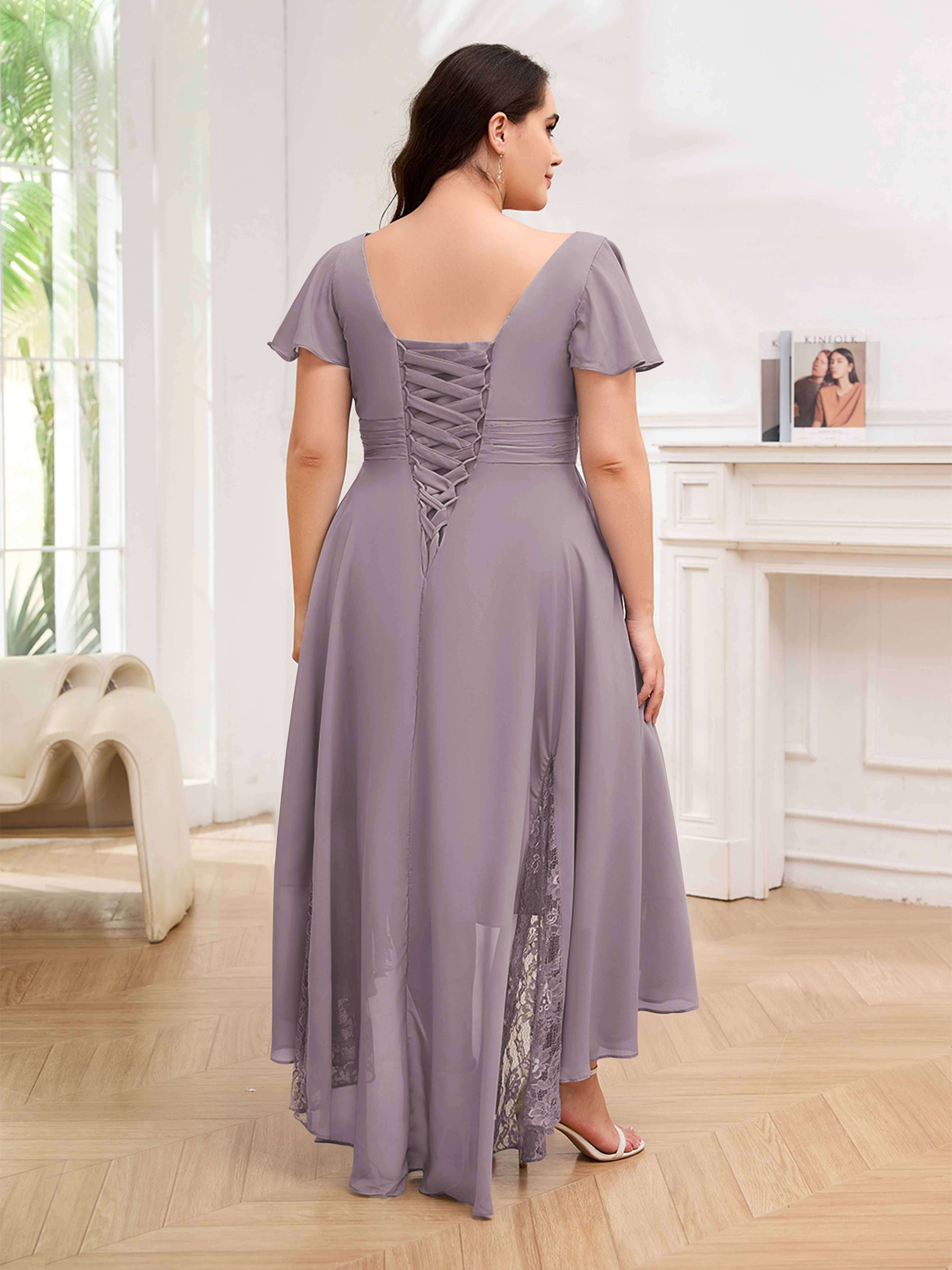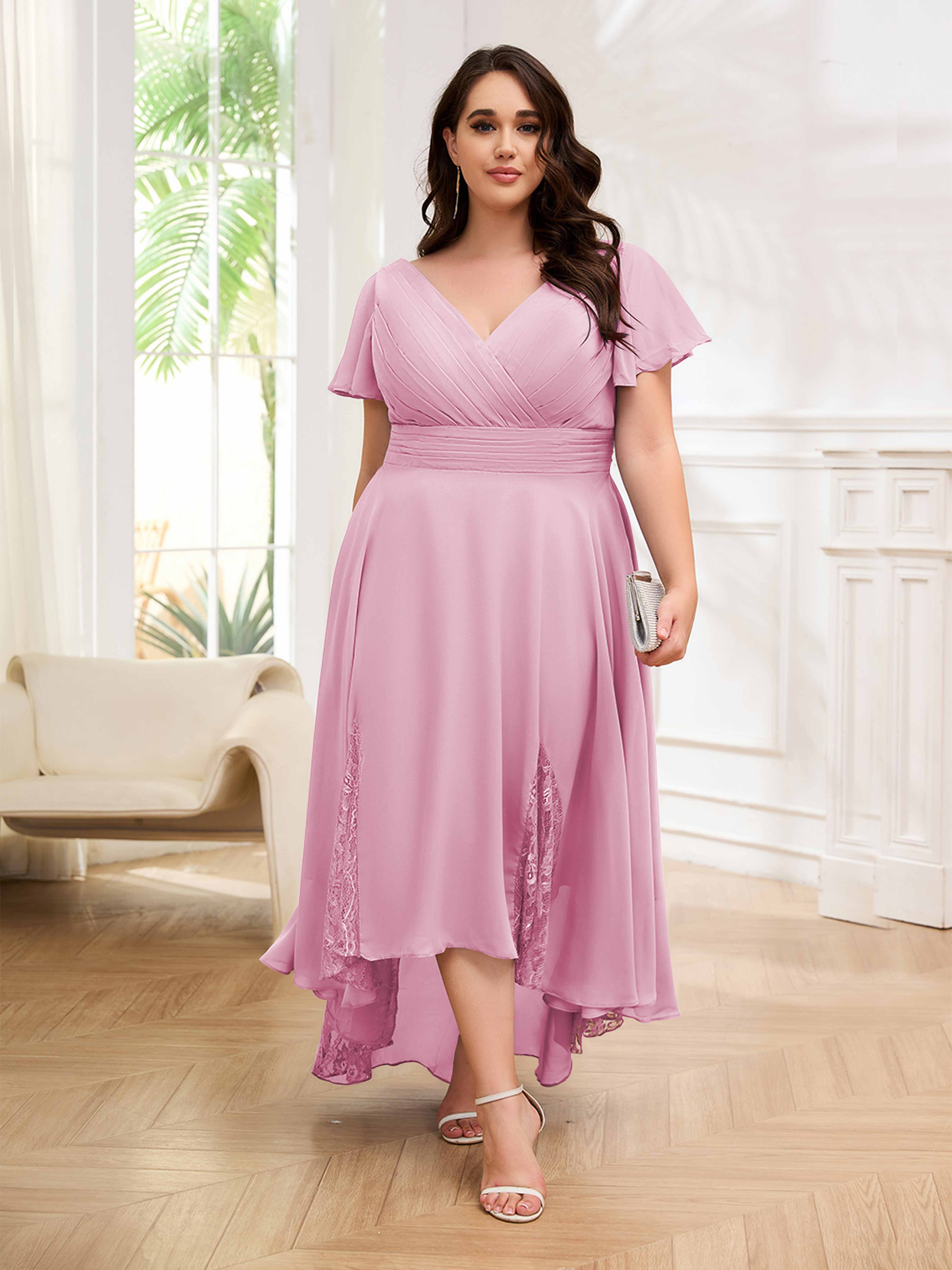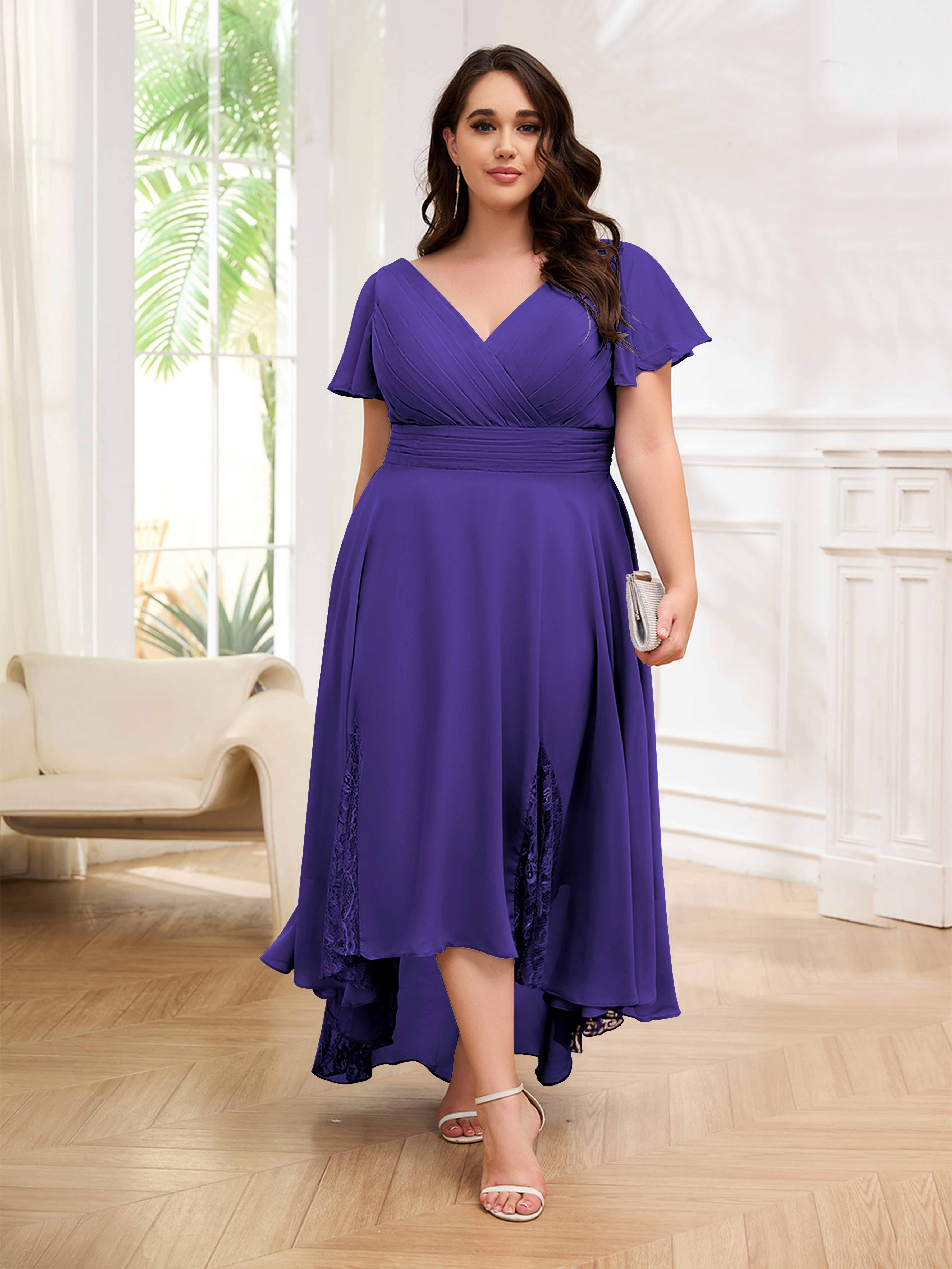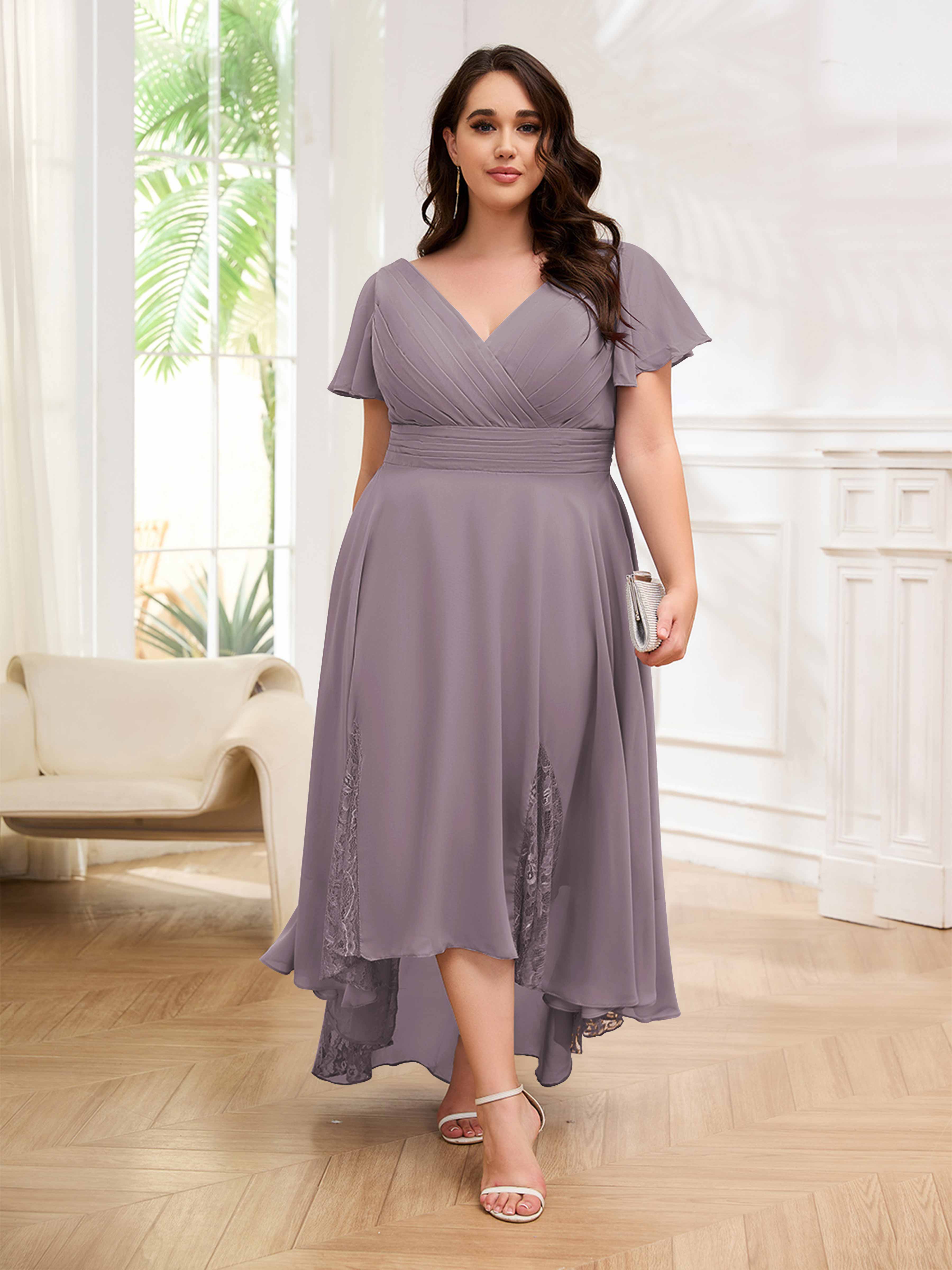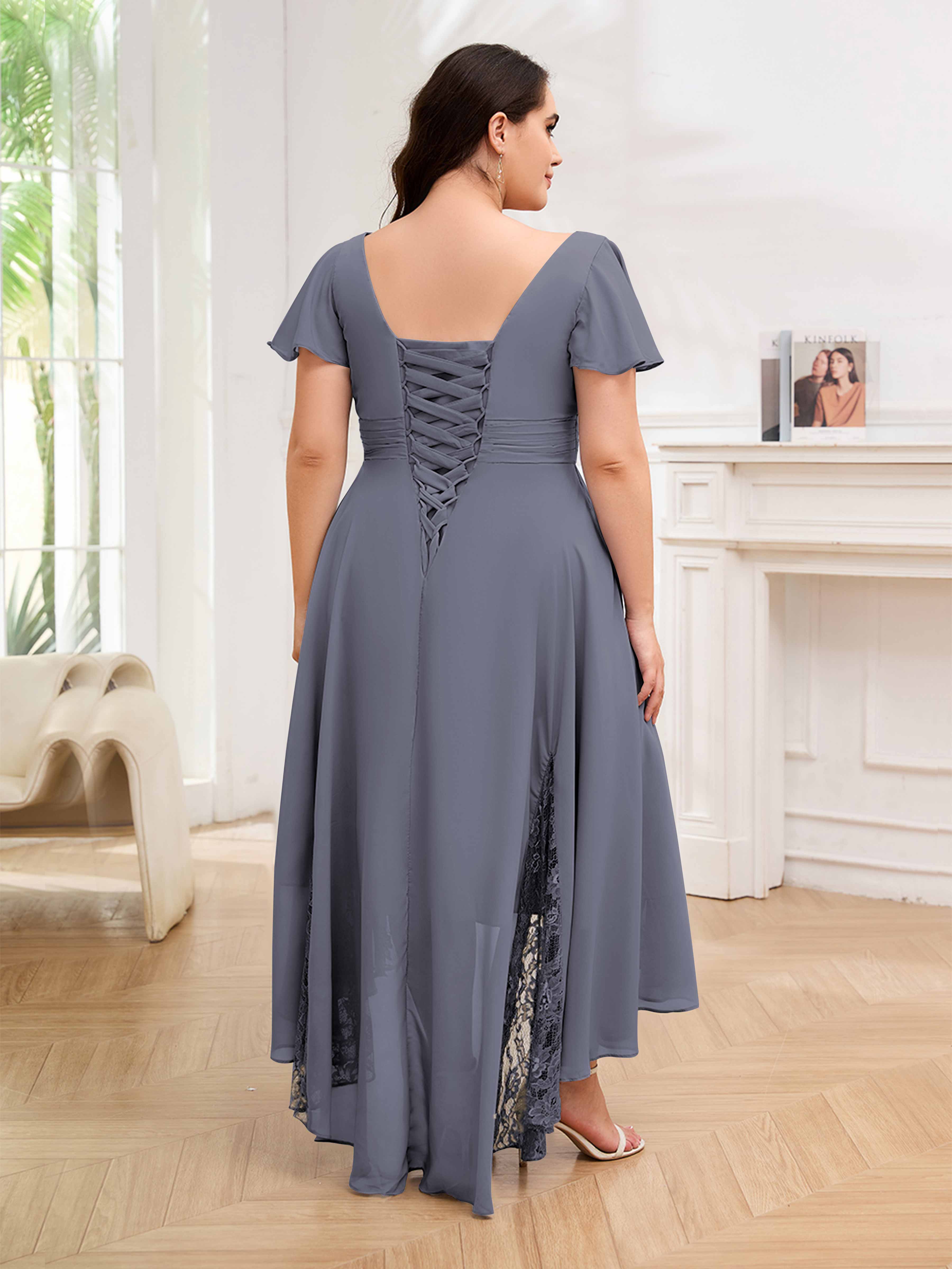 Remy Graceful Short Sleeves Chiffon High Low Plus Size Mother of the Bride Dresses