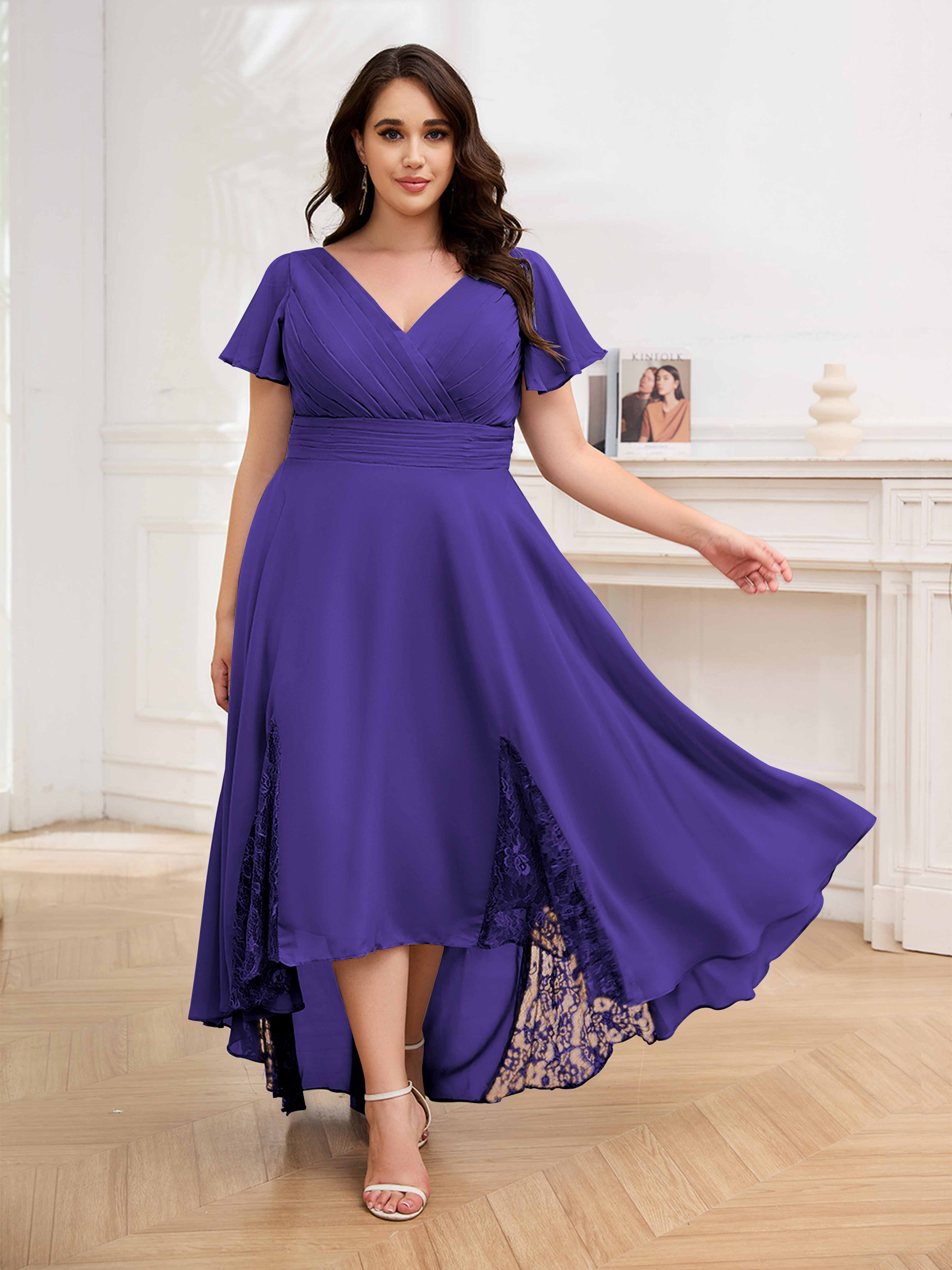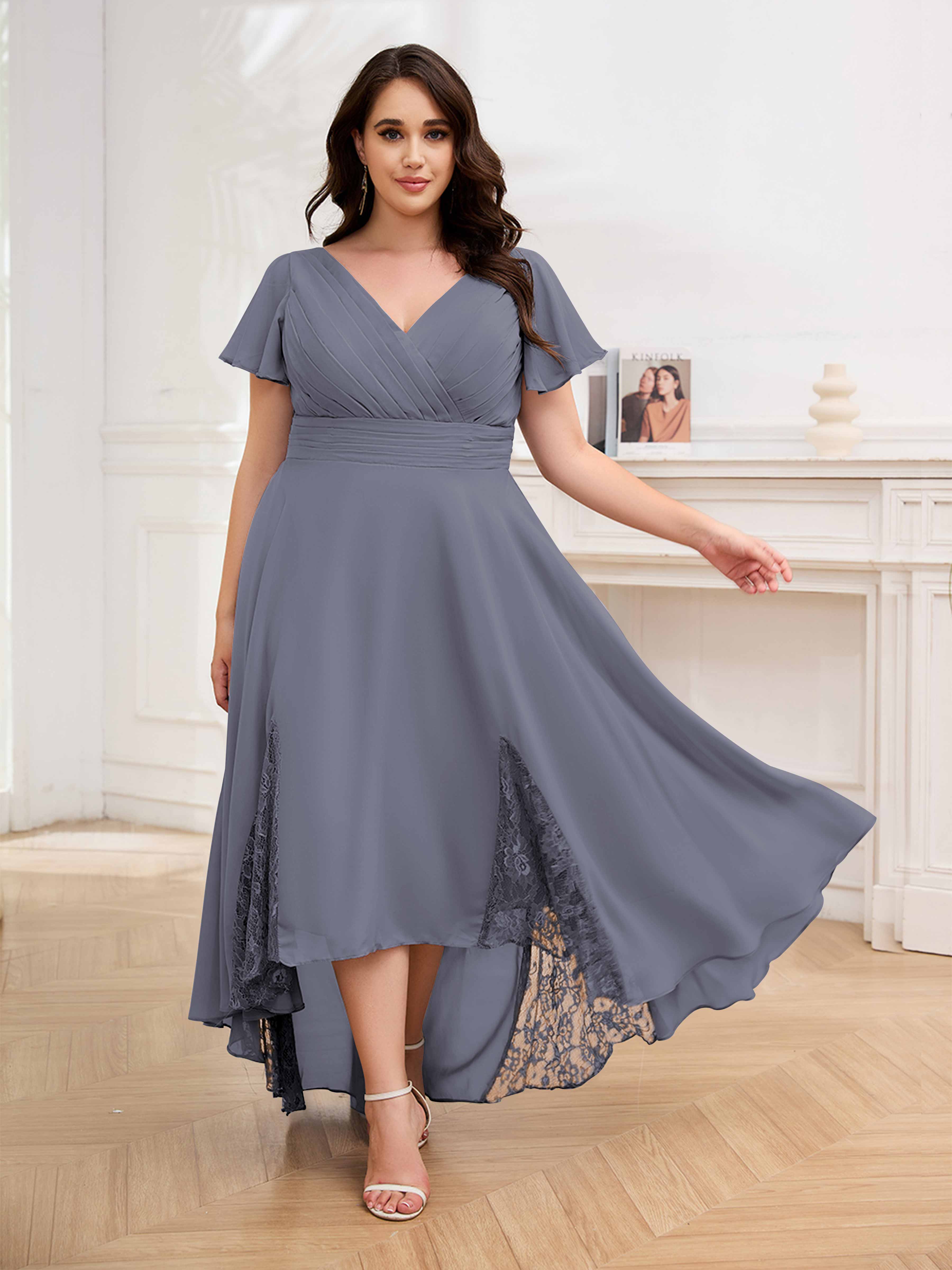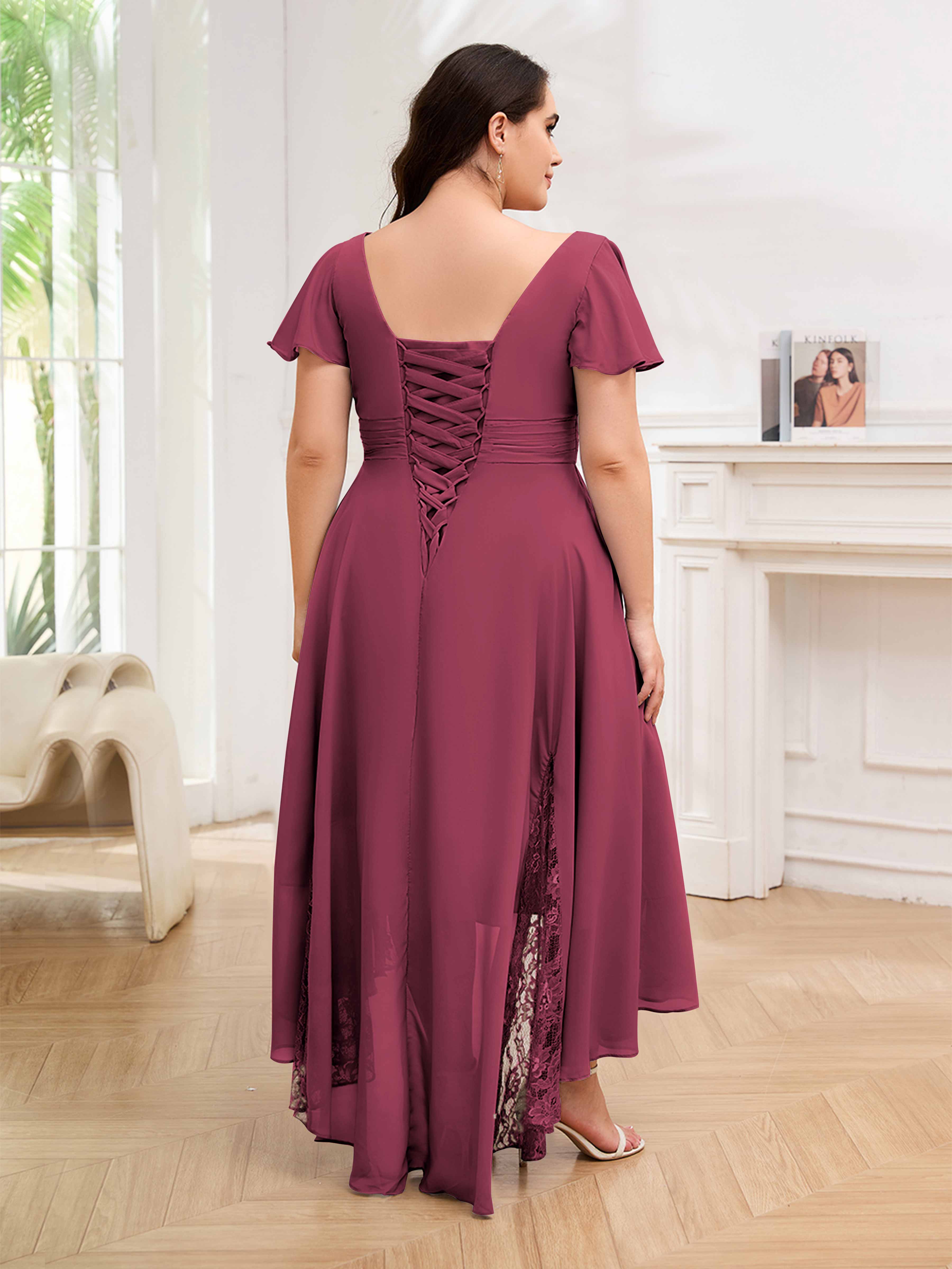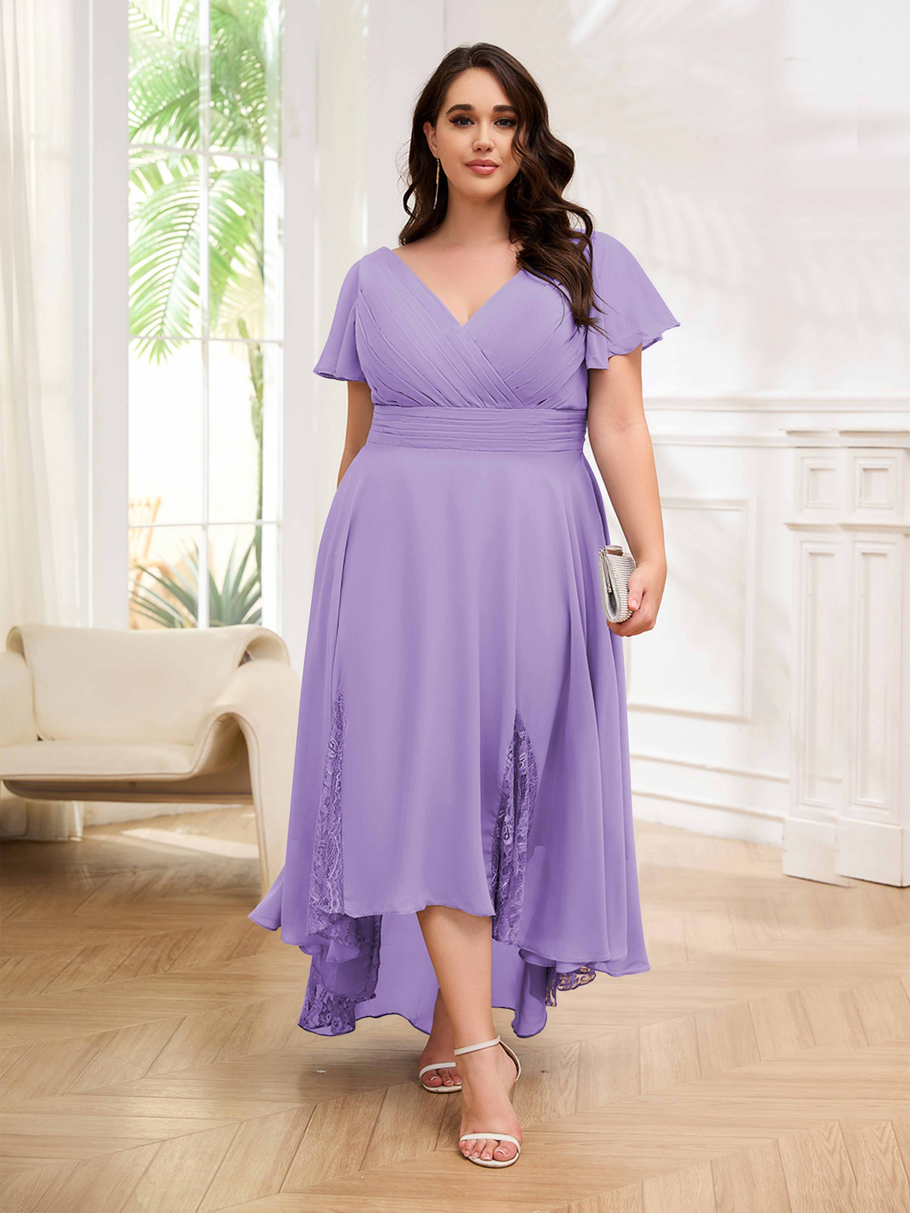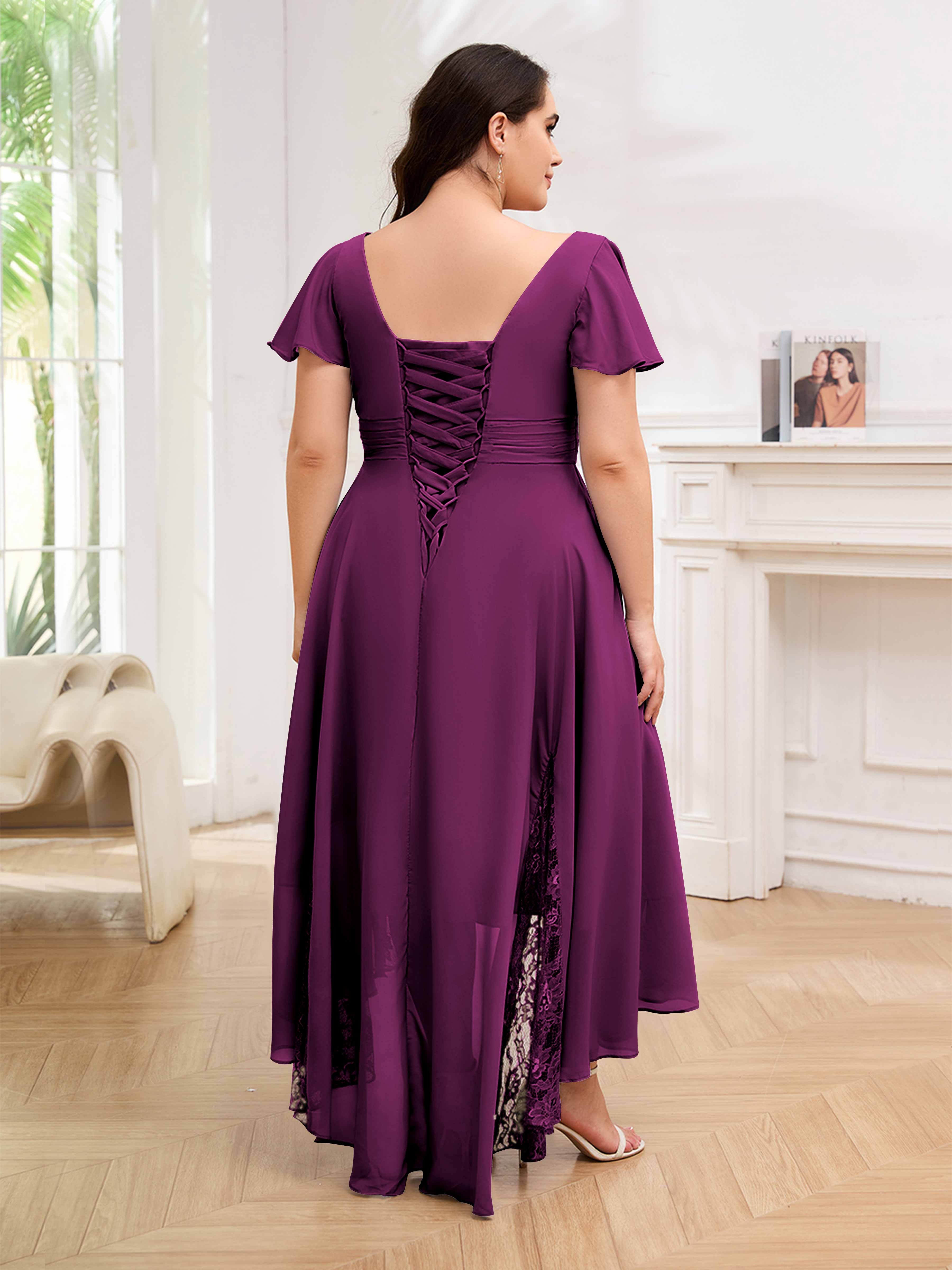Remy Graceful Short Sleeves Chiffon High Low Plus Size Mother of the Bride Dresses