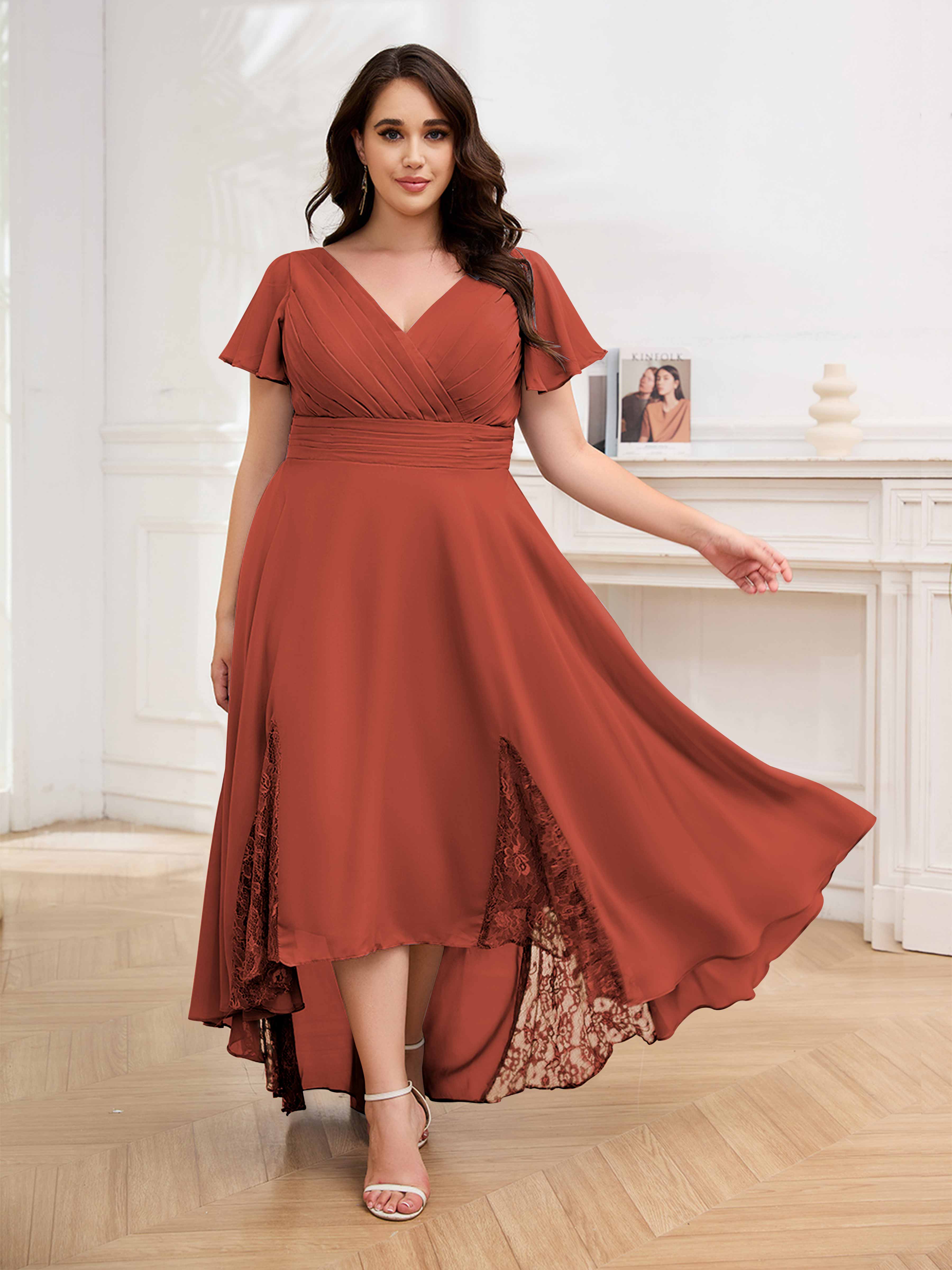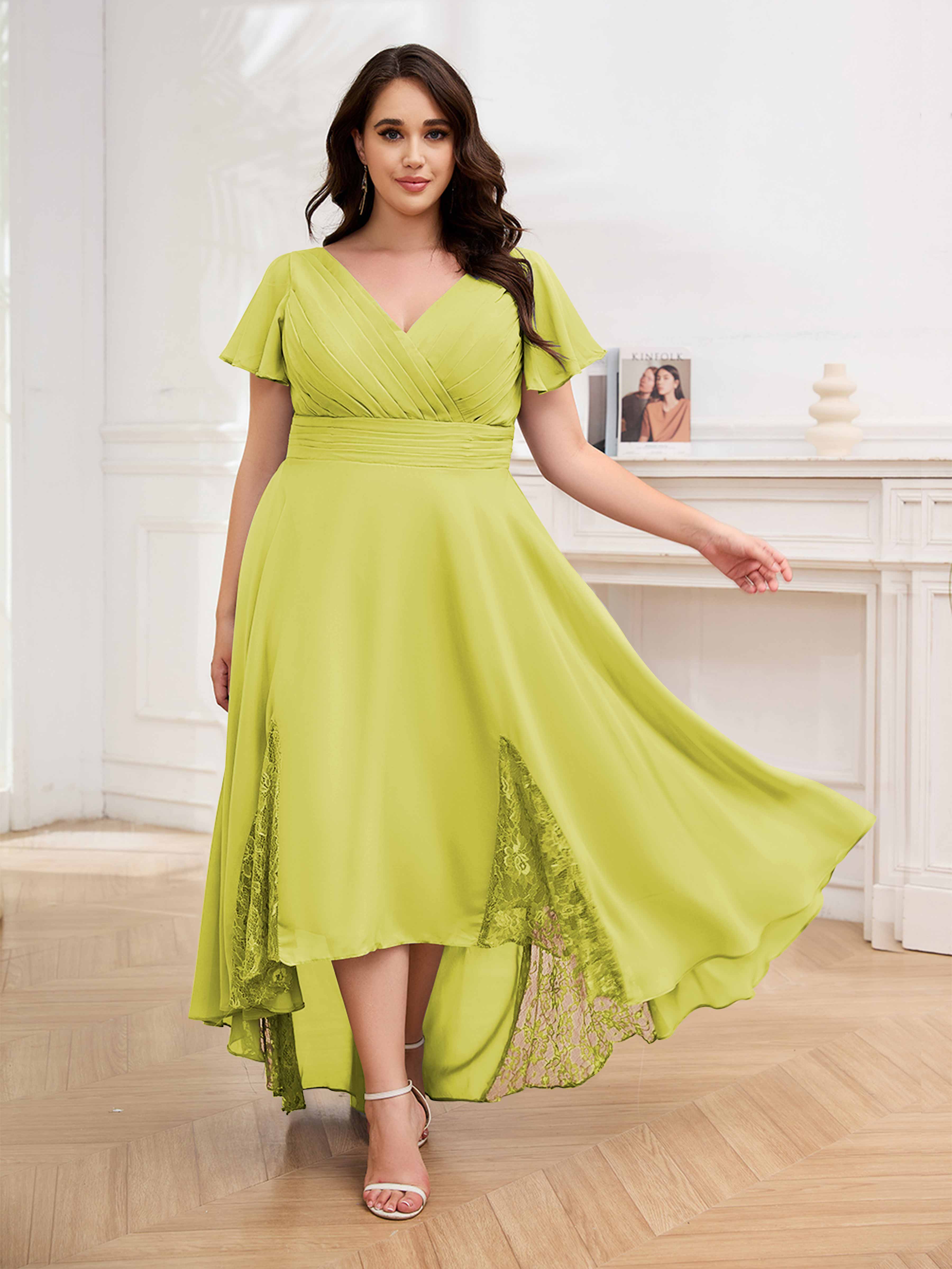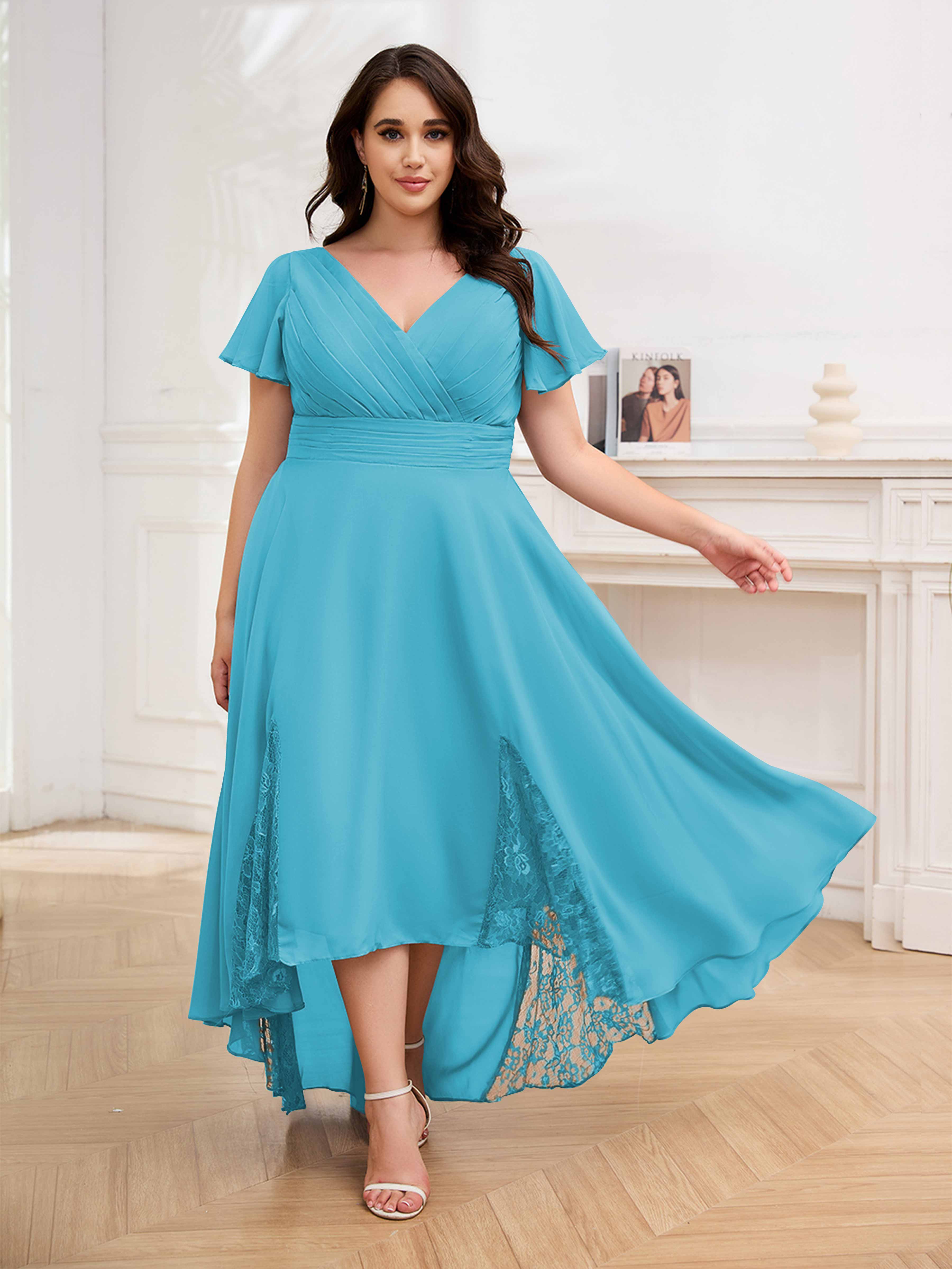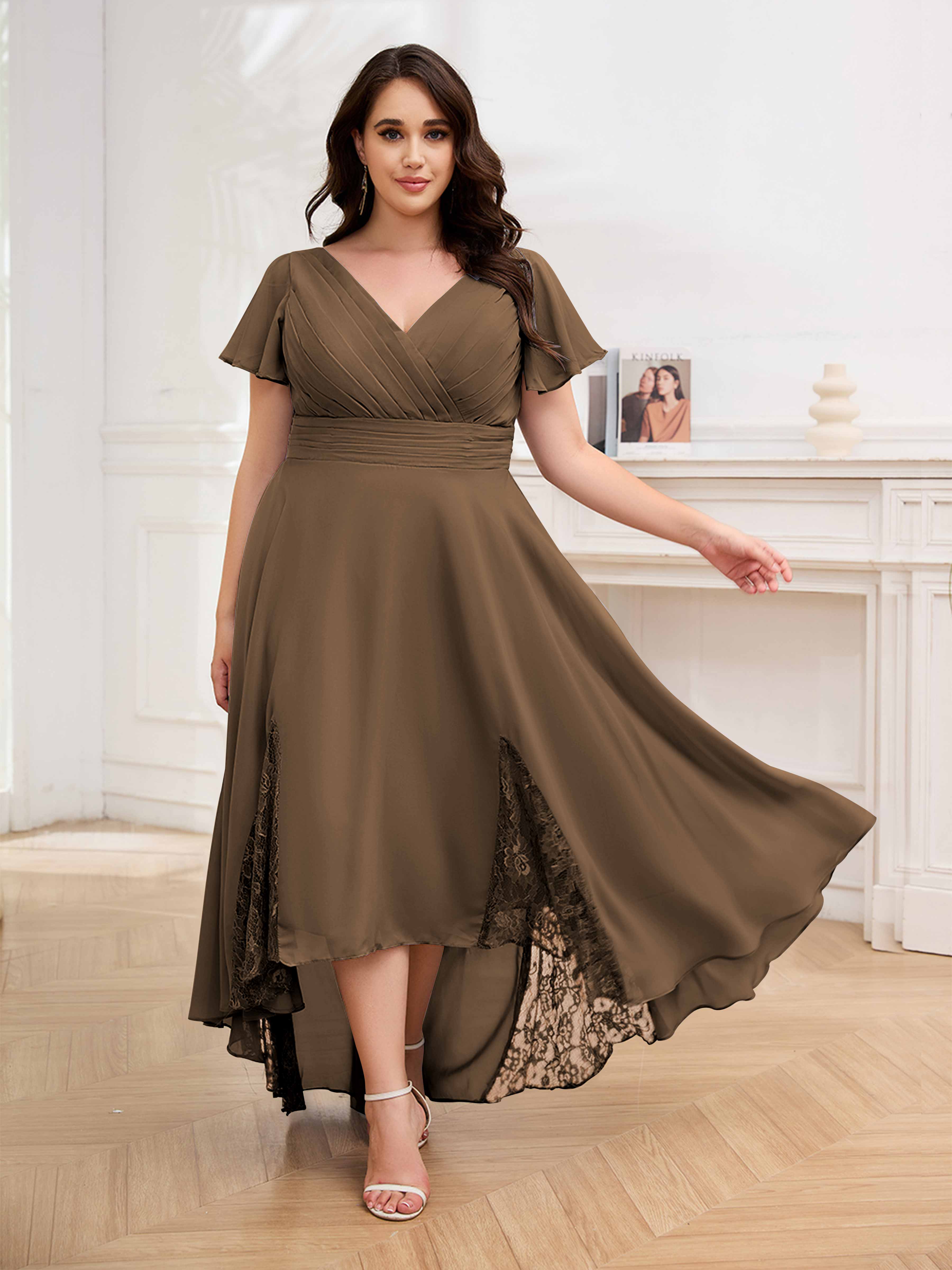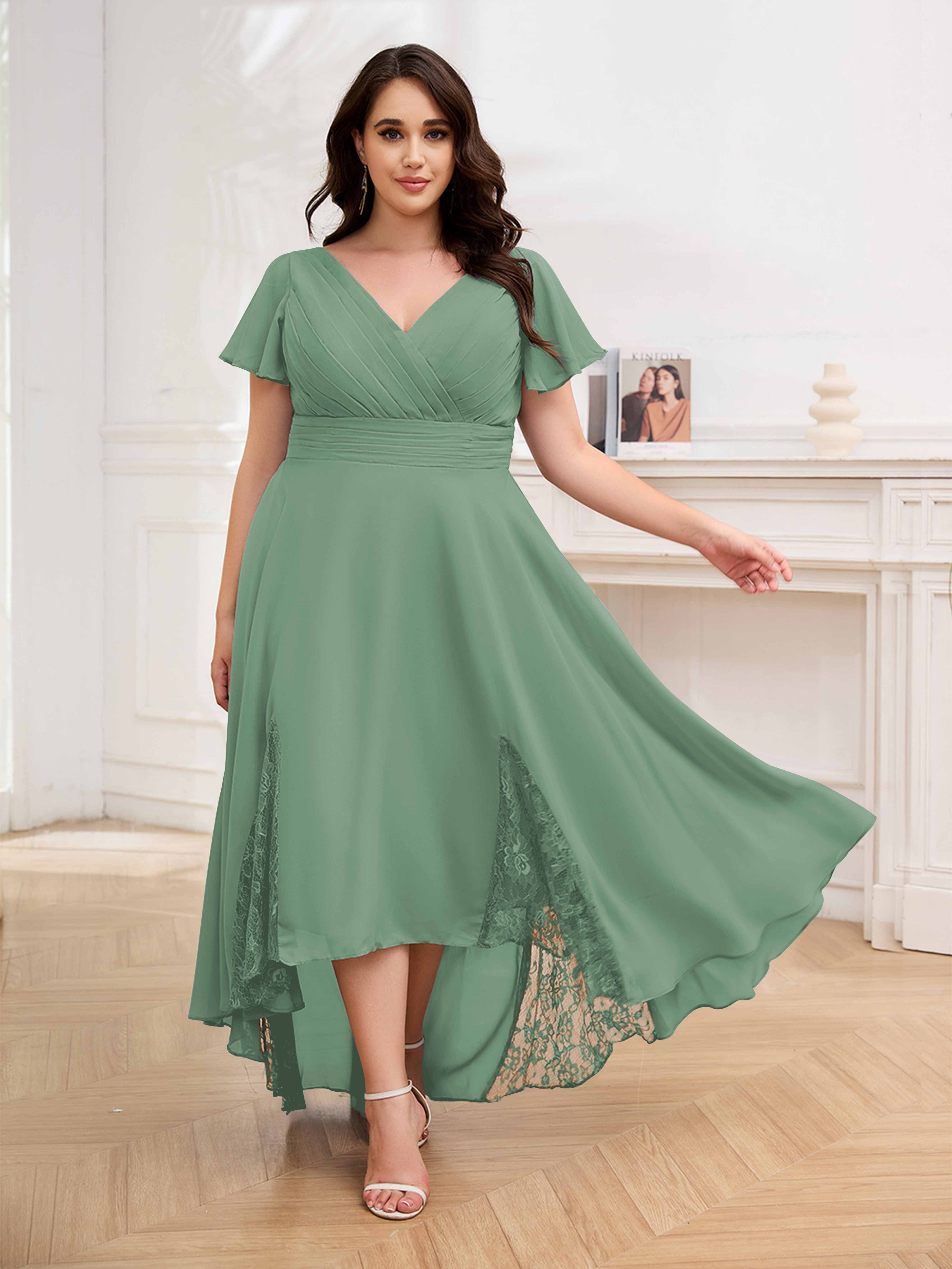 Remy Graceful Short Sleeves Chiffon High Low Plus Size Mother of the Bride Dresses