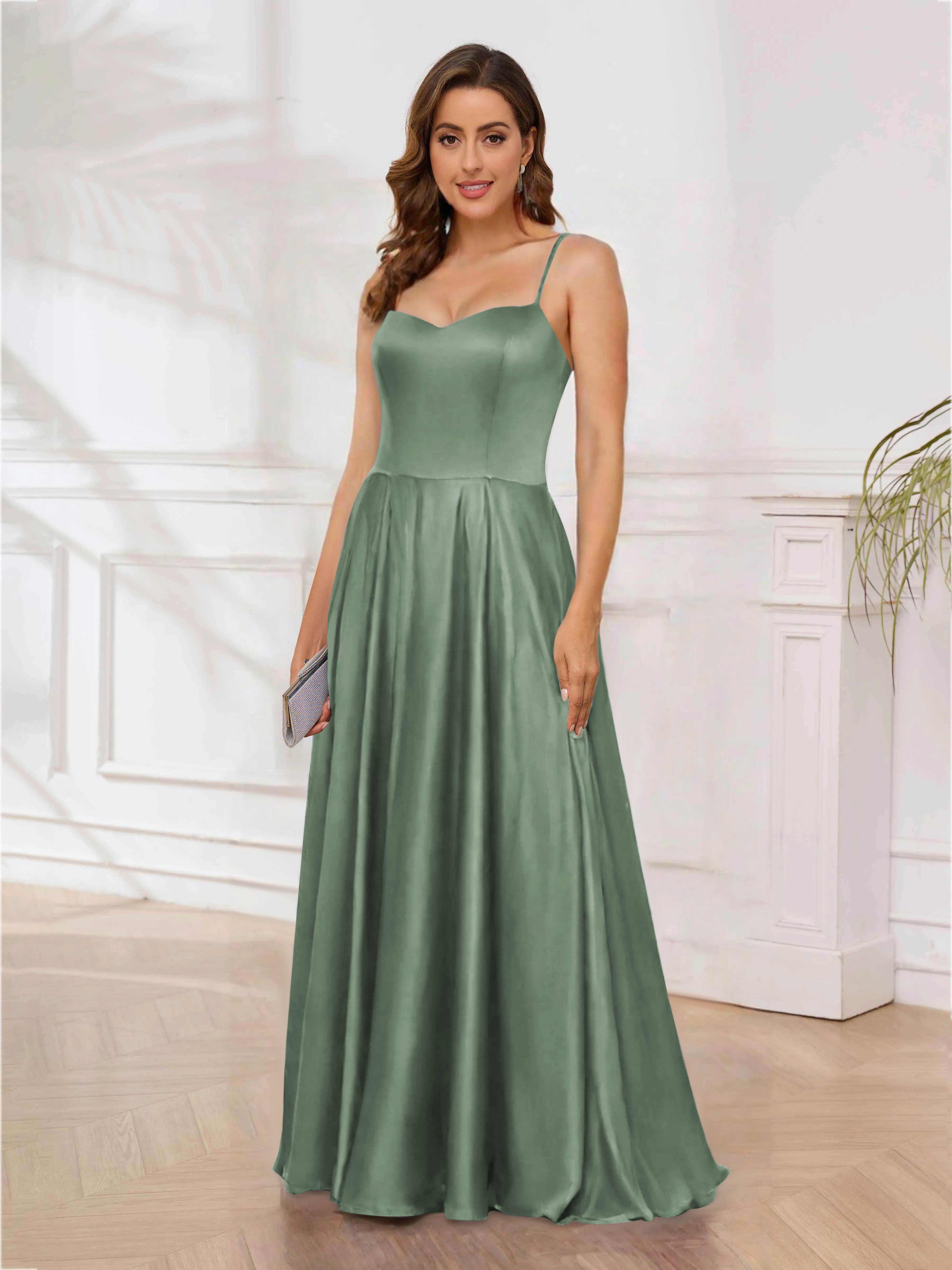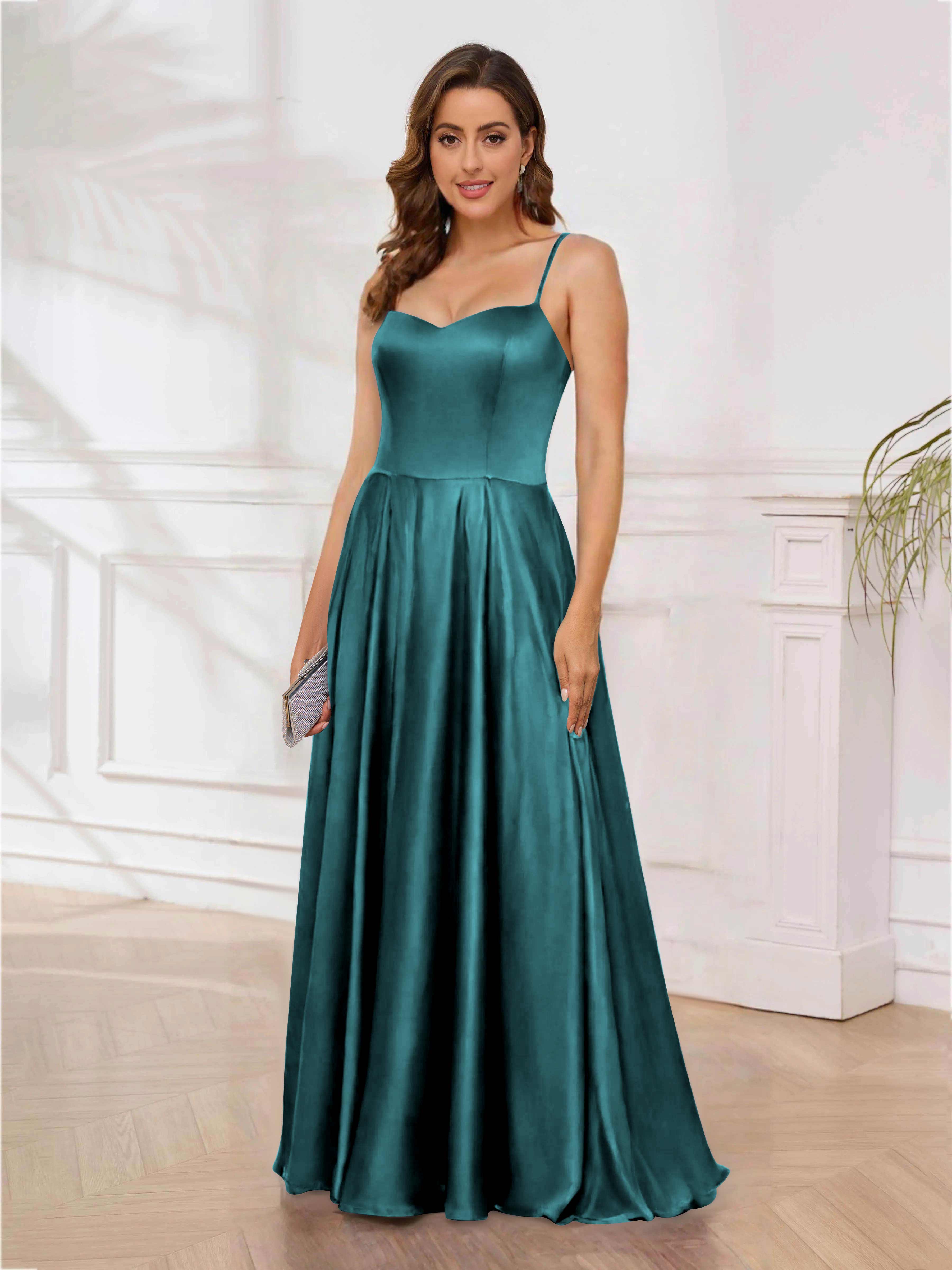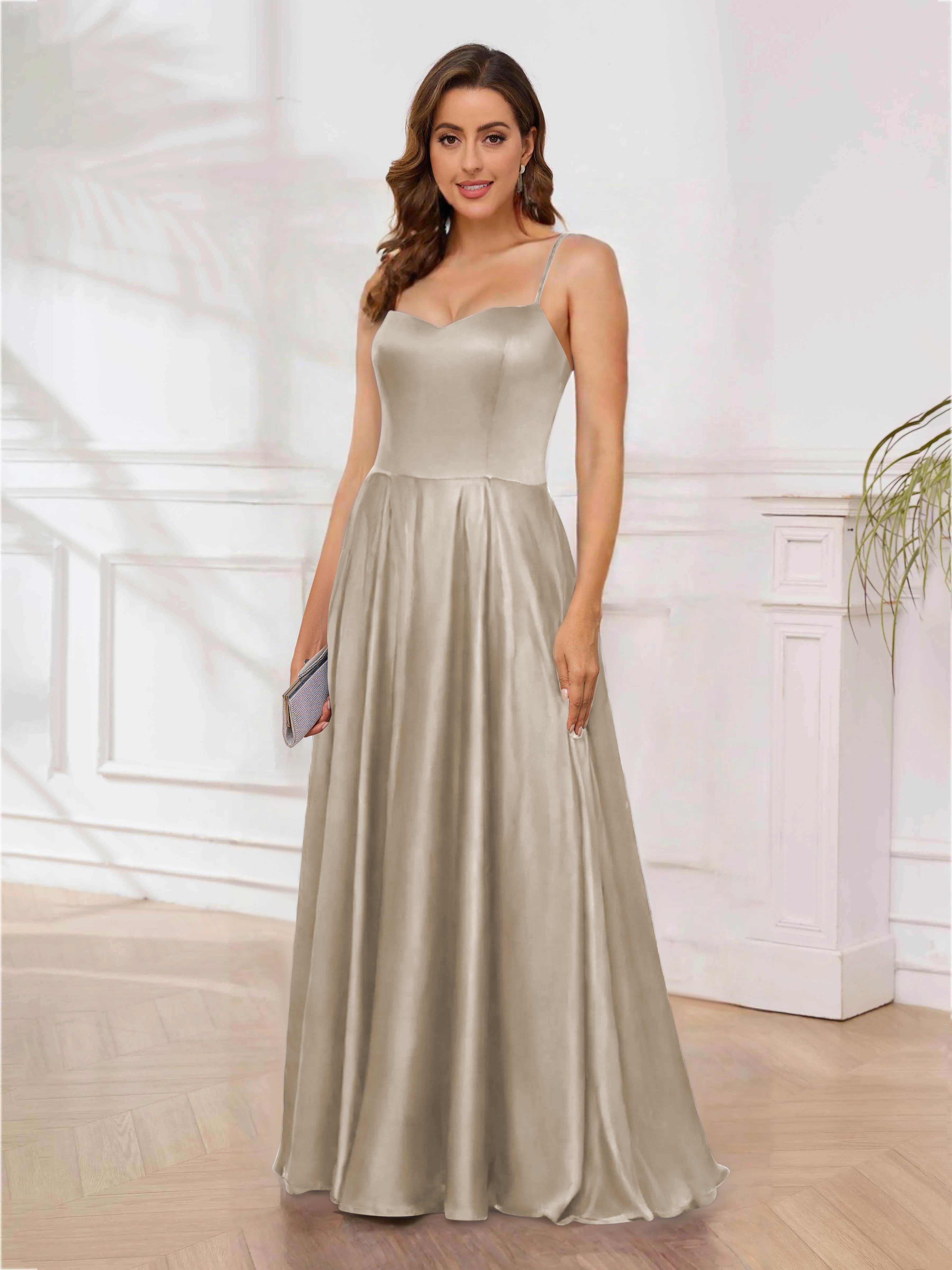 Rhea Trendy Spaghetti Straps Floor Length Satin Formal Dresses