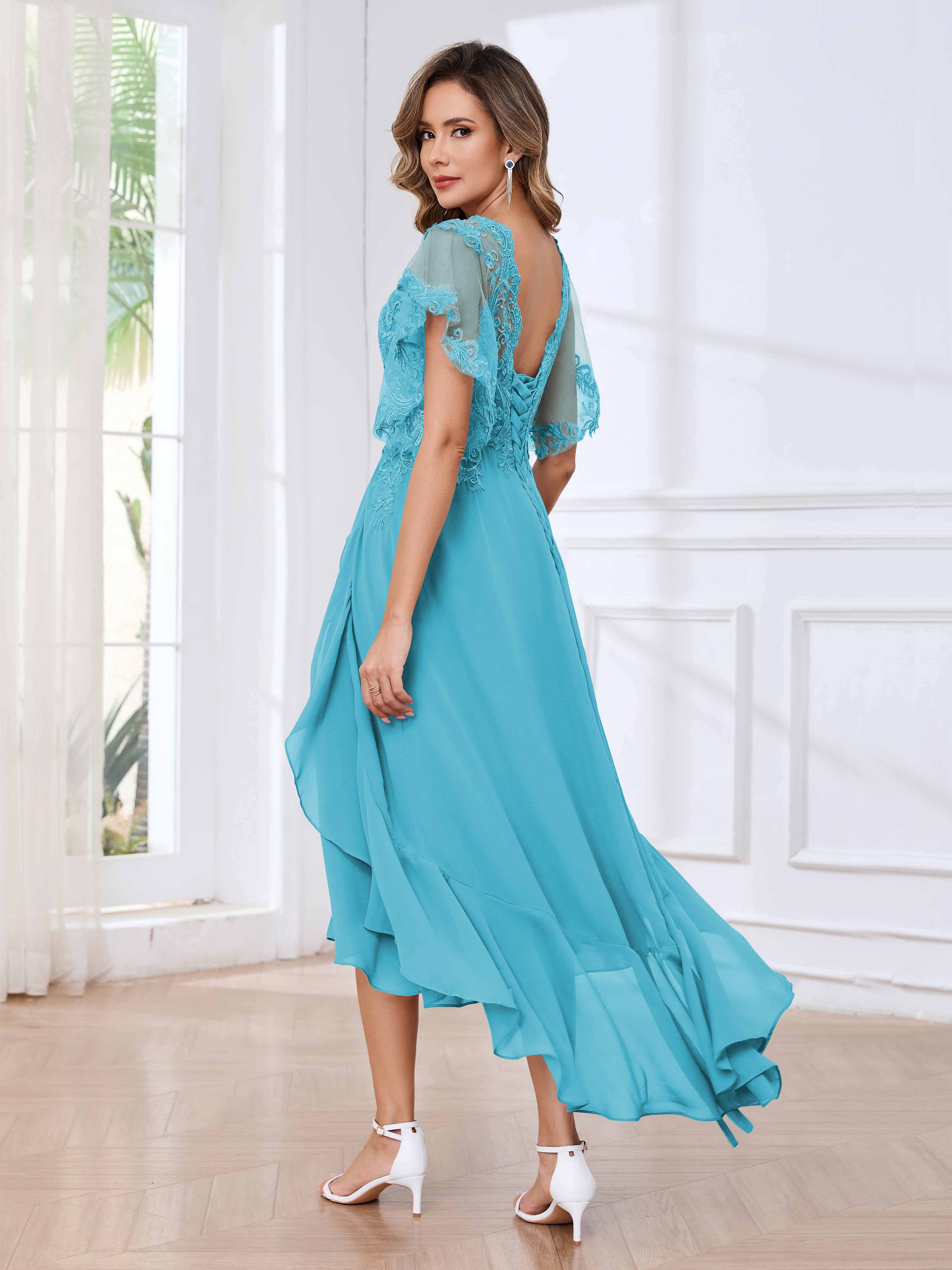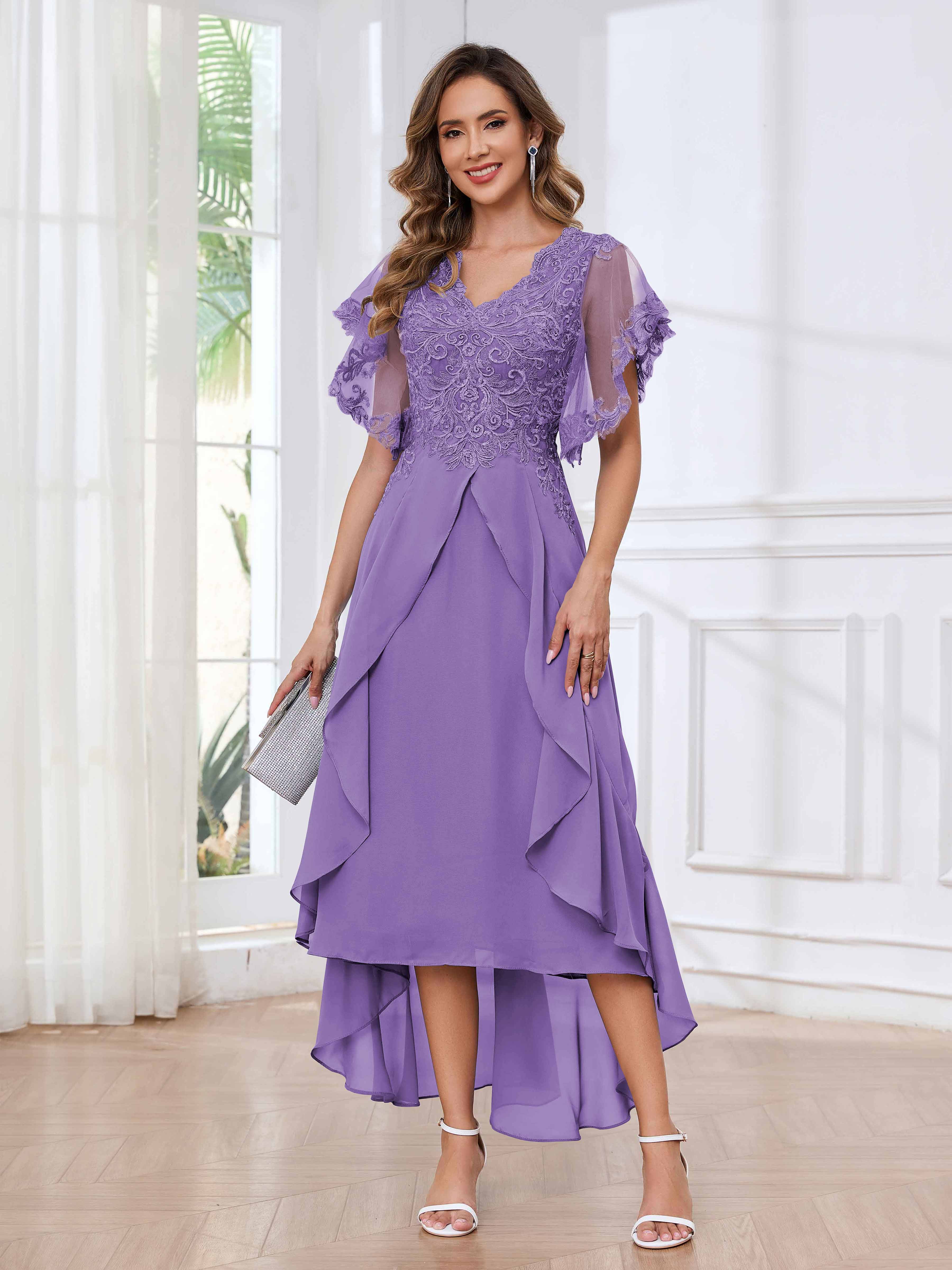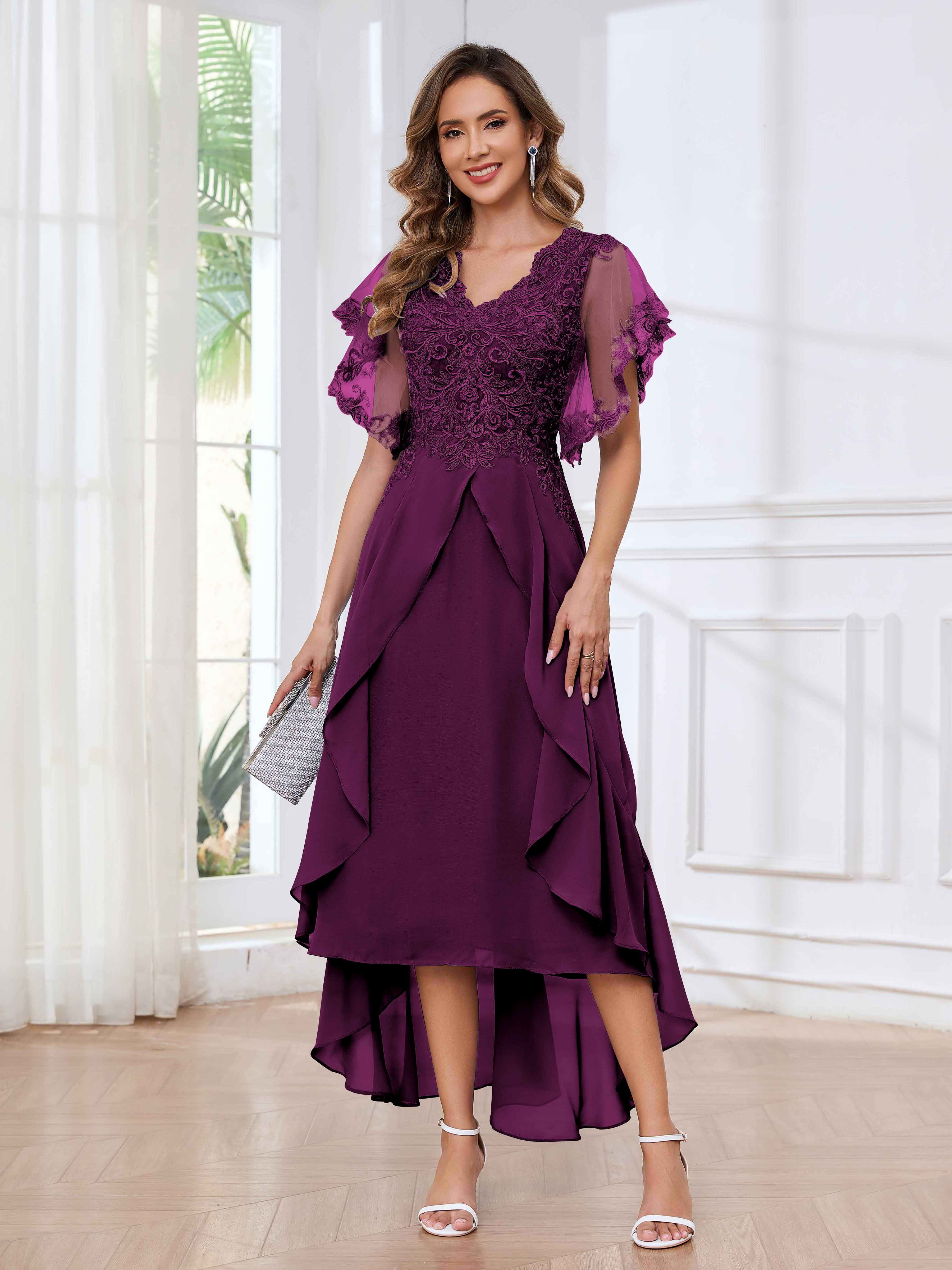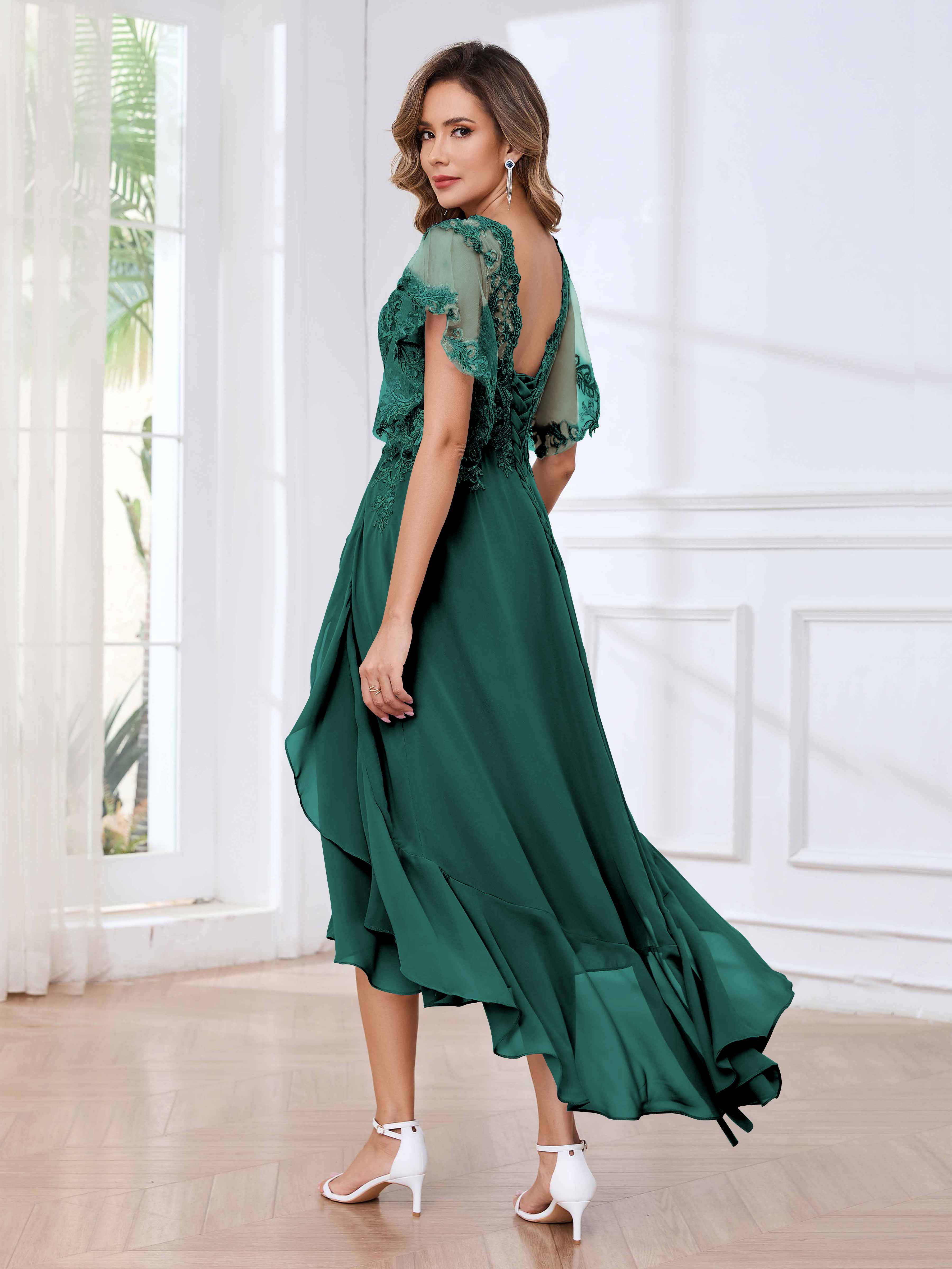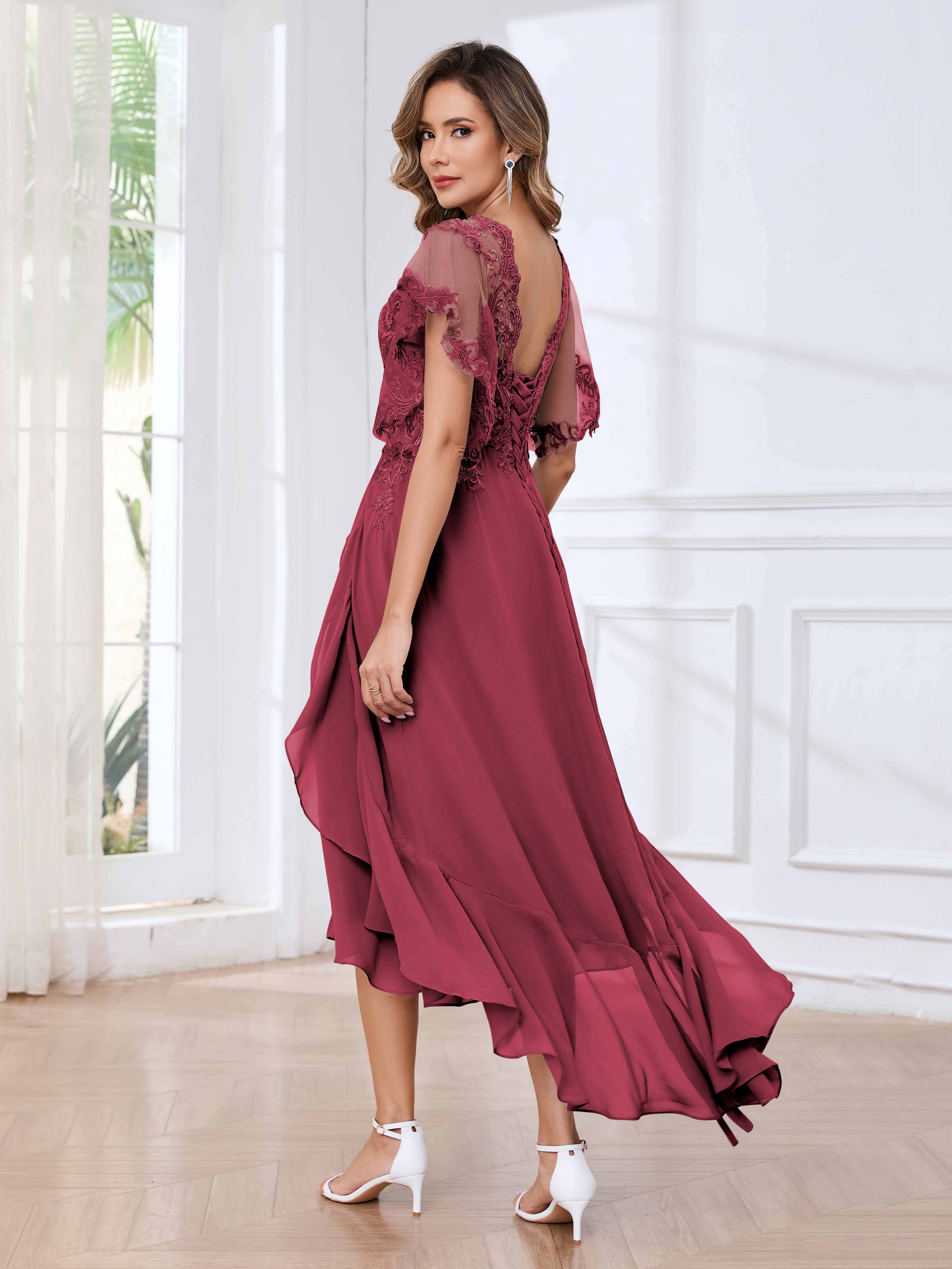 Sasha Stylish V Neck Short Sleeves Ruffles Appliques Mother of The Bride Dresses