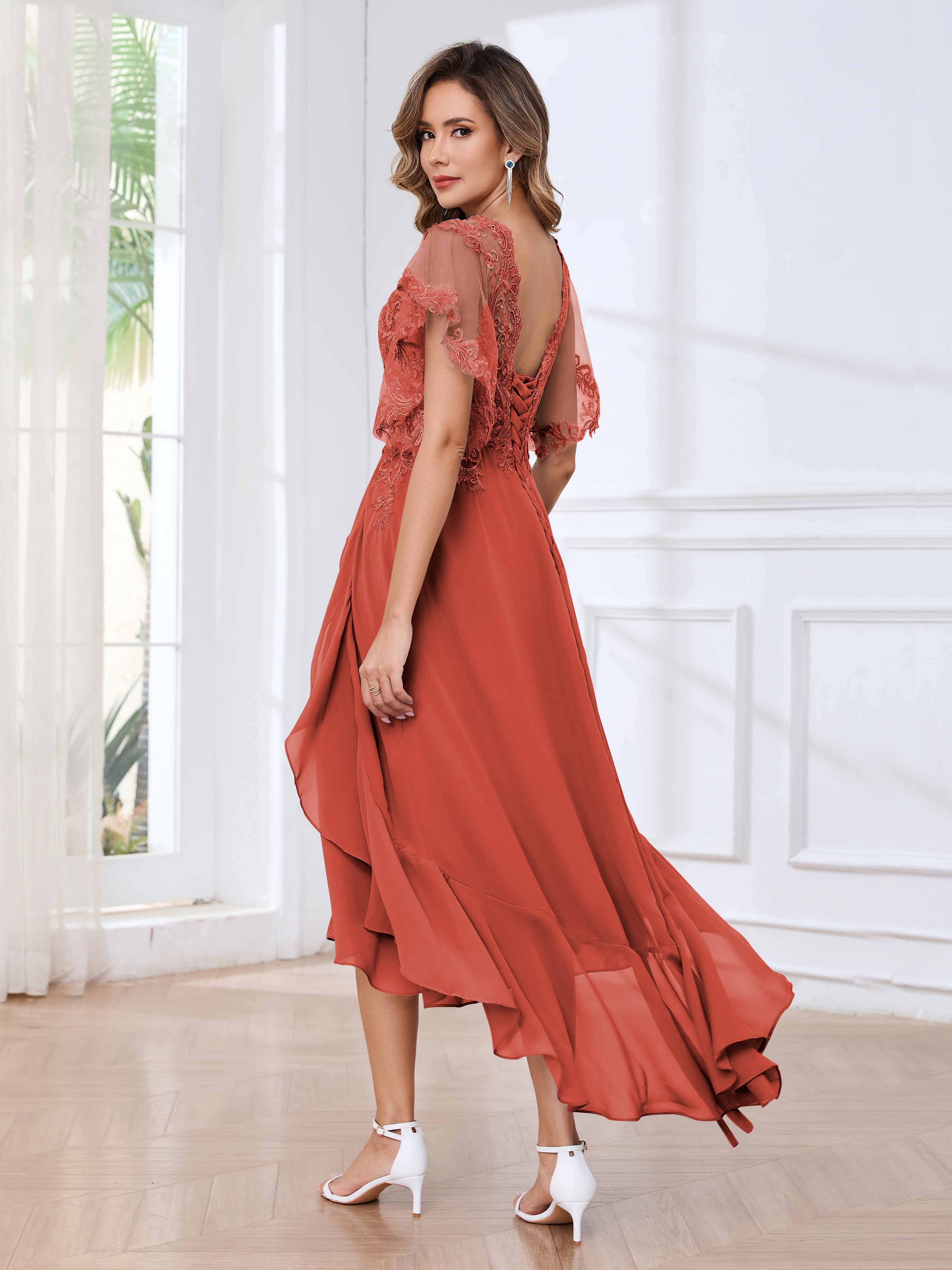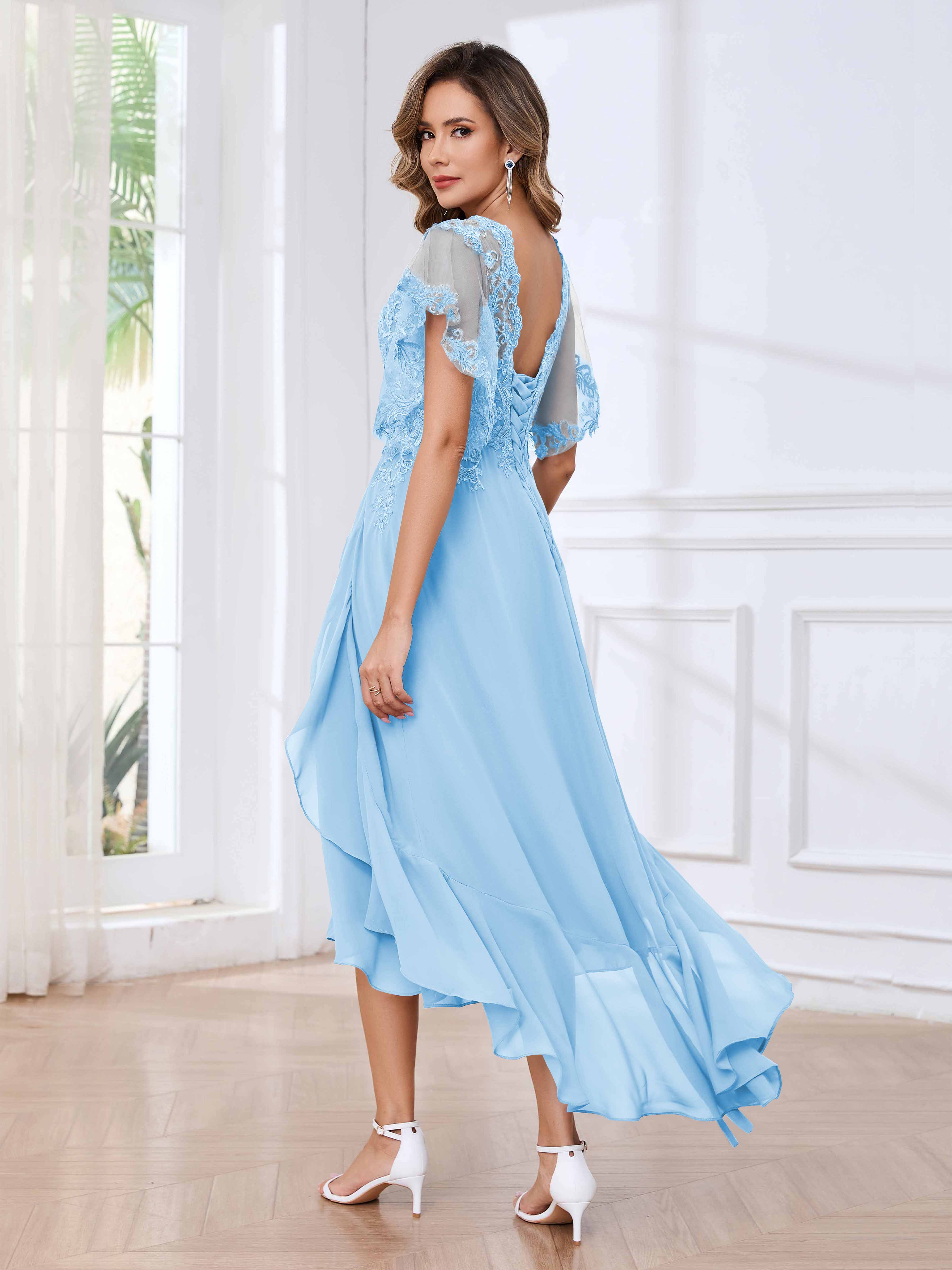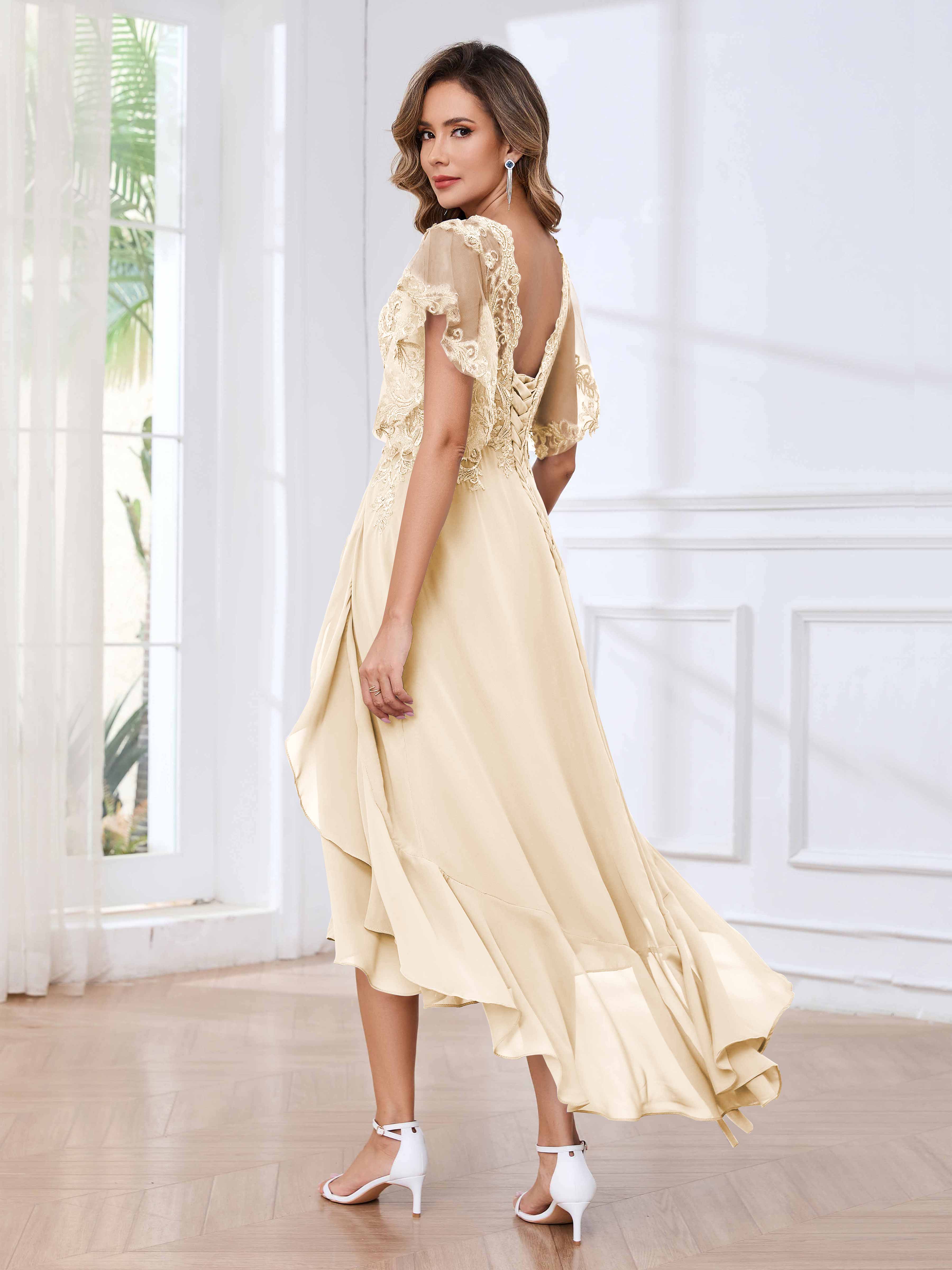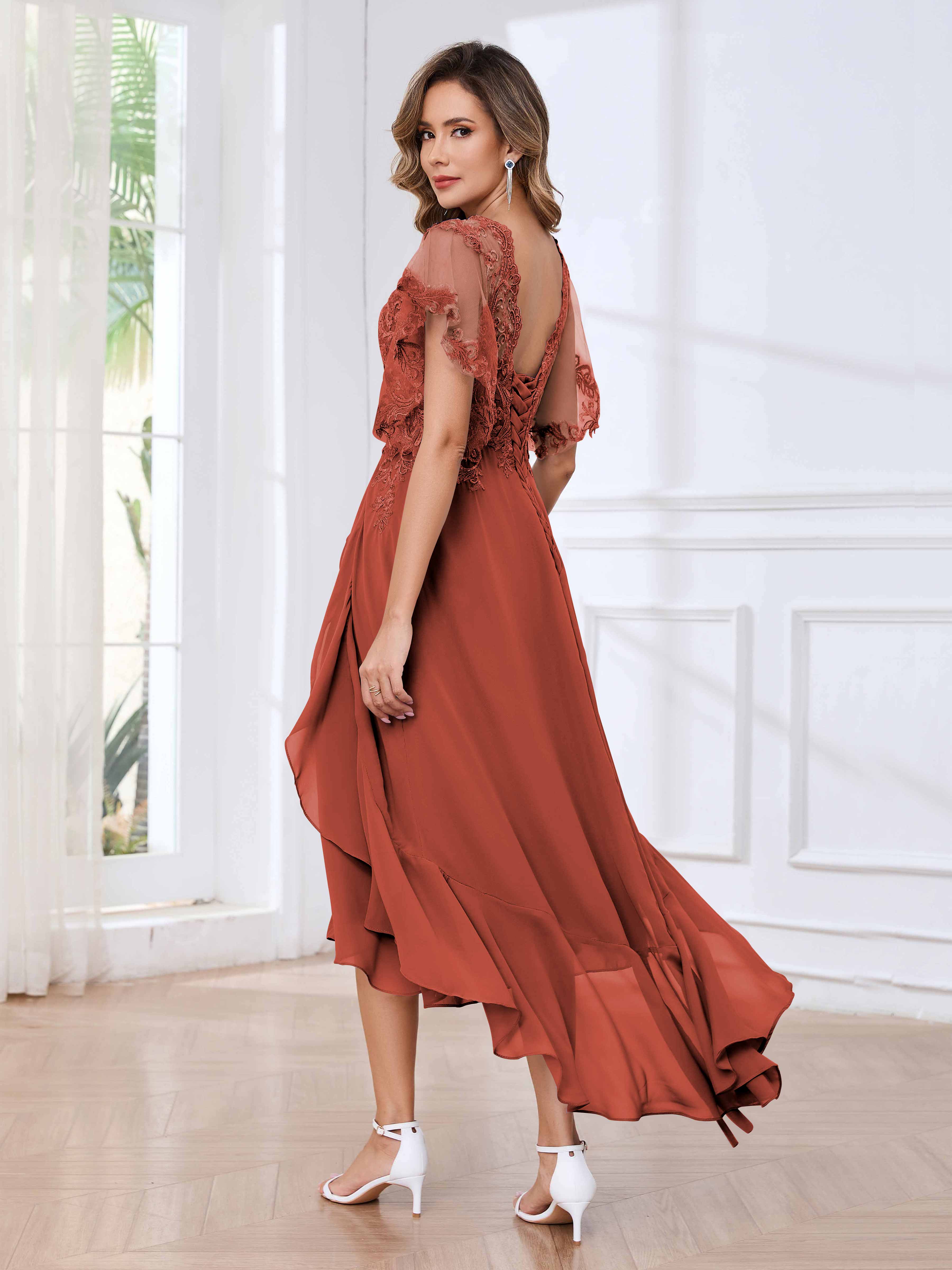 Sasha Stylish V Neck Short Sleeves Ruffles Appliques Mother of The Bride Dresses