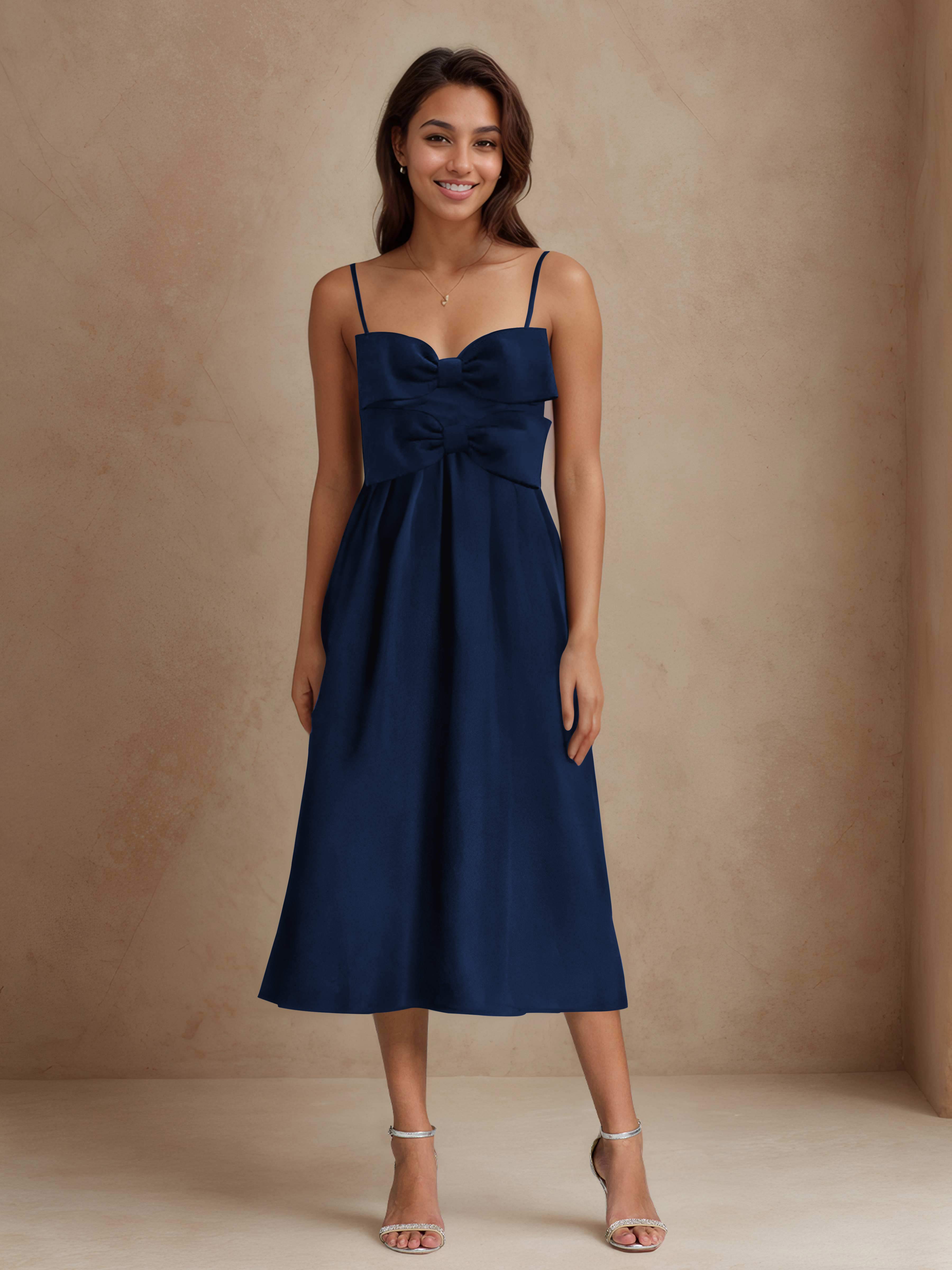 Savanna Unique A-Line Bow Tea Length Wedding Guest Dresses