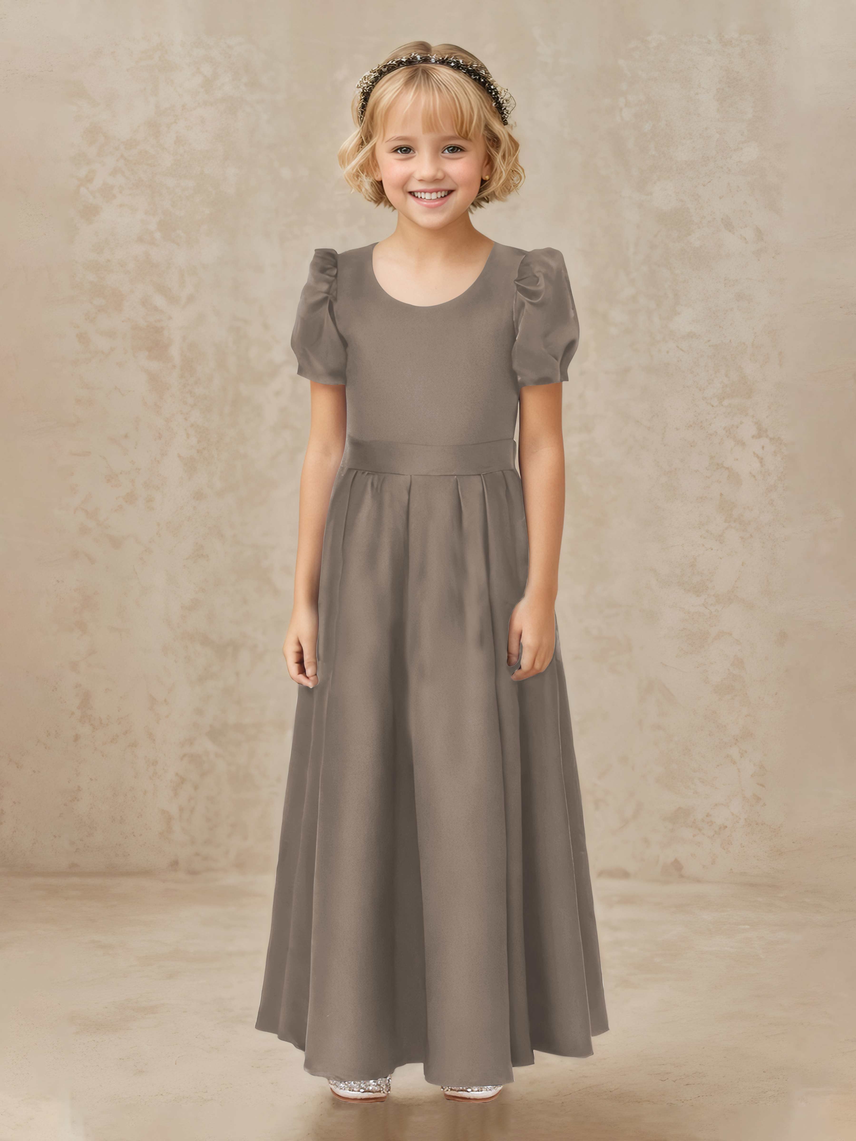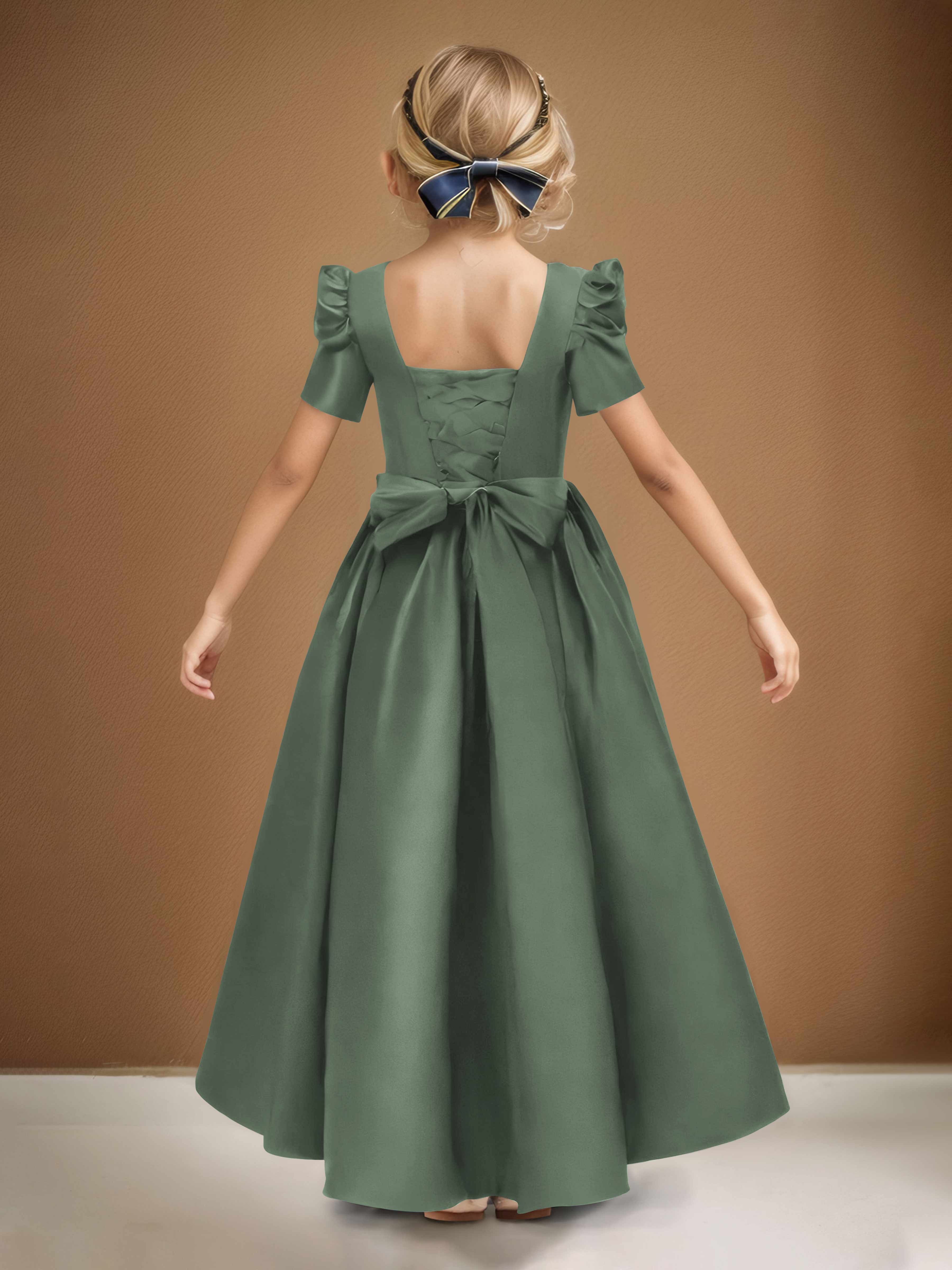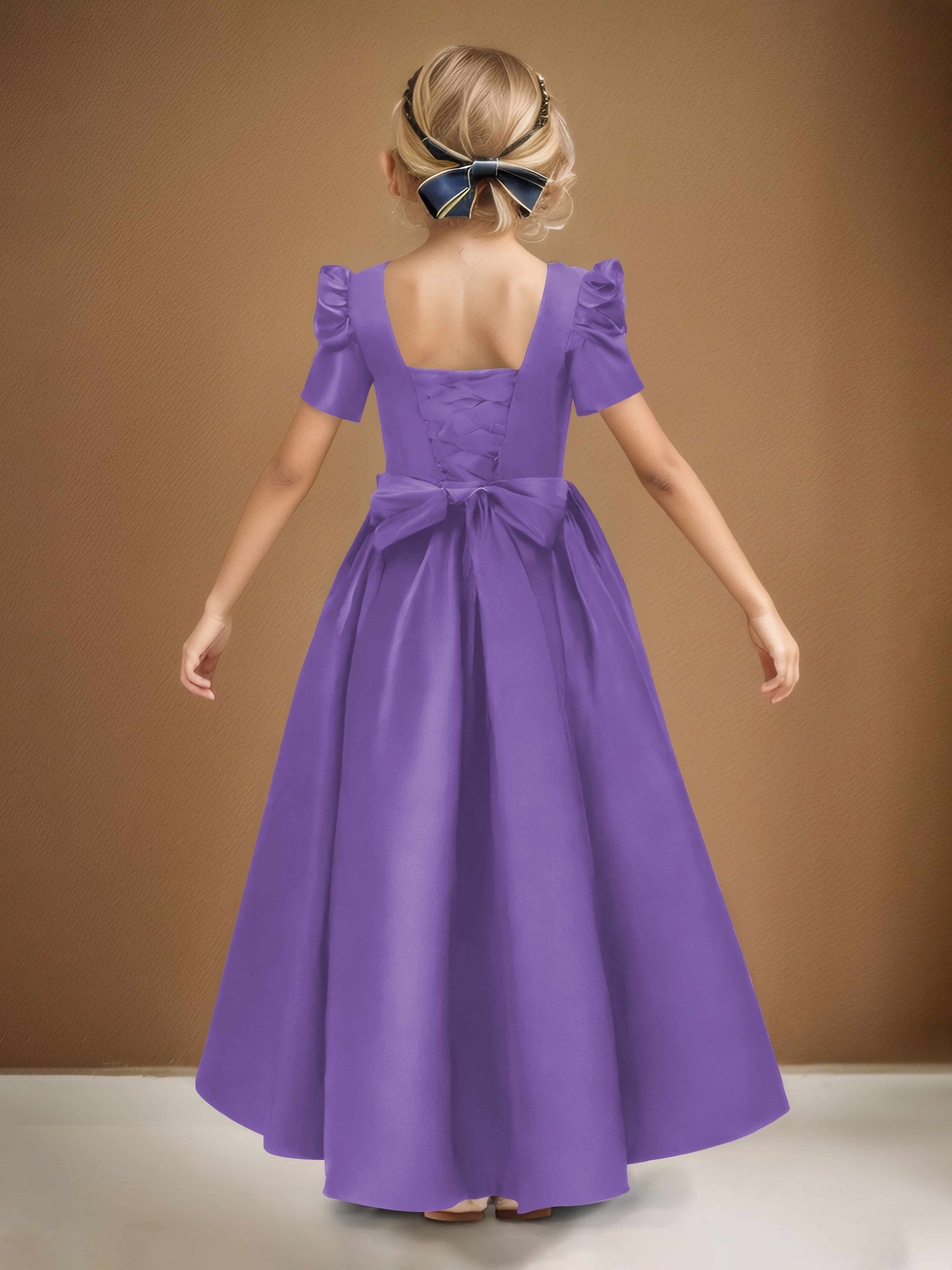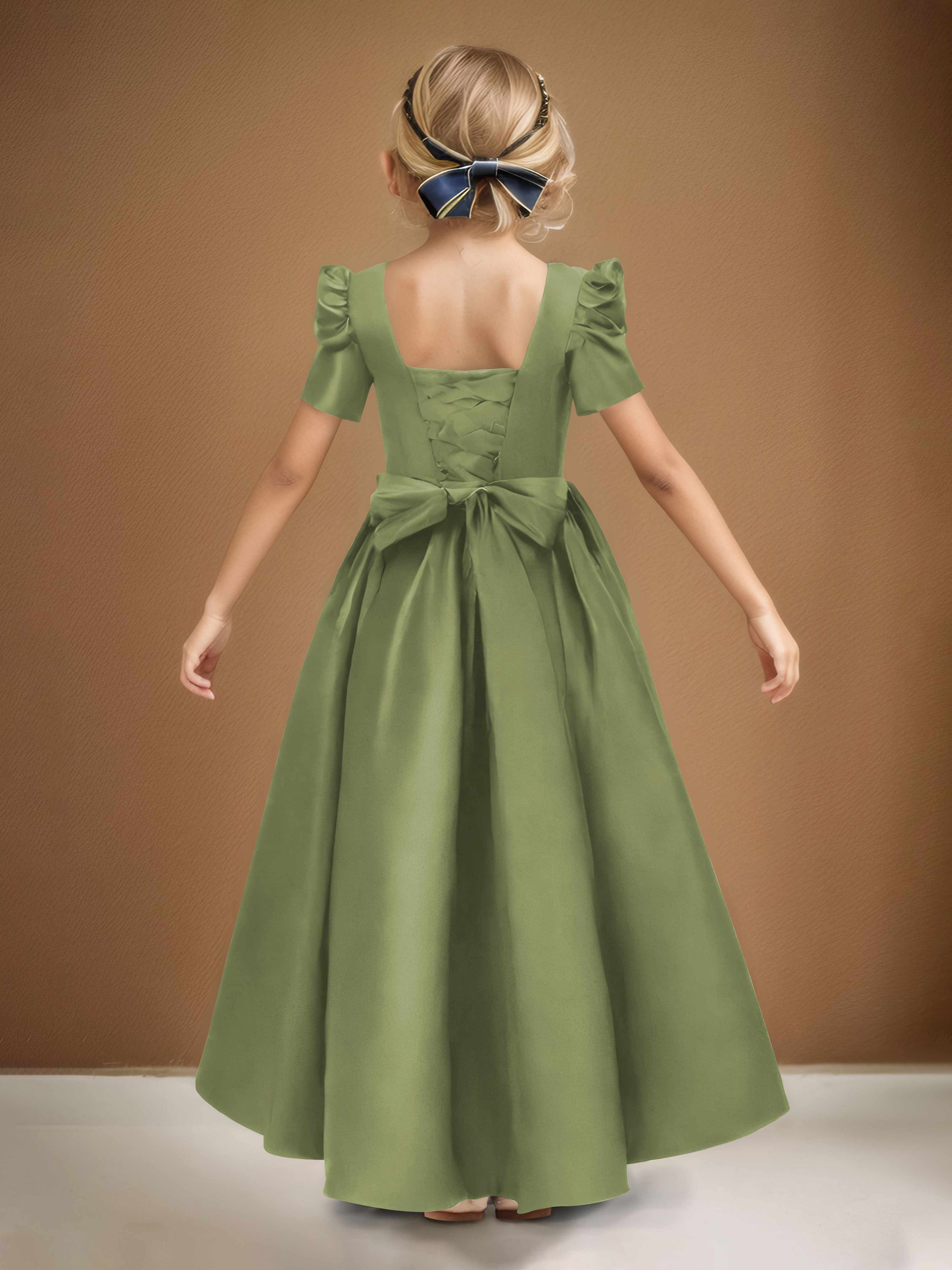 Simple A-Line Round Neck Satin Long Flower Girl Dresses