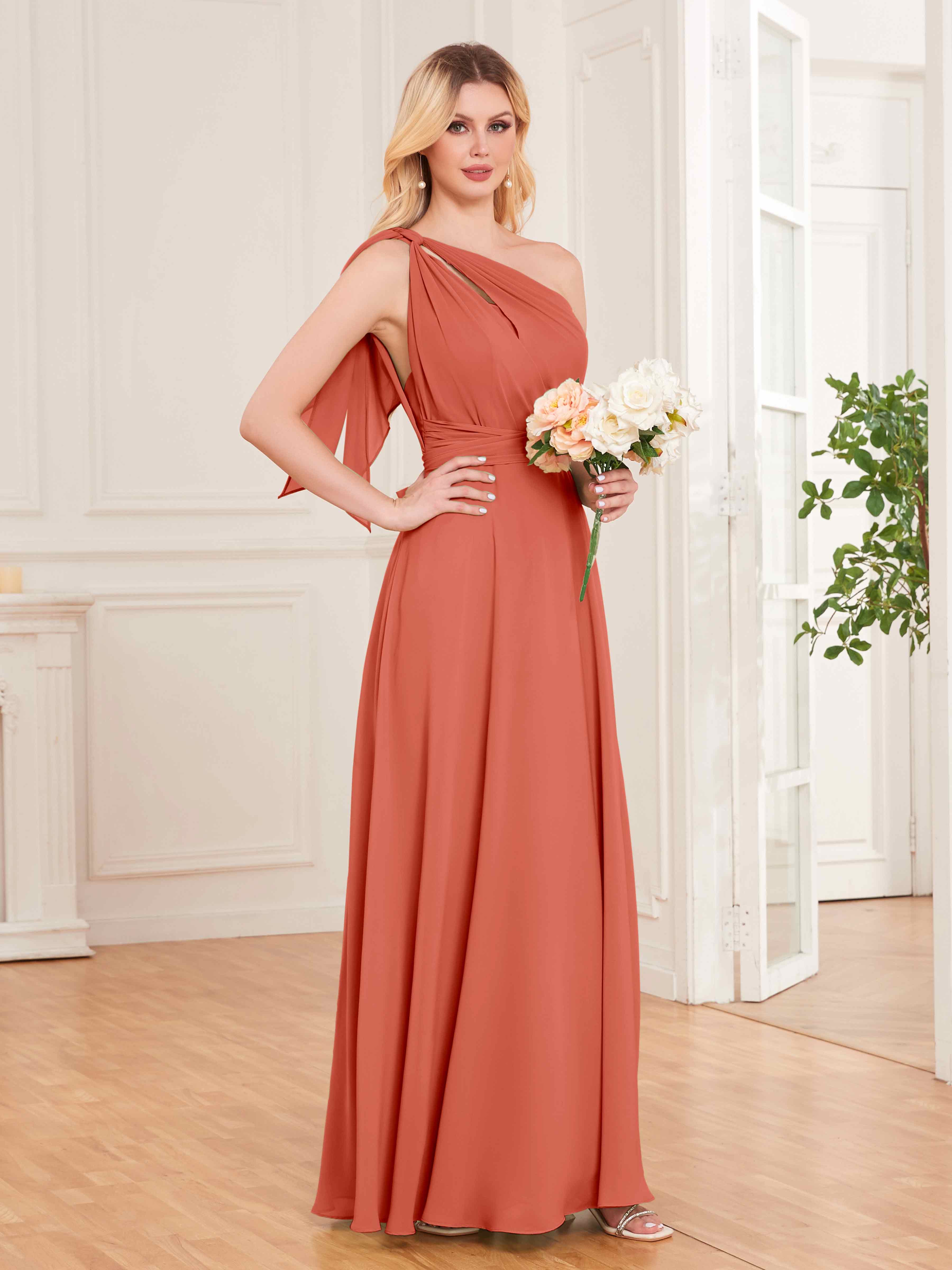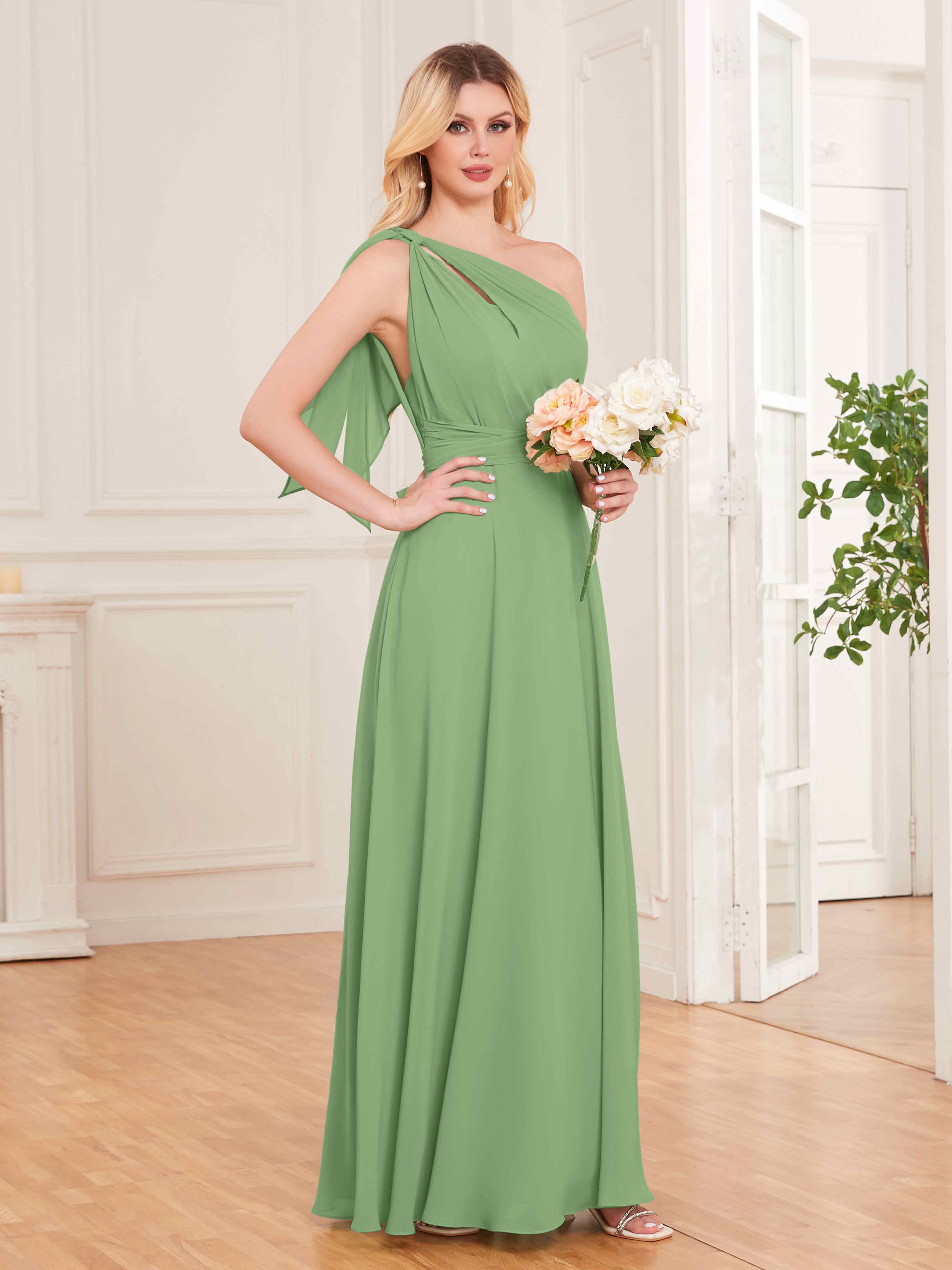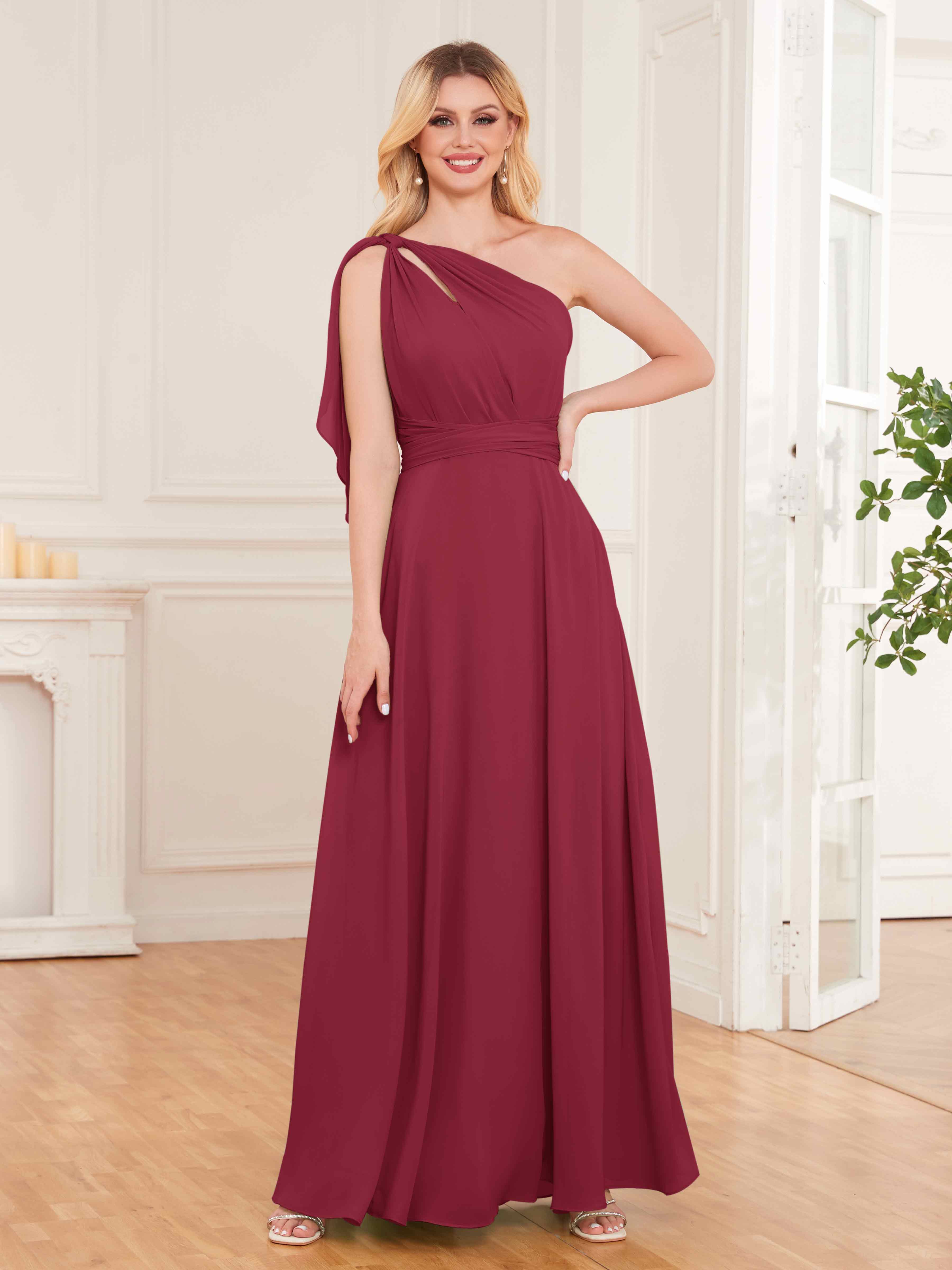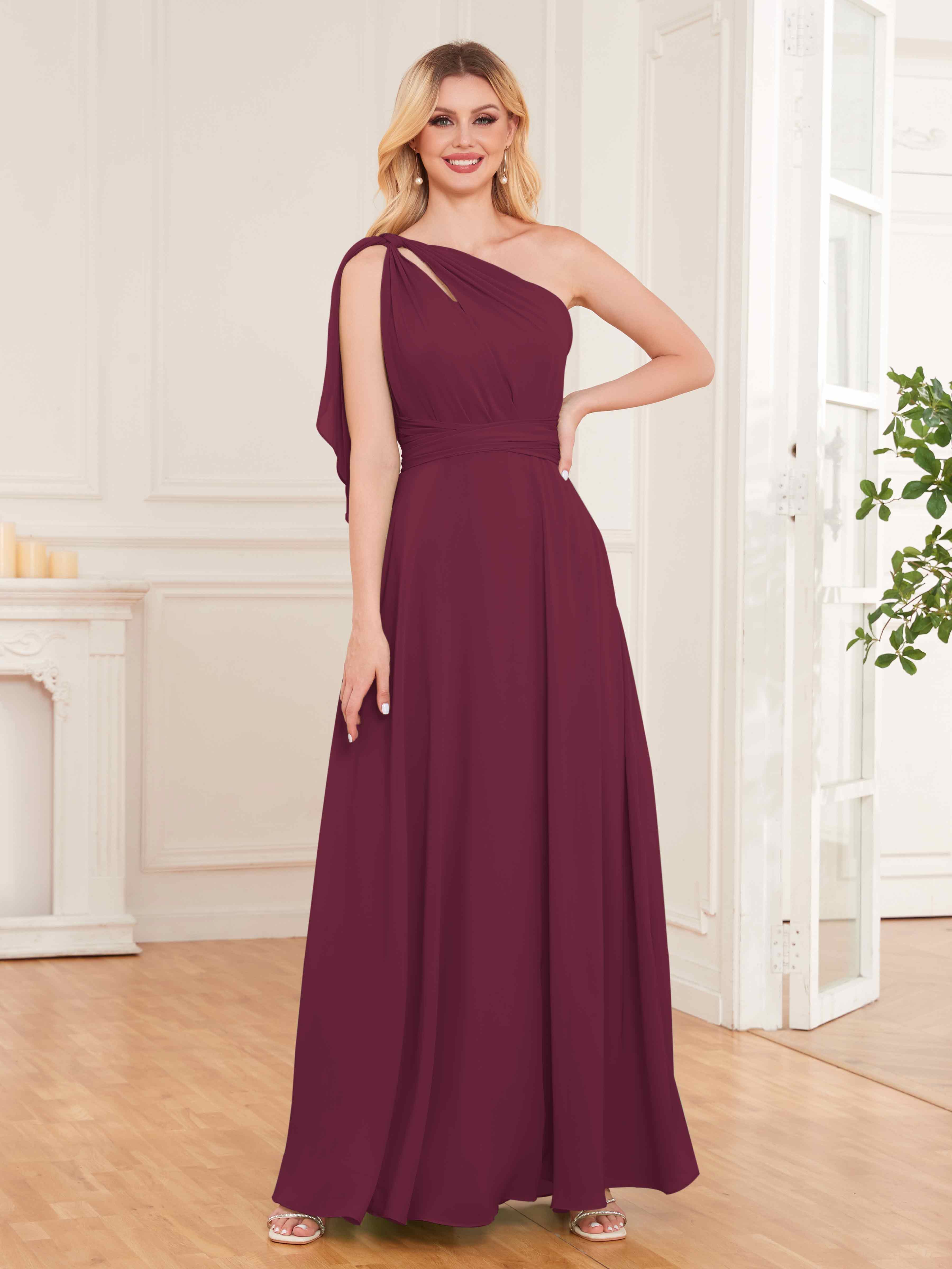 Sloane Charming One Shoulder Long Chiffon Bridesmaid Dresses