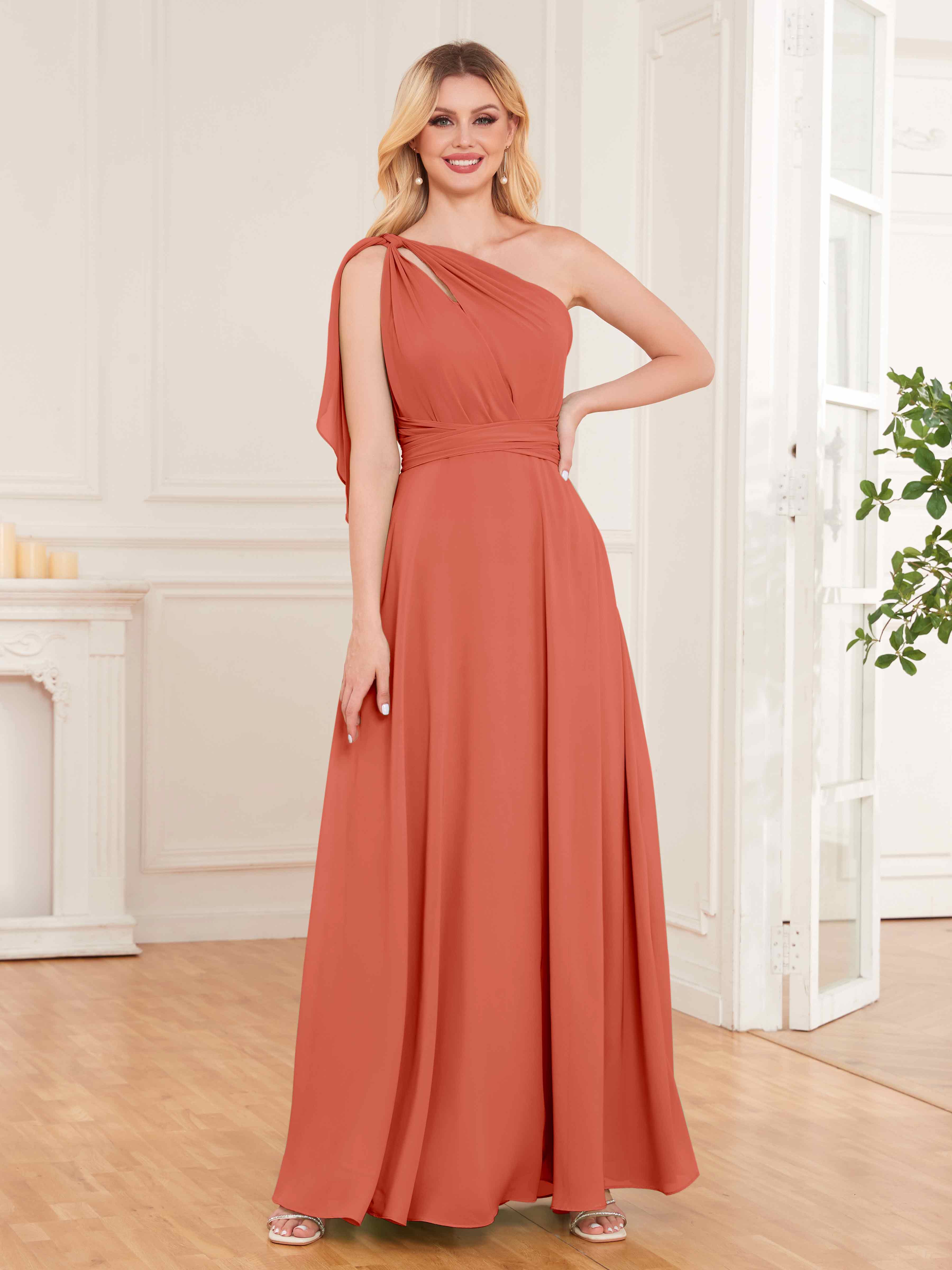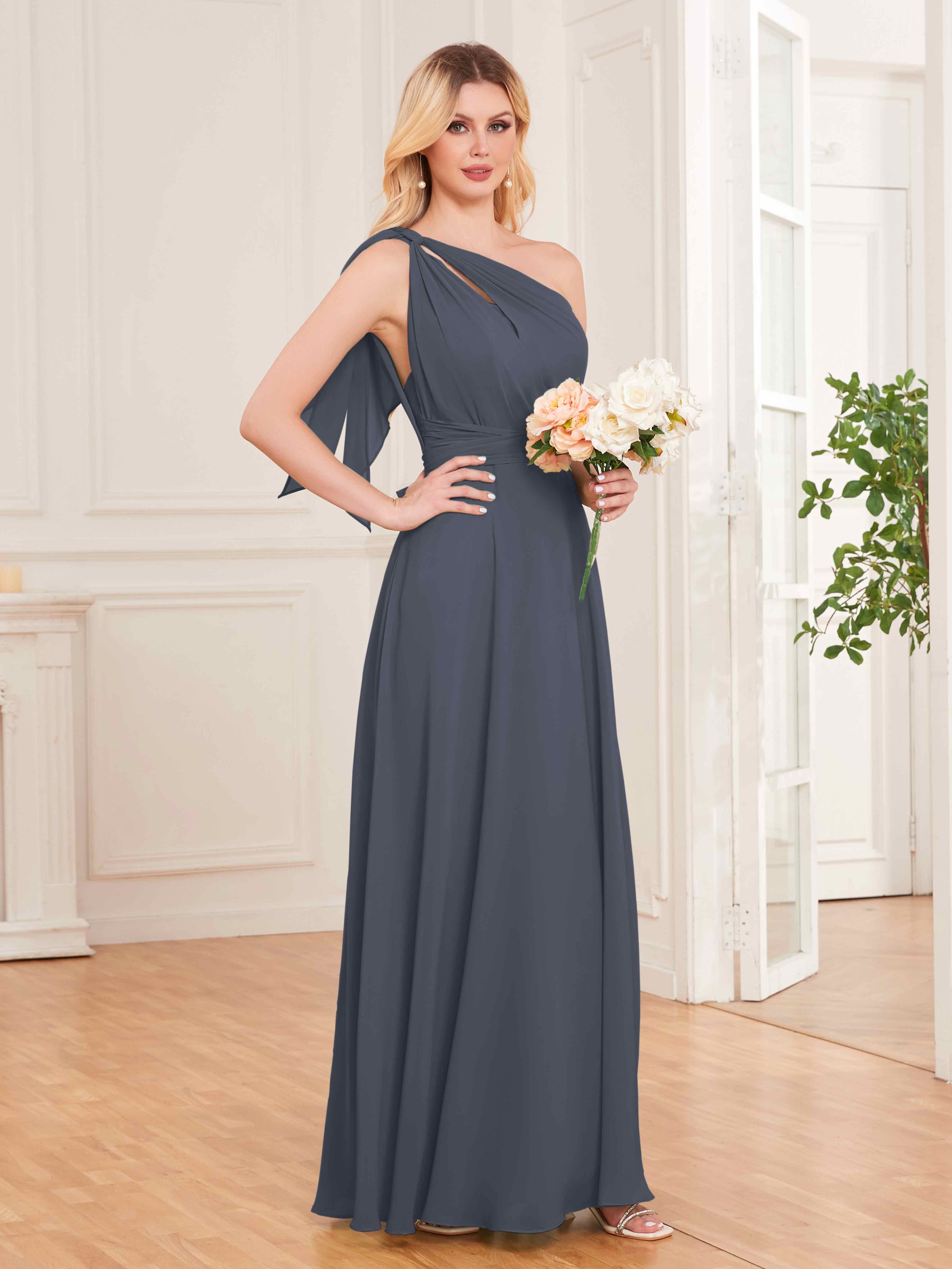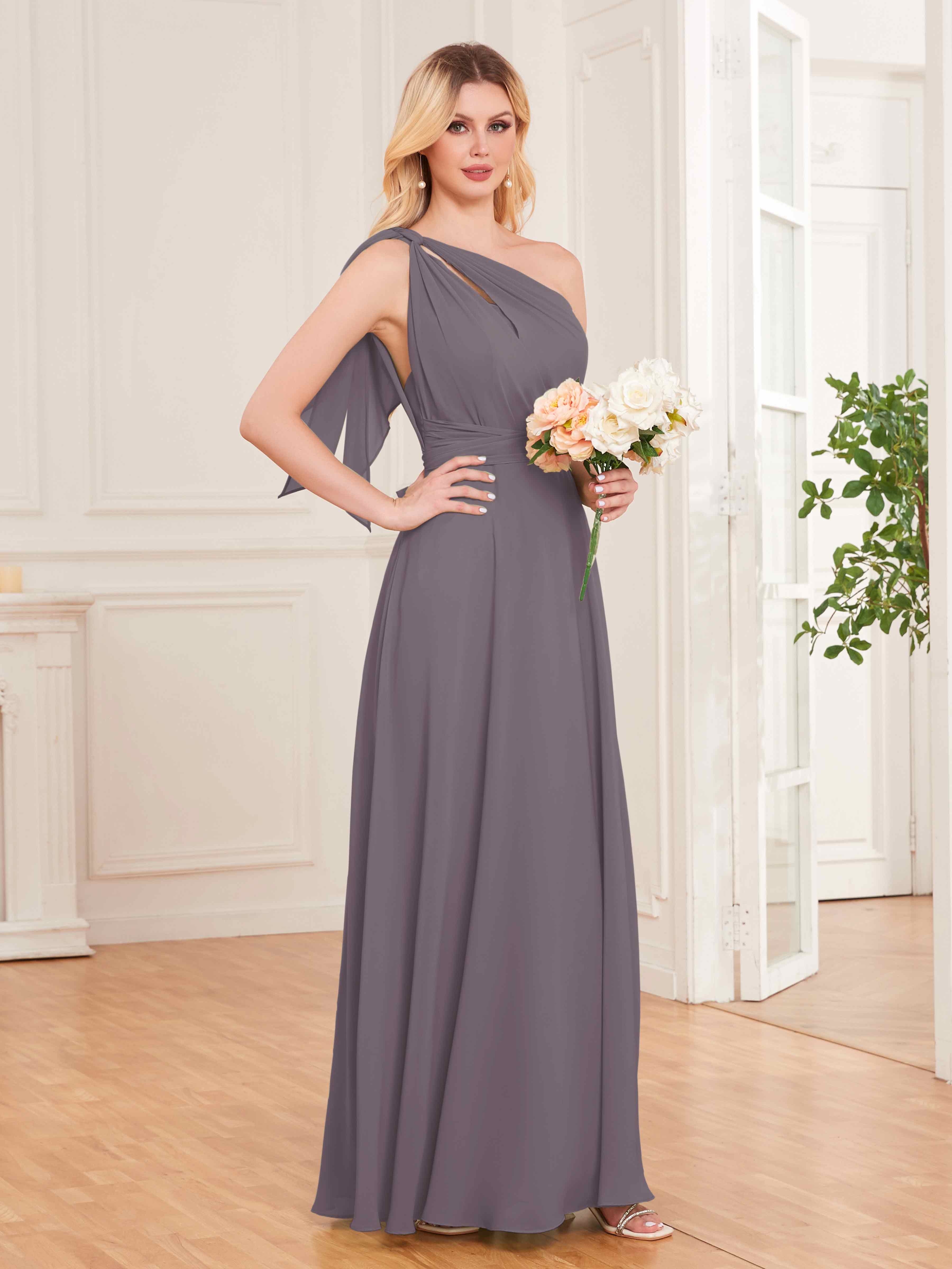 Sloane Charming One Shoulder Long Chiffon Bridesmaid Dresses