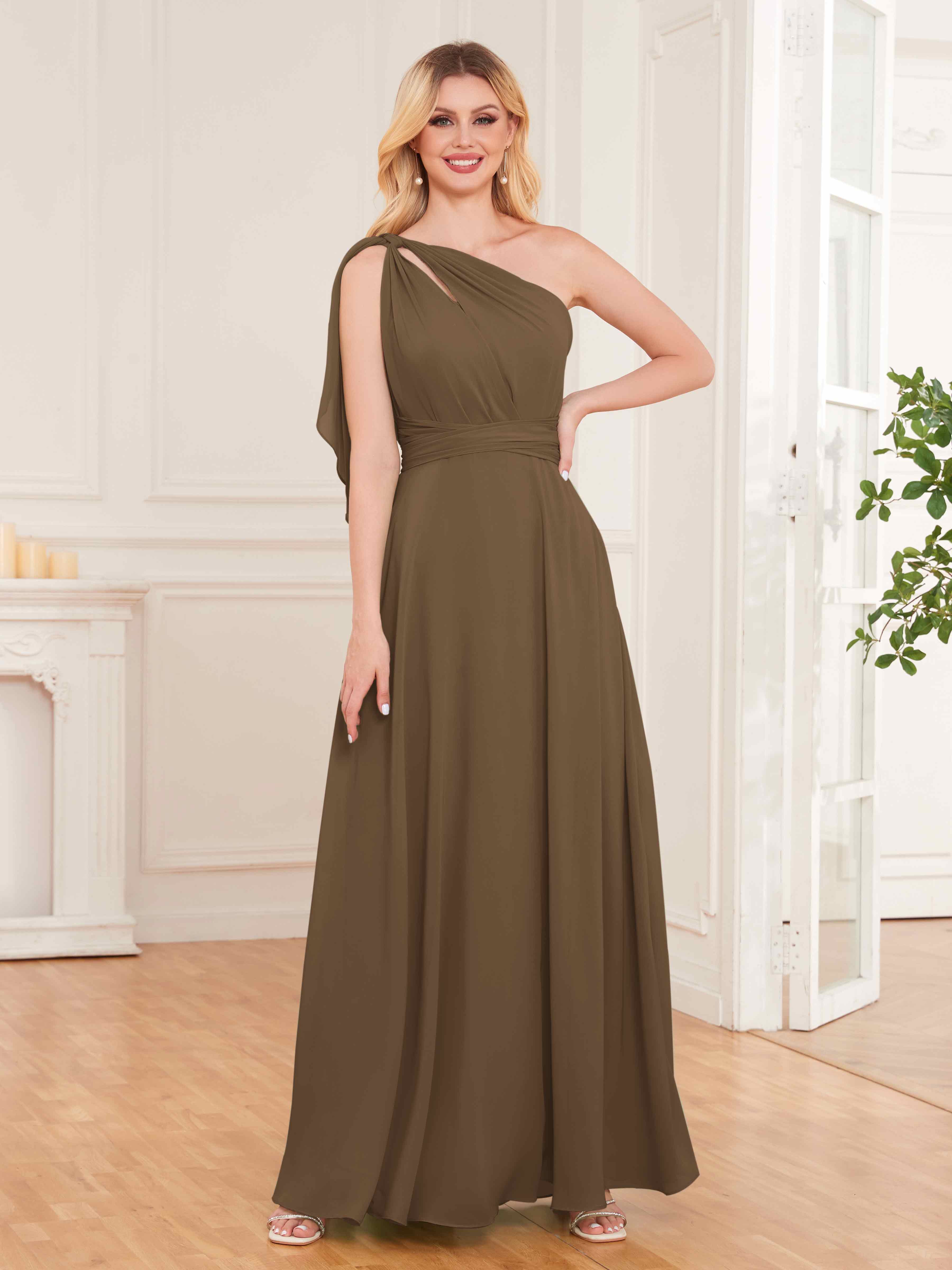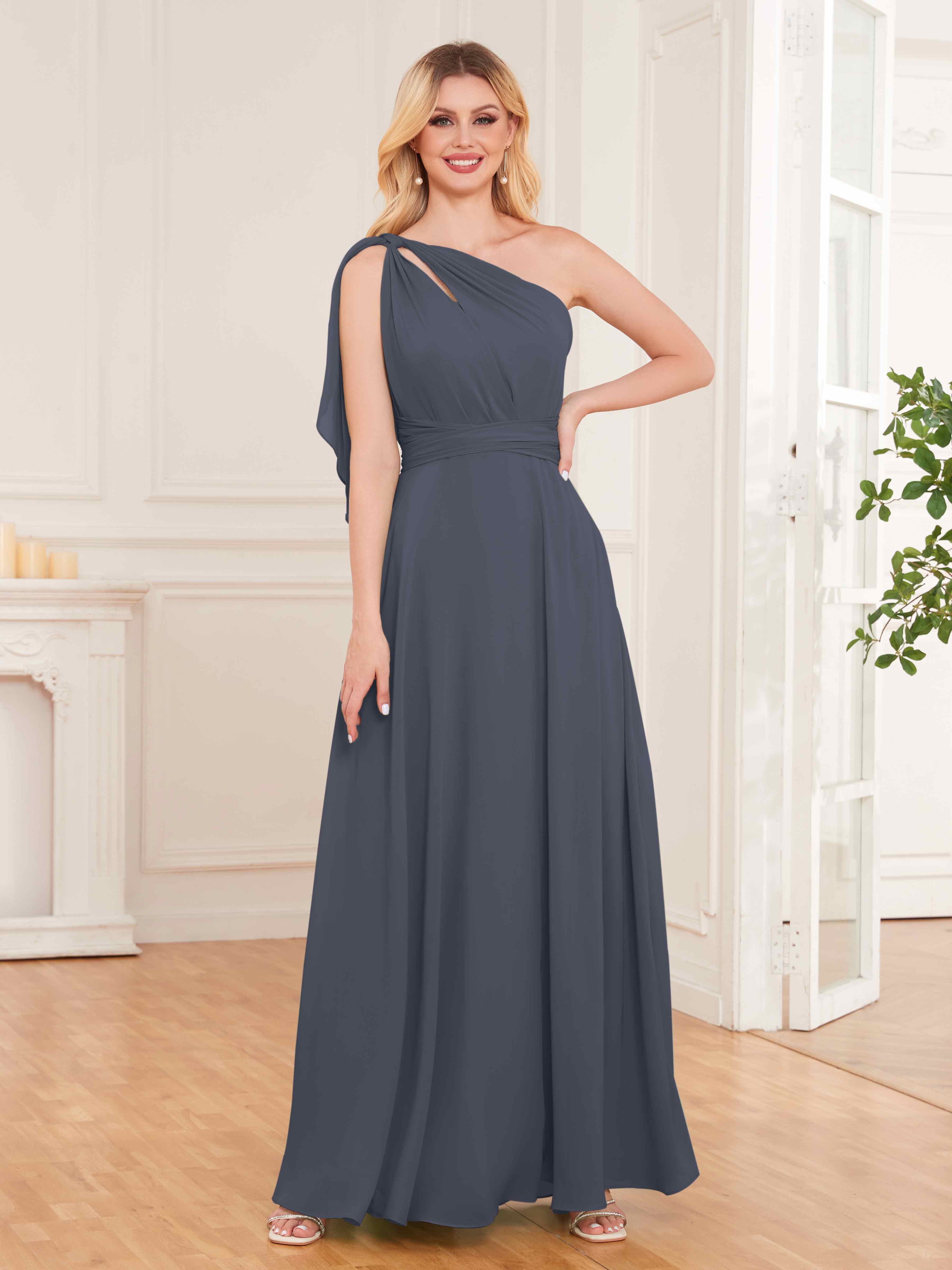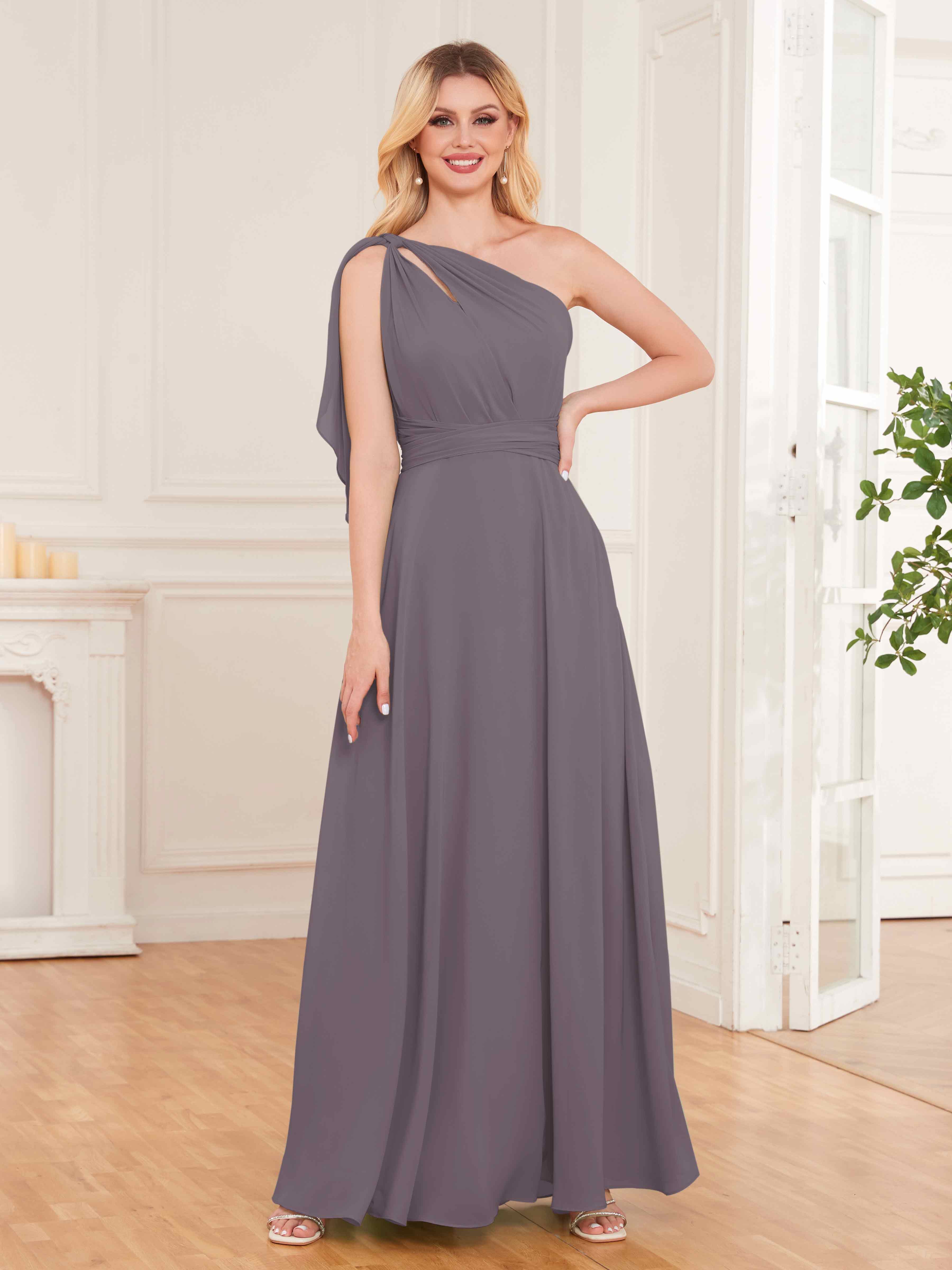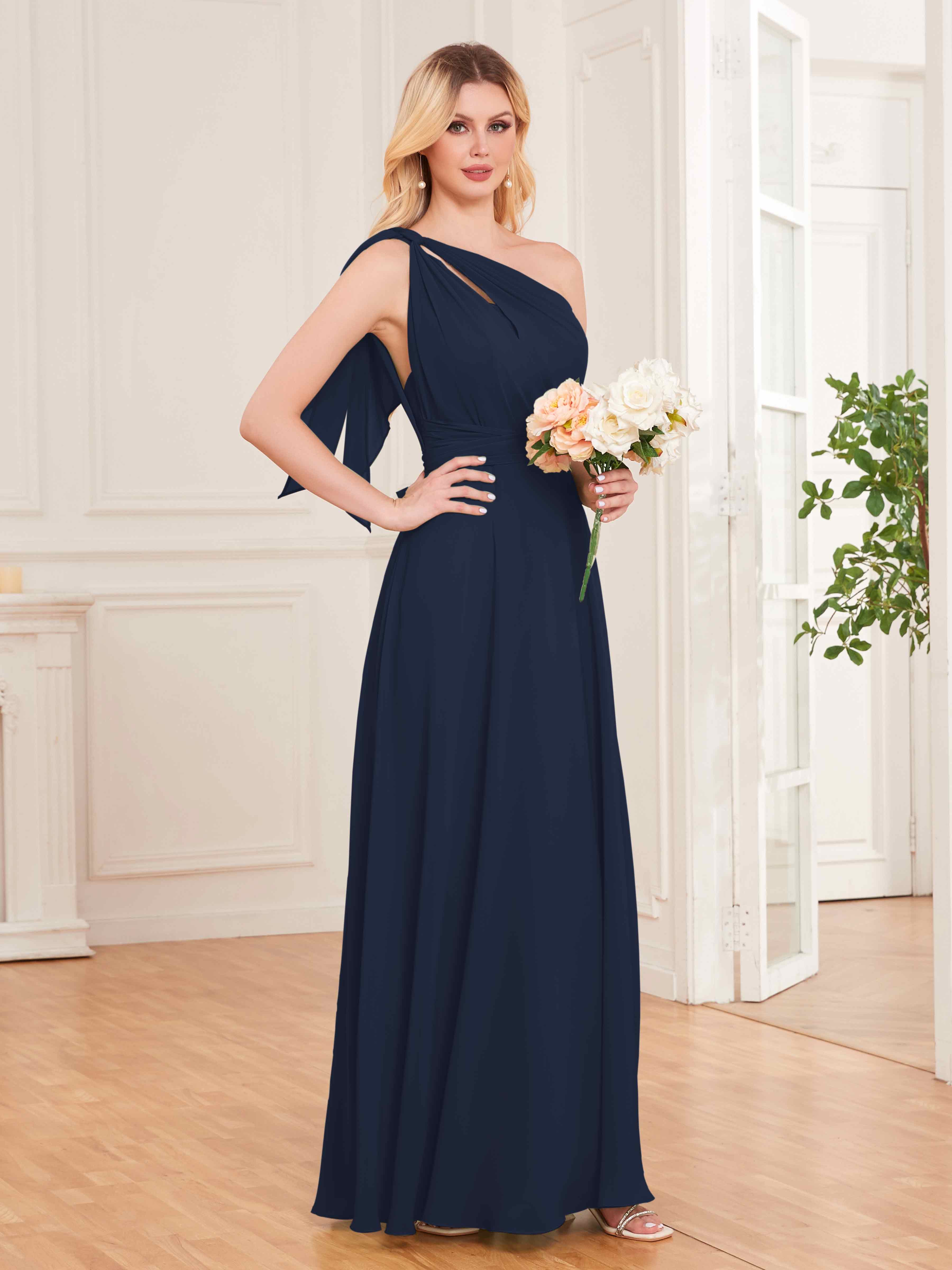 Sloane Charming One Shoulder Long Chiffon Bridesmaid Dresses