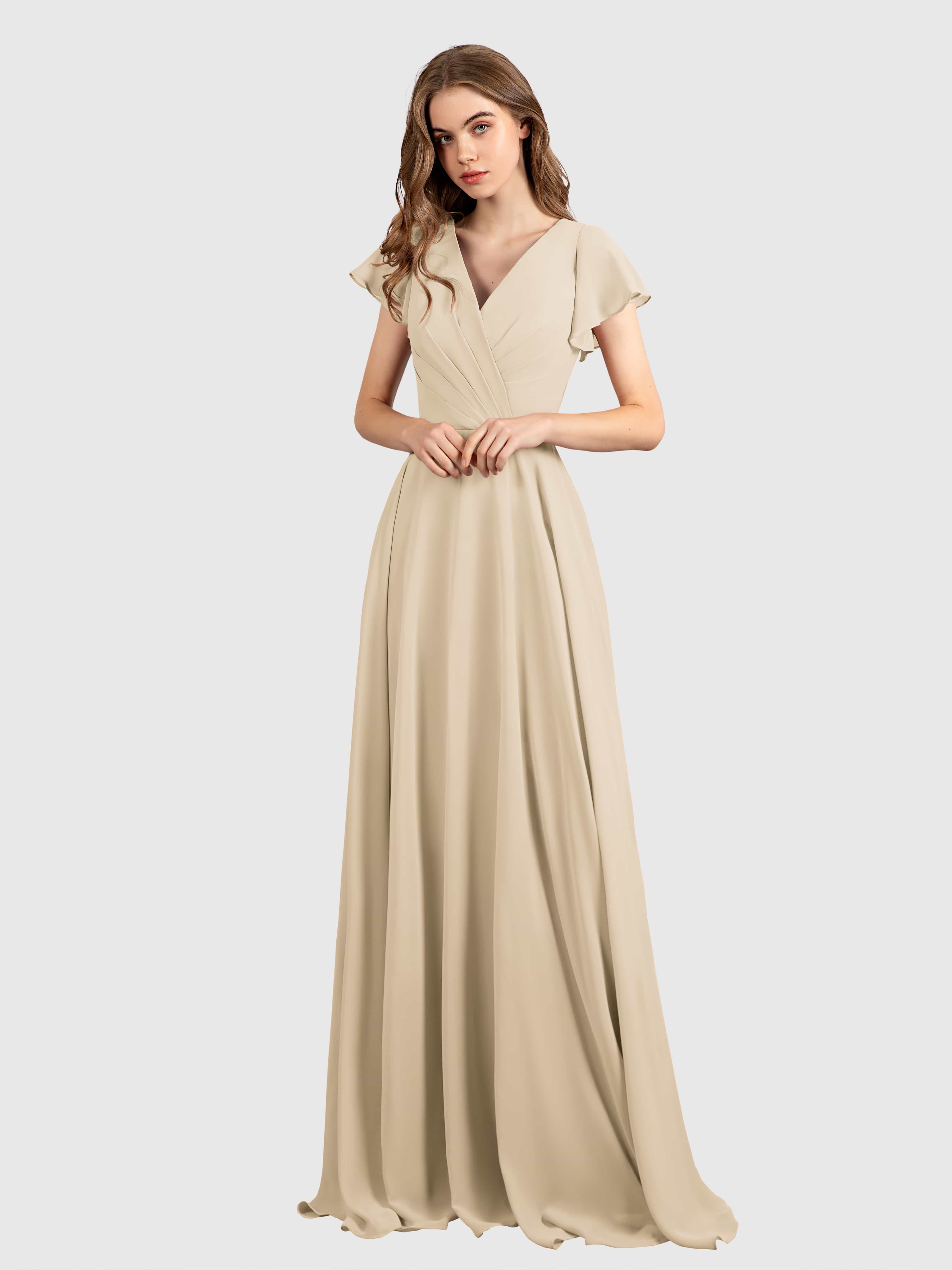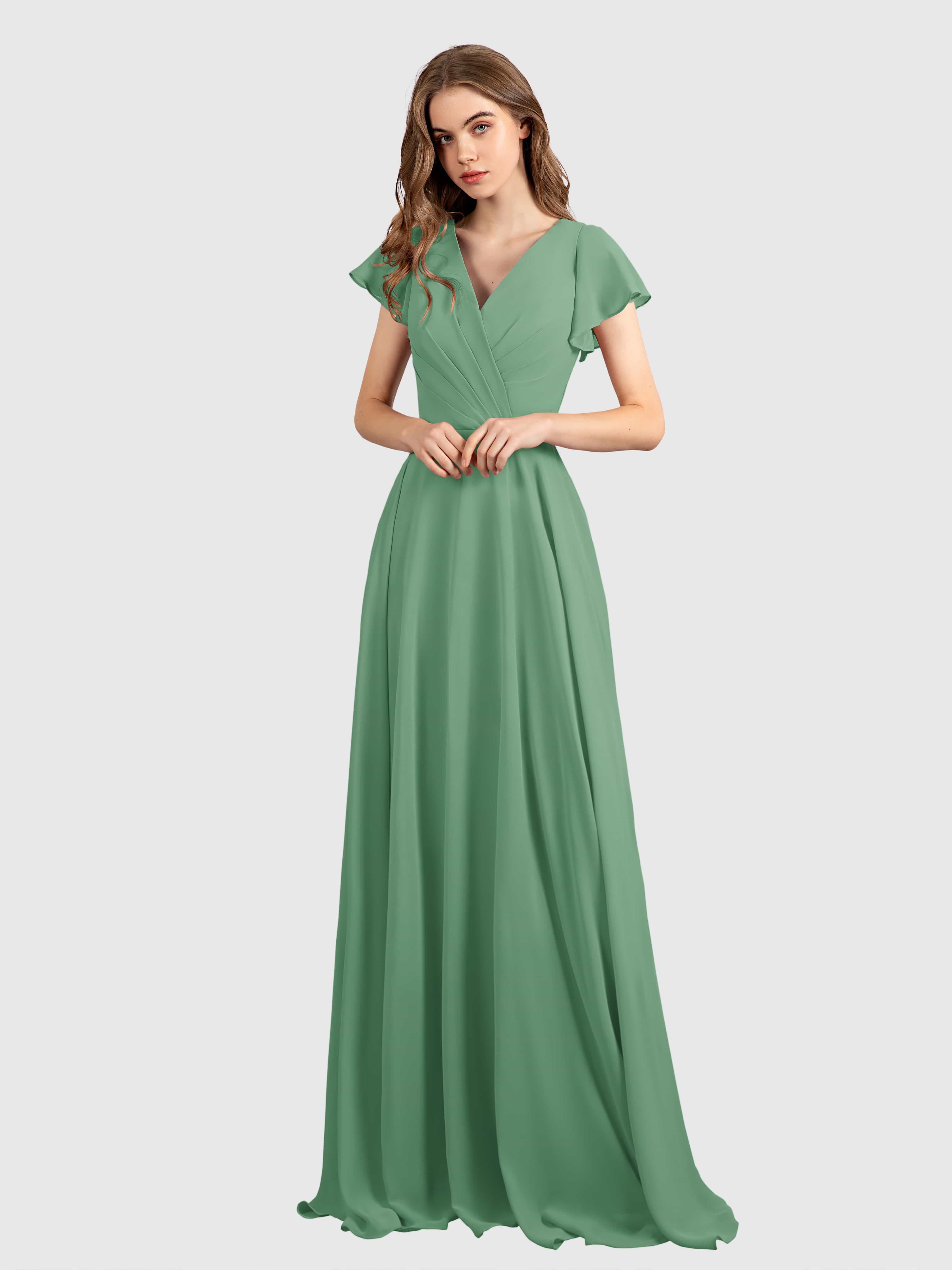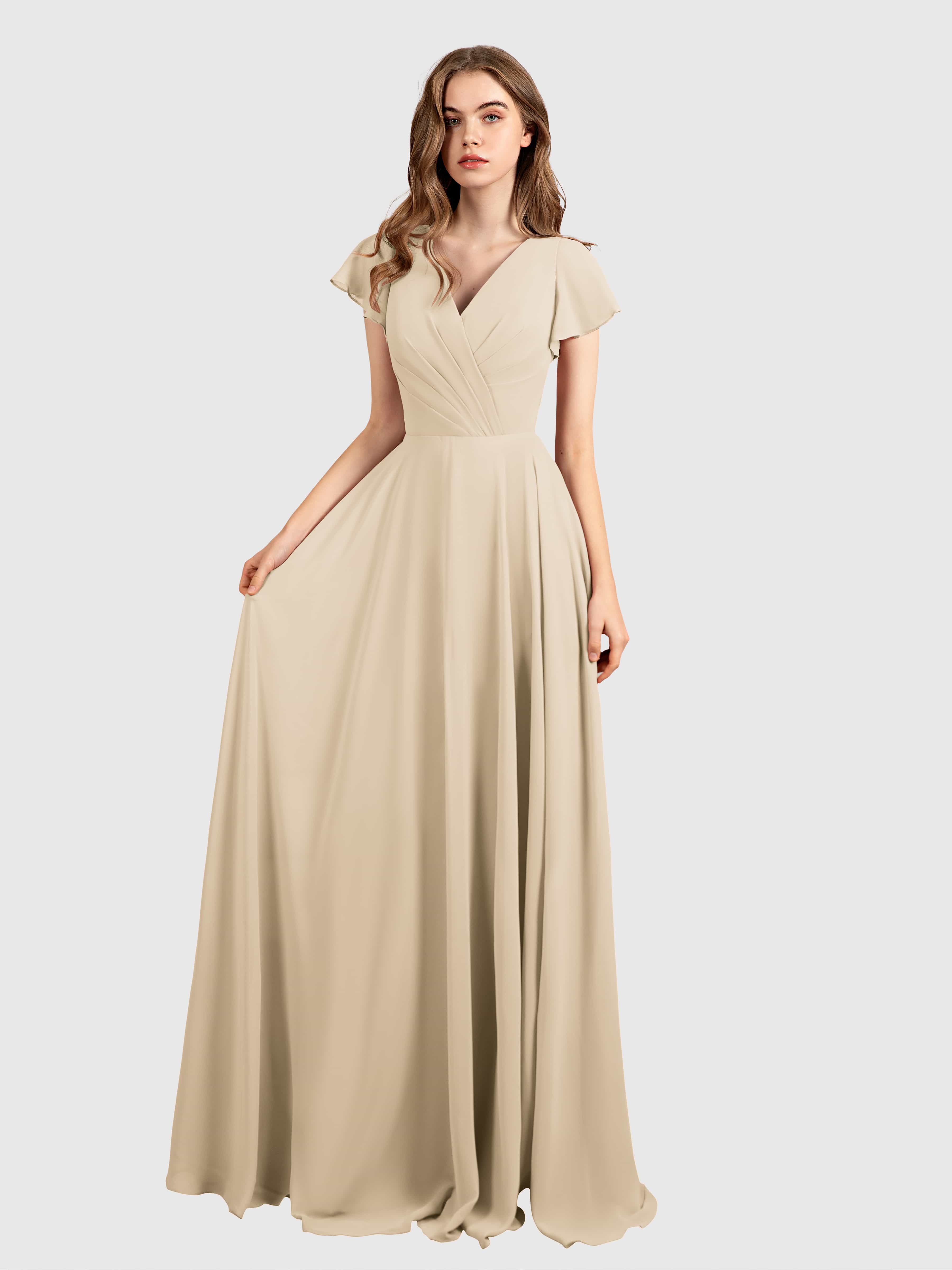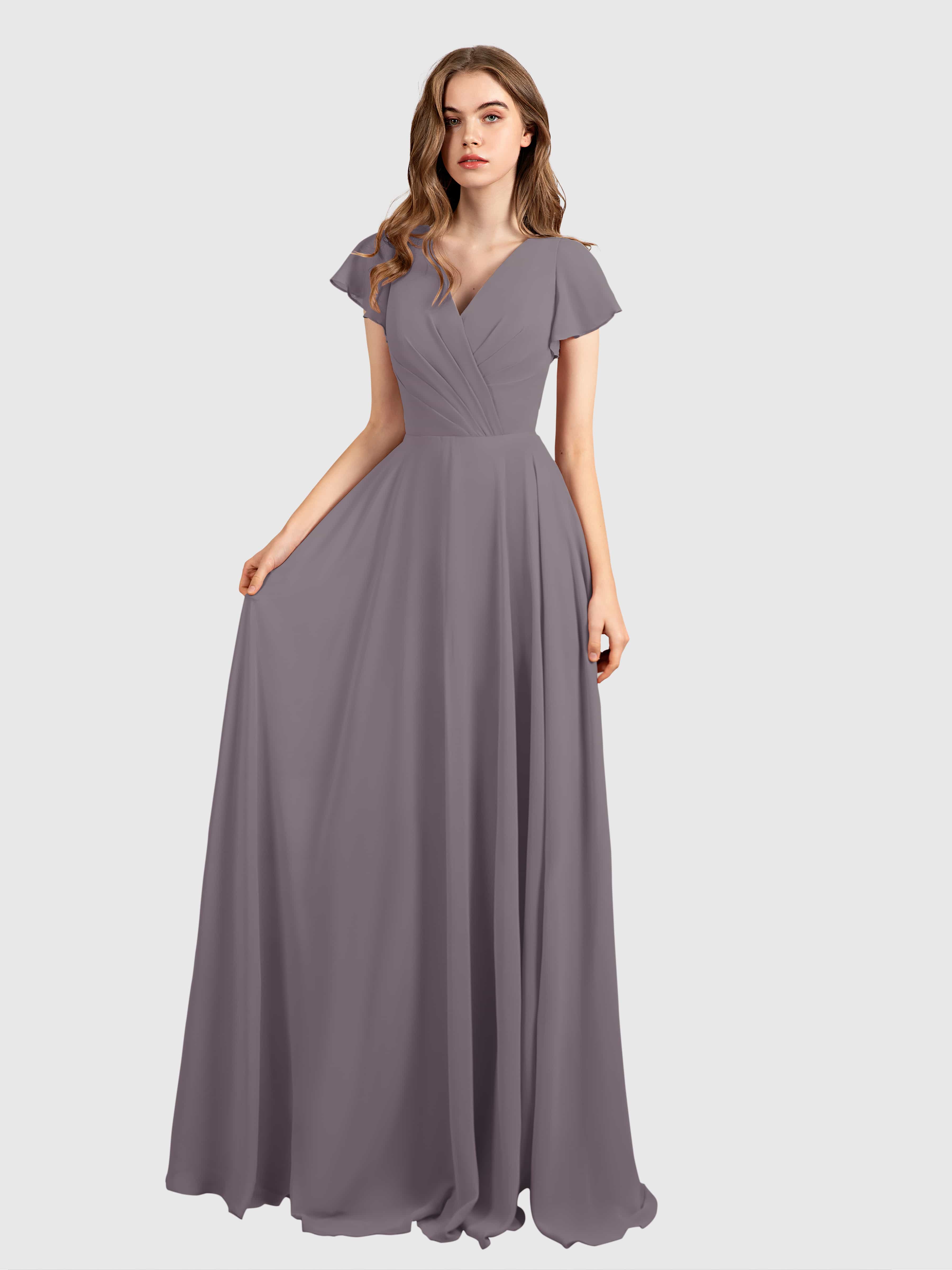 Sofia Flowing Ruched Short Sleeves Chiffon Bridesmaid Dresses