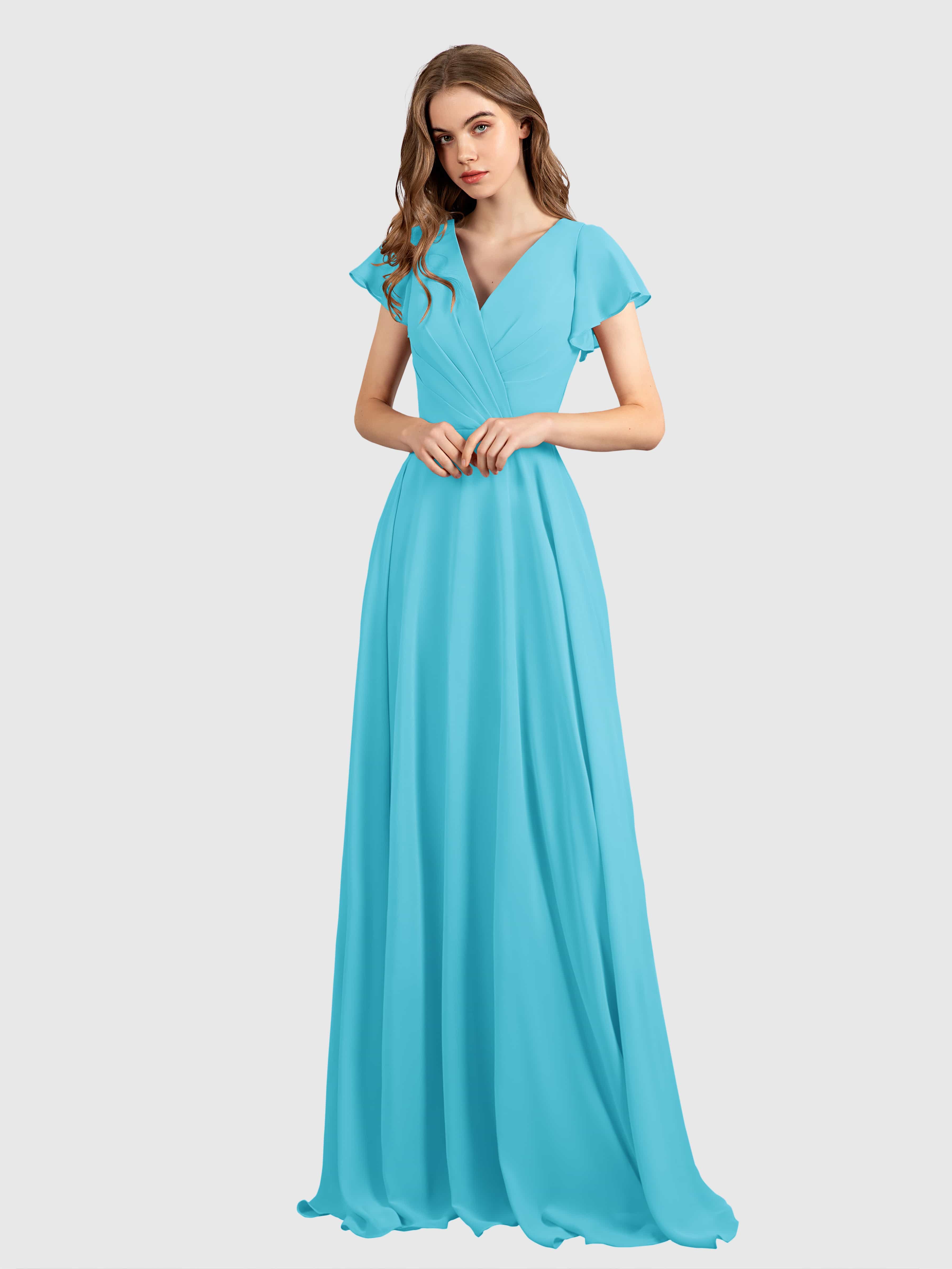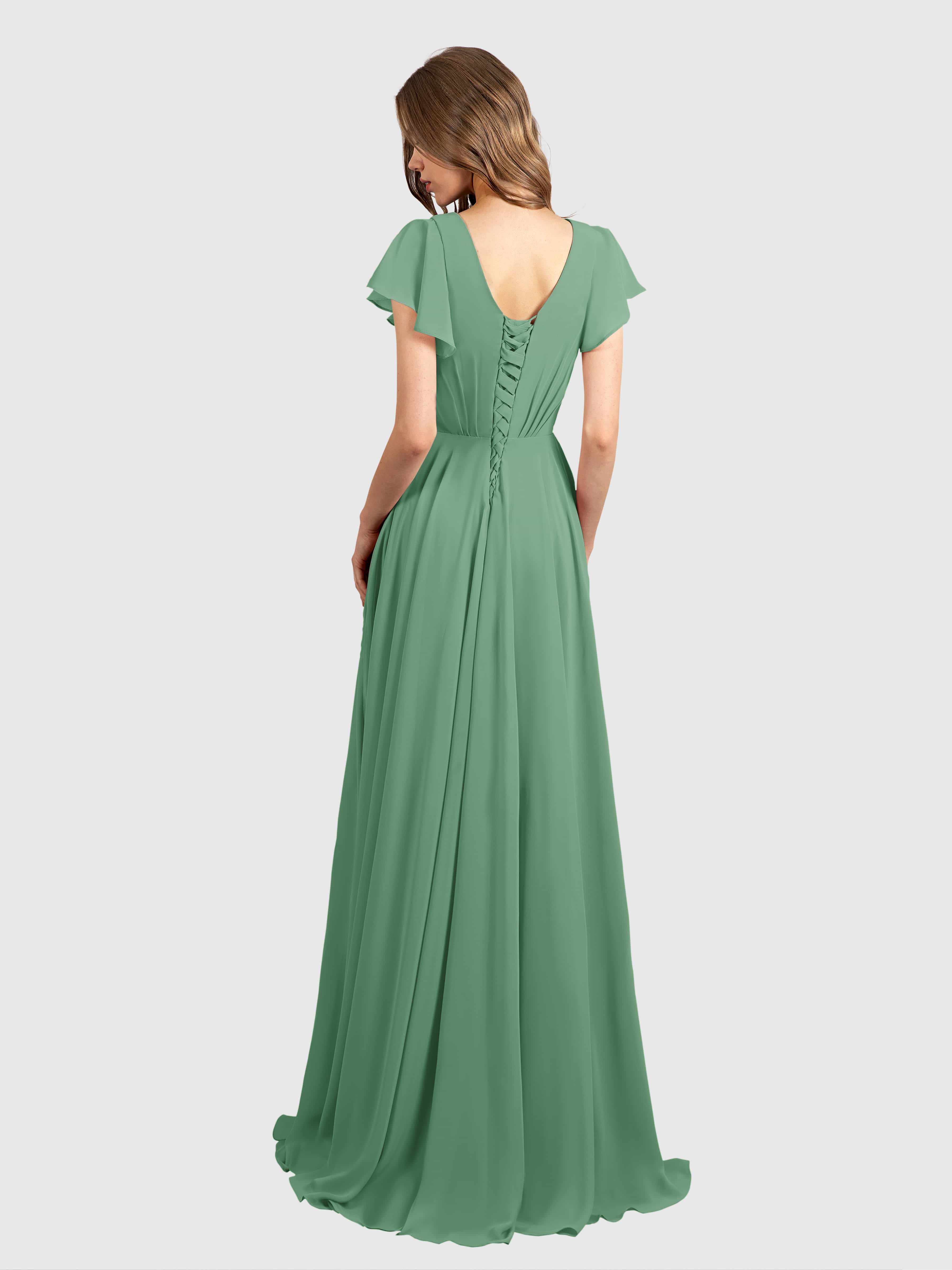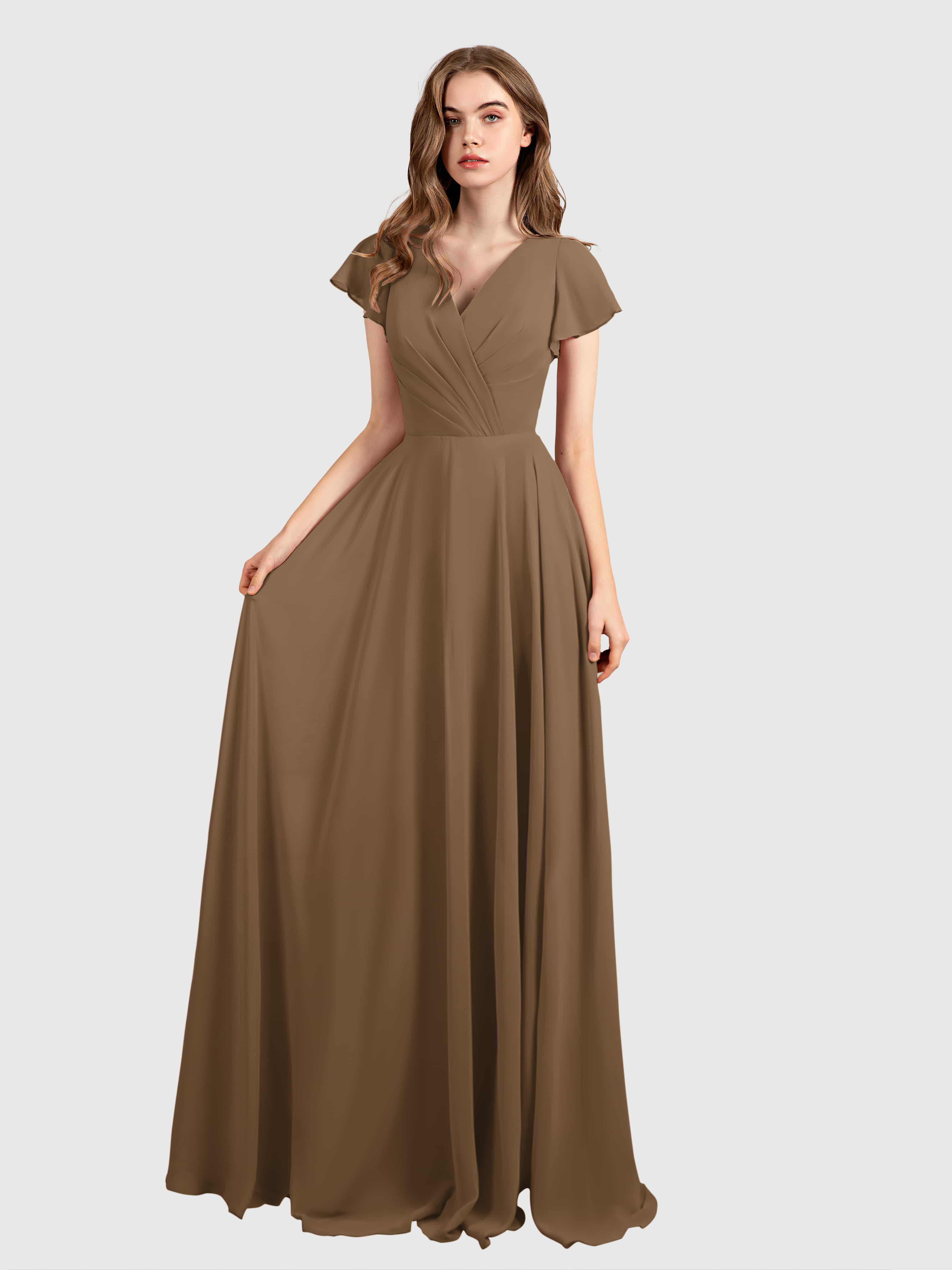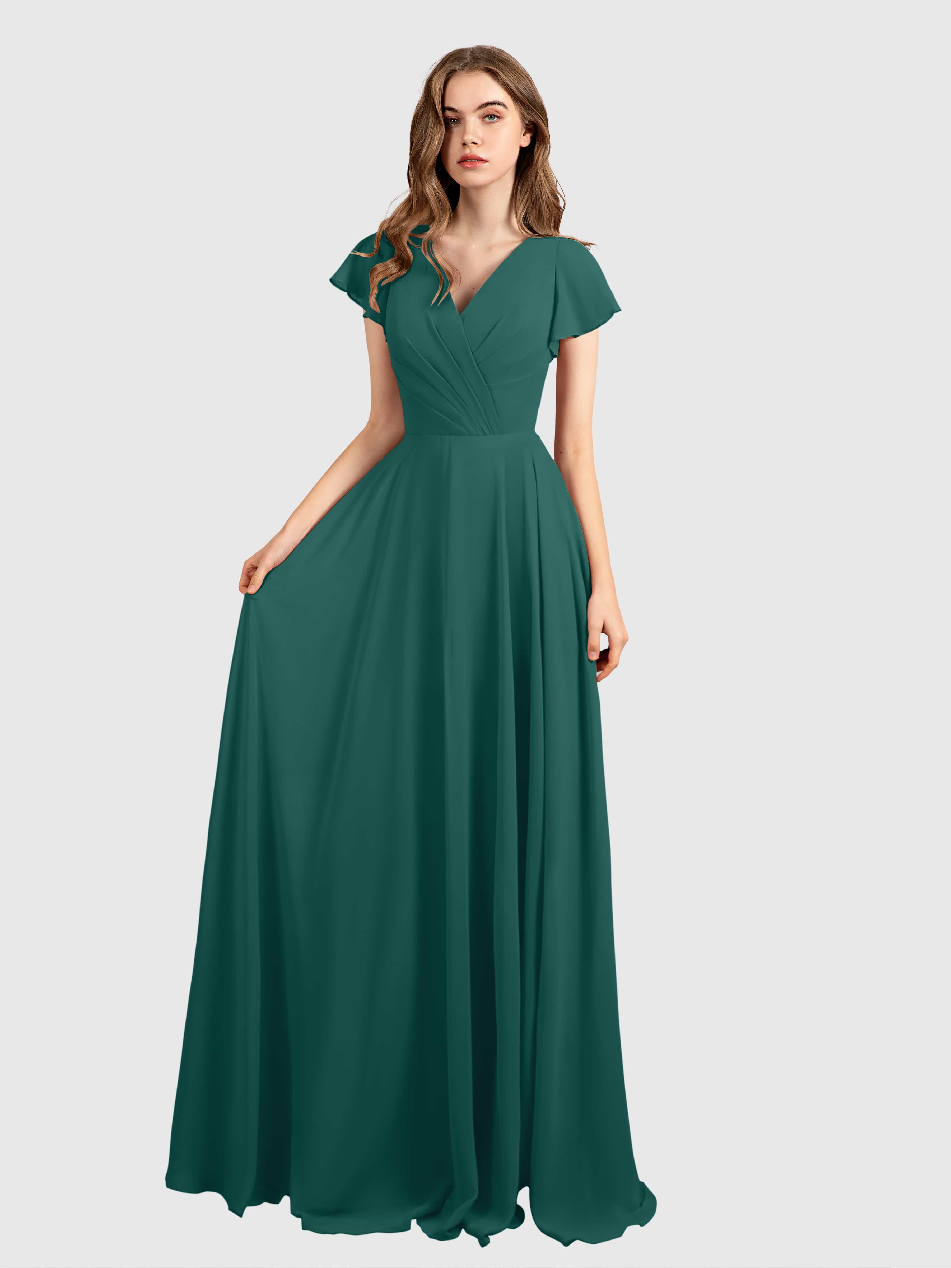 Sofia Flowing Ruched Short Sleeves Chiffon Bridesmaid Dresses