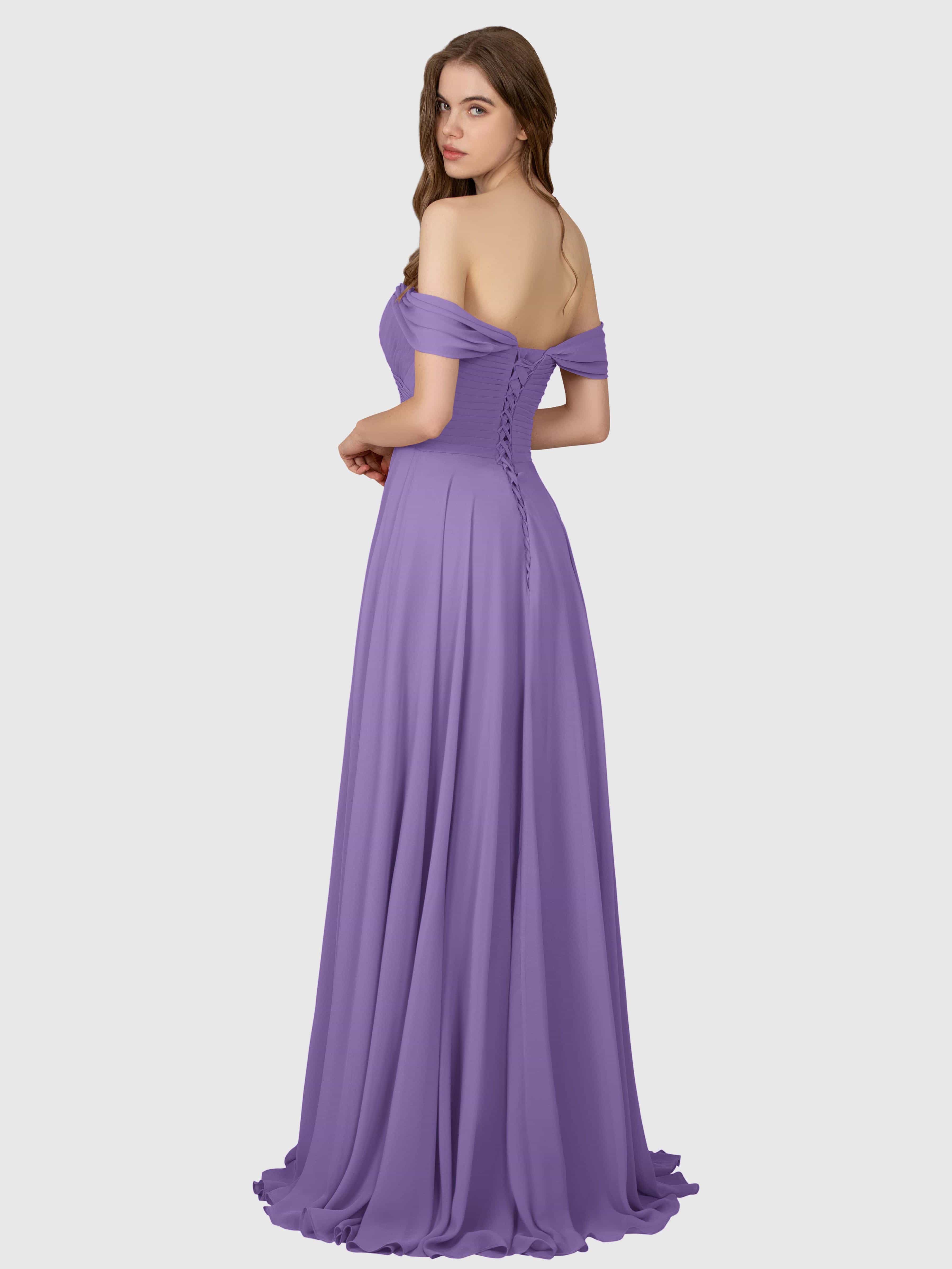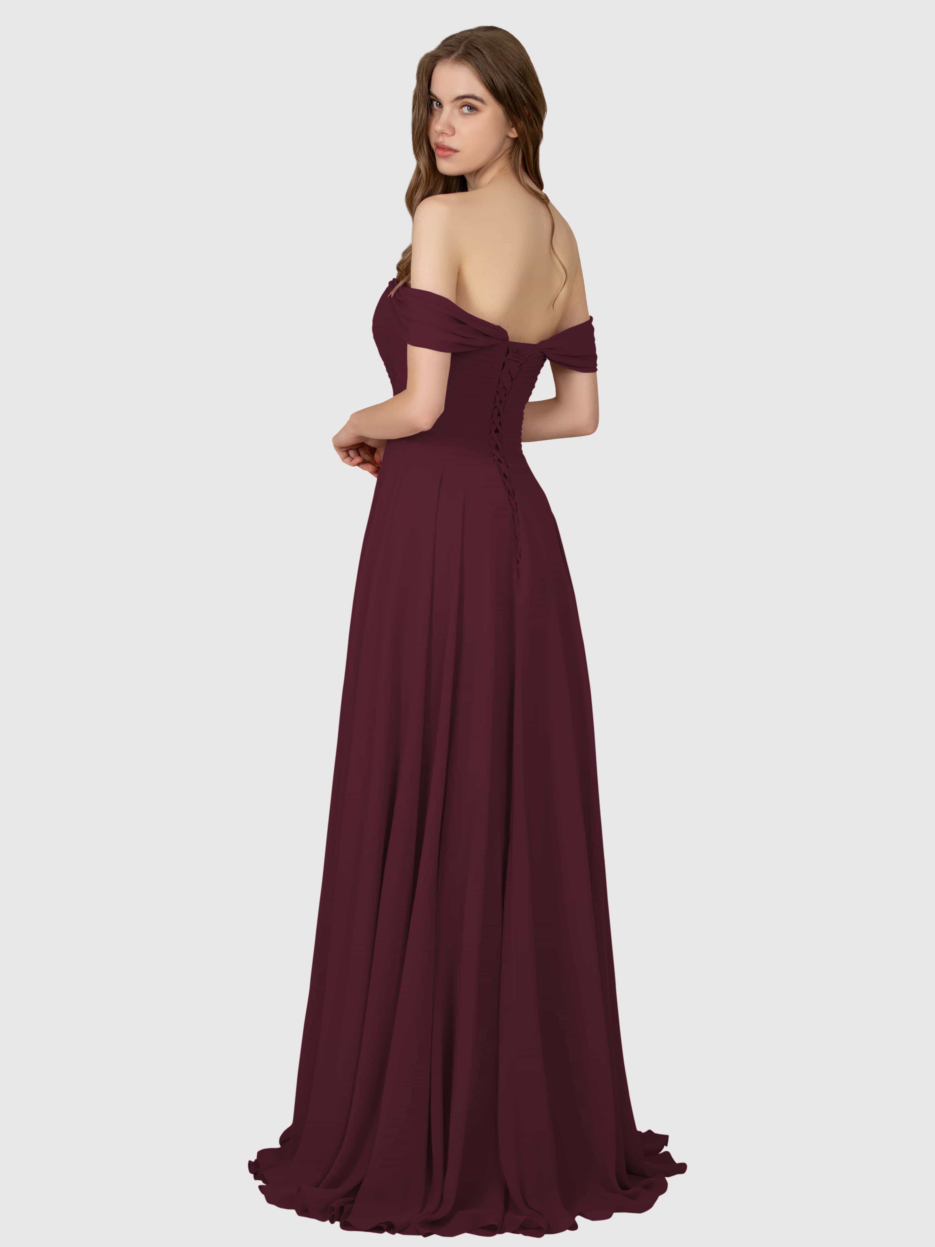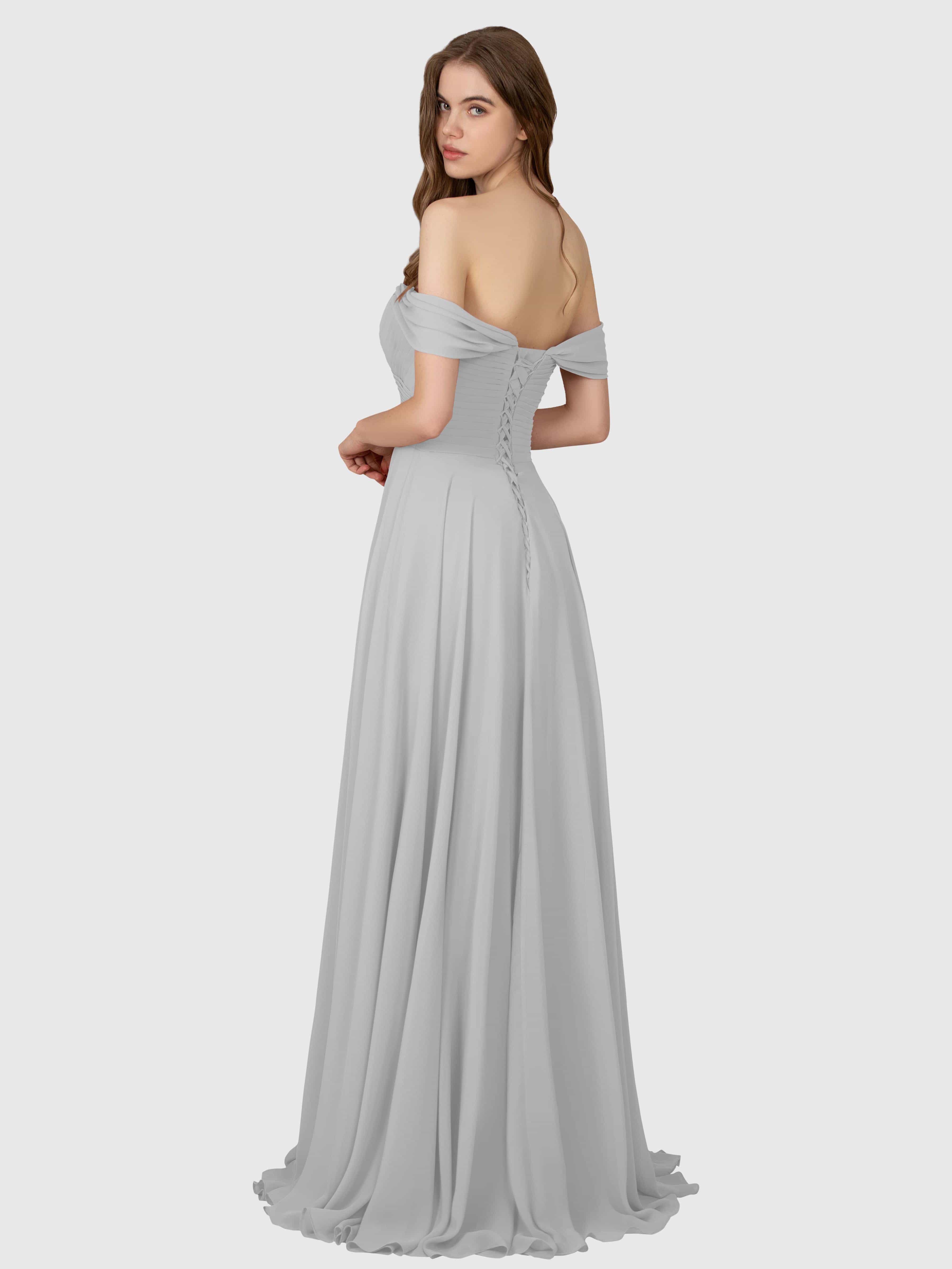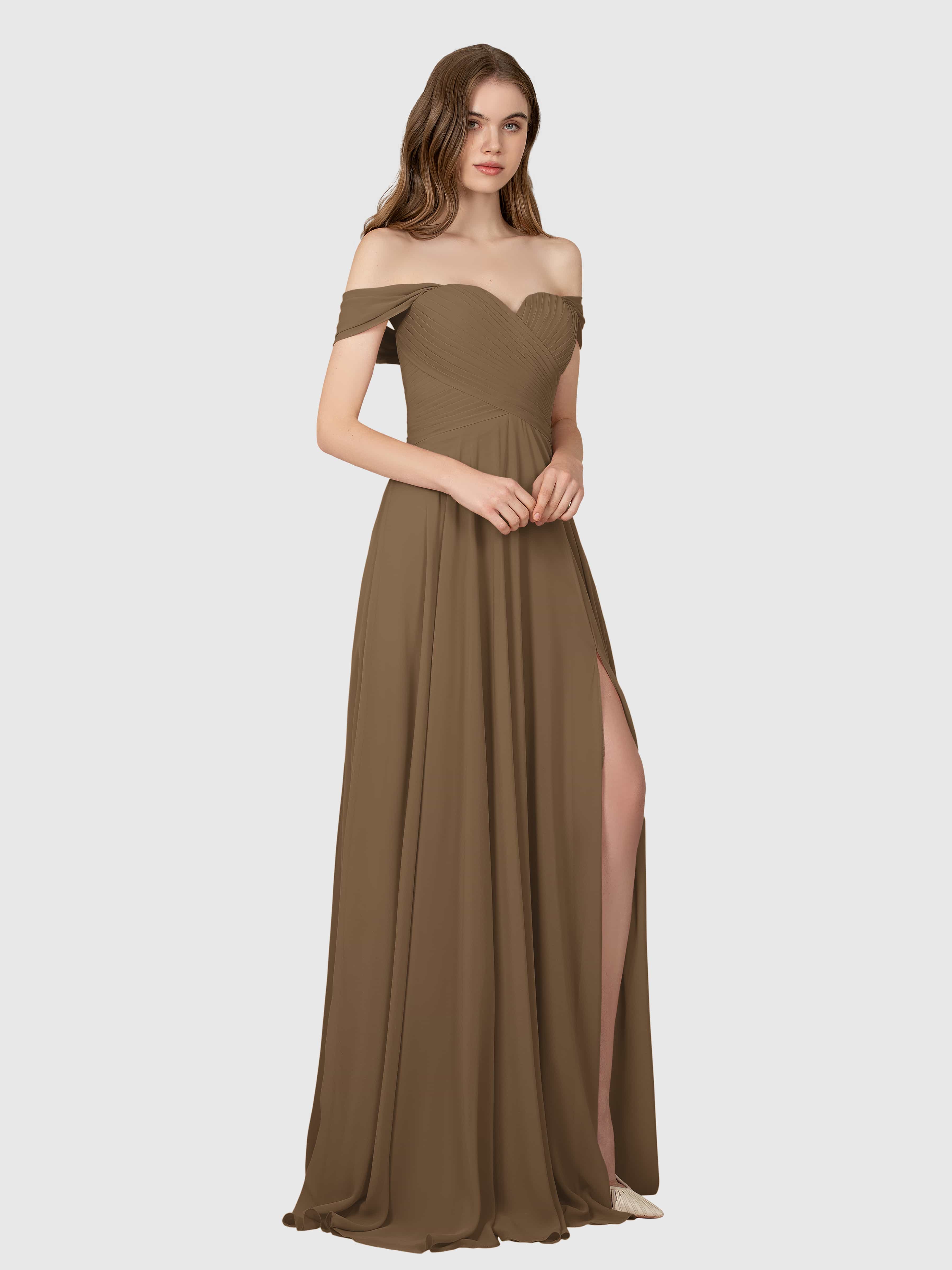 Sophia Glamorous Off the Shoulder Bridesmaid Dresses With Slit