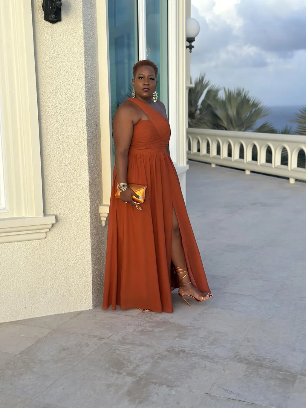 Sophie Flowing One Shoulder Side Zip Floor Length Bridesmaid Dresses