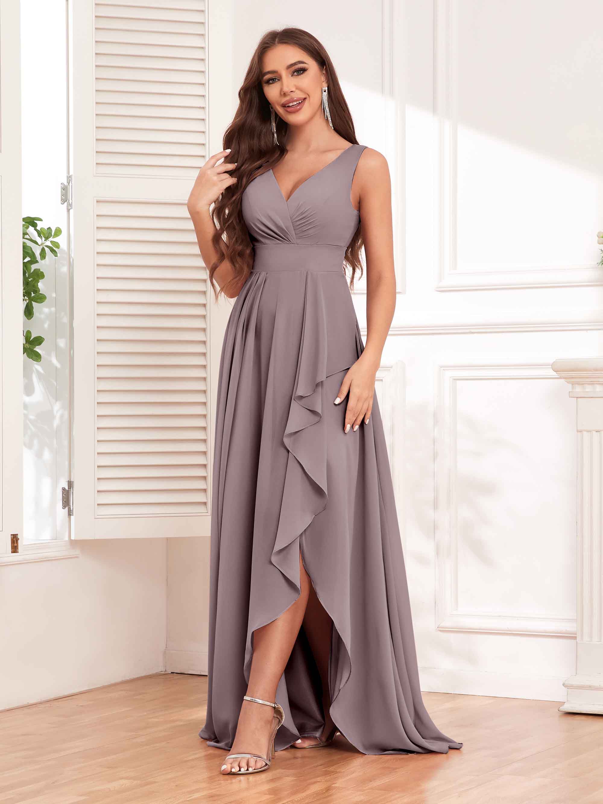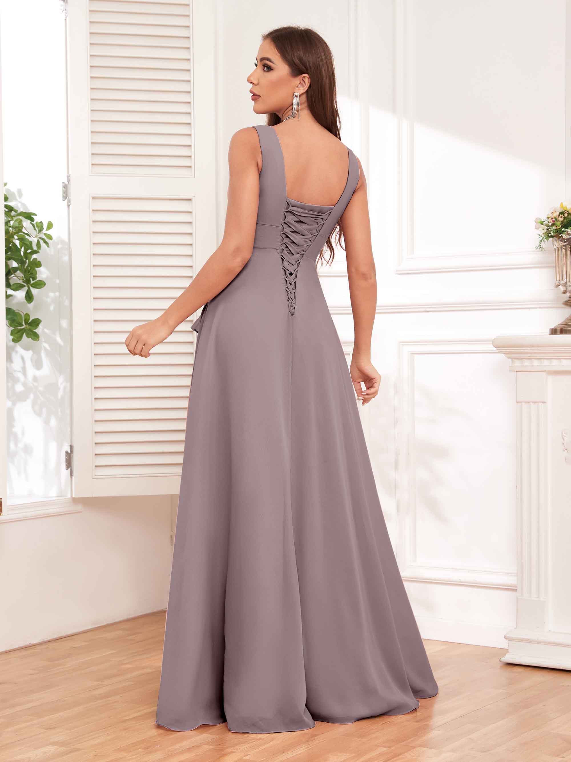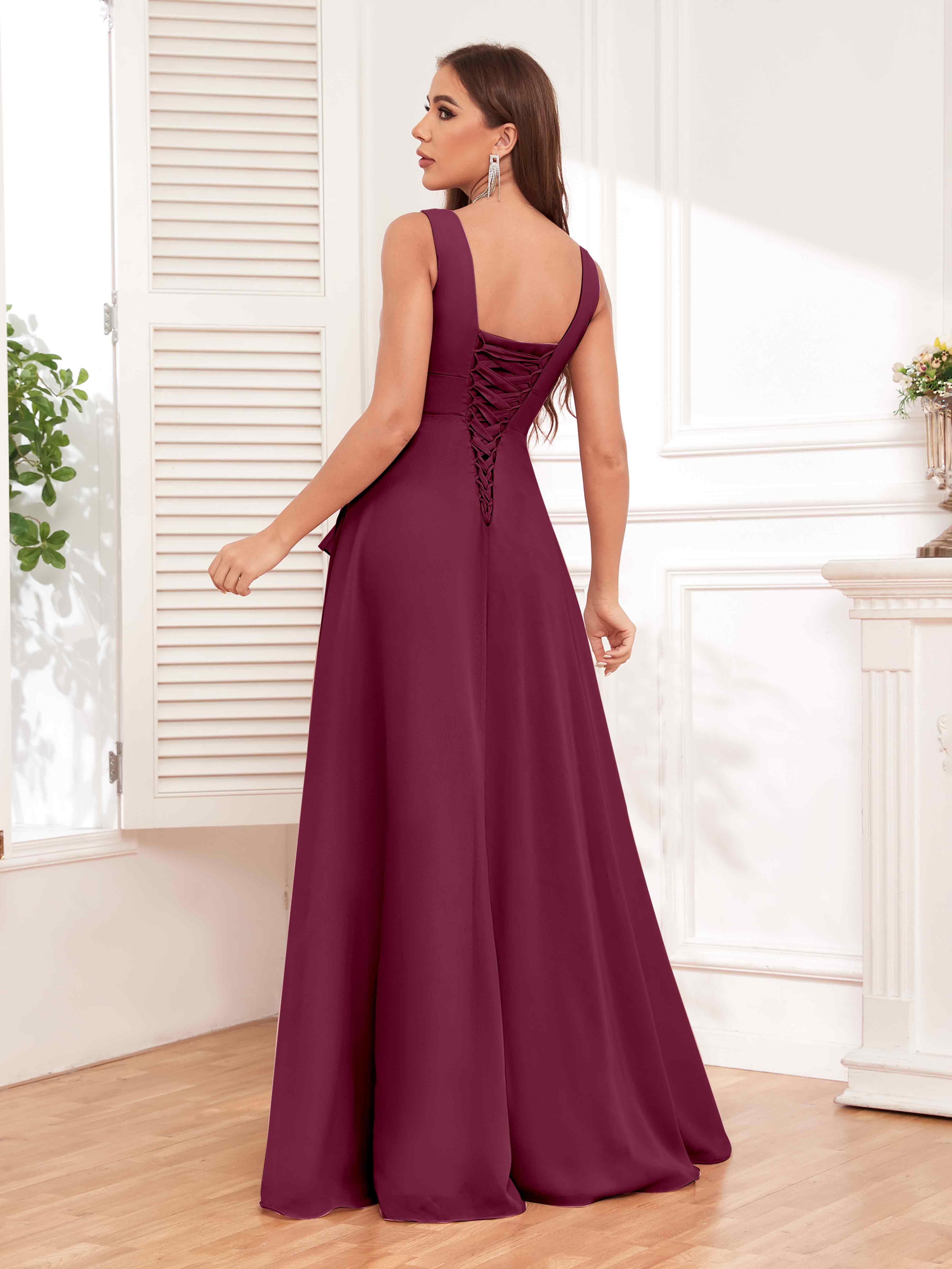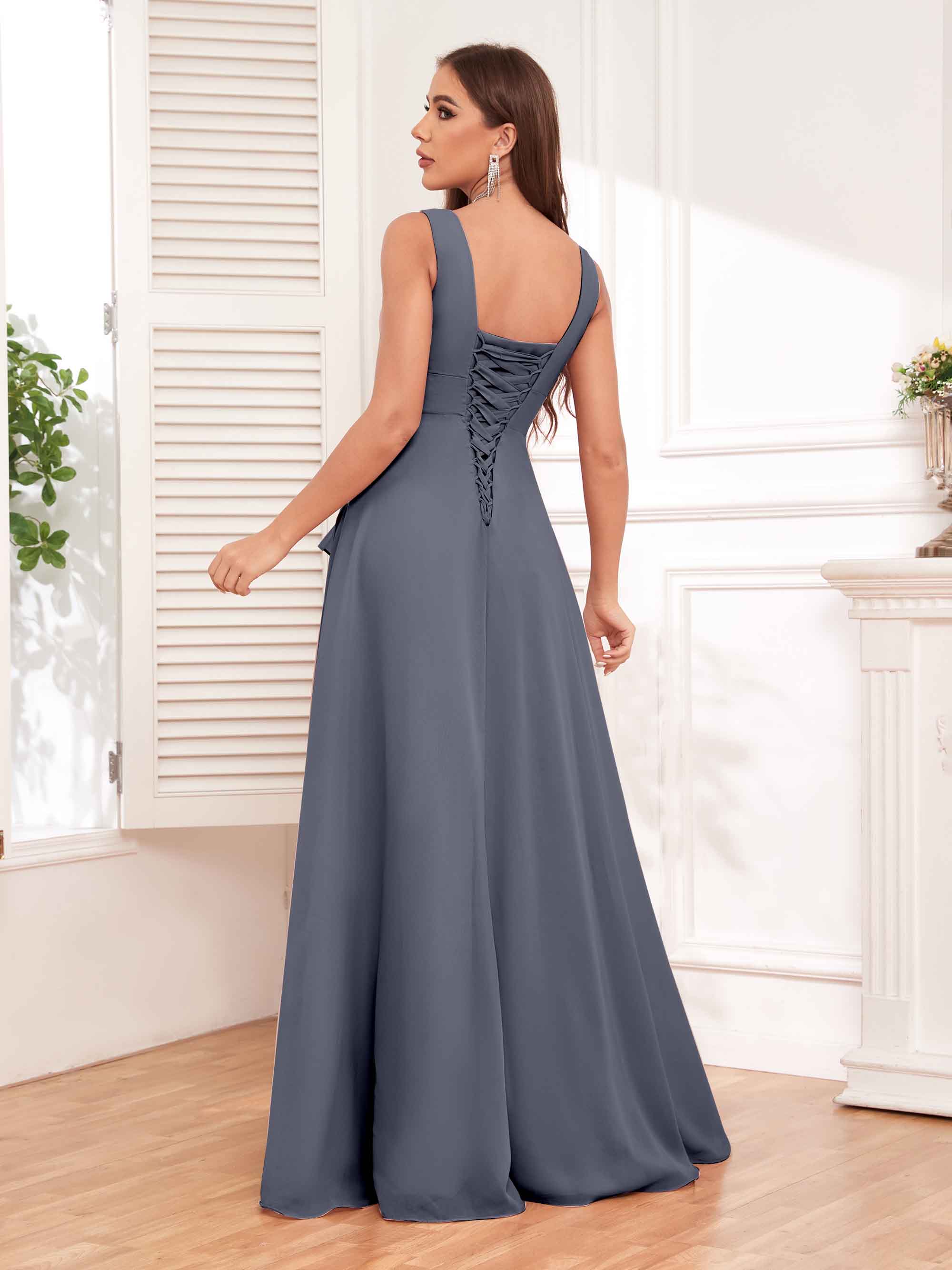 Tessa Lovely Ruched Slit Maxi Chiffon Bridesmaid Dresses