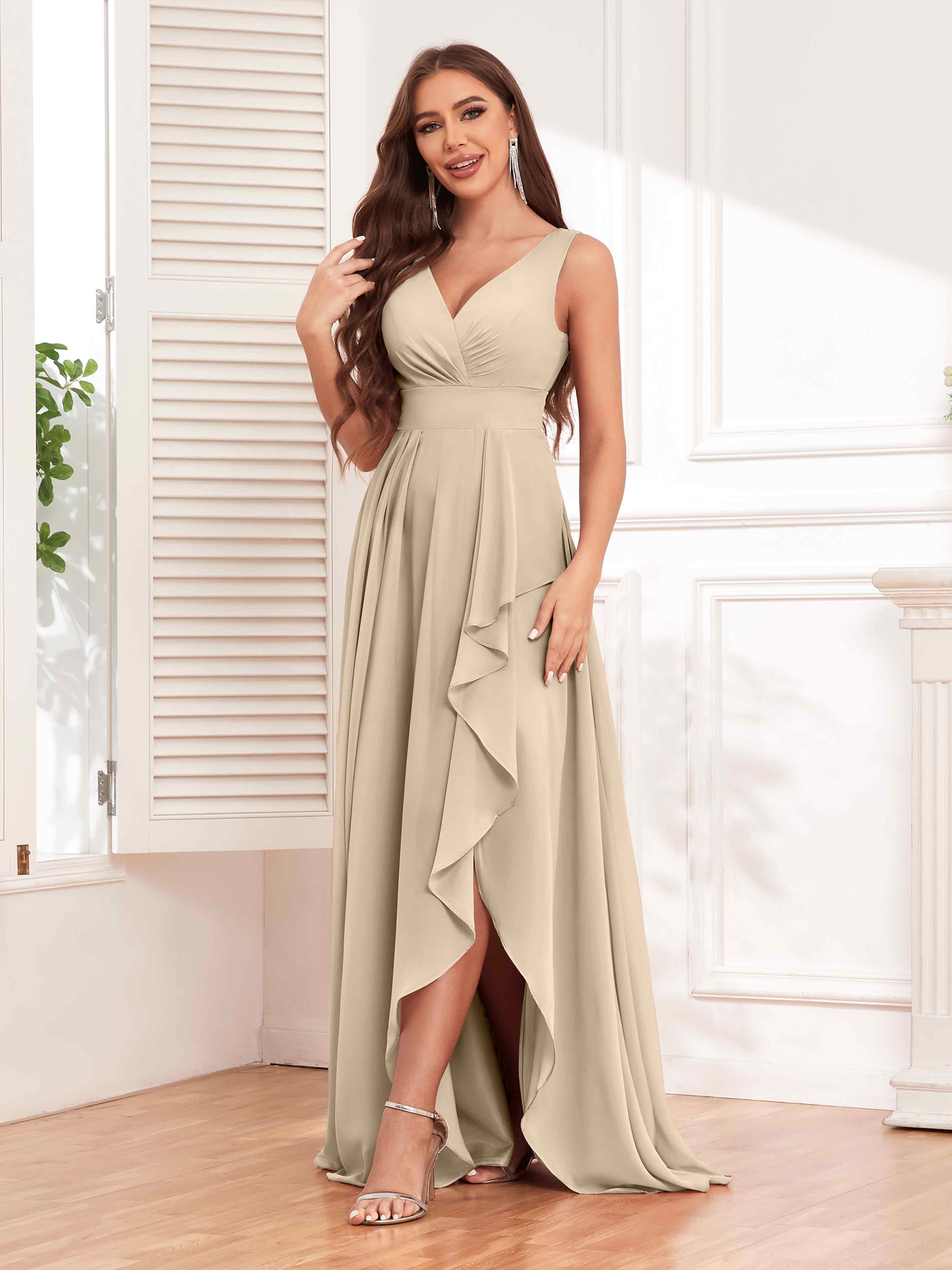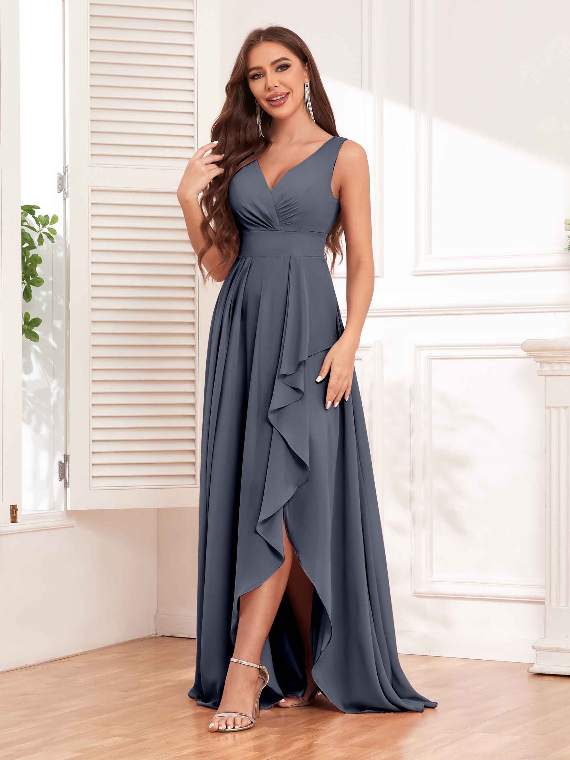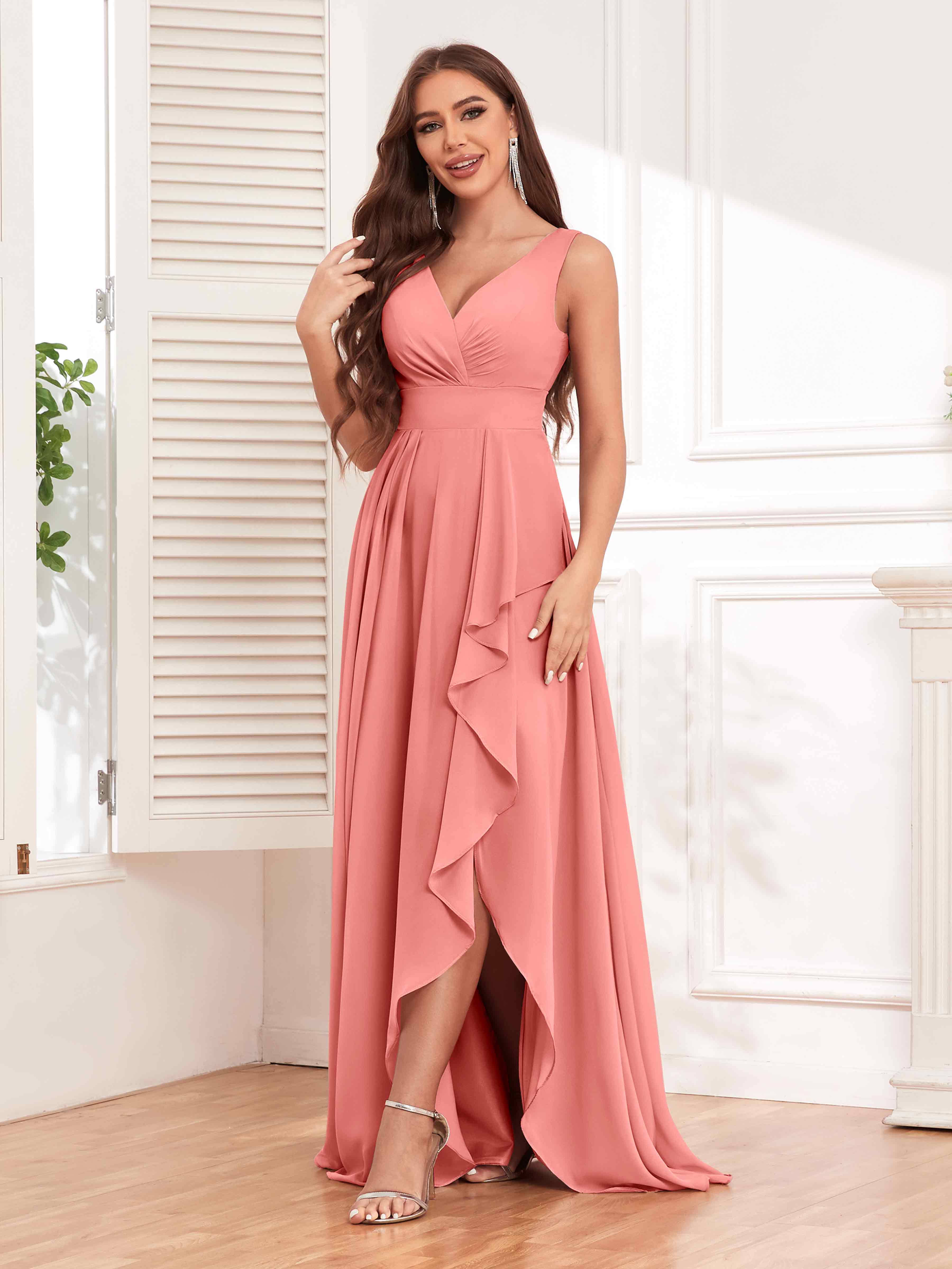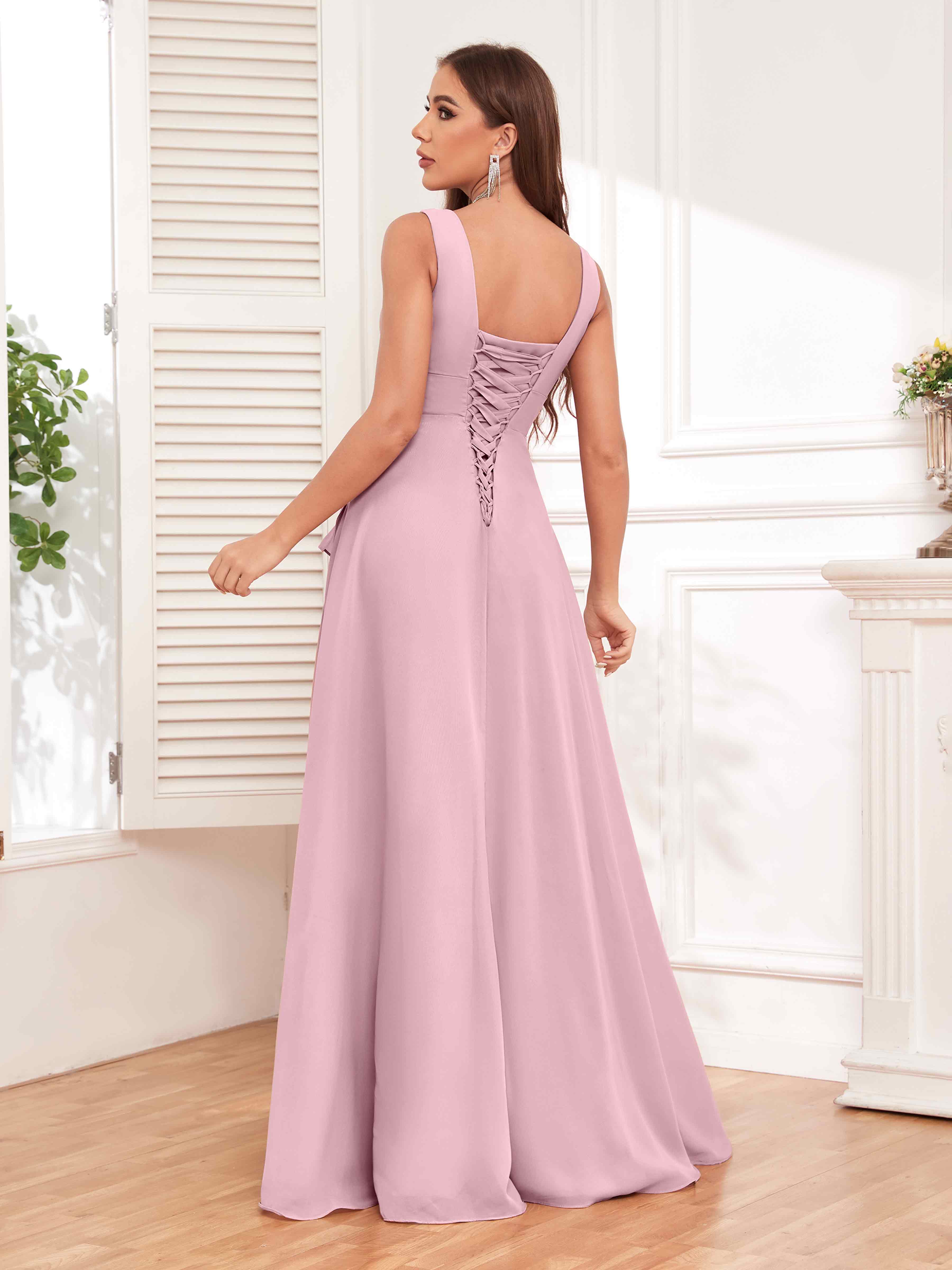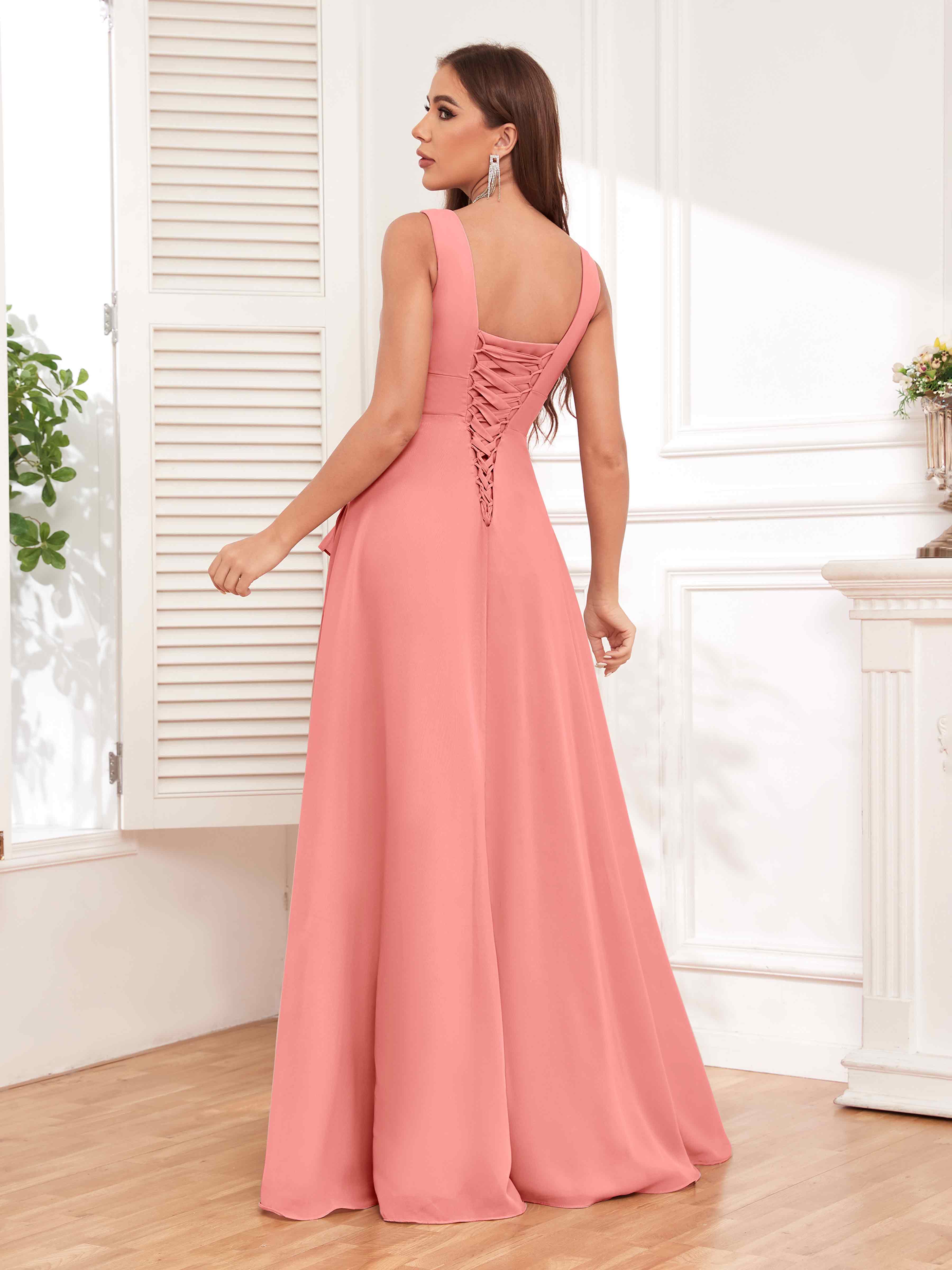 Tessa Lovely Ruched Slit Maxi Chiffon Bridesmaid Dresses