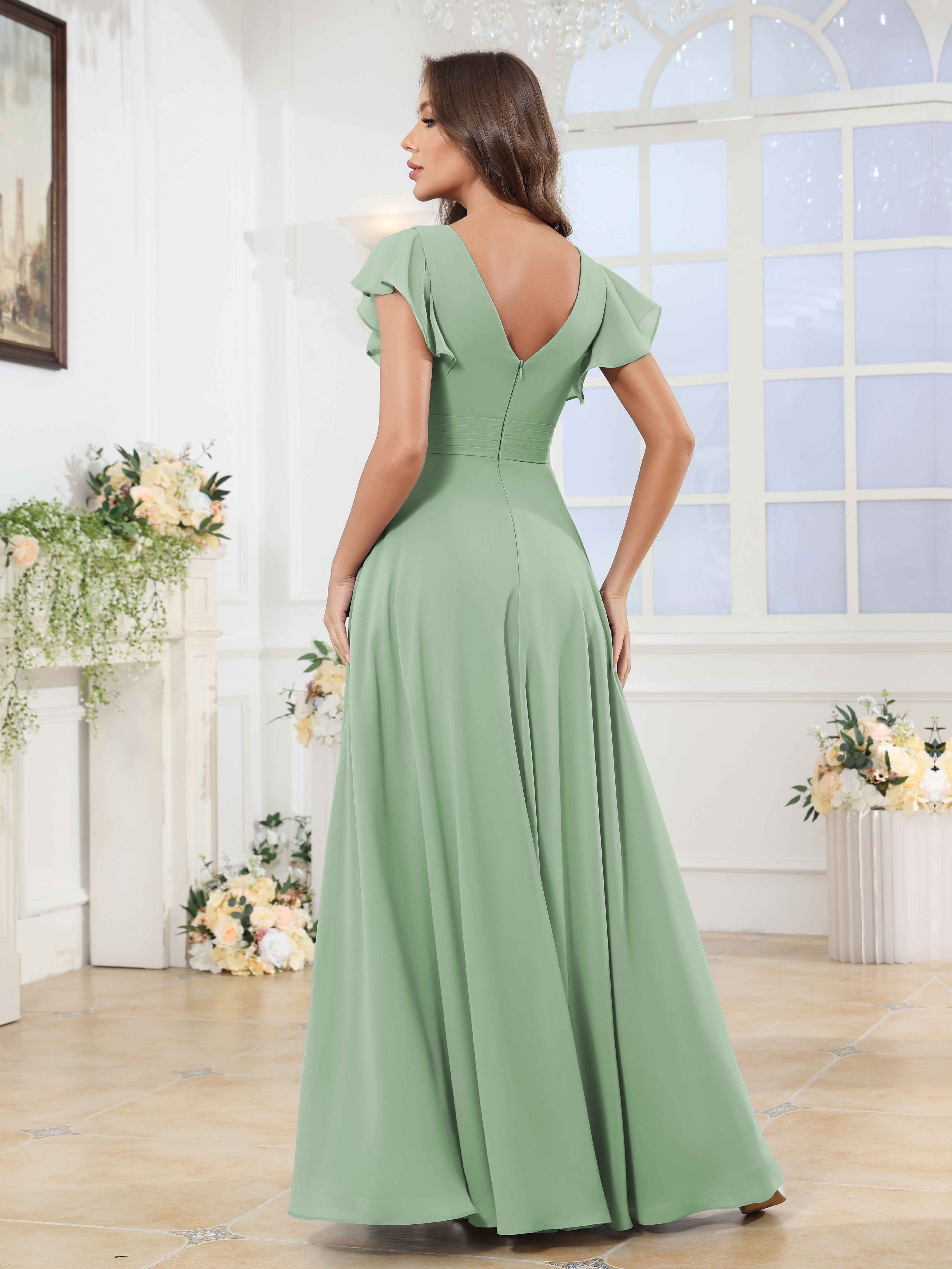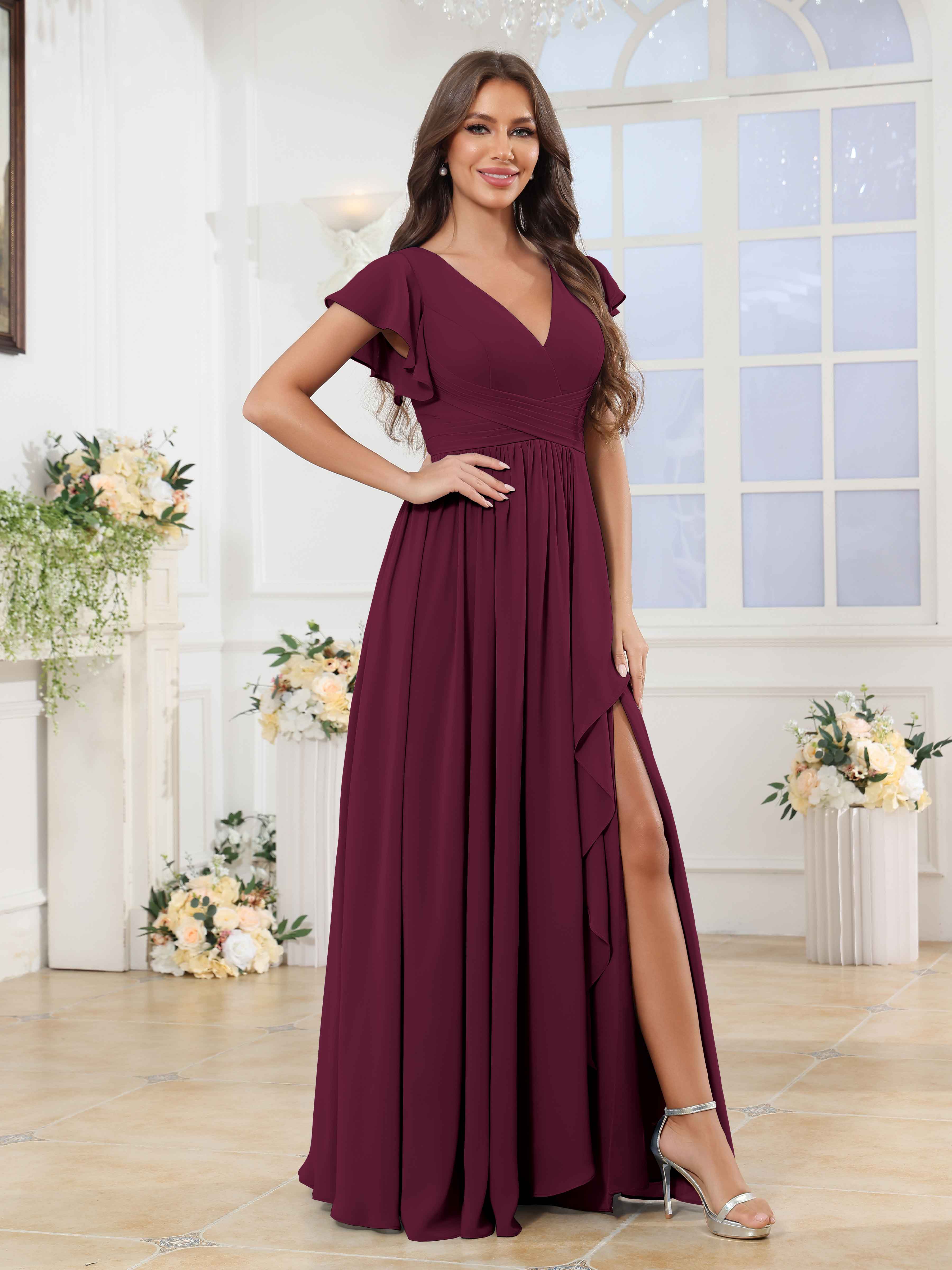 Theodora Charming A-Line Ruched Floor Length Chiffon Bridesmaid Dresses