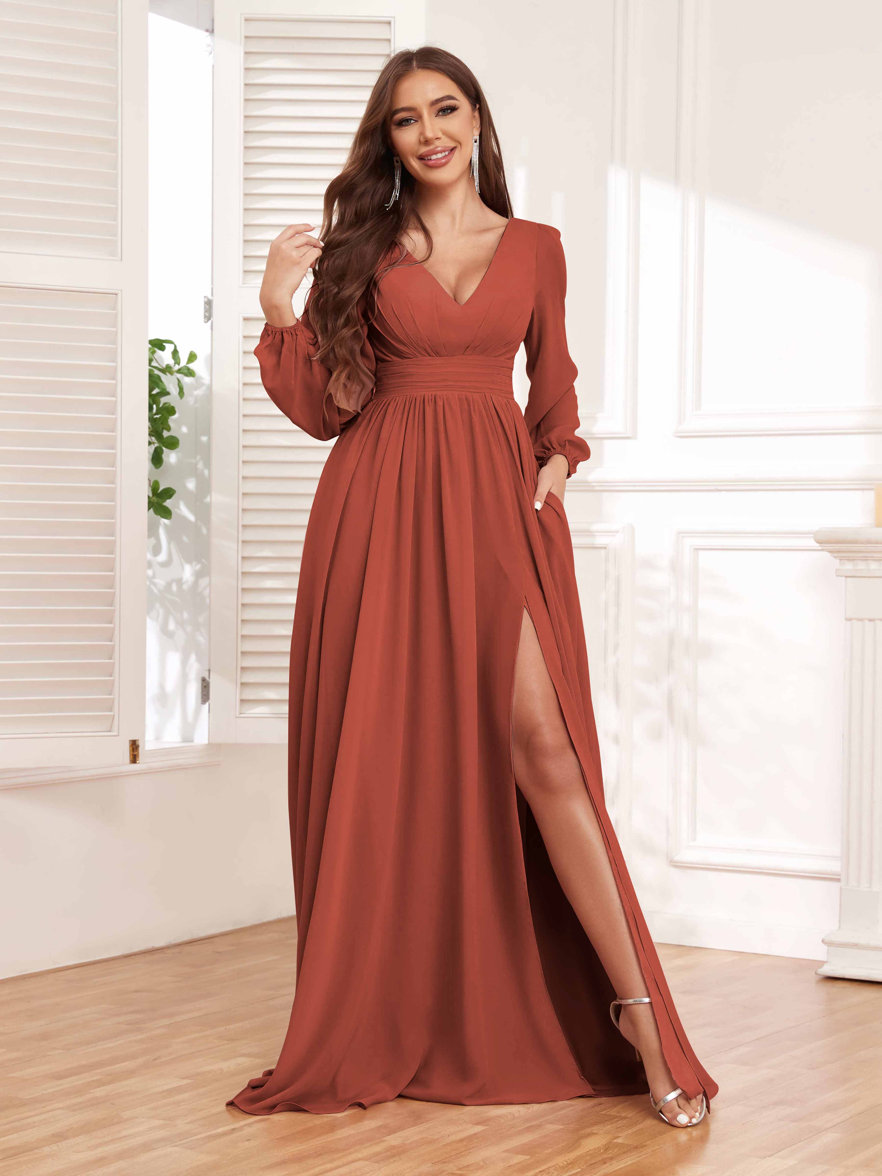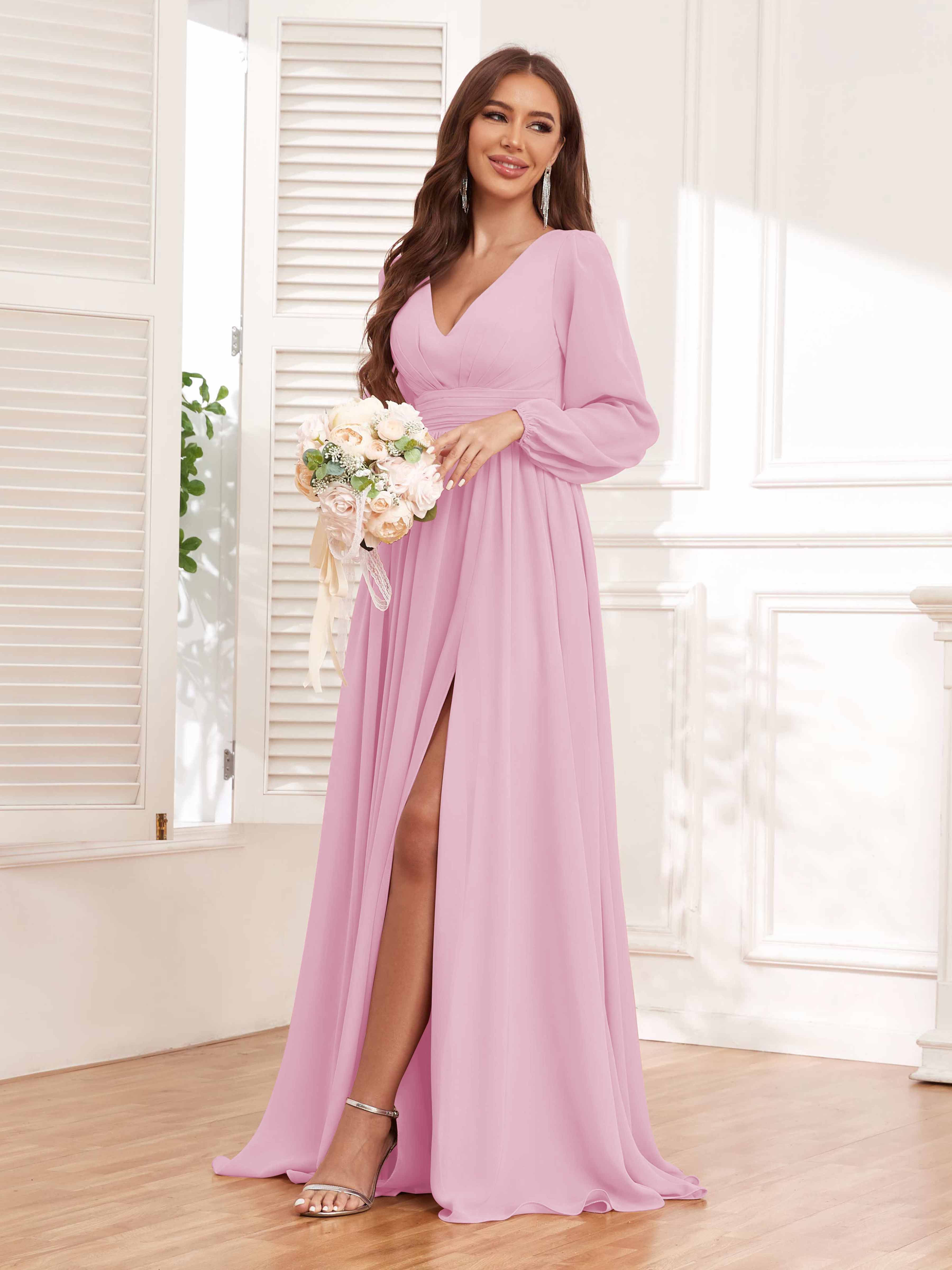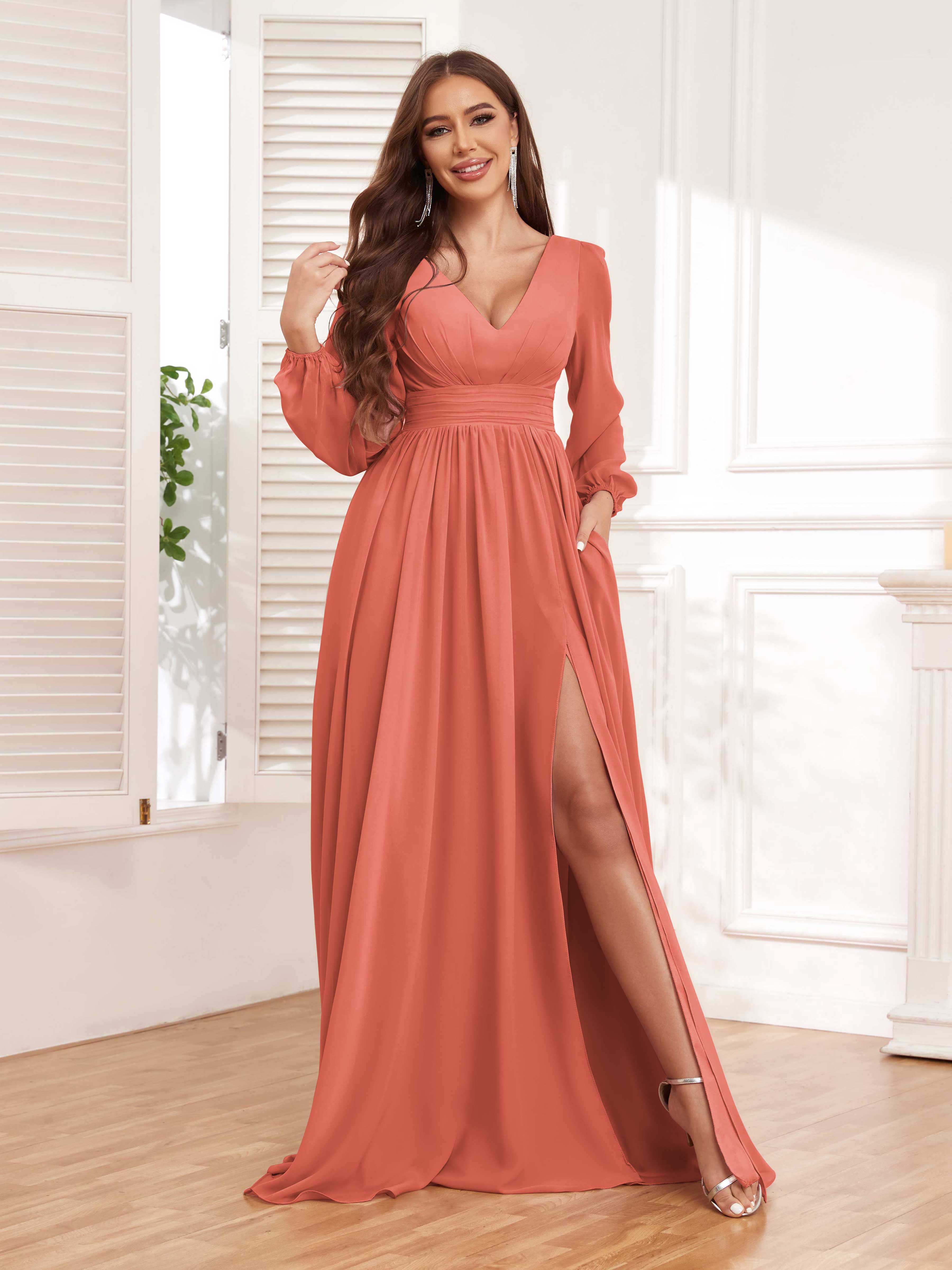 Trinity Simple V Neck Pleated Maxi Chiffon Bridesmaid Dresses