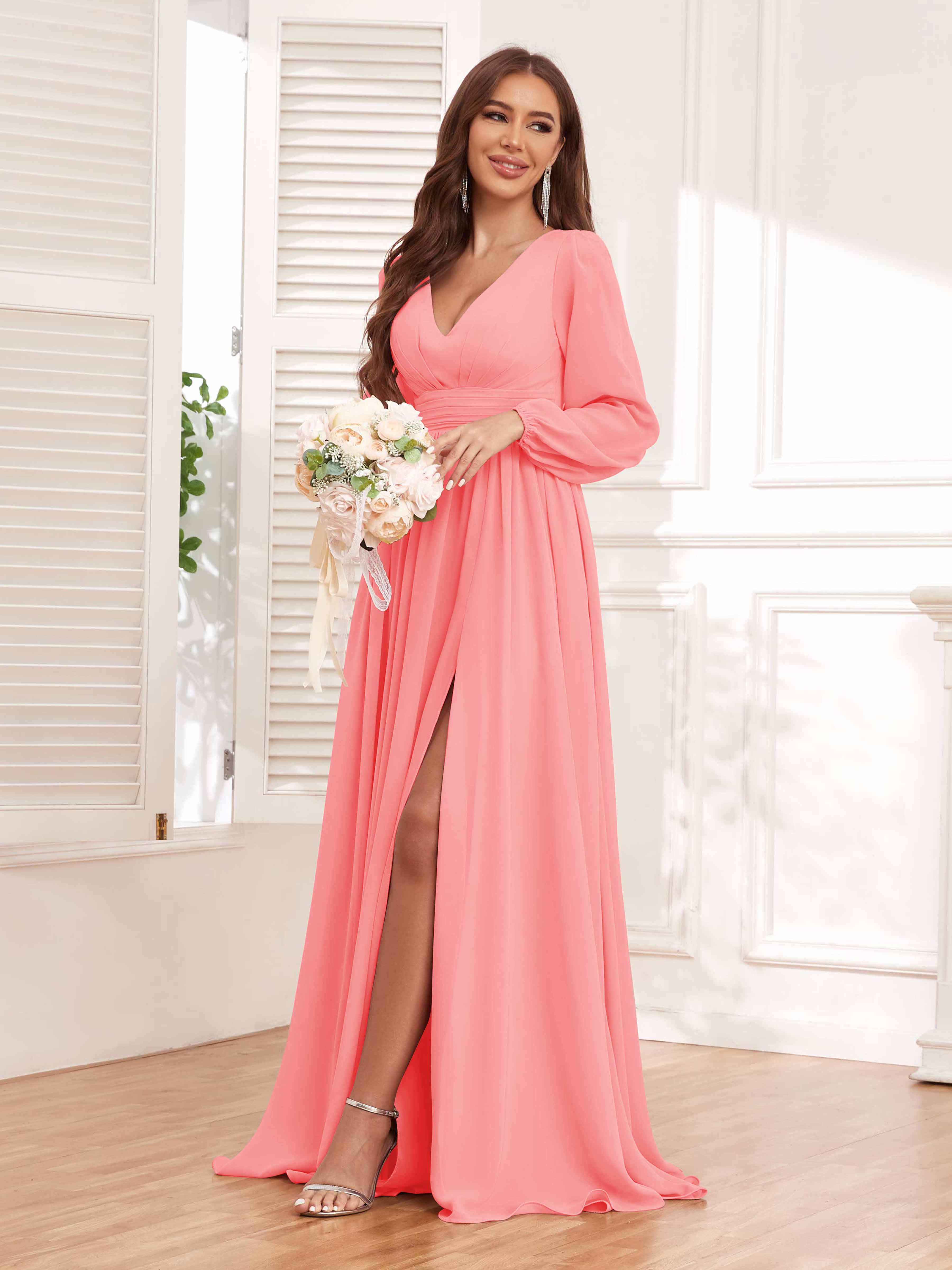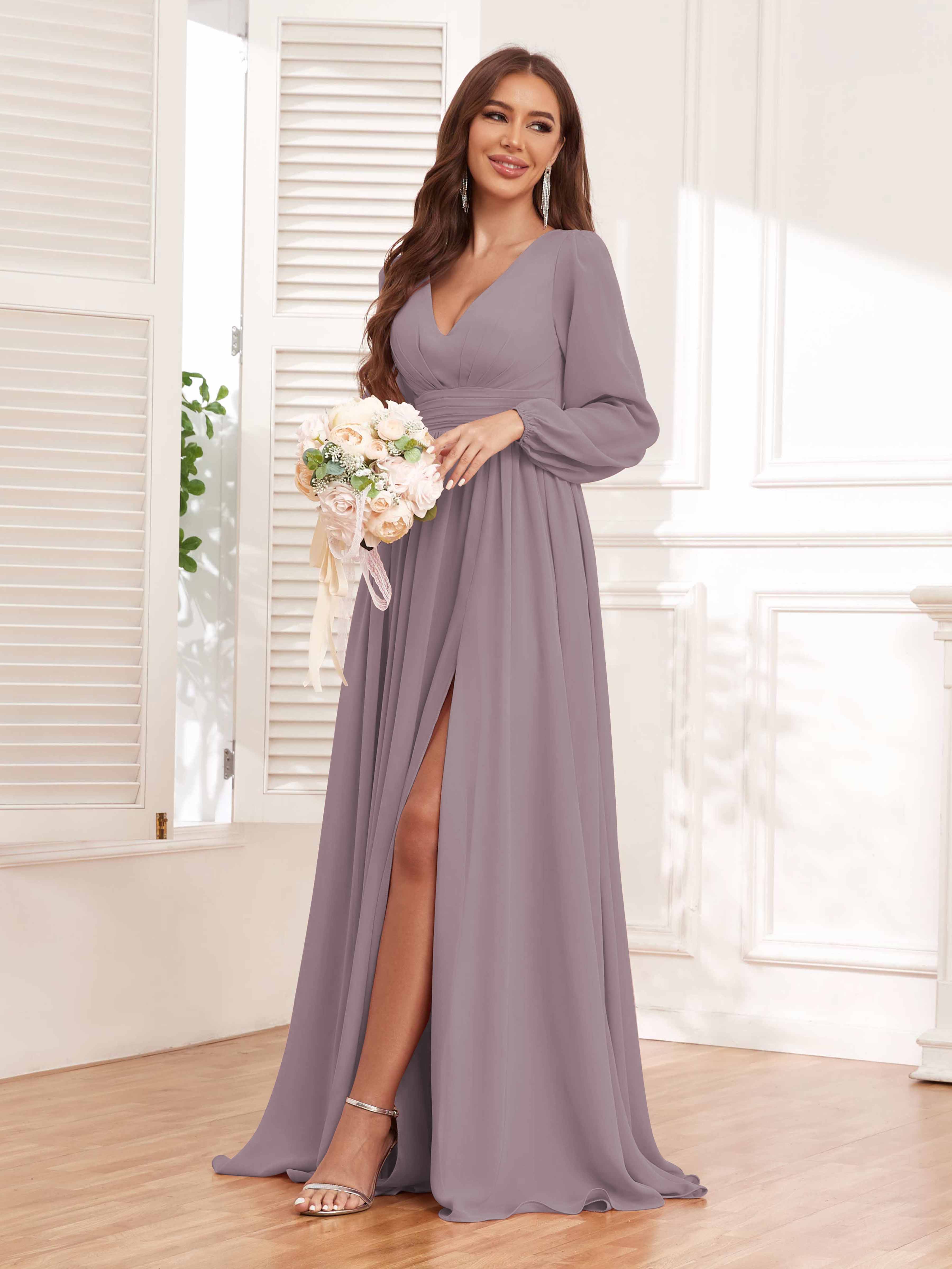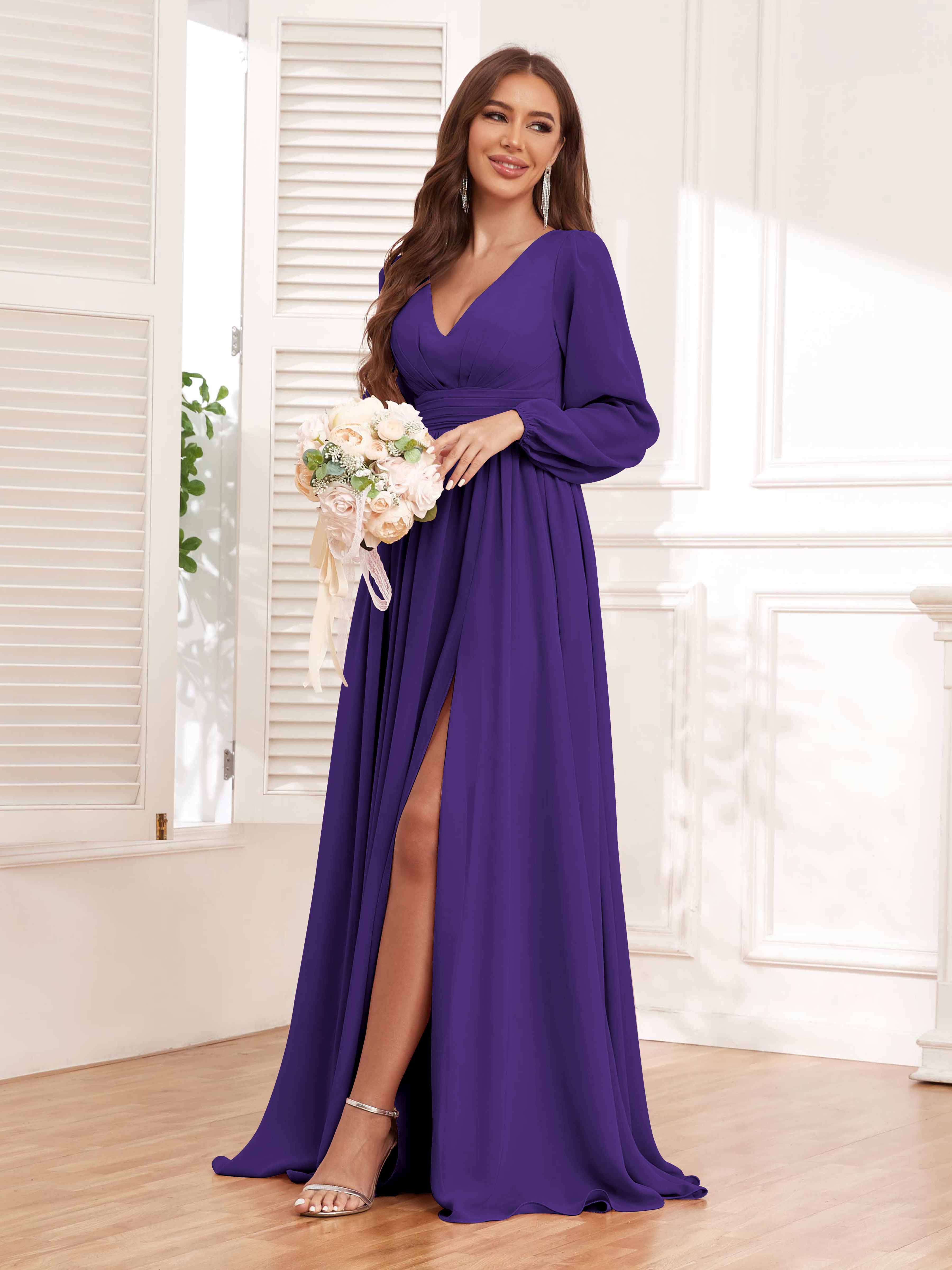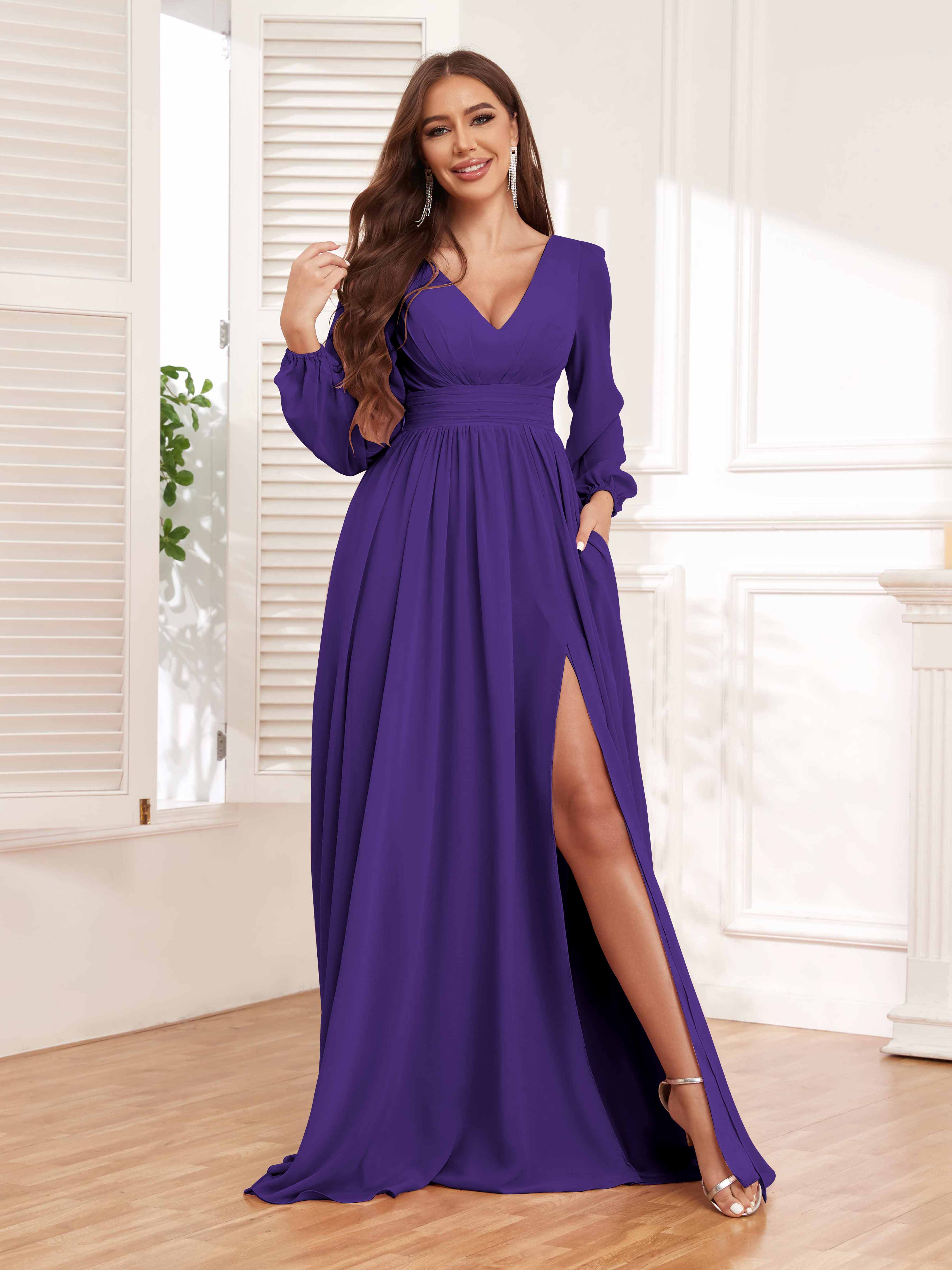 Trinity Simple V Neck Pleated Maxi Chiffon Bridesmaid Dresses